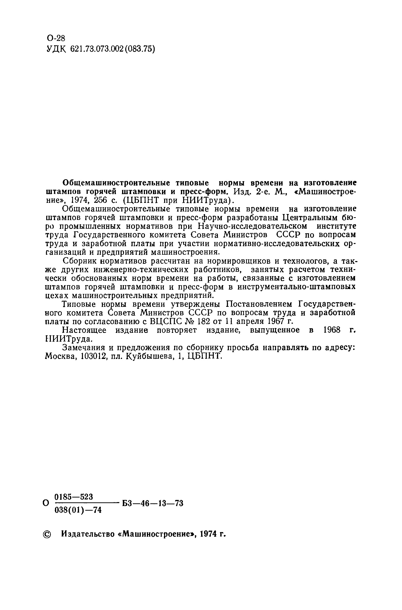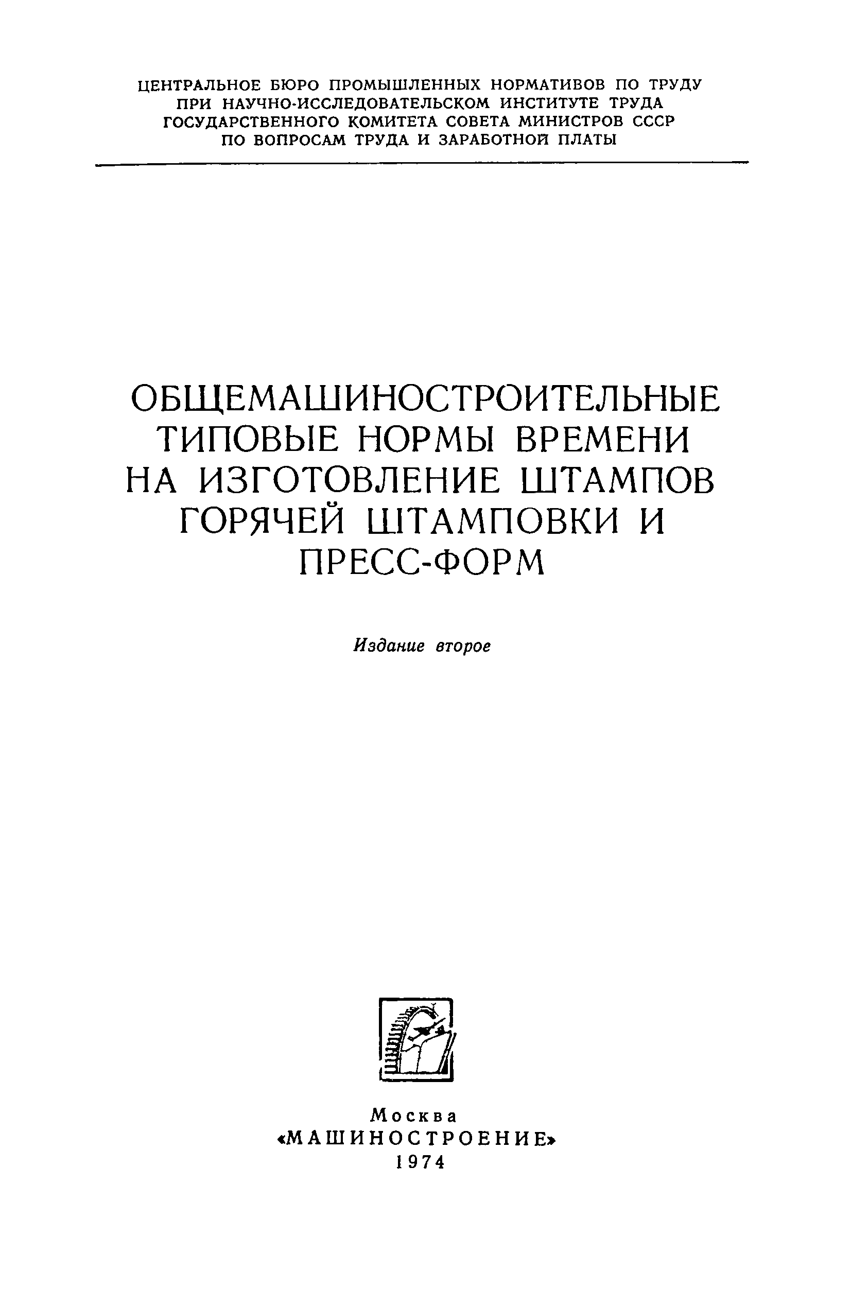 | Название рус.: | Общемашиностроительные типовые нормы времени на изготовление штампов горячей штамповки и пресс-форм |