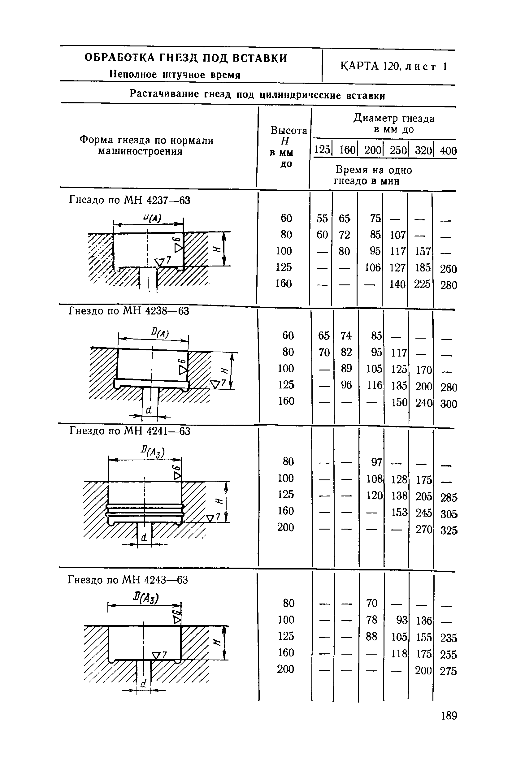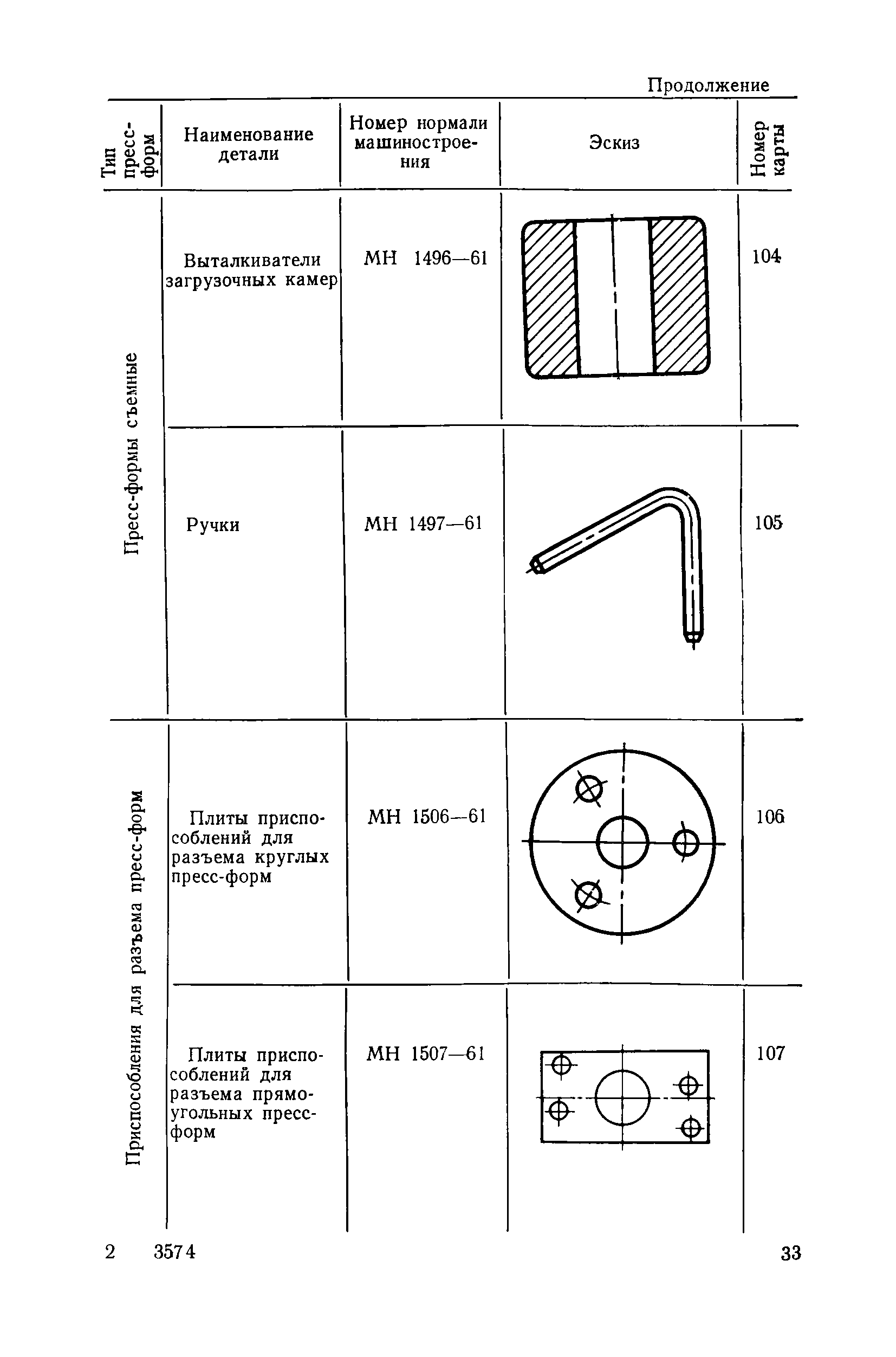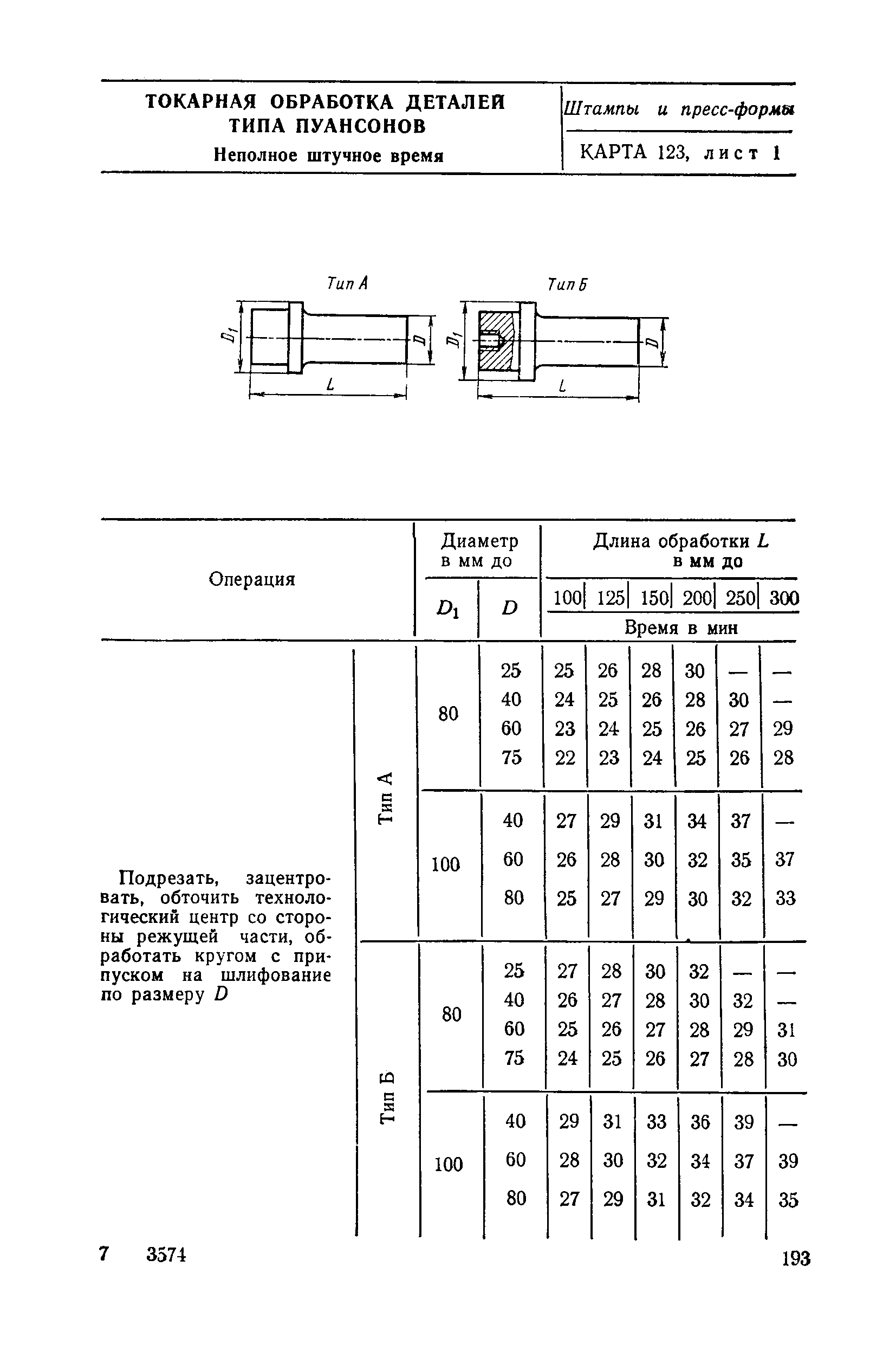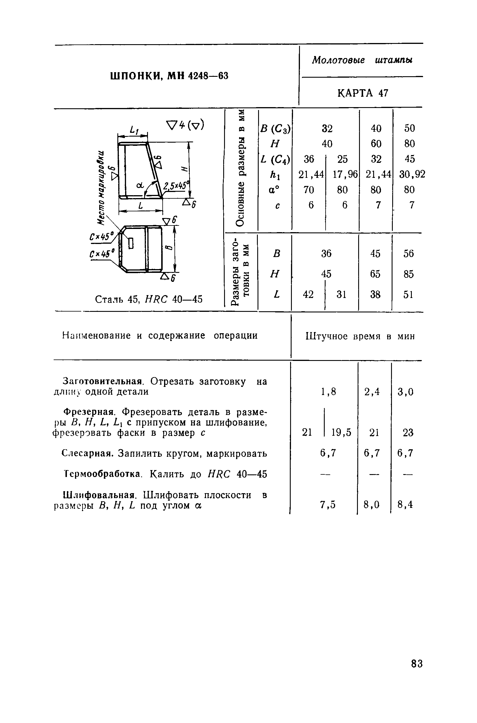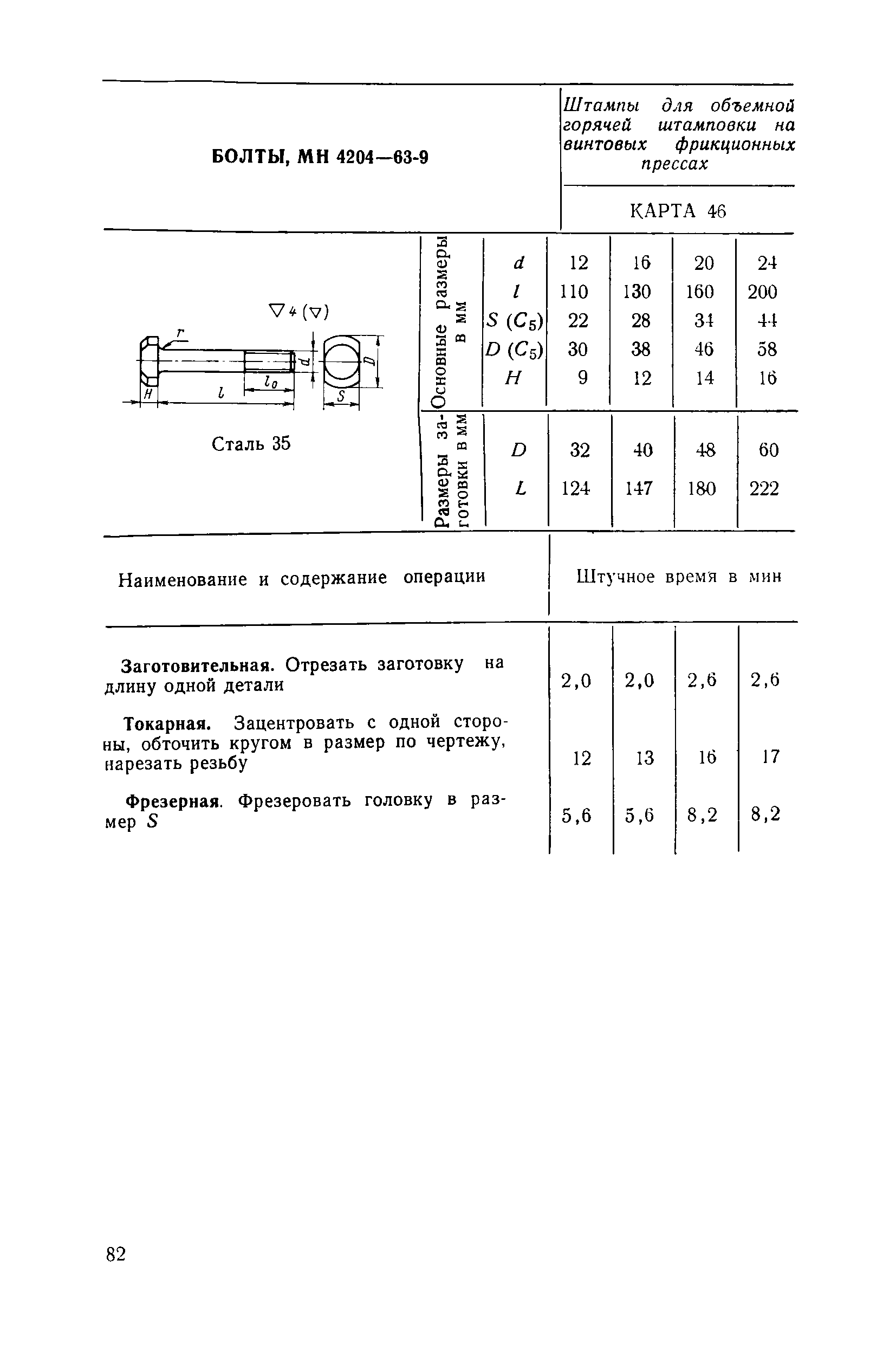 | Оглавление: | I. Типовые нормы времени на изготовление штампов II. Типовые нормы времени на изготовление пресс-форм Универсальные блоки пресс-форм с нижней загрузочной камерой Пакеты к блокам пресс-форм с нижней загрузочной камерой Пресс-формы съемные III. Нормативы неполного штучного времени и нормы времени на операции, не охваченные типовыми нормами времени IV. Подготовительно-заключительное время на партию Приложение 1. Штамп комбинированный, Трудоемкость изготовления Приложение 2. Пресс-формы для прессования изделий из реактопластов. Универсальные блоки с нижней загрузочной камерой, МН 1515-61. Трудоемкость изготовления Приложение 3. Пакеты к блокам пресс-форм с нижней загрузочной камерой, МН 1516-61 Приложение 4. Пресс-формы съемные круглые прямого прессования с двумя плоскостями разъема, МН 1452-61. Трудоемкость изготовления Приложение 5. Пресс-формы съемные прямоугольные литьевого прессования с двумя плоскостями разъема и двумя пуансонодержателями, МН 1461-61. Трудоемкость изготовления Приложение 6. Режимы резания, принятые при изготовлении штампов и пресс-форм Приложение 7. Припуски на механическую обработку Приложение 8. Перечень типовых моделей оборудования инструментального цеха штампов и пресс-форм Приложение 9. Теоретический вес заготовк |