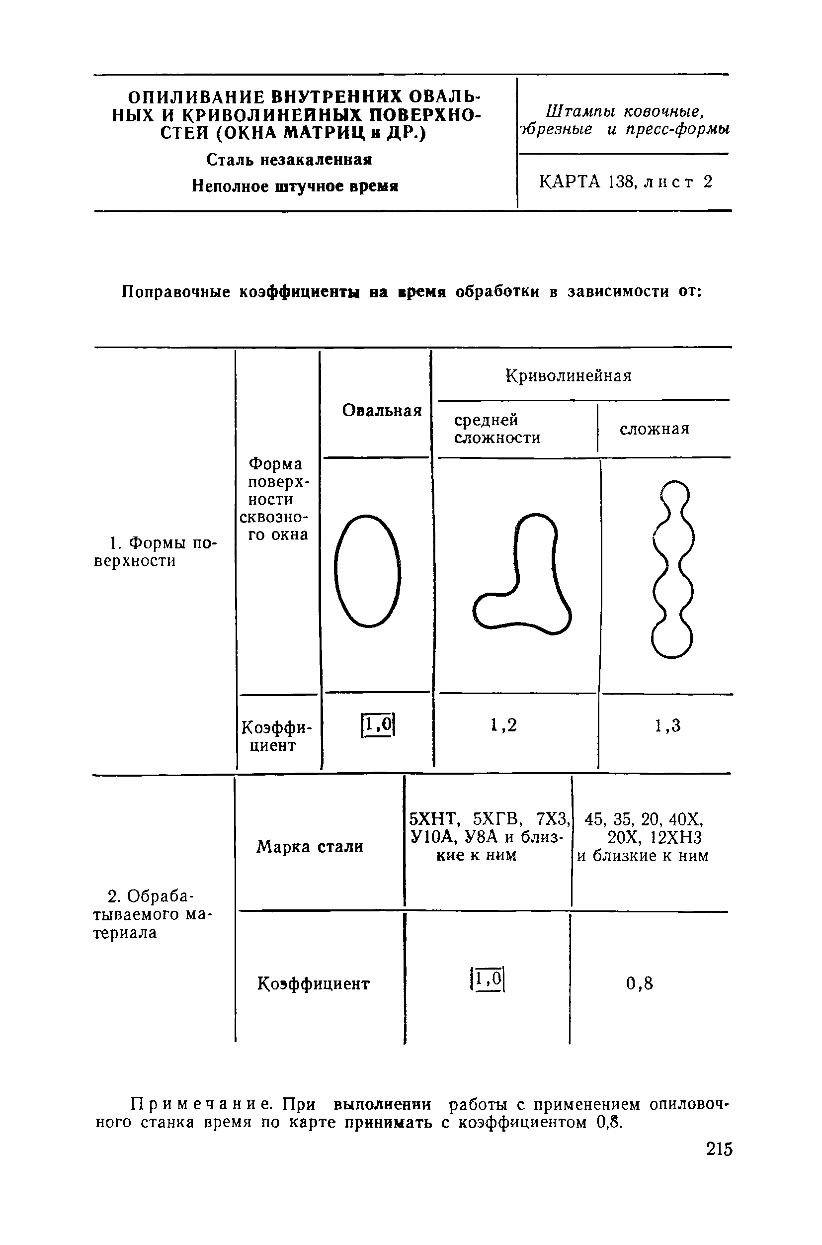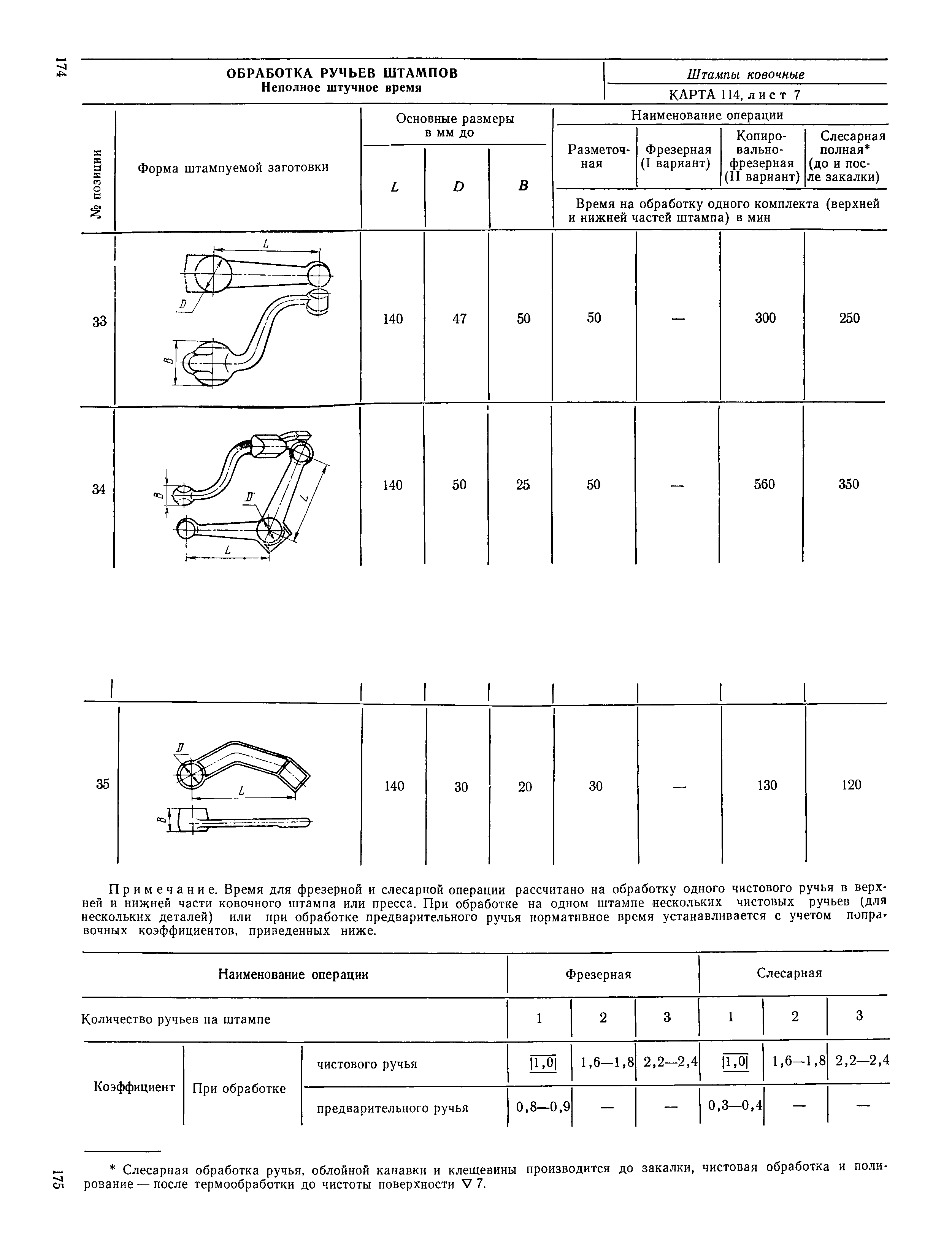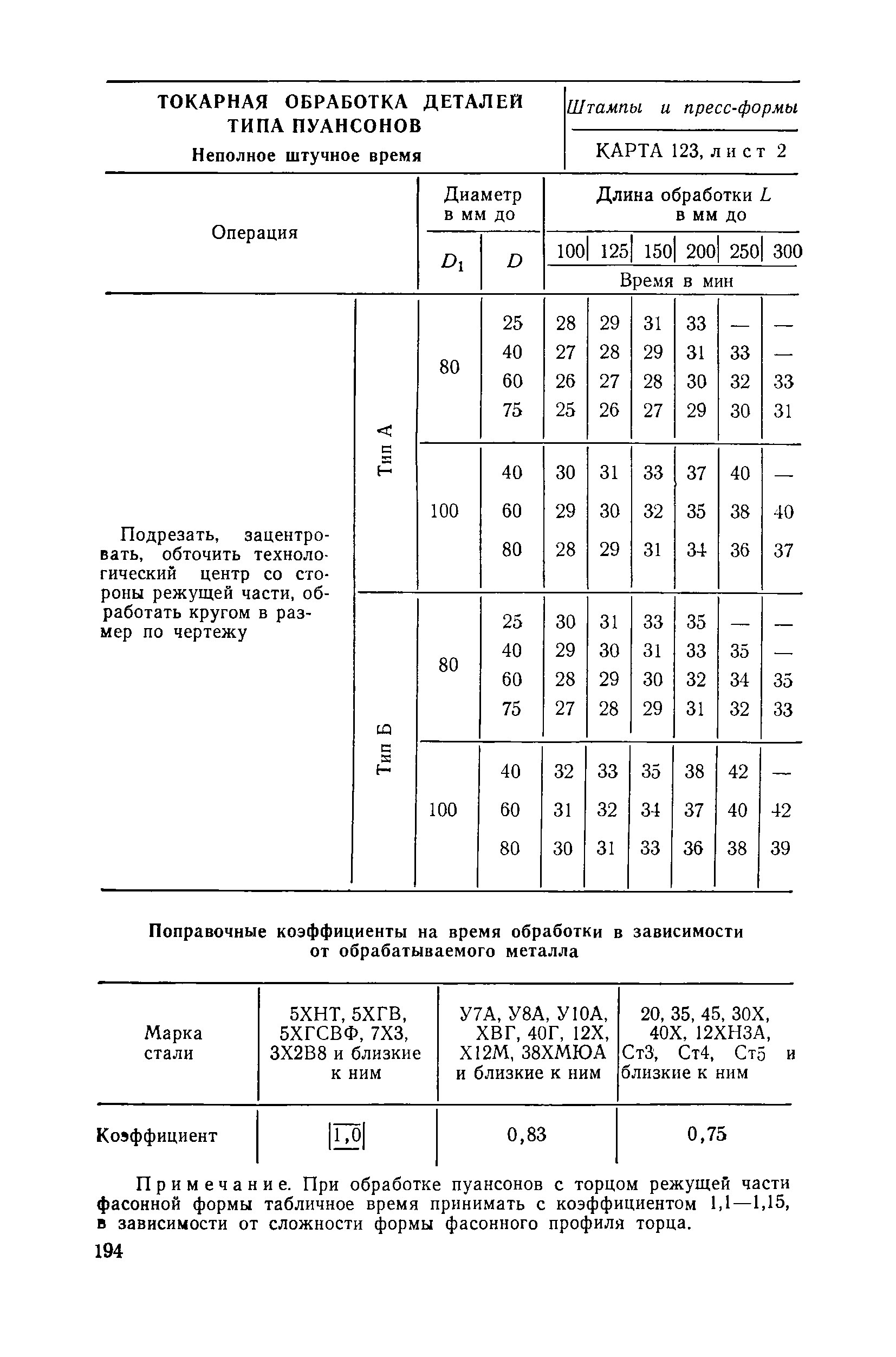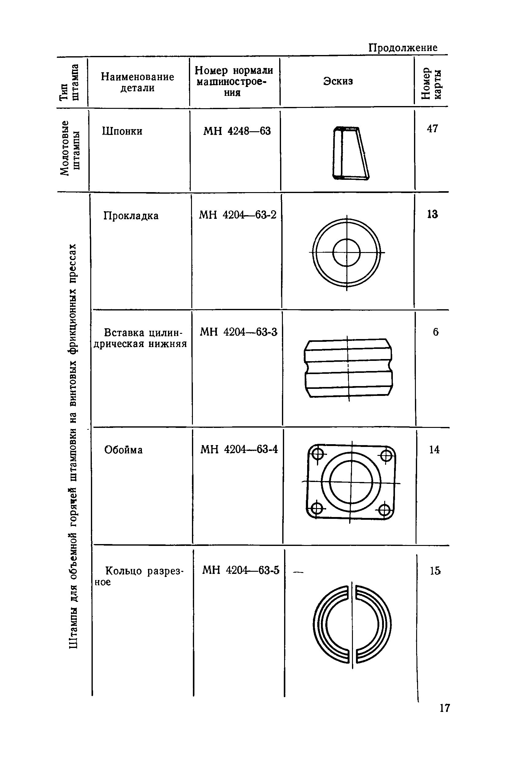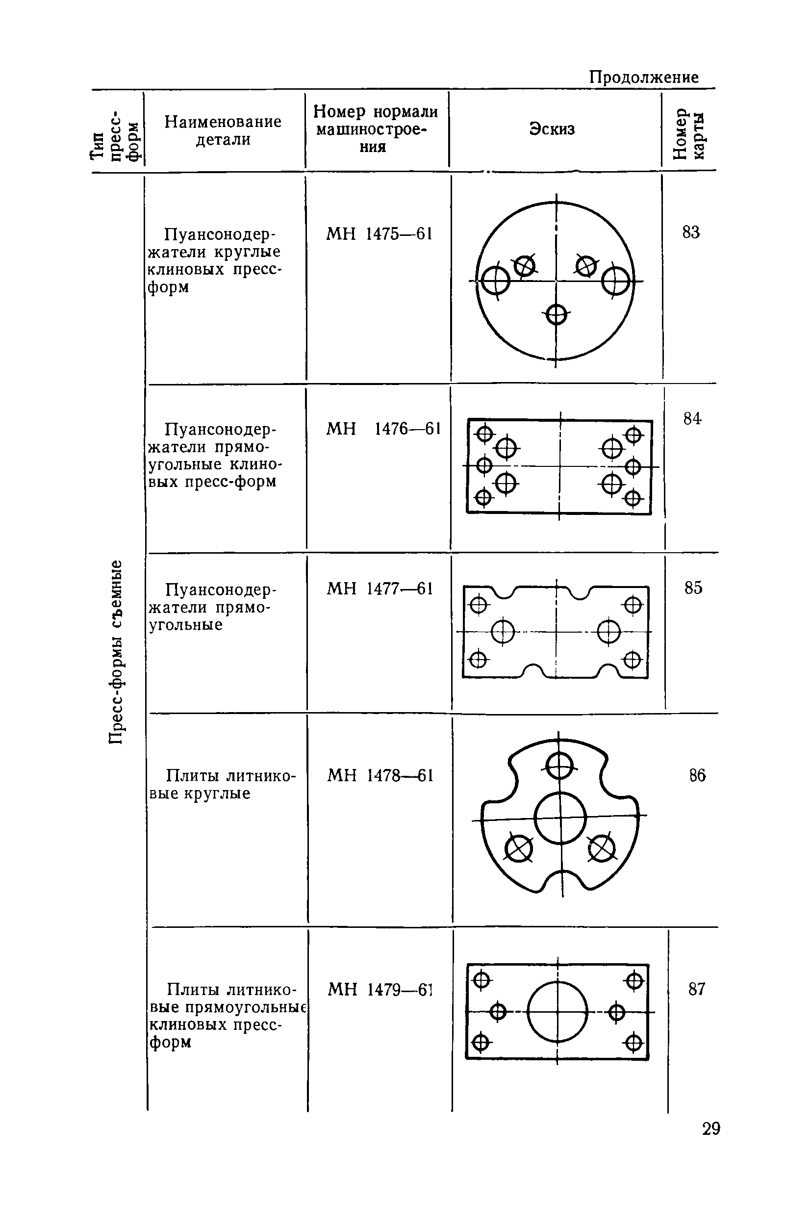 | Оглавление: | I. Типовые нормы времени на изготовление штампов II. Типовые нормы времени на изготовление пресс-форм Универсальные блоки пресс-форм с нижней загрузочной камерой Пакеты к блокам пресс-форм с нижней загрузочной камерой Пресс-формы съемные III. Нормативы неполного штучного времени и нормы времени на операции, не охваченные типовыми нормами времени IV. Подготовительно-заключительное время на партию Приложение 1. Штамп комбинированный, Трудоемкость изготовления Приложение 2. Пресс-формы для прессования изделий из реактопластов. Универсальные блоки с нижней загрузочной камерой, МН 1515-61. Трудоемкость изготовления Приложение 3. Пакеты к блокам пресс-форм с нижней загрузочной камерой, МН 1516-61 Приложение 4. Пресс-формы съемные круглые прямого прессования с двумя плоскостями разъема, МН 1452-61. Трудоемкость изготовления Приложение 5. Пресс-формы съемные прямоугольные литьевого прессования с двумя плоскостями разъема и двумя пуансонодержателями, МН 1461-61. Трудоемкость изготовления Приложение 6. Режимы резания, принятые при изготовлении штампов и пресс-форм Приложение 7. Припуски на механическую обработку Приложение 8. Перечень типовых моделей оборудования инструментального цеха штампов и пресс-форм Приложение 9. Теоретический вес заготовк |