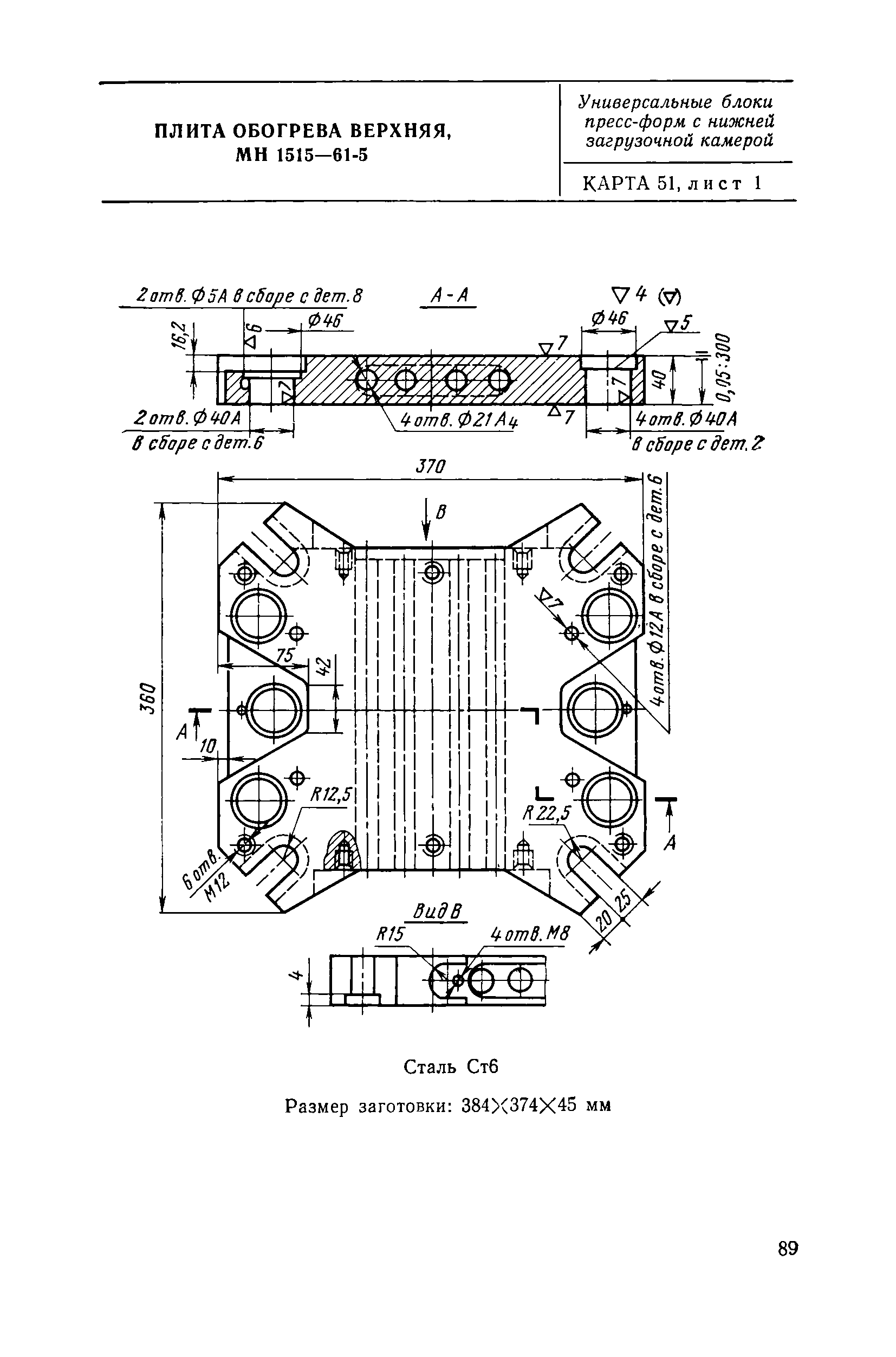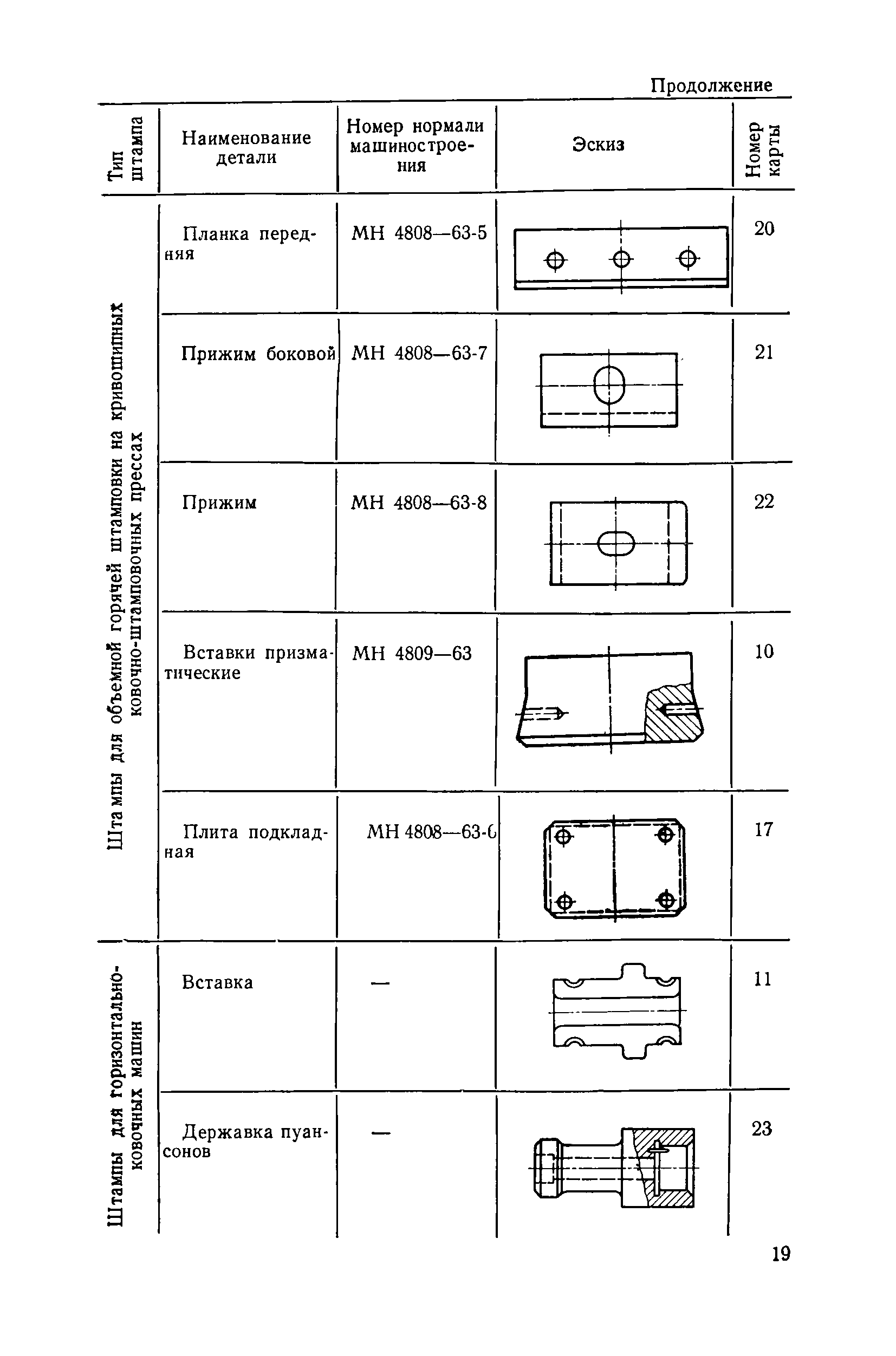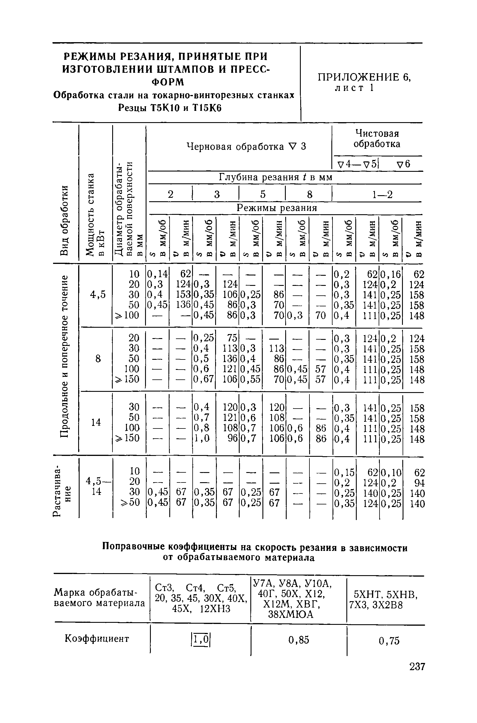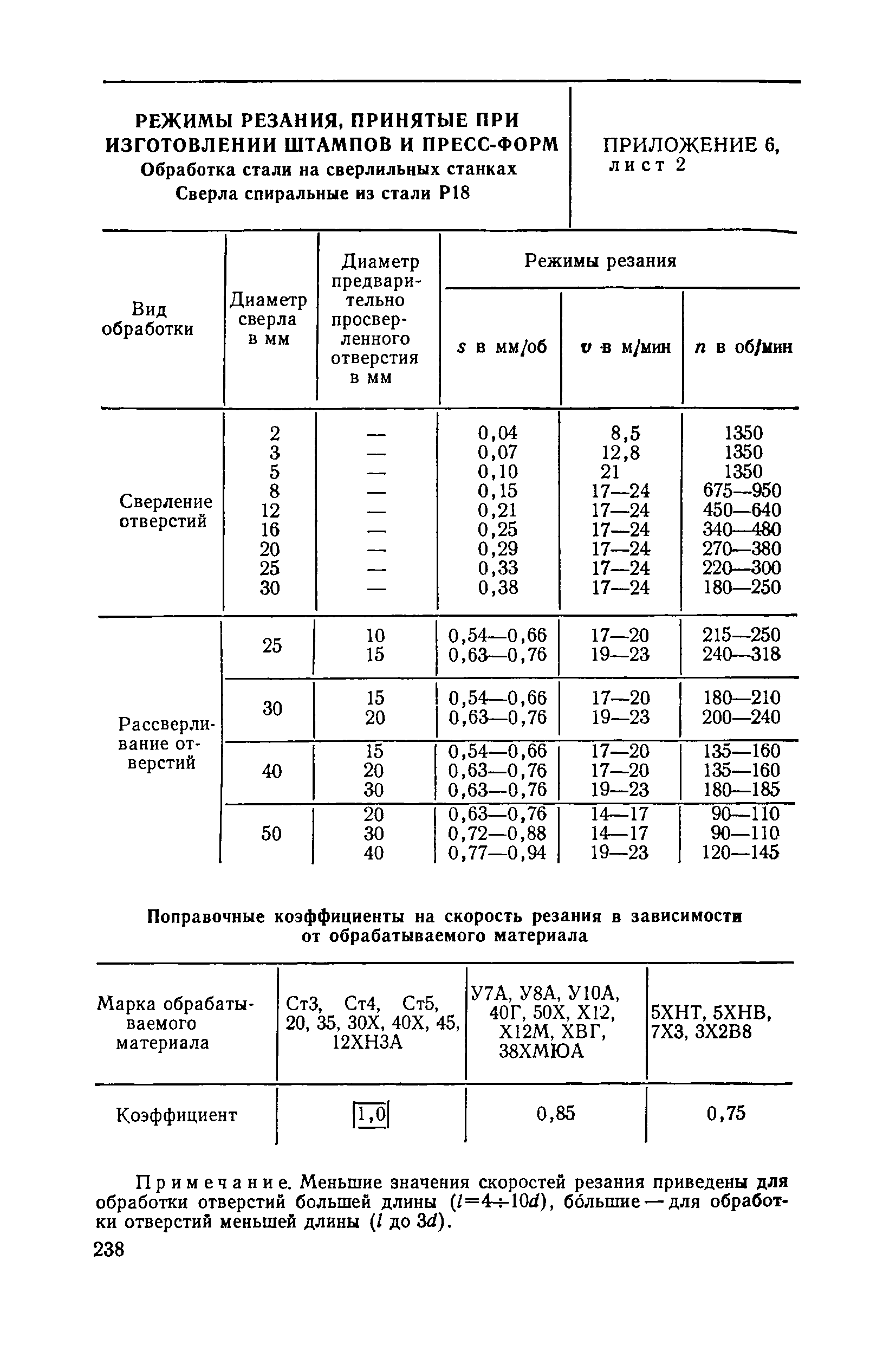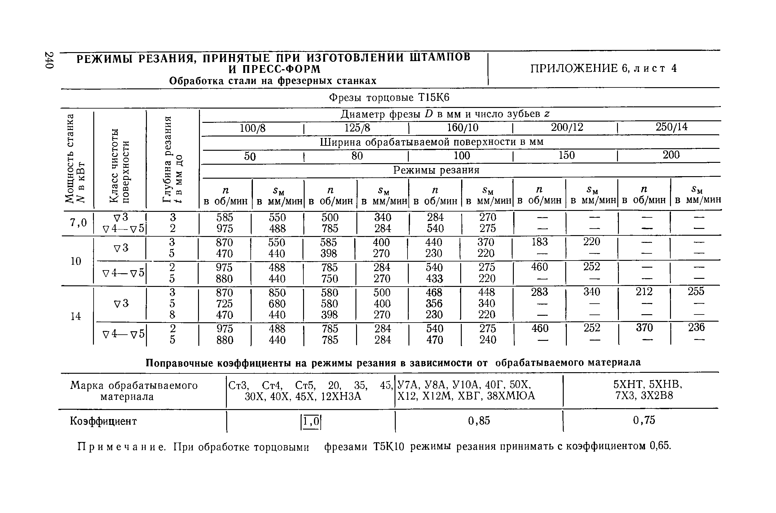 | Оглавление: | I. Типовые нормы времени на изготовление штампов II. Типовые нормы времени на изготовление пресс-форм Универсальные блоки пресс-форм с нижней загрузочной камерой Пакеты к блокам пресс-форм с нижней загрузочной камерой Пресс-формы съемные III. Нормативы неполного штучного времени и нормы времени на операции, не охваченные типовыми нормами времени IV. Подготовительно-заключительное время на партию Приложение 1. Штамп комбинированный, Трудоемкость изготовления Приложение 2. Пресс-формы для прессования изделий из реактопластов. Универсальные блоки с нижней загрузочной камерой, МН 1515-61. Трудоемкость изготовления Приложение 3. Пакеты к блокам пресс-форм с нижней загрузочной камерой, МН 1516-61 Приложение 4. Пресс-формы съемные круглые прямого прессования с двумя плоскостями разъема, МН 1452-61. Трудоемкость изготовления Приложение 5. Пресс-формы съемные прямоугольные литьевого прессования с двумя плоскостями разъема и двумя пуансонодержателями, МН 1461-61. Трудоемкость изготовления Приложение 6. Режимы резания, принятые при изготовлении штампов и пресс-форм Приложение 7. Припуски на механическую обработку Приложение 8. Перечень типовых моделей оборудования инструментального цеха штампов и пресс-форм Приложение 9. Теоретический вес заготовк |