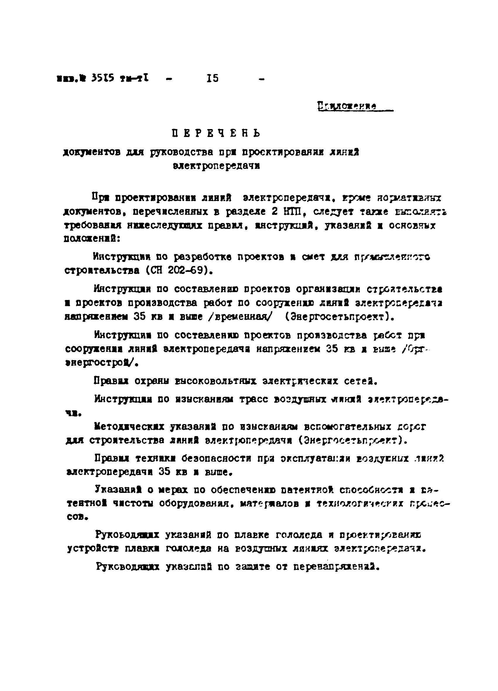 линий электропередачи 7. Объем и указания по проектированию Приложение. Перечень