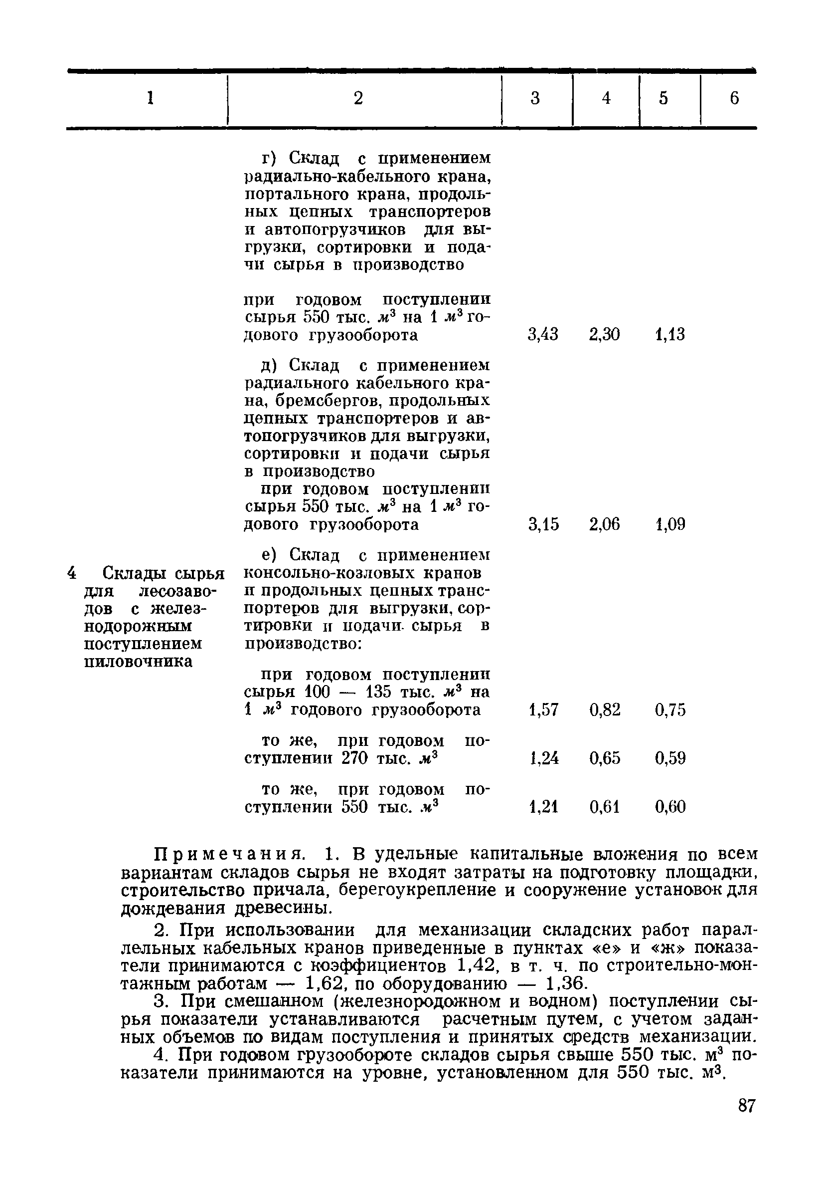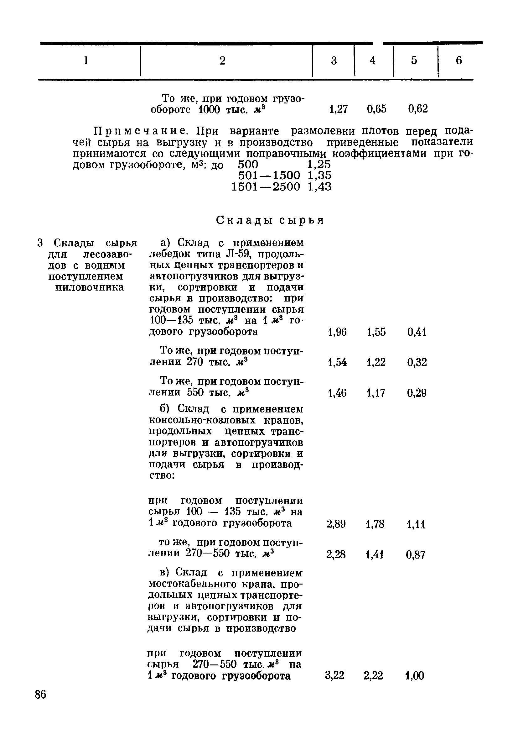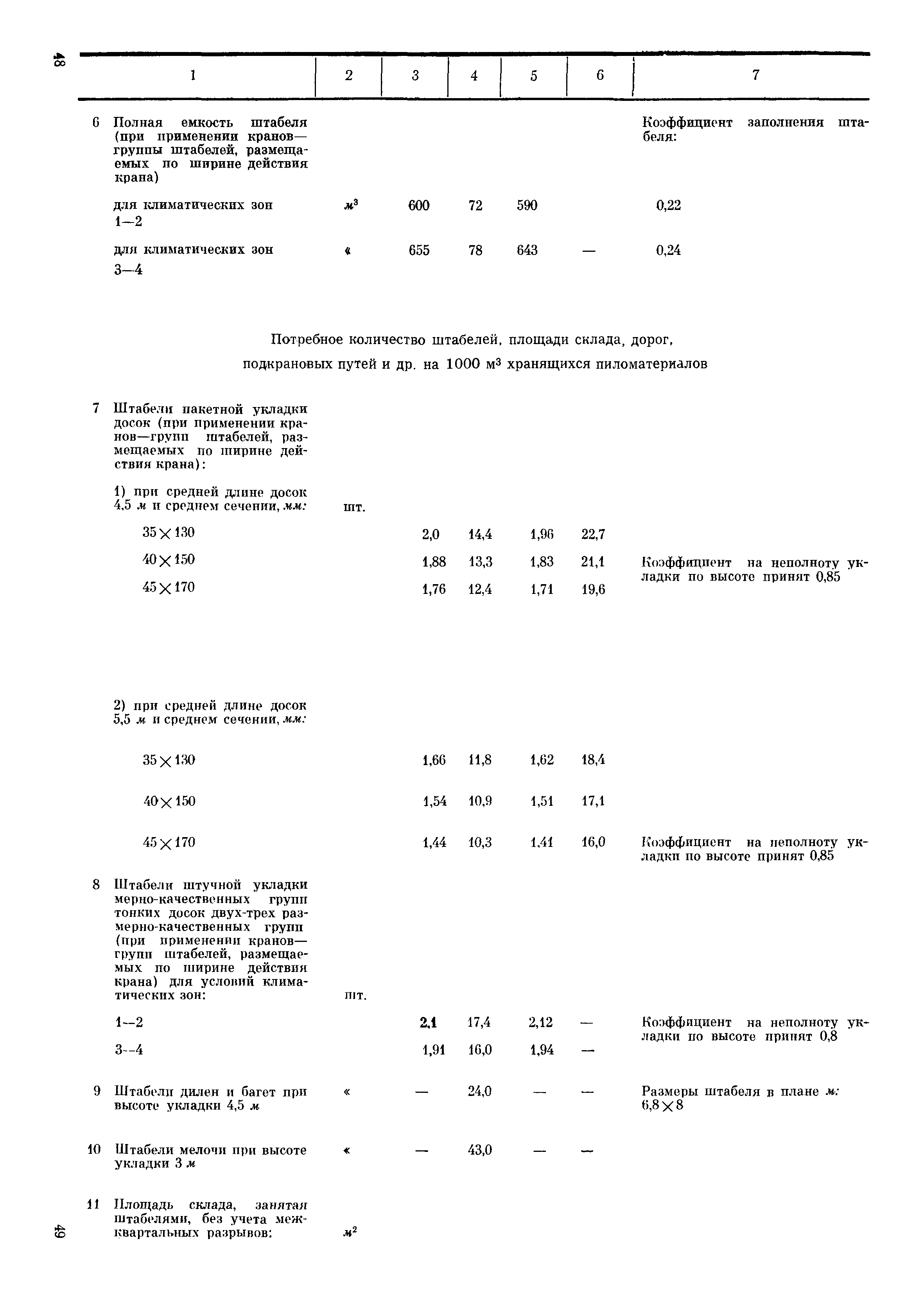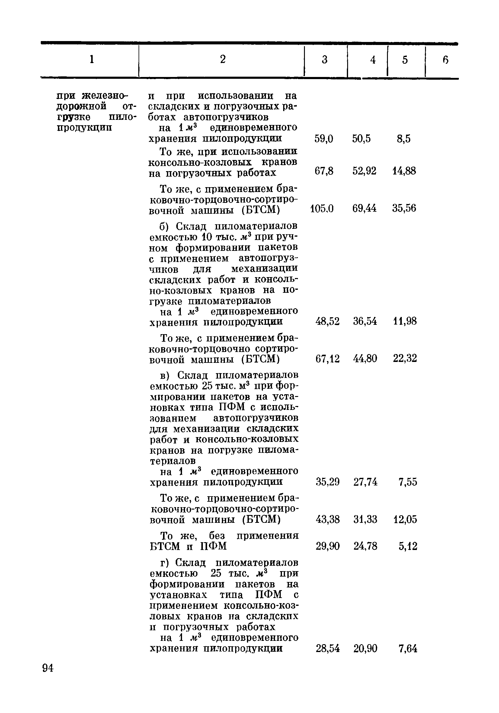 Нормы технологического проектирования, технико-экономические показатели по проектированию лесопильно-деревообрабатывающих предприятий| Статус: | справочные материалы, мп, тпр | | Название рус.: | Нормы технологического проектирования, технико-экономические показатели по проектированию лесопильно-деревообрабатывающих предприятий | | Дата добавления в базу: | 01.01.2021 | | Дата актуализации: | 01.01.2021 | | Область применения: | Приведенные в сборнике нормы предназначаются для использования при разработке технологической части проектов лесопильно-деревообрабатывающих предприятий и содержат данные о потребных площадях складов и производственных цехов, производительности и потребном количестве оборудования и трудовых затрат, расходах сырья, материалов, электроэнергии, тепла и т.п. | | Оглавление: | Нормы технологического проектирования Общая часть I. Склады хвойного пиловочника 1. Площадь склада, потребная для размещения 1000 м3 пиловочника 2. Потребное количество машиносмеси, трудозатрат й силовой электроэнергии на выгрузке, штабелевке, транспортировке и сортировке 1000 м3 бревен 3. Штат вспомогательных рабочих, ИГР, служащих и МОП II. Отепленные бассейны при окорочных и лесопильных цехах III. Окорочные цехи для пиловочных бревен хвойных пород IV. Лесопильные цехи с сортировочными площадками 1. Лесопильные цехи с двухэтажными рамами типа ДР и круглопильными станками для распиловки бревен 2. Лесопильные цехи с лесопильными рамами типа 2Р 3. Лесопильные цехи с одноэтажными рамами типа Р-63 и Р-ВО V. Склады пиломатериалов и отгрузка 1. Открытое хранение хвойных пиломатериалов . . 2. Механизированная подготовка пиломатериалов к погрузке 3. Погрузка пиломатериалов 4. Штат обслуживающего персонала на открытом складе пиломатериалов и погрузке VI. Транспортирование пиломатериалов VII. Сушильные камеры для пиломатериалов Приложение. Перечень районов (областей) по температурным зонам Технико-экономические показатели I. Общая часть II. Показатели удельных капитальных вложений по отдельным цехам и хозяйствам лесопильно-деревообрабатывающих предприятий А. Объекты основного производственного назначения лесопильно-деревообрабатывающих предприятий Б. Объекты подсобно-производственного и обслуживающего назначения и прочие затраты по промышленной площадке В. Комплексные удельные капиталовложения в целом по лесопильно-деревообрабатывающим предприятиям III. Показатели себестоимости отдельных видов работ и готовой продукция лесопильно-деревообрабатывающих предприятий Приложение 1. Порайонные поправочные коэффициенты для пересчета показателей удельных капитальных вложений Приложение 2. Поправочные коэффициенты к стоимости строительно-монтажных работ по климатическим районам Приложение 3. Удельные нормы расхода сырья, материалов, энергии, трудозатрат и пр., принятые в ТЭП при расчетах показателей себестоимости продукции лесопильно-деревообрабатывающих предприятий Приложение 4. Расчетные цены и нормы начислений, принятые при определении показателей себестоимости продукции по ТЭП | | Разработан: | Государственный проектный институт Гипродрев