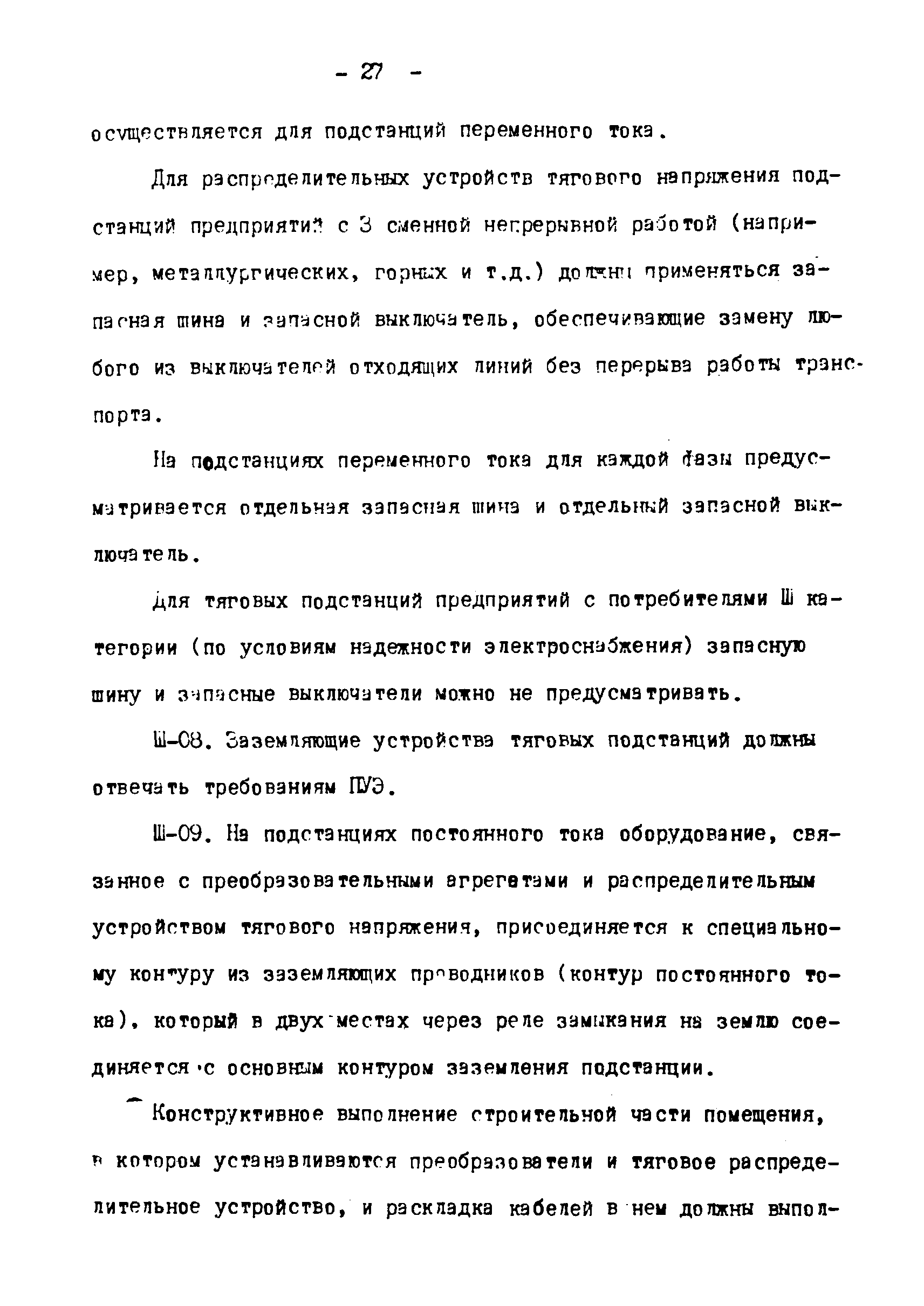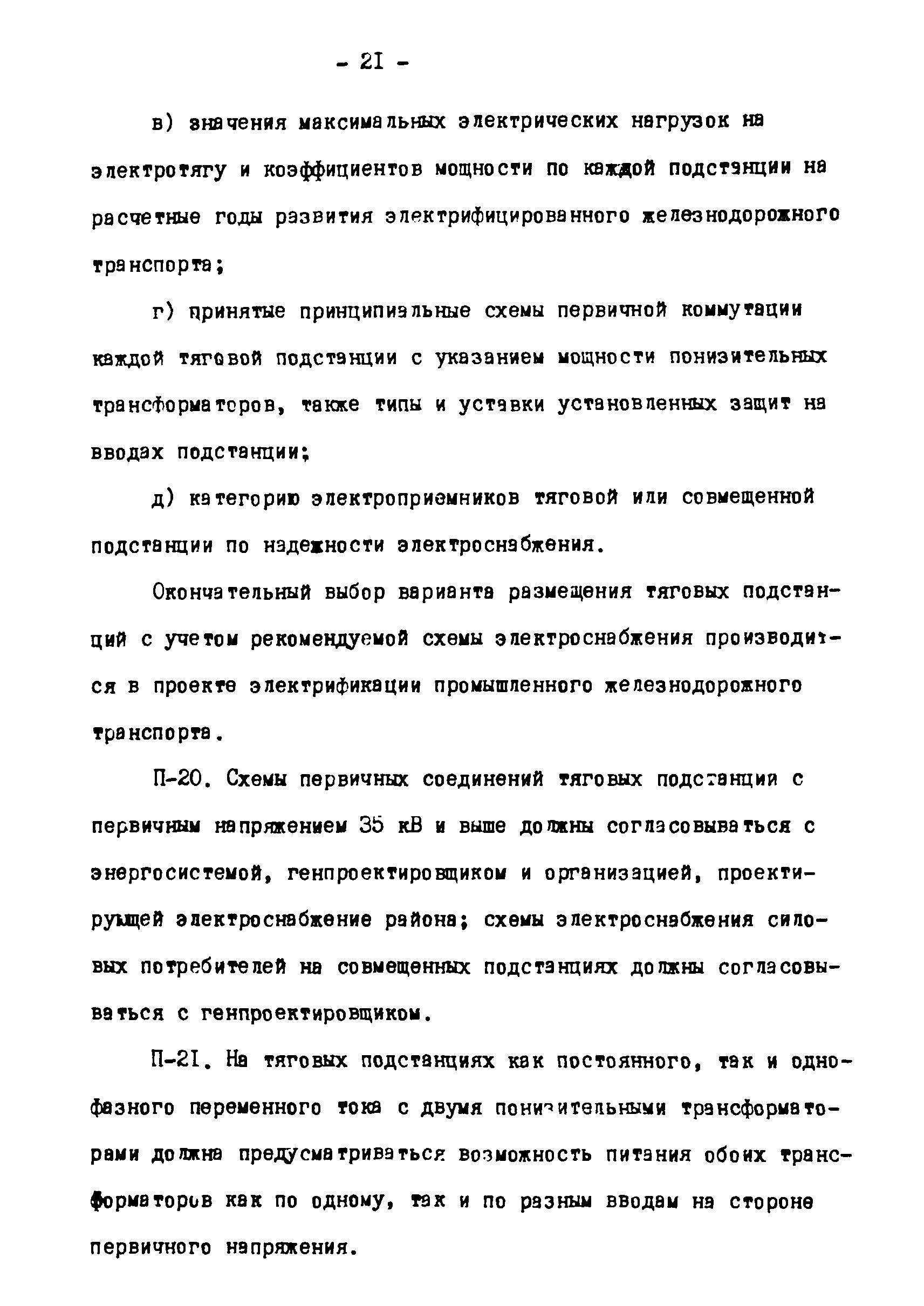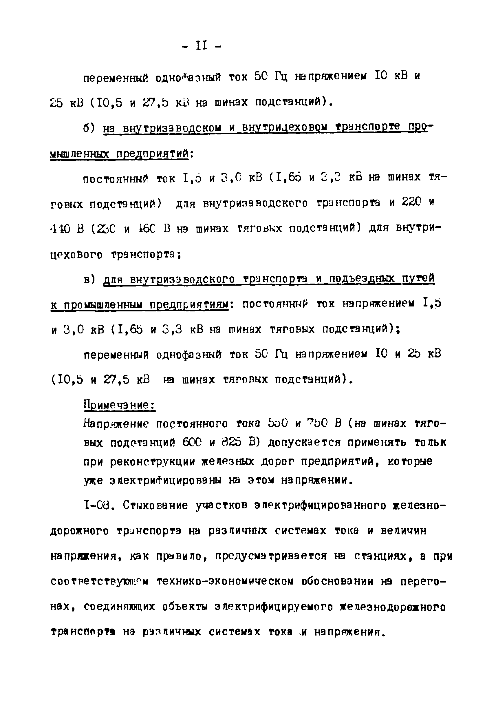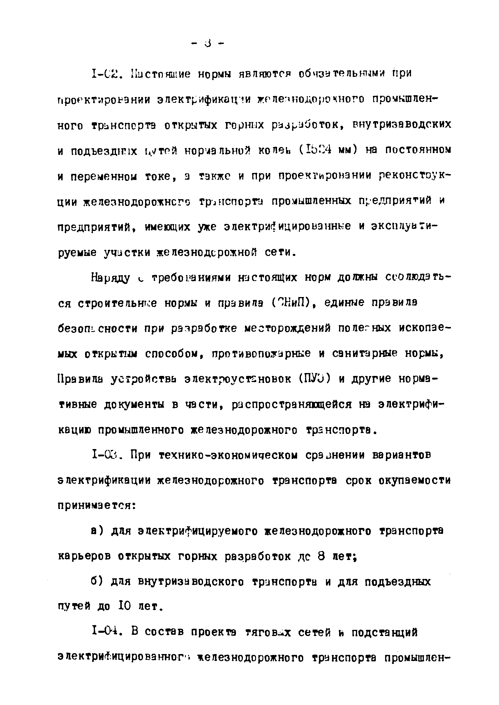 Нормы технологического проектирования тяговых сетей и подстанций для промышленного железнодорожного транспорта нормальной колеи, в том числе для северной строительно-климатической зоны| Статус: | действует | | Название рус.: | Нормы технологического проектирования тяговых сетей и подстанций для промышленного железнодорожного транспорта нормальной колеи, в том числе для северной строительно-климатической зоны | | Дата добавления в базу: | 01.01.2021 | | Дата актуализации: | 01.01.2021 | | Дата введения: | 15.03.1978 | | Область применения: | Нормы технологического проектирования содержат указания по проектированию тяговых сетей и подстанций промышленного железнодорожного транспорта нормальной колеи (1524 мм) предприятий черной и цветной металлургии, угольной промышленности и нерудных материалов, открытых горных разработок, подъездных путей, внутризаводского и внутрицехового транспорта, включая участки с "горячими" перевозками. Нормы предусмотрены для проектирования электрификации промышленного транспорта как на постоянном, так и на переменном токе и предназначены для проектных организаций, непосредственно занятых проектированием электрификации промышленного железнодорожного транспорта во всех климатических зонах Советского Союза, включая северную строительно-климатическую зону | | Оглавление: | 1. Общие положения 2. Выбор тягового и внешнего электроснабжения 3. Тяговые подстанции 4. Тяговая сеть промышленных предприятий 5. Распределительные посты 6. Служба эксплуатации тяговой сети и дежурные пункты 7. Подстанции и тяговая сеть для северной строительно-климатической зоны Приложение. Основные термины и определения | | Разработан: | Тяжпромэлектропроект