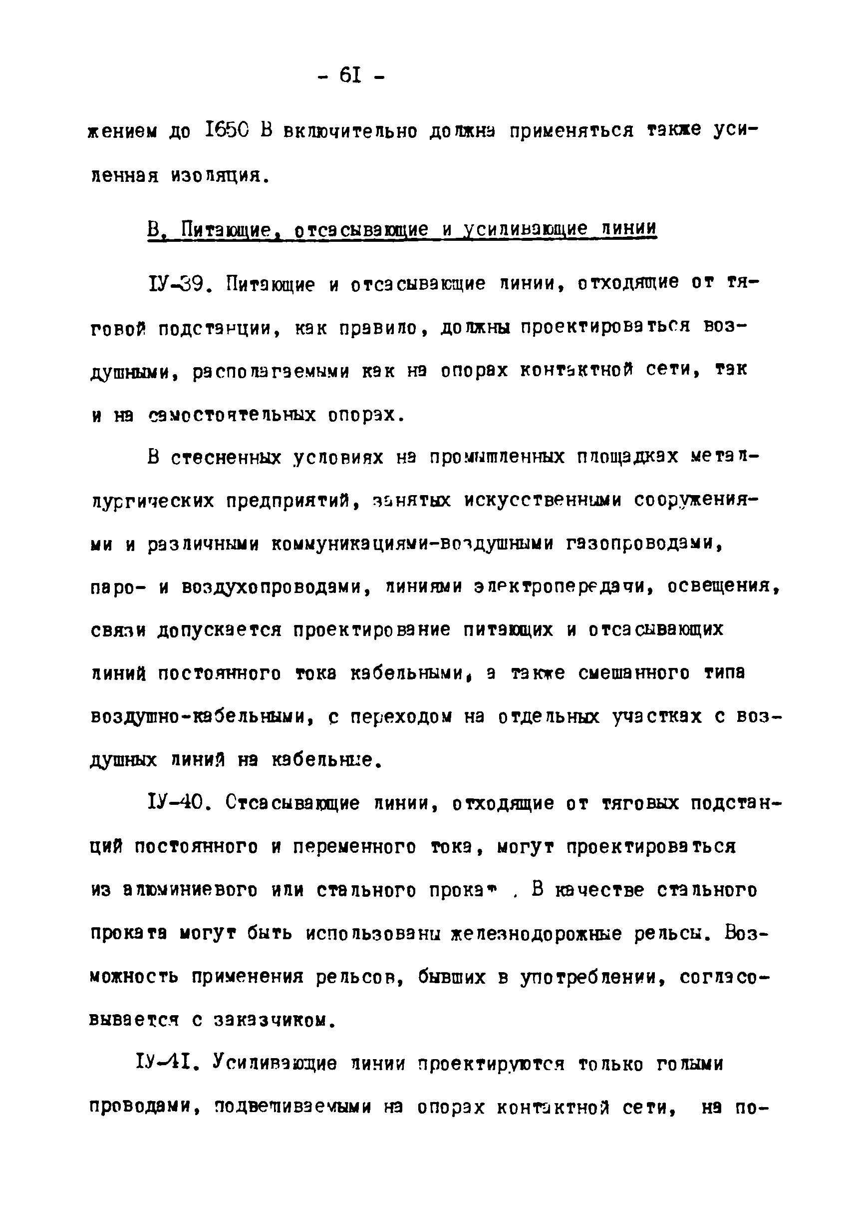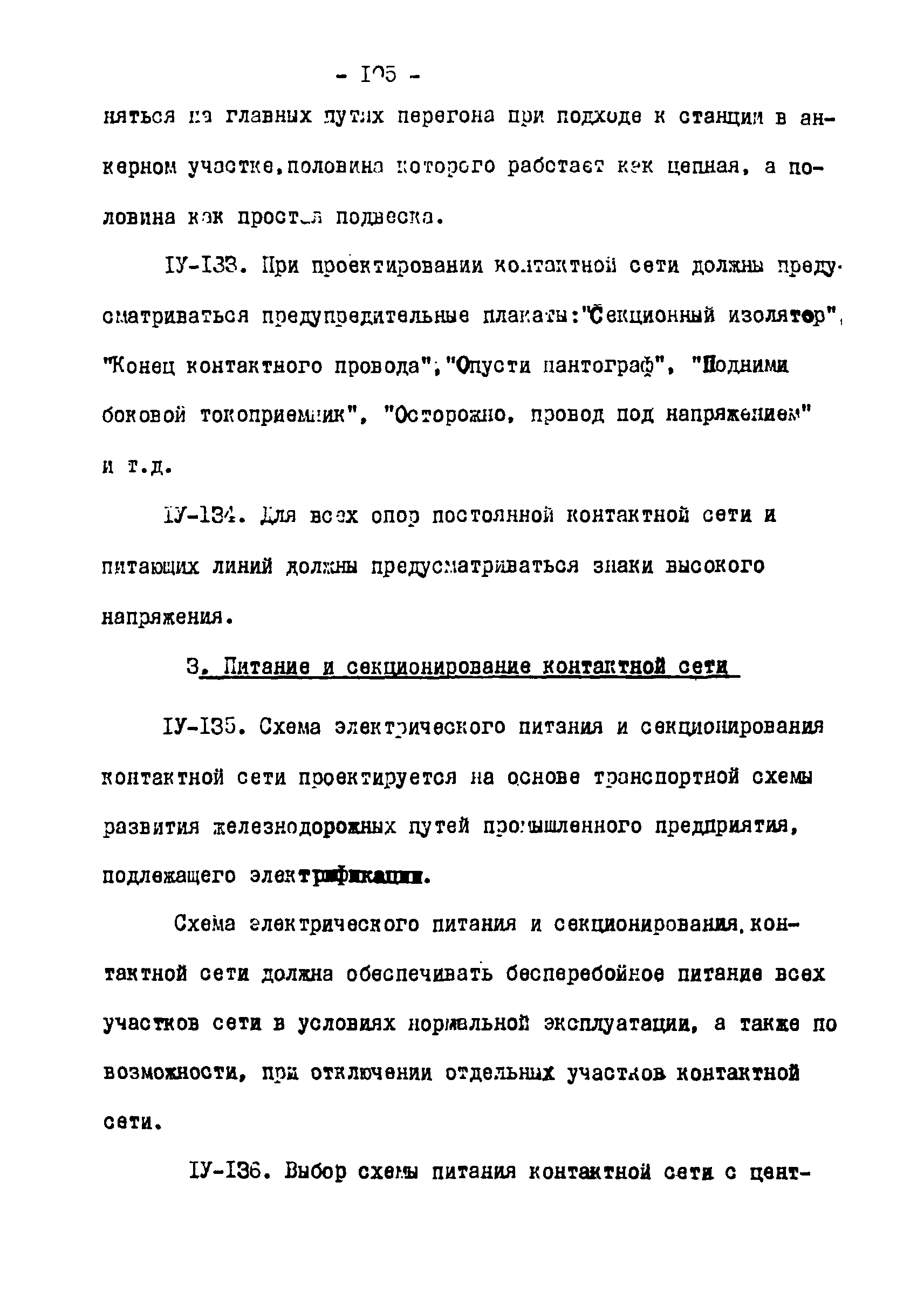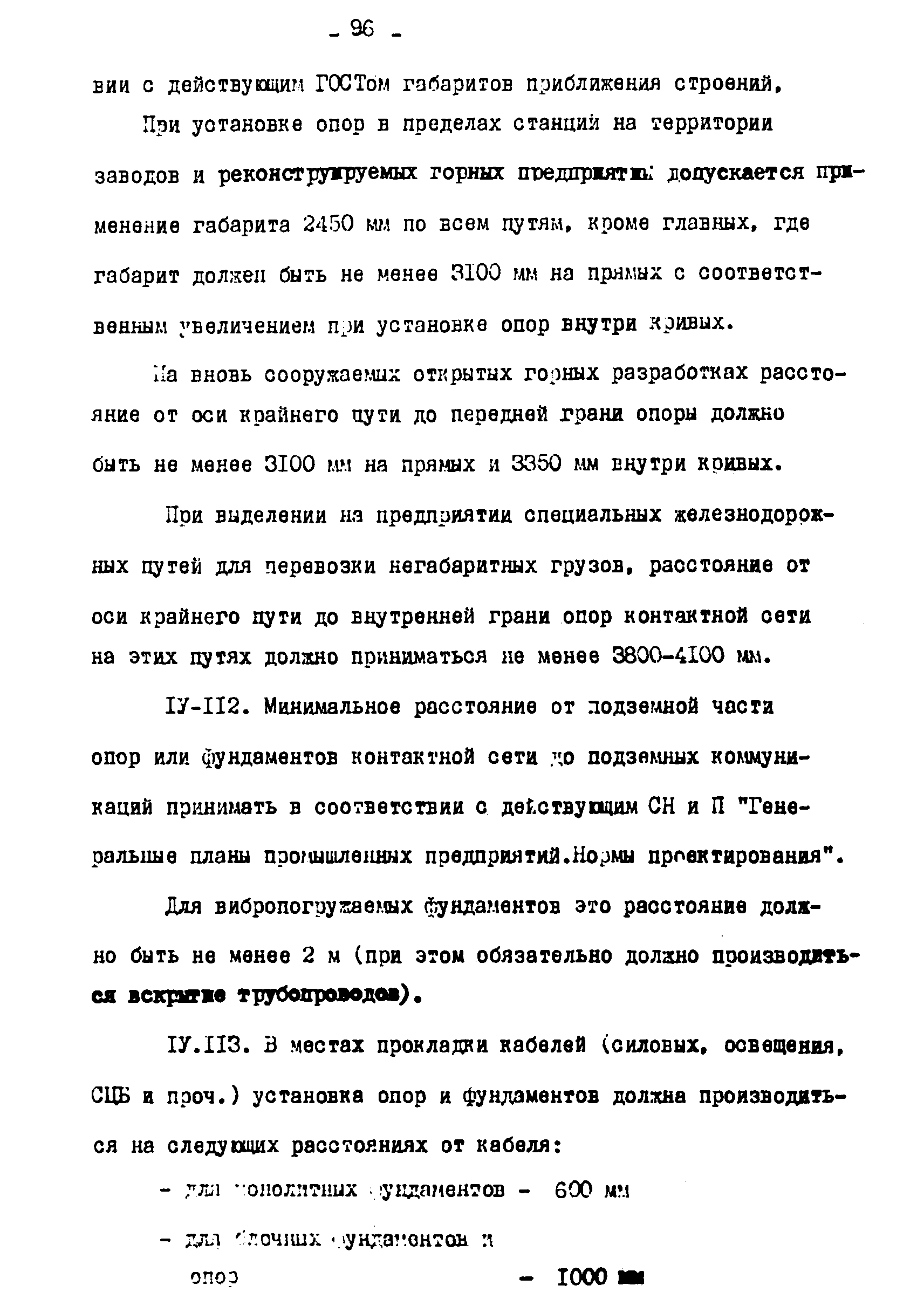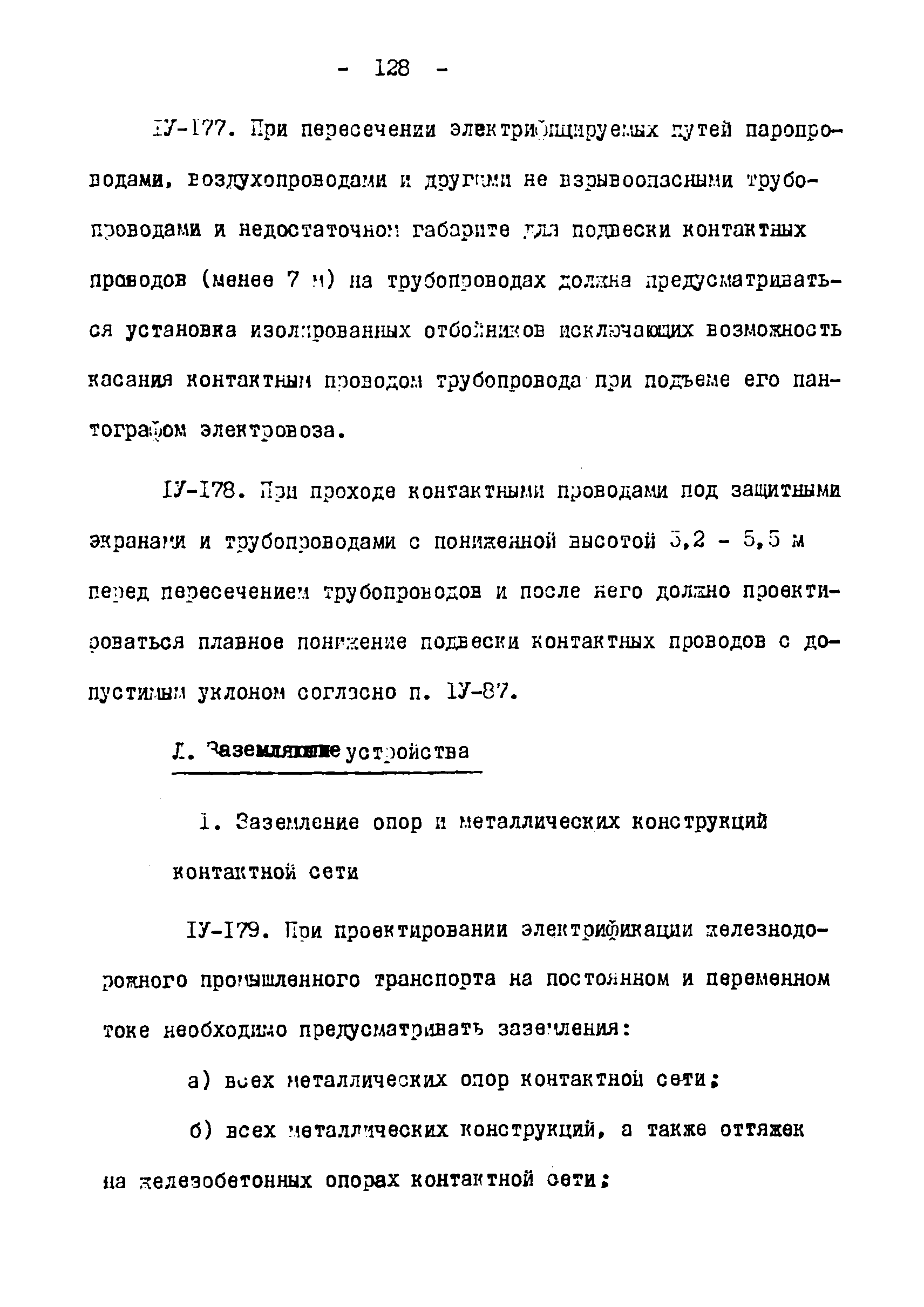 Нормы технологического проектирования тяговых сетей и подстанций для промышленного железнодорожного транспорта нормальной колеи, в том числе для северной строительно-климатической зоны| Статус: | действует | | Название рус.: | Нормы технологического проектирования тяговых сетей и подстанций для промышленного железнодорожного транспорта нормальной колеи, в том числе для северной строительно-климатической зоны | | Дата добавления в базу: | 01.01.2021 | | Дата актуализации: | 01.01.2021 | | Дата введения: | 15.03.1978 | | Область применения: | Нормы технологического проектирования содержат указания по проектированию тяговых сетей и подстанций промышленного железнодорожного транспорта нормальной колеи (1524 мм) предприятий черной и цветной металлургии, угольной промышленности и нерудных материалов, открытых горных разработок, подъездных путей, внутризаводского и внутрицехового транспорта, включая участки с "горячими" перевозками. Нормы предусмотрены для проектирования электрификации промышленного транспорта как на постоянном, так и на переменном токе и предназначены для проектных организаций, непосредственно занятых проектированием электрификации промышленного железнодорожного транспорта во всех климатических зонах Советского Союза, включая северную строительно-климатическую зону | | Оглавление: | 1. Общие положения 2. Выбор тягового и внешнего электроснабжения 3. Тяговые подстанции 4. Тяговая сеть промышленных предприятий 5. Распределительные посты 6. Служба эксплуатации тяговой сети и дежурные пункты 7. Подстанции и тяговая сеть для северной строительно-климатической зоны Приложение. Основные термины и определения | | Разработан: | Тяжпромэлектропроект