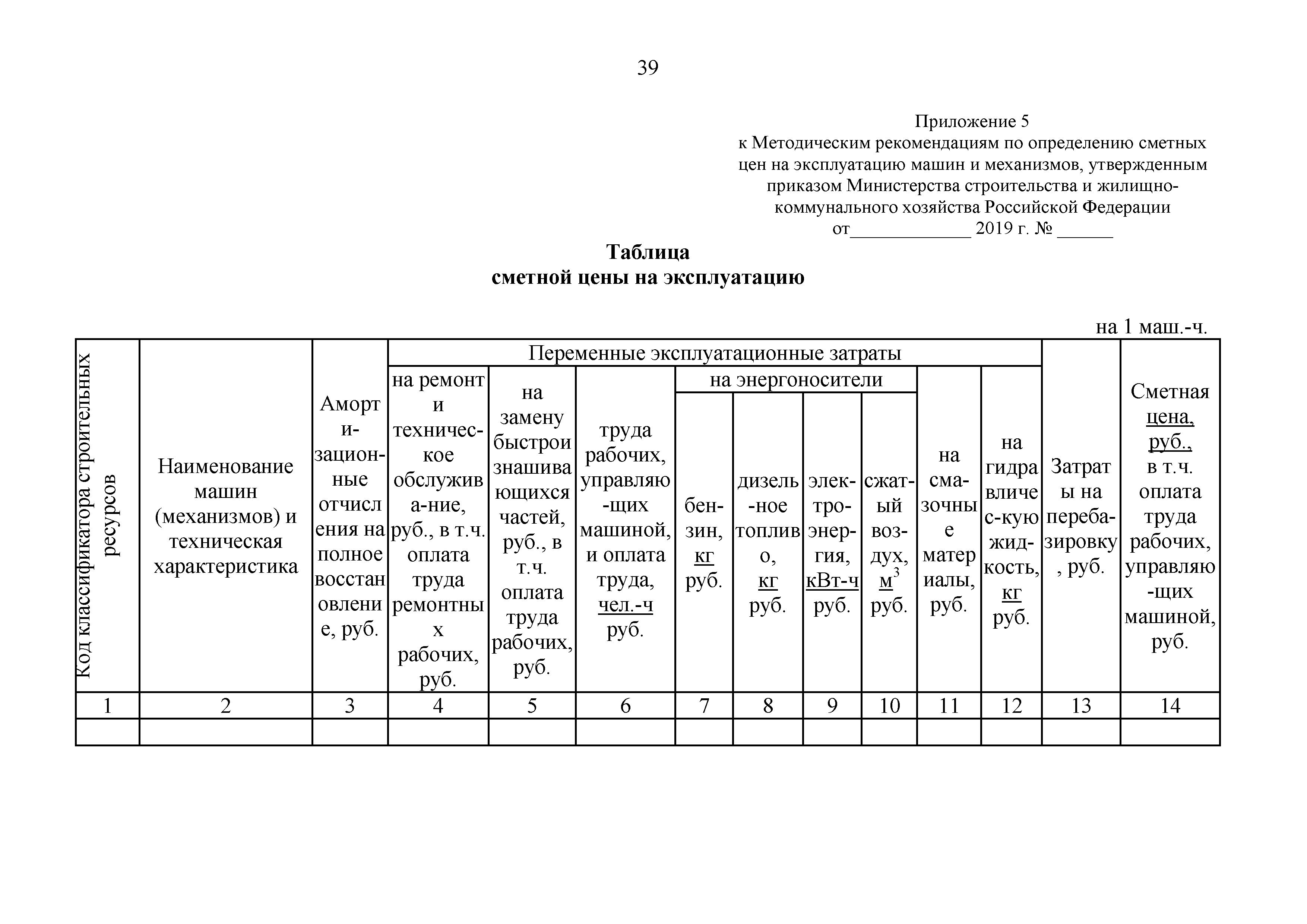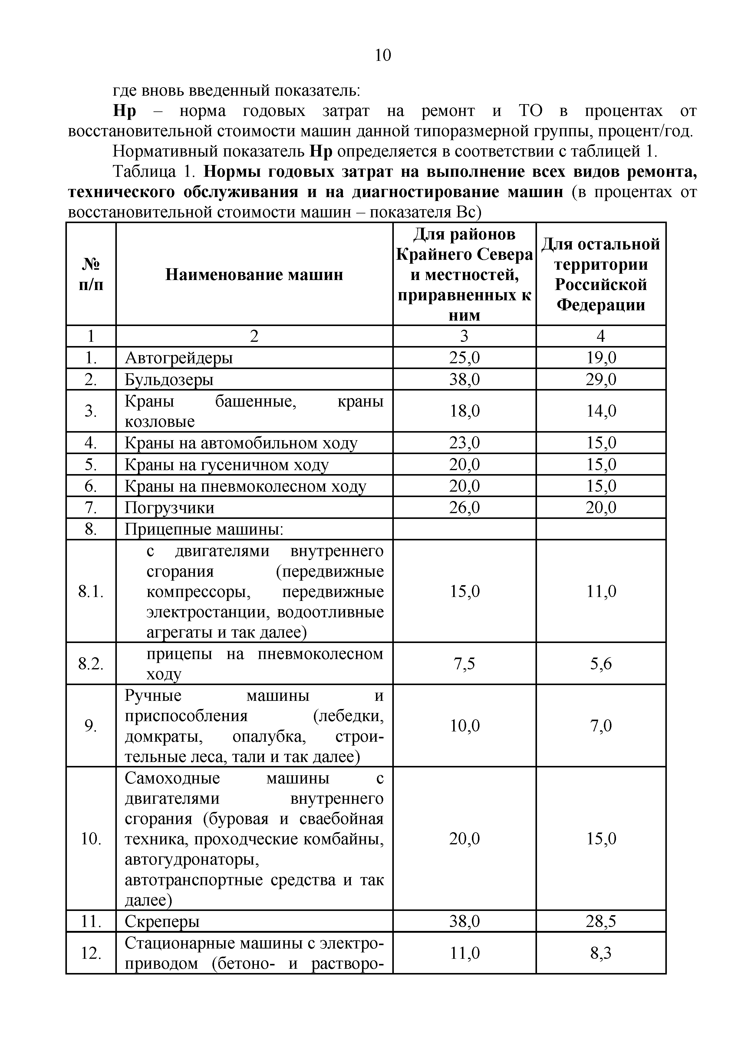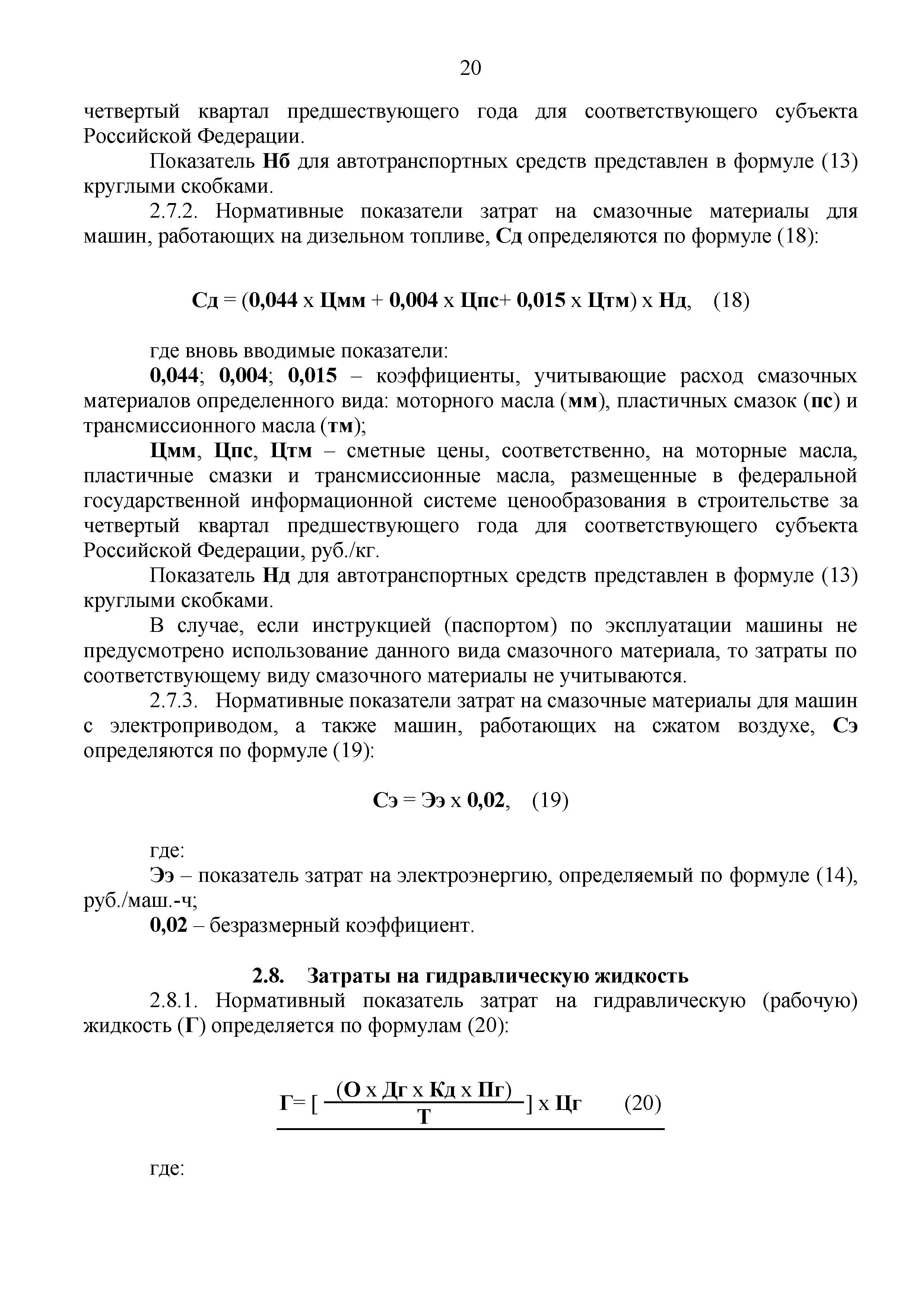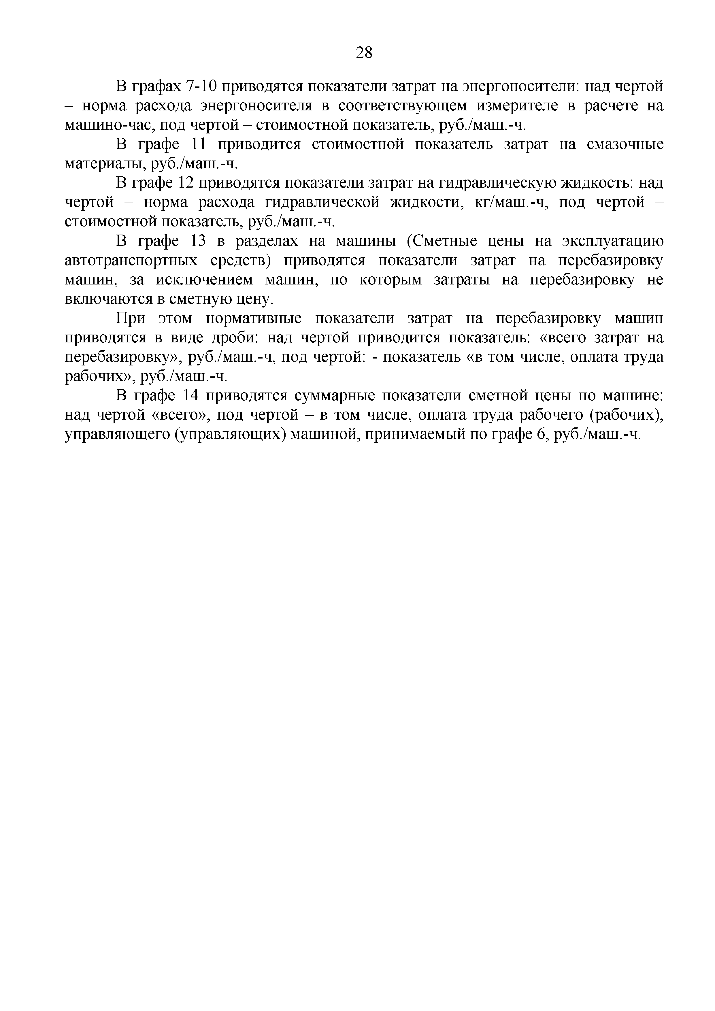 | Оглавление: | 1 Общие положения 2 Порядок расчета постатейных показателей затрат на эксплуатацию машин 2.1. Постатейная структура сметных цен на эксплуатацию машин 2.2 Амортизационные отчисления на полное восстановление 2.3 Затраты на выполнение всех видов ремонта, технического обслуживания и диагностирование машин 2.4 Затраты на замену быстроизнашивающихся частей 2.5 Оплата труда рабочих, управляющих машинами 2.6 Затраты на энергоносители 2.7 Затраты на смазочные материалы 2.8 Затраты на гидравлическую жидкость 2.9 Затраты на перебазировку машин с базы механизации на строительную площадку и обратно со строительной площадки на базу механизации 3 Формирование таблиц сметных цен на эксплуатацию машин и механизмов Приложение 1. Средние показатели годового режима работы машин и механизмов с дифференциацией по температурным зонам Приложение 2. Типовые формы справочных данных к расчету годового режима работы машин и механизмов Приложение 3. Перечень машин, затраты на перебазировку которых, не включаются в состав сметных цен на эксплуатацию машин и механизмов, а учитываются в сметах отдельной строкой Приложение 4. Оформление справочных данных к расчету затрат на перебазировки машин и механизмов Приложение 5. Таблица сметной цены на эксплуатацию |