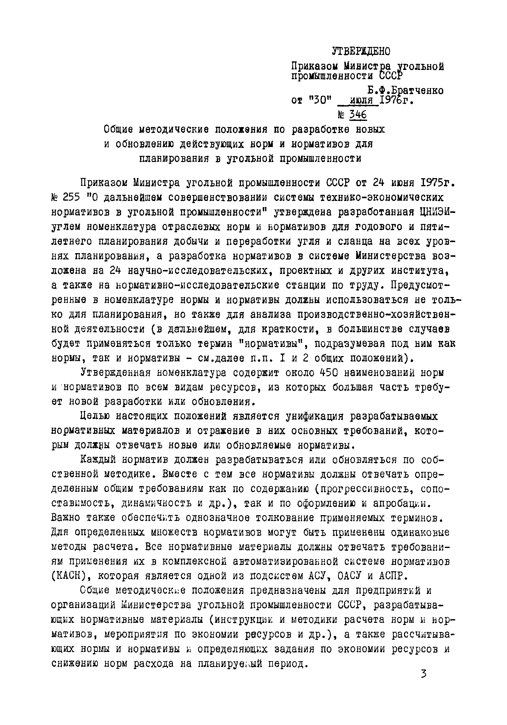 | | Утверждён: | 30.07.1976 Министерство угольной промышленности СССР (USSR Ministry of the Coal Industry 346)