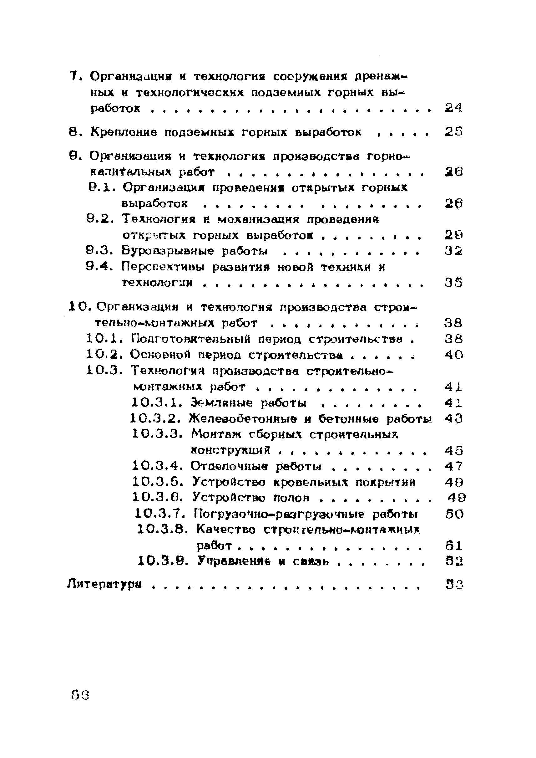 | Оглавление: | 1. Введение 2. Организация и структура управления 3. Строительная база разрезостроительной организации 4. Объемно-планировочные и конструктивные решения 5. Проектирование организации и технологии 6. Организация, технология и механизация проходки вертикальных стволов дренажных шахт 7. Организация и технология сооружения дренажных и технологических подземных горных выработок 8. Крепление подземных горных выработок 9. Организация и технология производства горно-капитальных работ 10. Организация и технология производства строительно-монтажных работ Литература |