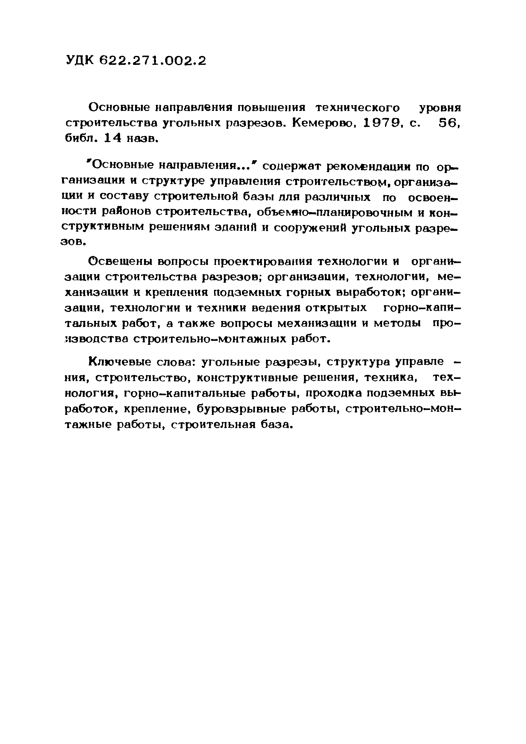 | Название рус.: | Основные направления повышения технического уровня строительства угольных разрезов |