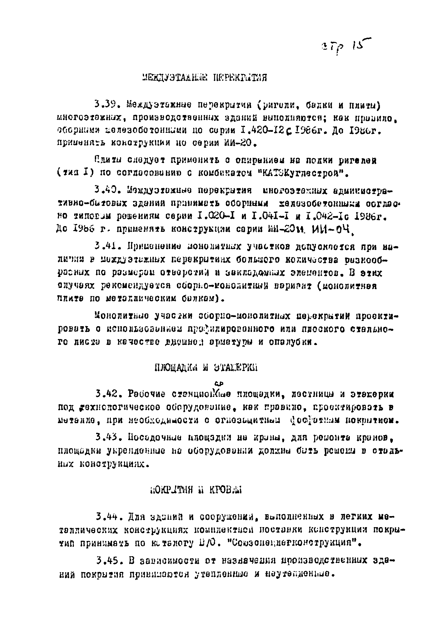 Основные направления по строительному проектированию промышленных зданий, сооружений и административно-бытовых комбинатов объектов Канско-Ачинского топливно-энергетического комплекса| Статус: | справочные материалы, мп, тпр | | Название рус.: | Основные направления по строительному проектированию промышленных зданий, сооружений и административно-бытовых комбинатов объектов Канско-Ачинского топливно-энергетического комплекса | | Дата добавления в базу: | 01.01.2021 | | Дата актуализации: | 01.01.2021 | | Область применения: | Основные направления уточняют нормативные положения, исходя из конкретных условий Канско-Ачинского района. "Основные направления" обязательны для проектных организаций, выполняющих общестроительную часть проектов промышленных зданий и сооружений | | Оглавление: | 1. Вводная часть 2. Объемно-планировочные решения 3. Строительные конструкции зданий и сооружений | | Утверждён: | 23.02.1984 Министерство угольной промышленности СССР (USSR Ministry of the Coal Industry )