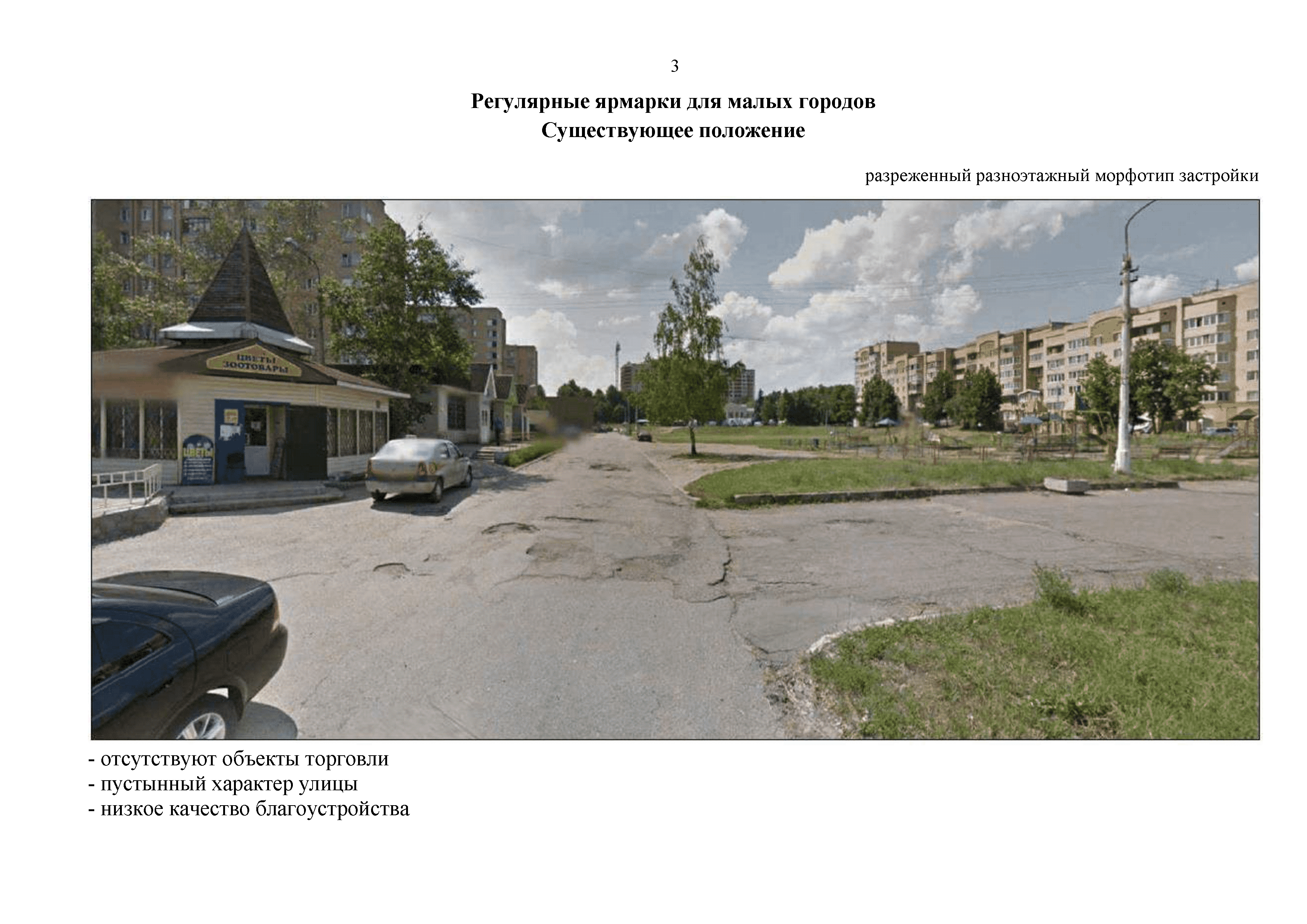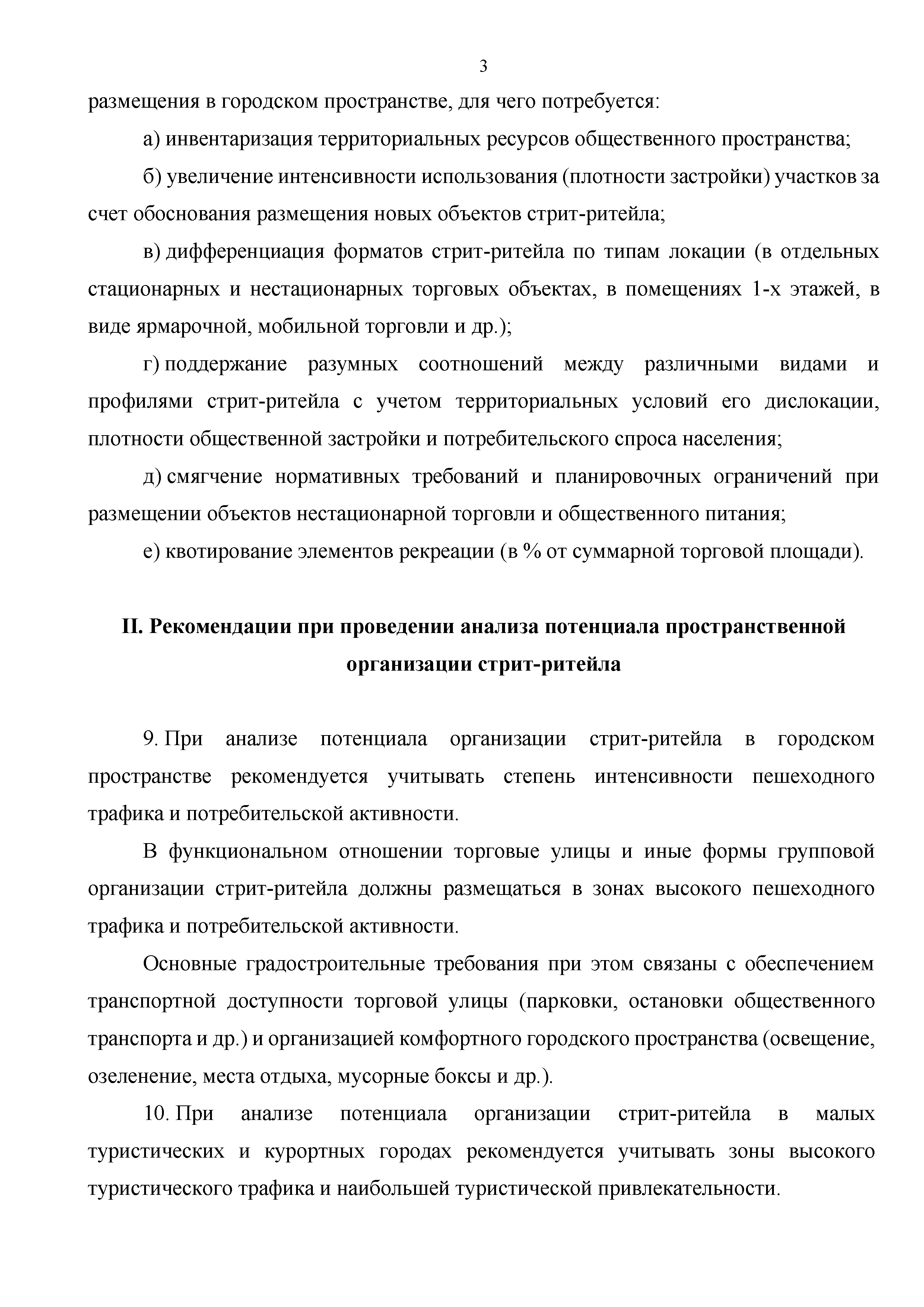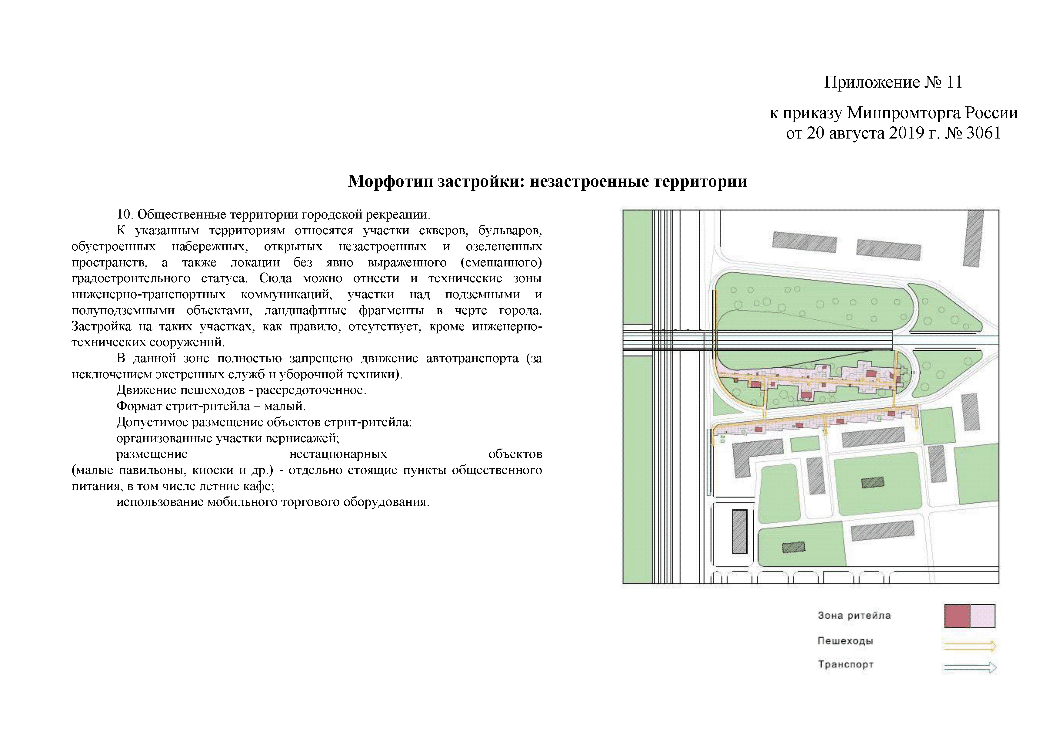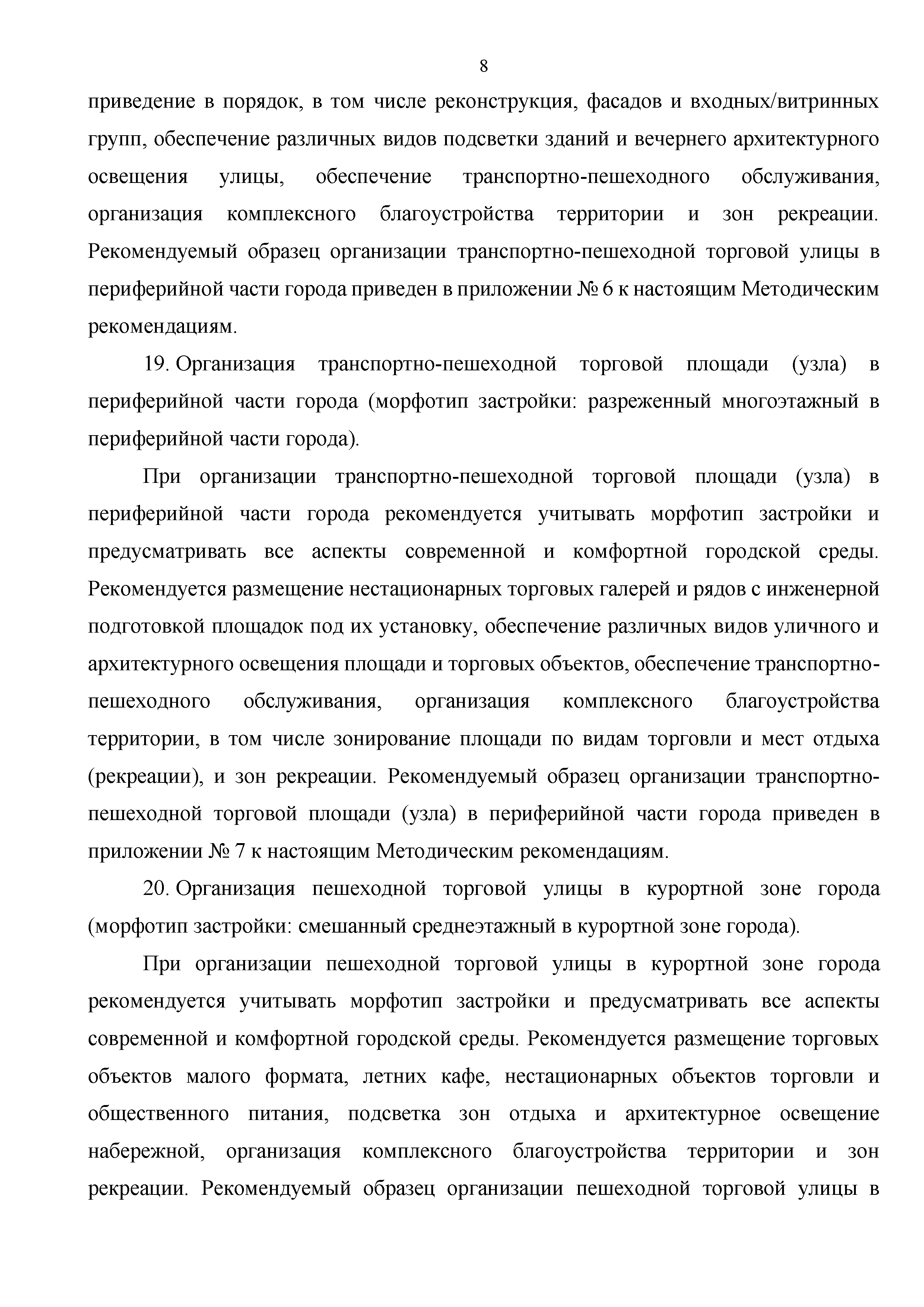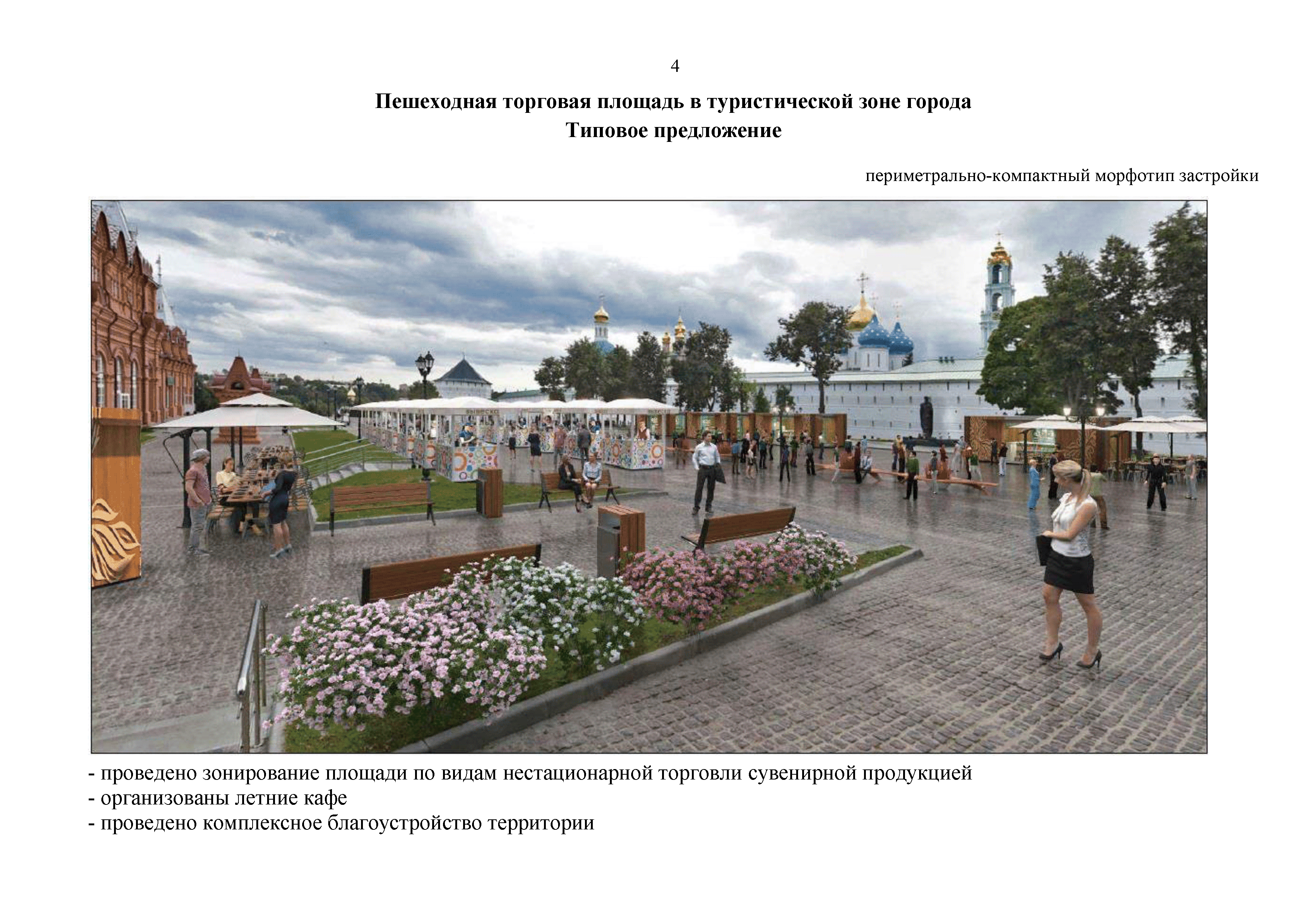 | Оглавление: | I. Общие положения II. Рекомендации при проведении анализа потенциала пространственной организации стрит-ритейла III. Рекомендуемые модели организации стрит-ритейла на общественных пространствах (торговых улицах) Приложение № 1. Группы городов по численности населения. Размещение объектов ритейла в городской застройке Приложение № 2. Рекомендуемый образец организации пешеходной торговой улицы в исторической части города при периметрально-компактном морфотипе застройки Приложение № 3. Рекомендуемый образец организации транспортно-пешеходной торговой улицы в исторической части города при периметрально-компактном морфотипе застройки Приложение № 4. Рекомендуемый образец организации транспортно-пешеходной торговой улицы в срединной части города при разреженном среднеэтажном морфотипе застройки Приложение № 5. Рекомендуемый образец организации транспортно-пешеходной торговой площади в срединной части города при разреженном среднеэтажном морфотипе застройки Приложение № 6. Рекомендуемый образец организации транспортно-пешеходной торговой улицы в периферийной части города при разреженном многоэтажном морфотипе застройки Приложение № 7. Рекомендуемый образец организации транспортно-пешеходной торговой площади в периферийный части города при разреженном многоэтажном морфотипе застройки Приложение № 8. Рекомендуемый образец организации транспортно-пешеходной торговой улицы в курортной зоне города при смешанном среднеэтажном морфотипе застройки Приложение № 9. Рекомендуемый образец организации пешеходной торговой площади в туристической зоне города при периметрально-компактном морфотипе застройки Приложение № 10. Рекомендуемый образец организации регулярной ярмарки для малых городов при разреженном разноэтажном морфотипе застройки Приложение № 11. Рекомендуемый образец организации общественных территорий городской рекреации на незастроенных территориях |