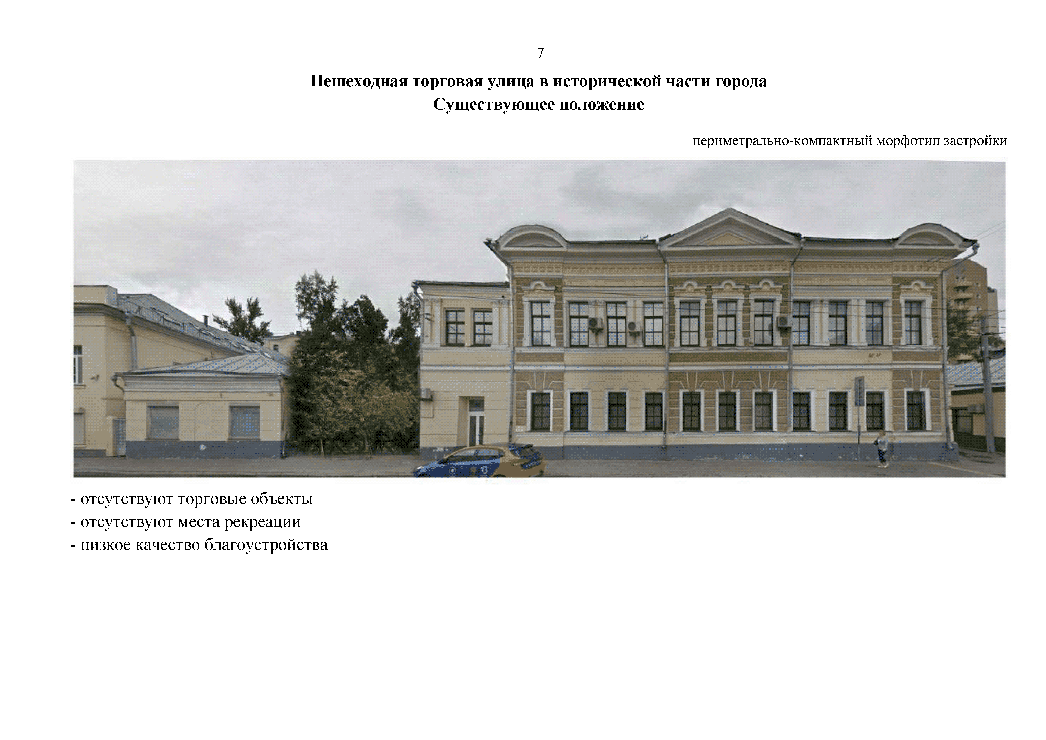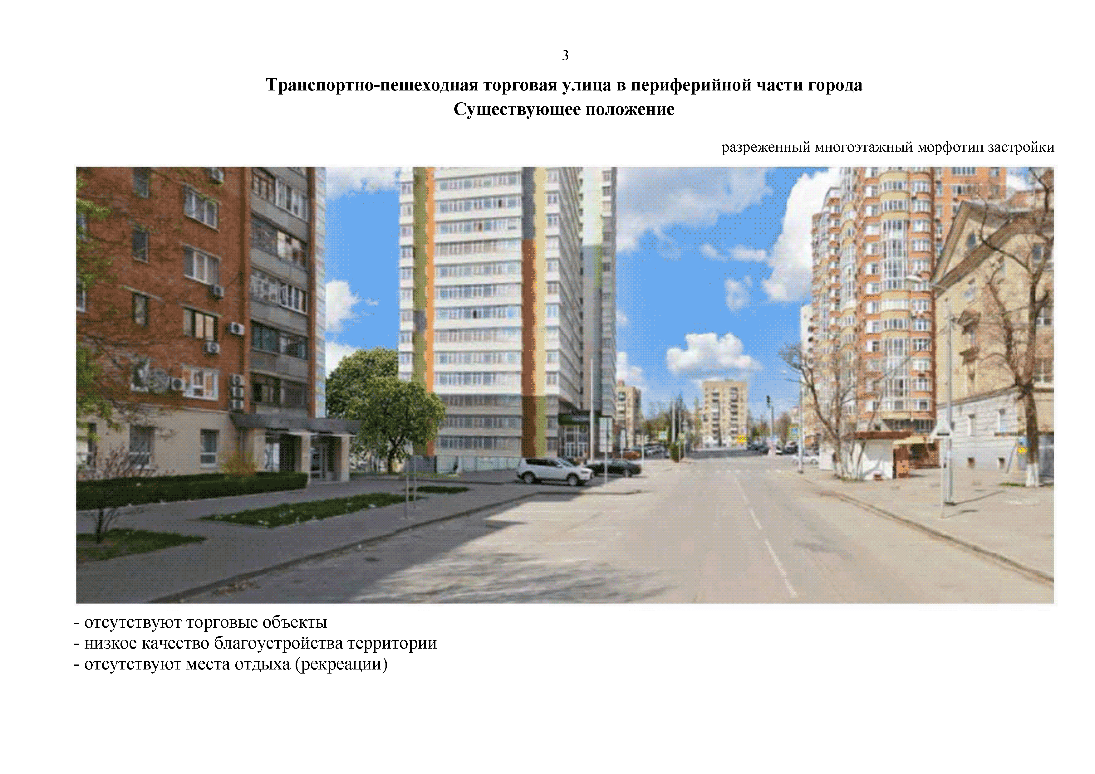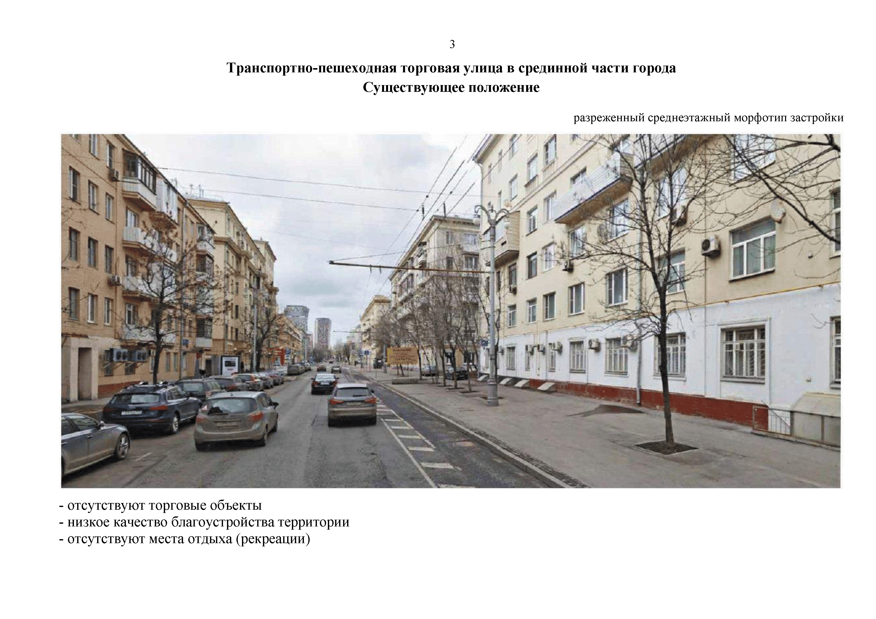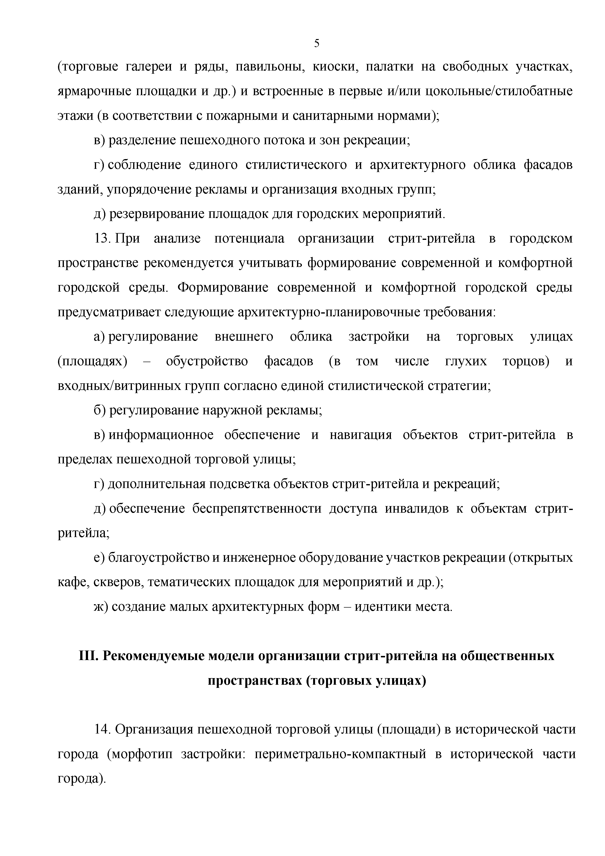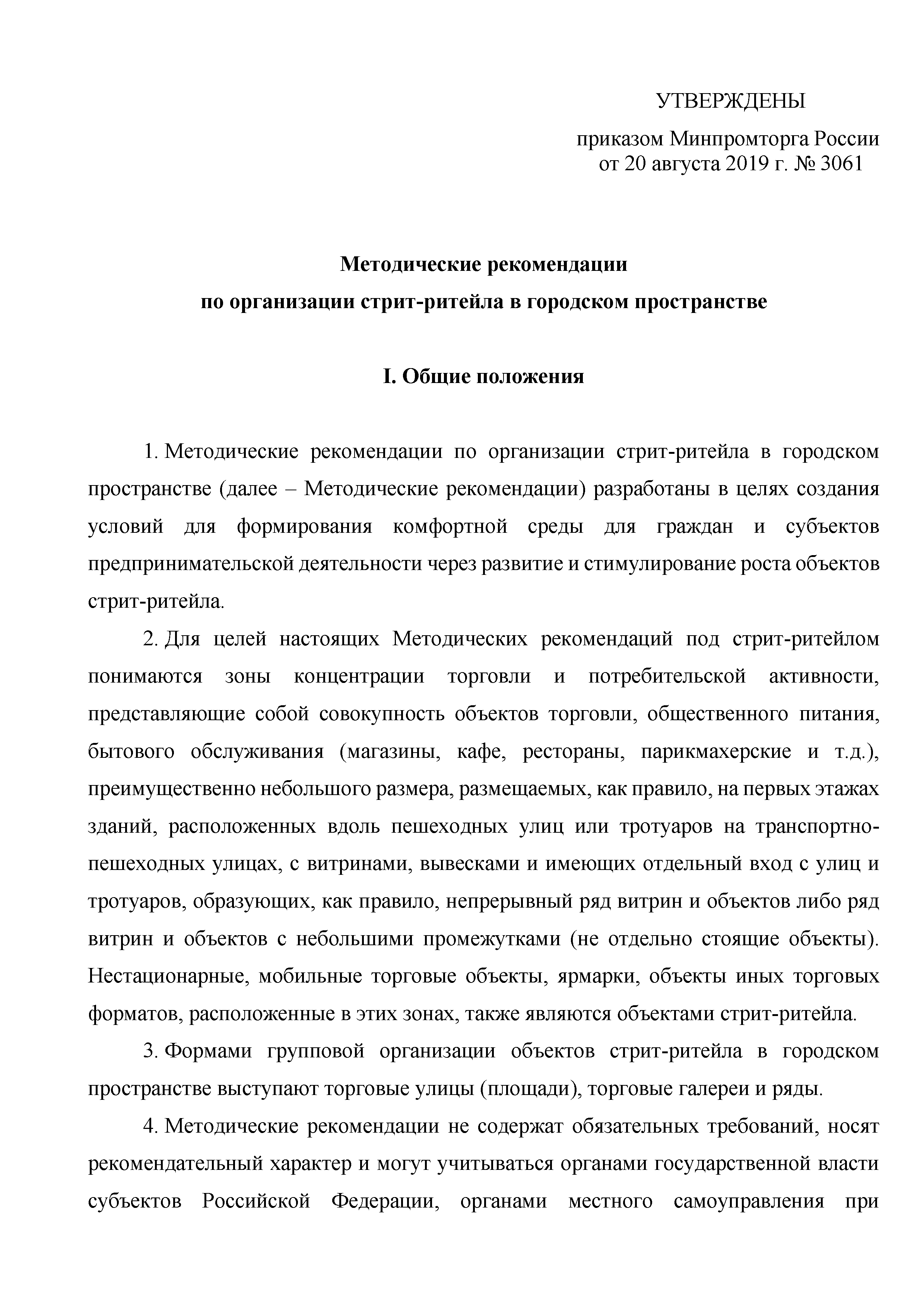 | Оглавление: | I. Общие положения II. Рекомендации при проведении анализа потенциала пространственной организации стрит-ритейла III. Рекомендуемые модели организации стрит-ритейла на общественных пространствах (торговых улицах) Приложение № 1. Группы городов по численности населения. Размещение объектов ритейла в городской застройке Приложение № 2. Рекомендуемый образец организации пешеходной торговой улицы в исторической части города при периметрально-компактном морфотипе застройки Приложение № 3. Рекомендуемый образец организации транспортно-пешеходной торговой улицы в исторической части города при периметрально-компактном морфотипе застройки Приложение № 4. Рекомендуемый образец организации транспортно-пешеходной торговой улицы в срединной части города при разреженном среднеэтажном морфотипе застройки Приложение № 5. Рекомендуемый образец организации транспортно-пешеходной торговой площади в срединной части города при разреженном среднеэтажном морфотипе застройки Приложение № 6. Рекомендуемый образец организации транспортно-пешеходной торговой улицы в периферийной части города при разреженном многоэтажном морфотипе застройки Приложение № 7. Рекомендуемый образец организации транспортно-пешеходной торговой площади в периферийный части города при разреженном многоэтажном морфотипе застройки Приложение № 8. Рекомендуемый образец организации транспортно-пешеходной торговой улицы в курортной зоне города при смешанном среднеэтажном морфотипе застройки Приложение № 9. Рекомендуемый образец организации пешеходной торговой площади в туристической зоне города при периметрально-компактном морфотипе застройки Приложение № 10. Рекомендуемый образец организации регулярной ярмарки для малых городов при разреженном разноэтажном морфотипе застройки Приложение № 11. Рекомендуемый образец организации общественных территорий городской рекреации на незастроенных территориях |