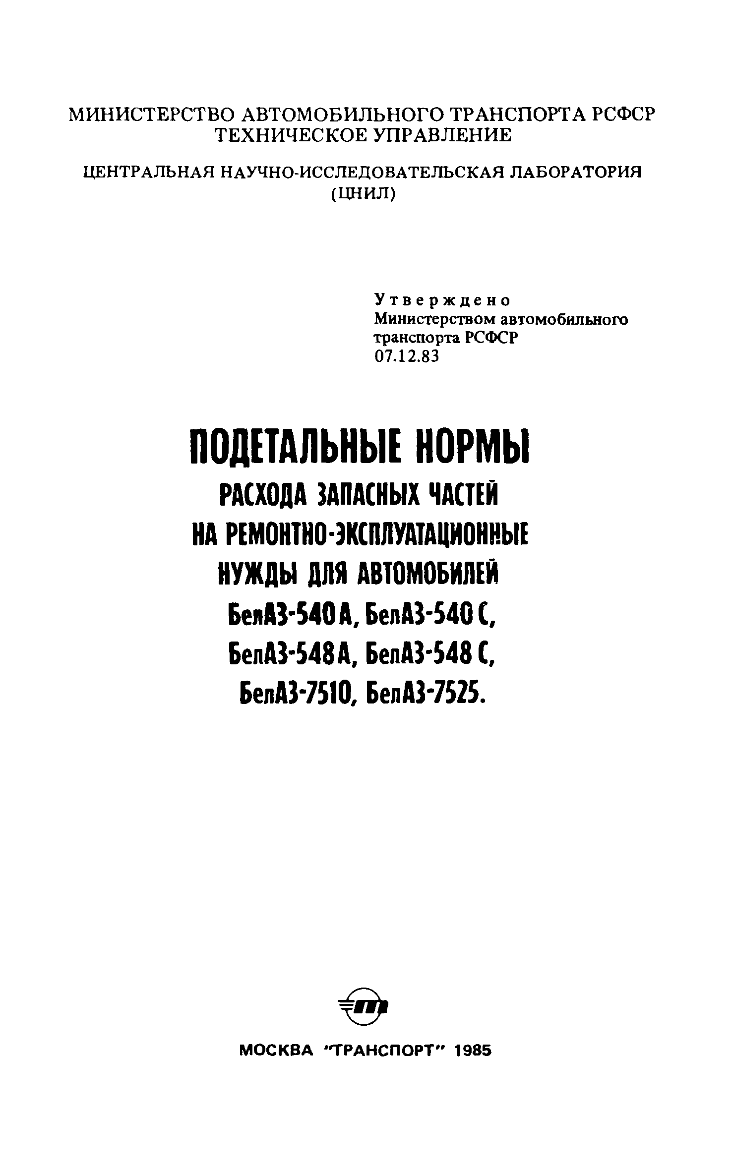 | | Утверждён: | 07.12.1983 Министерство автомобильного транспорта РСФСР