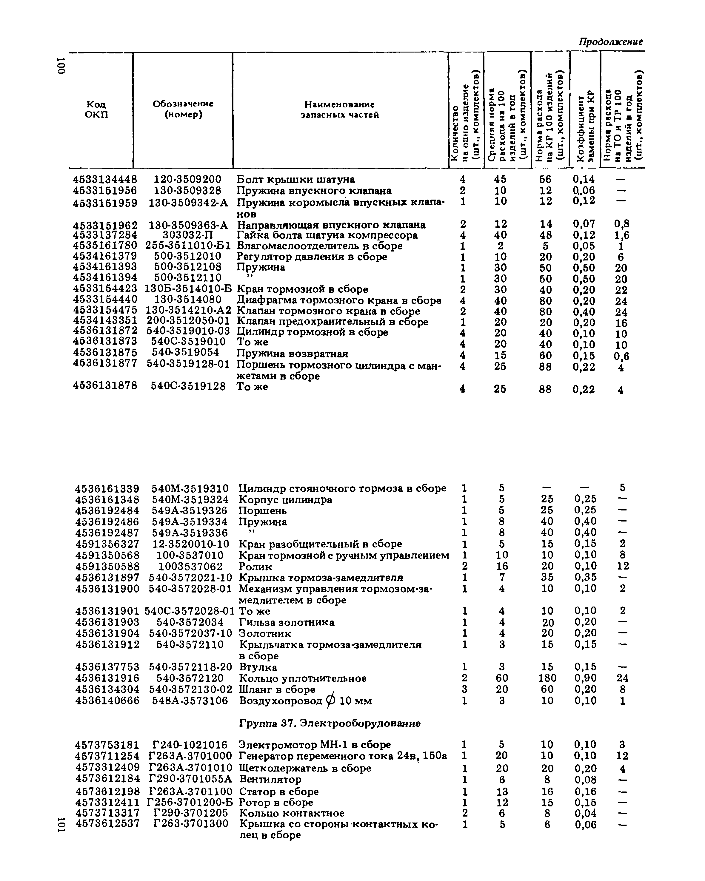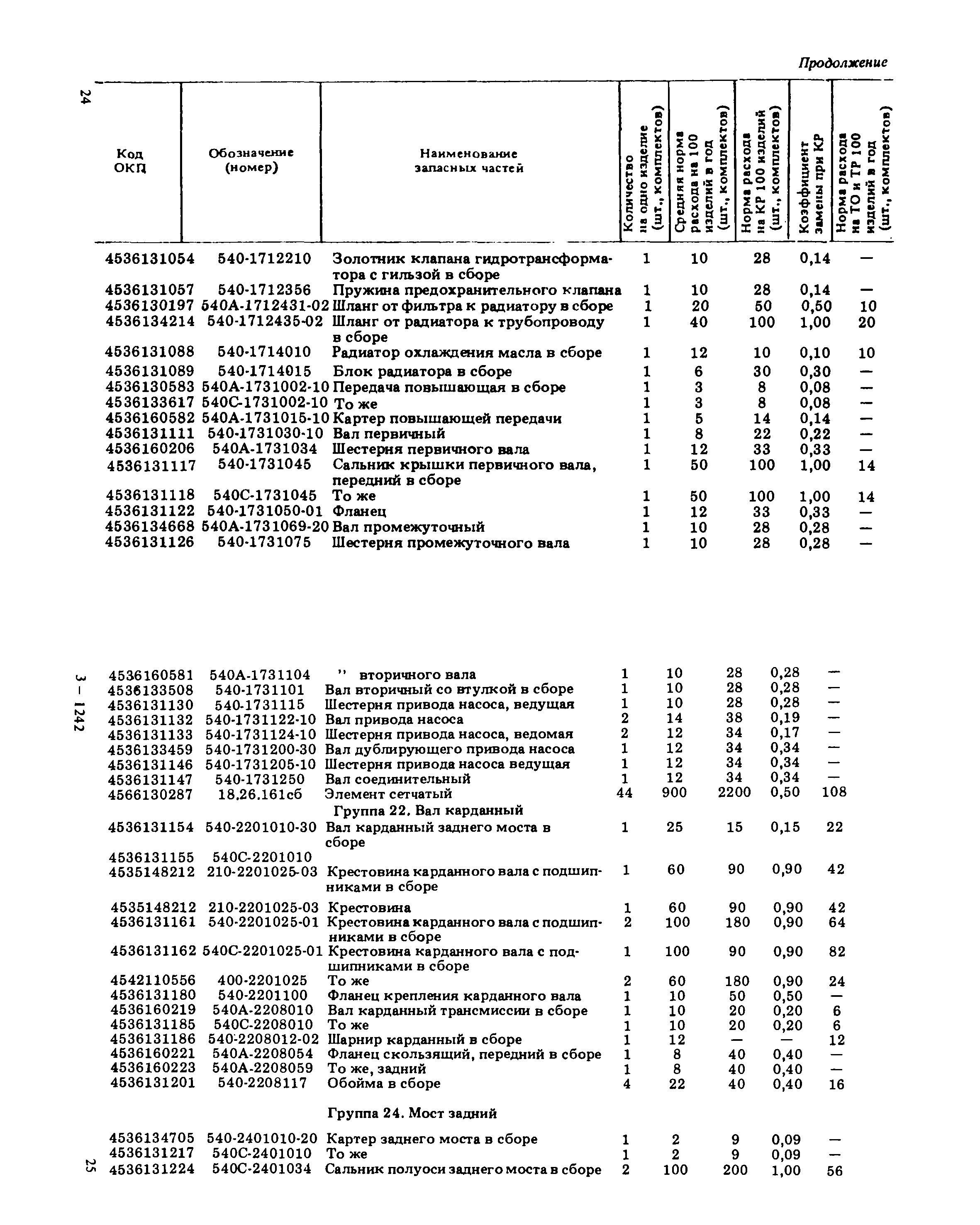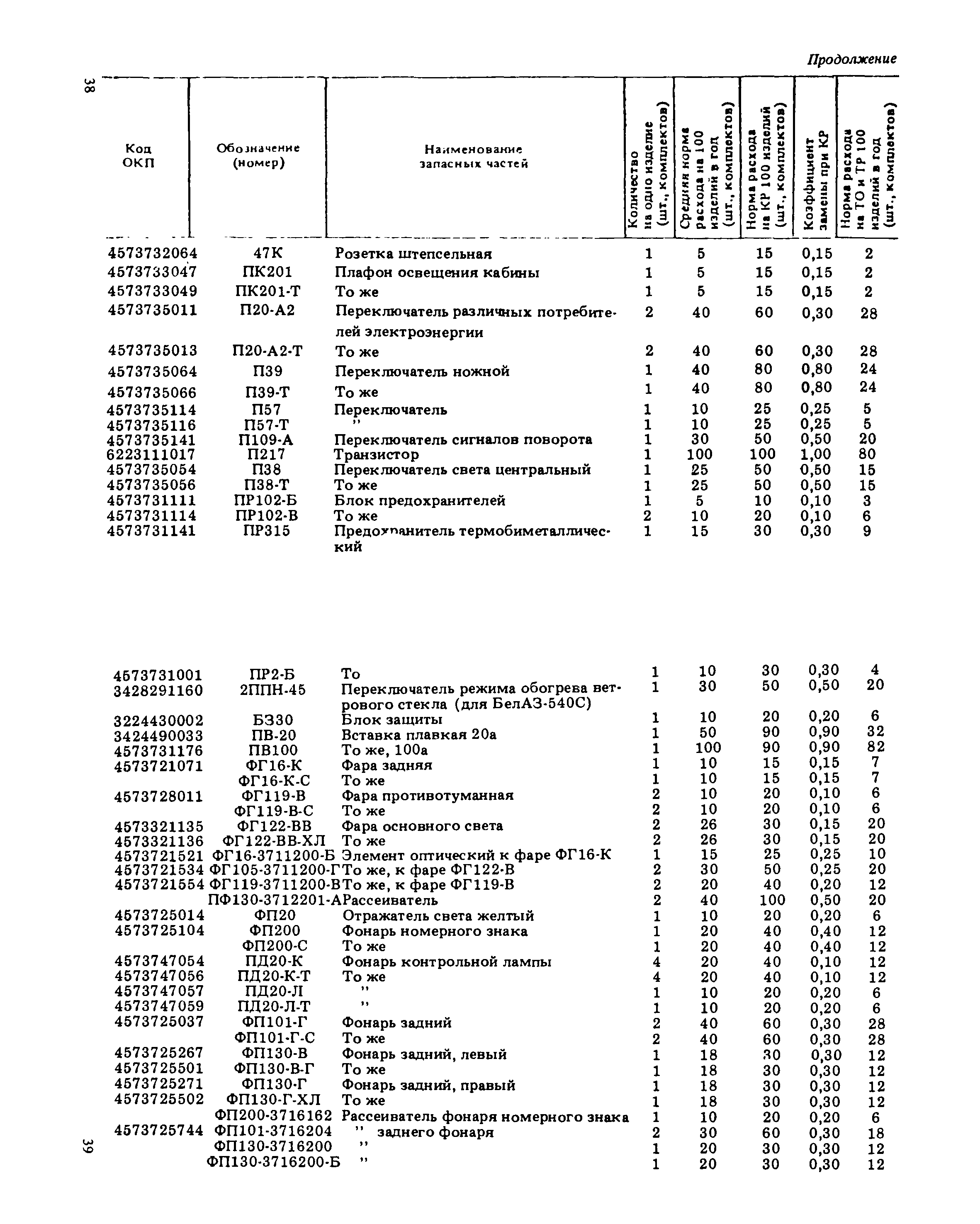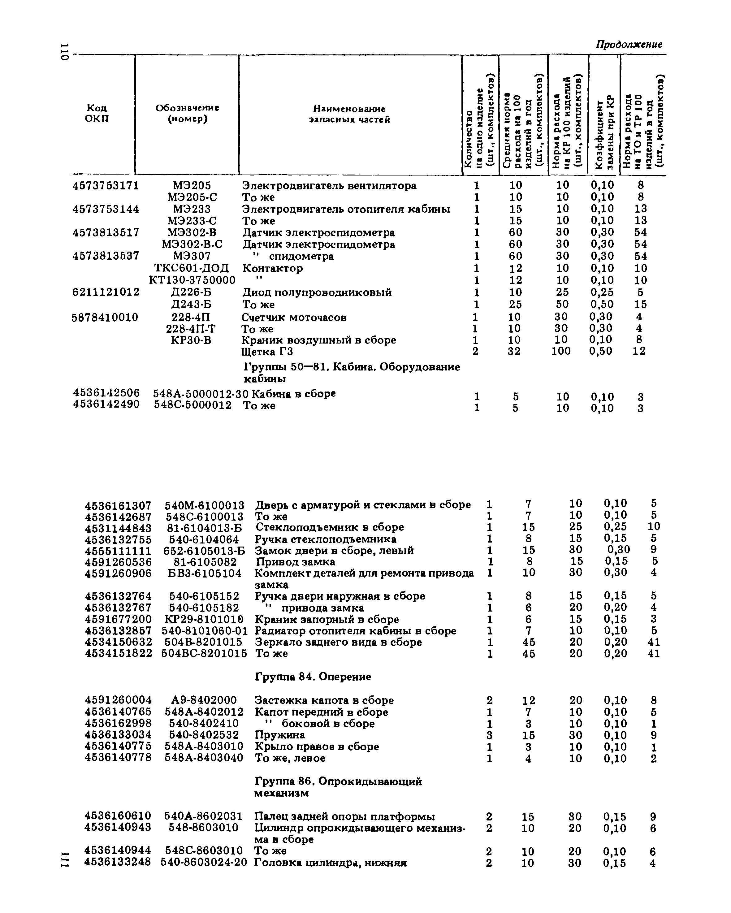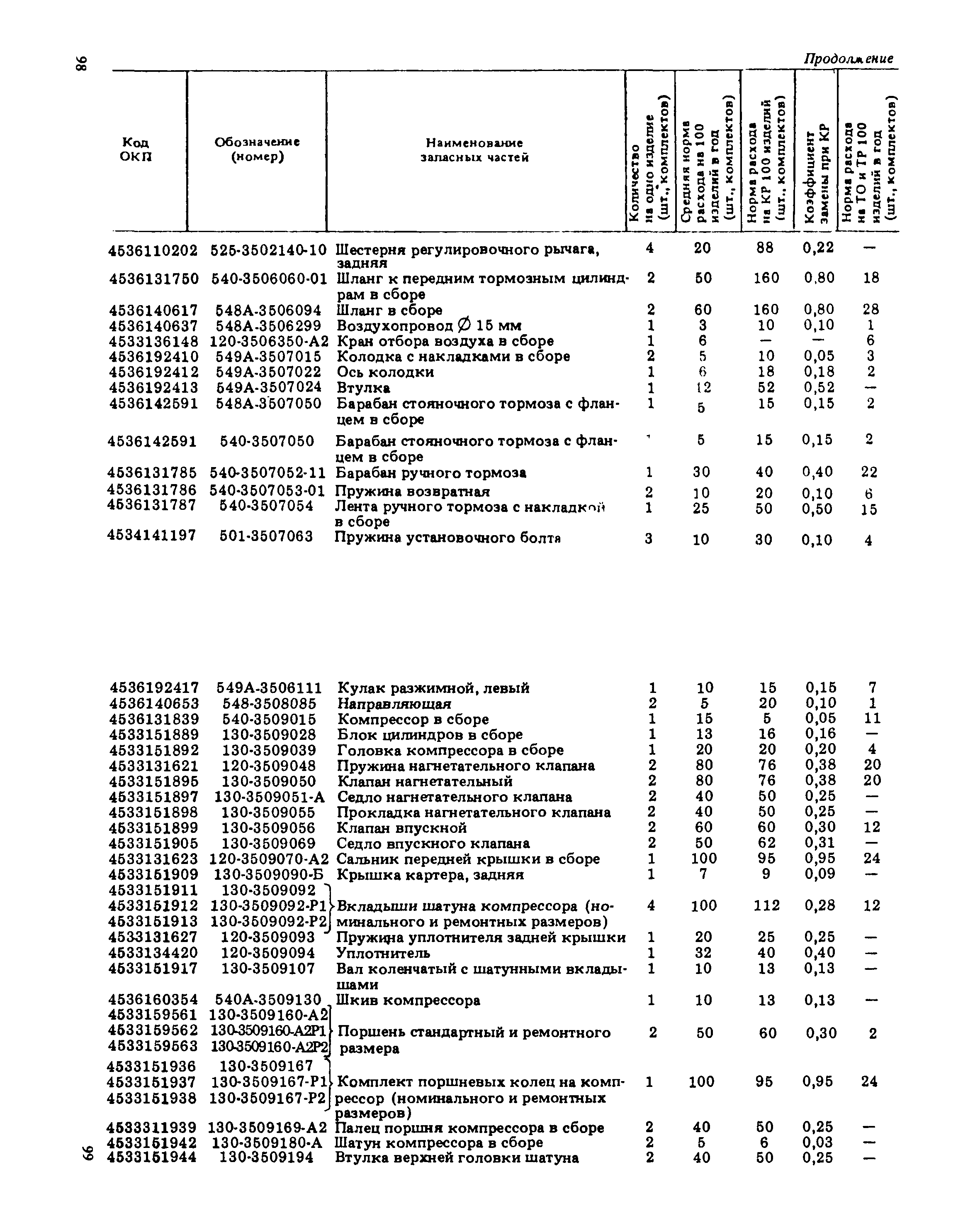 Подетальные нормы расхода запасных частей на ремонтно-эксплуатационные нужды автомобилей БелАЗ-540 А, БелАЗ-540 С, БелАЗ-548 А, БелАЗ-548 С, БелАЗ-7510, БелАЗ-7525| Статус: | справочные материалы, мп, тпр | | Название рус.: | Подетальные нормы расхода запасных частей на ремонтно-эксплуатационные нужды автомобилей БелАЗ-540 А, БелАЗ-540 С, БелАЗ-548 А, БелАЗ-548 С, БелАЗ-7510, БелАЗ-7525 | | Дата добавления в базу: | 01.01.2021 | | Дата актуализации: | 01.01.2021 | | Область применения: | Нормы предназначены для инженерно-технических работников авторемонтных, автотранспортных и снабженческих организаций Минавтотранса РСФСР. | | Оглавление: | Нормы расхода запасных частей на ремонтно-эксплуатационные нужды для автомобилей БелАЗ Группа 10. Двигатель Группа 11. Система питания Группа 12. Система выпуска отработавших газов Группа 13. Система охлаждения Группа 17. Гидромеханическая передача Группа 22. Вал карданный Группа 24. Мост задний Группа 28. Рама Группа 29. Подвеска Группа 30. Ось передняя Группа 31. Колеса и ступицы Группа 34. Рулевое управление Группа 35. Тормоза Группа 37. Электрооборудование Группа 38. Приборы Группа 50 - 61. Кабина. Оборудование кабины Группа 81. Отопление и вентиляция кабины. . Группа 50 - 81. Кабина. Оборудование кабины Группа 82 - 84. Оперение Группа 84. Оперение Группа 86. Опрокидывающий механизм | | Разработан: | НИИАТ НАМИ ЦНИЛ