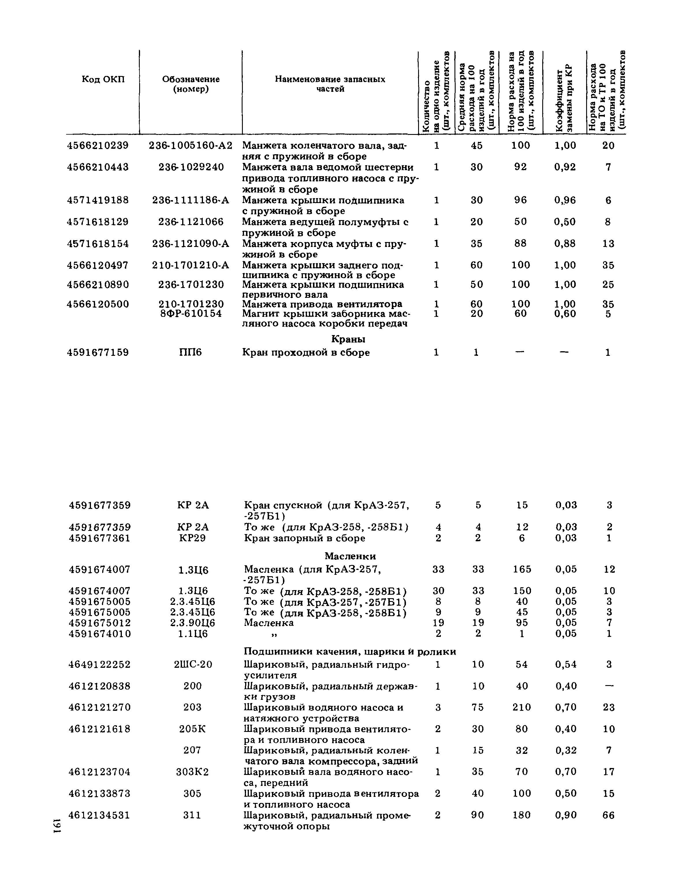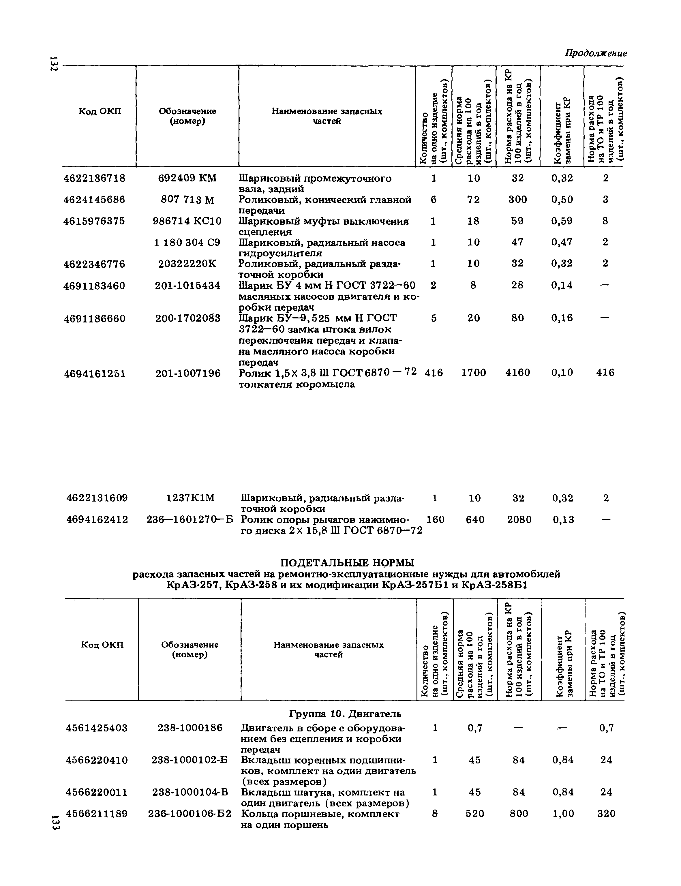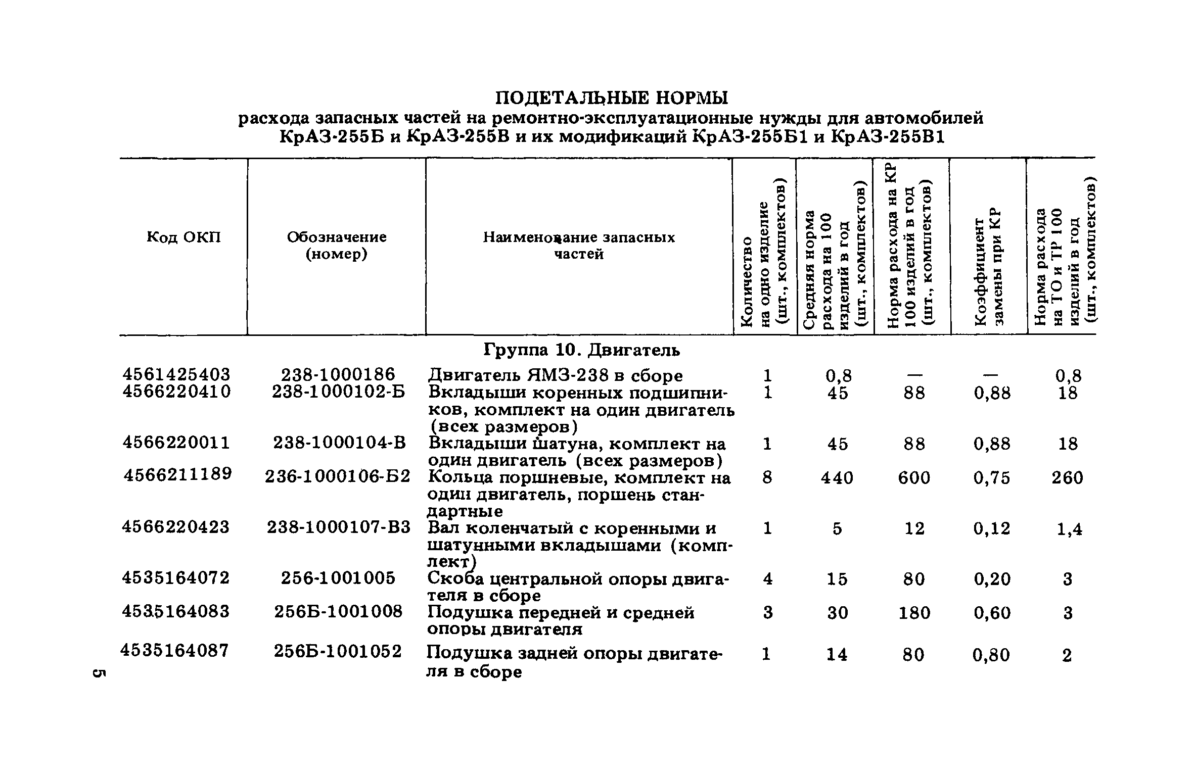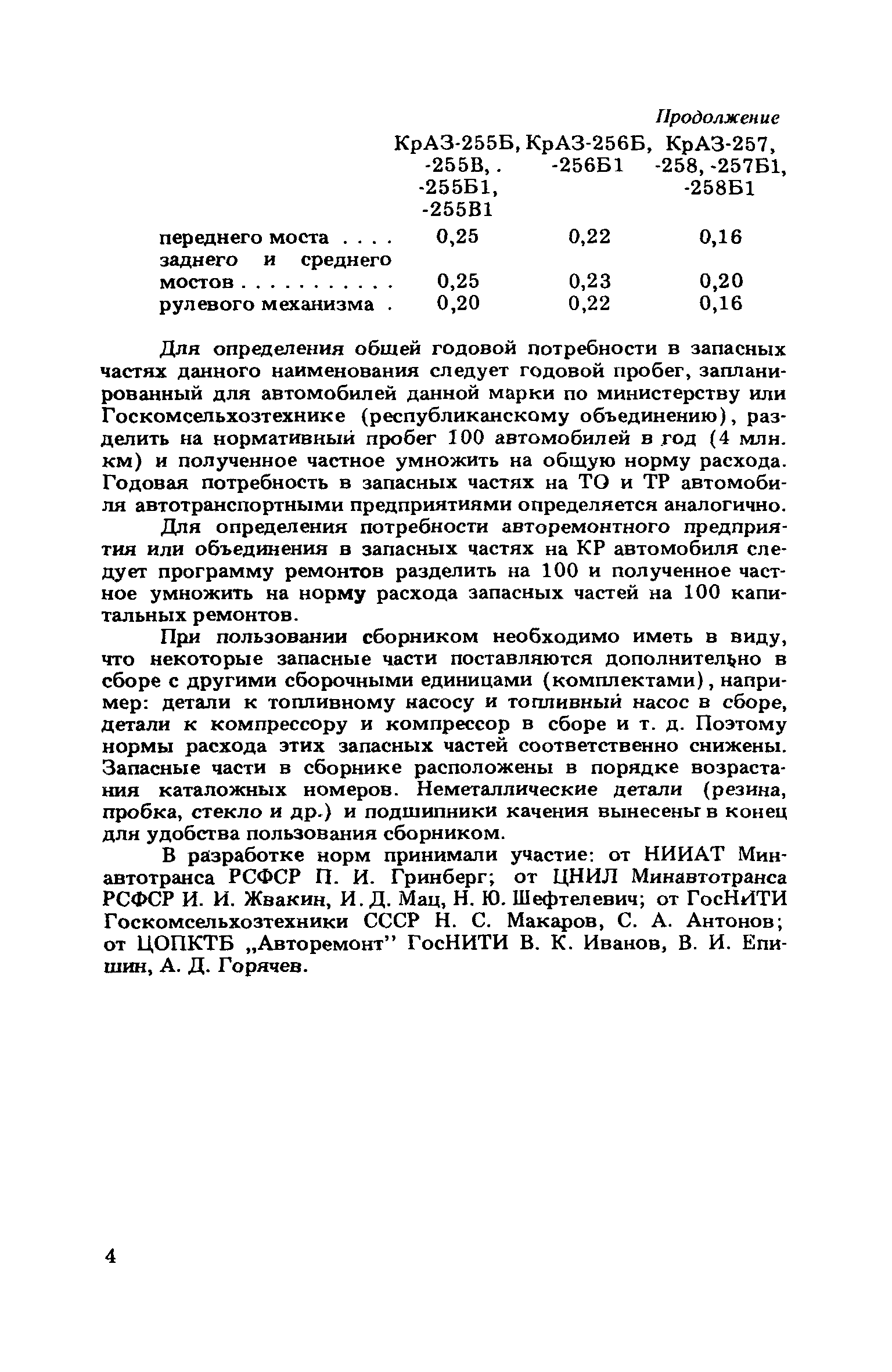 нормы расхода запасных частей на ремонтно-эксплуатационные нужды для автомобилей КрАЭ-257,