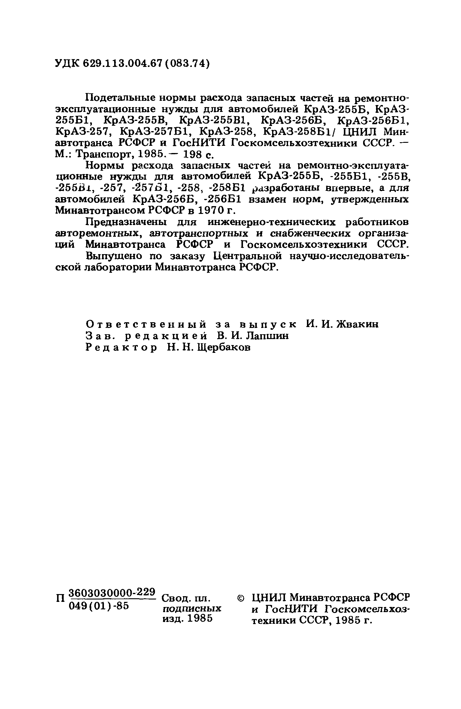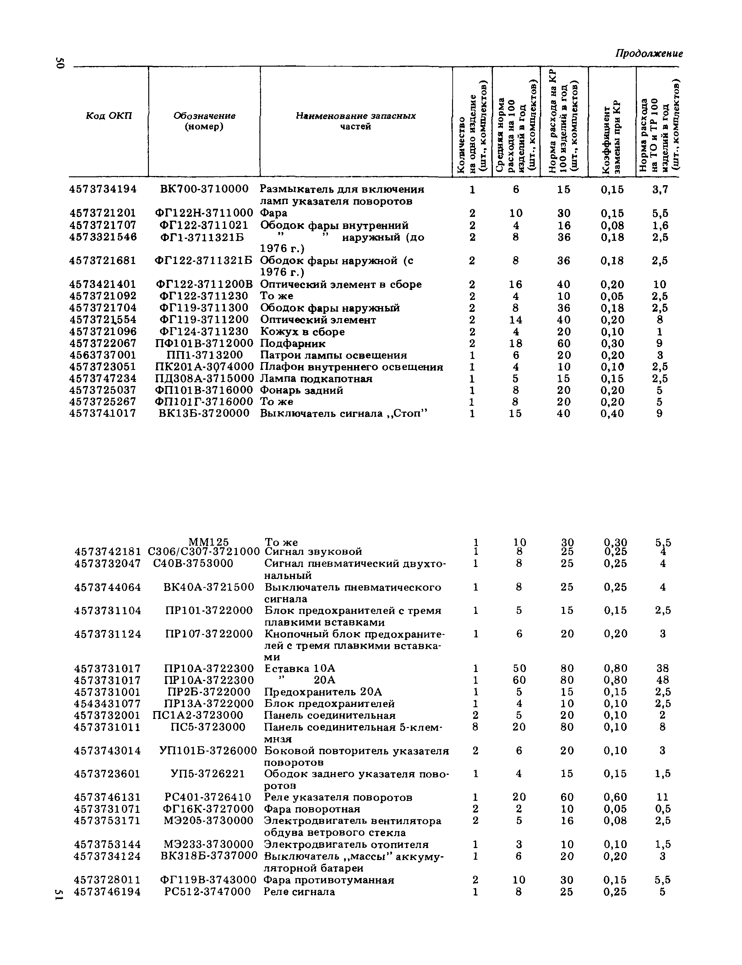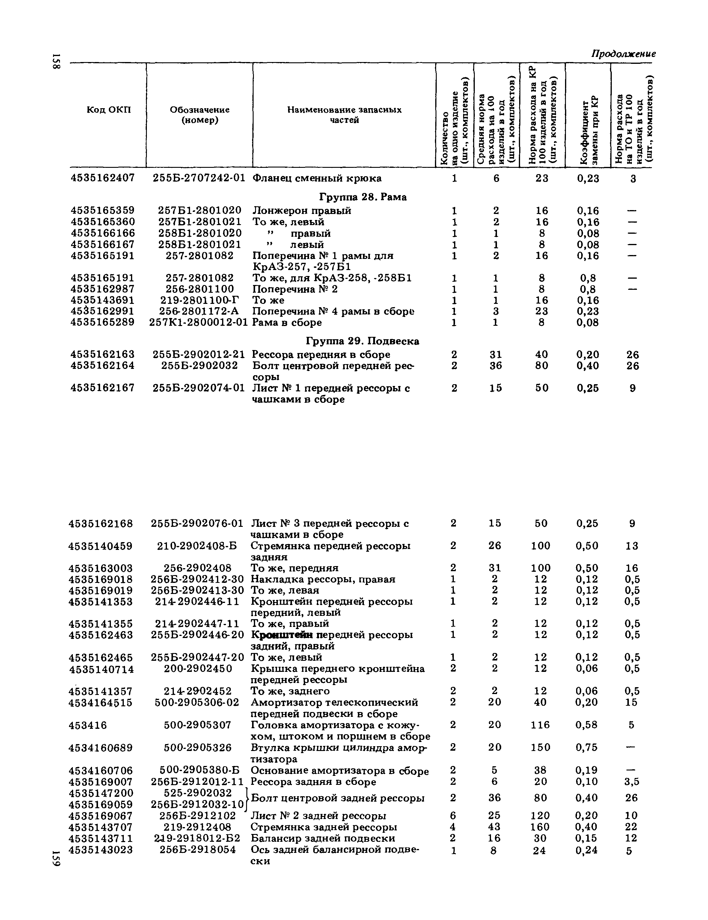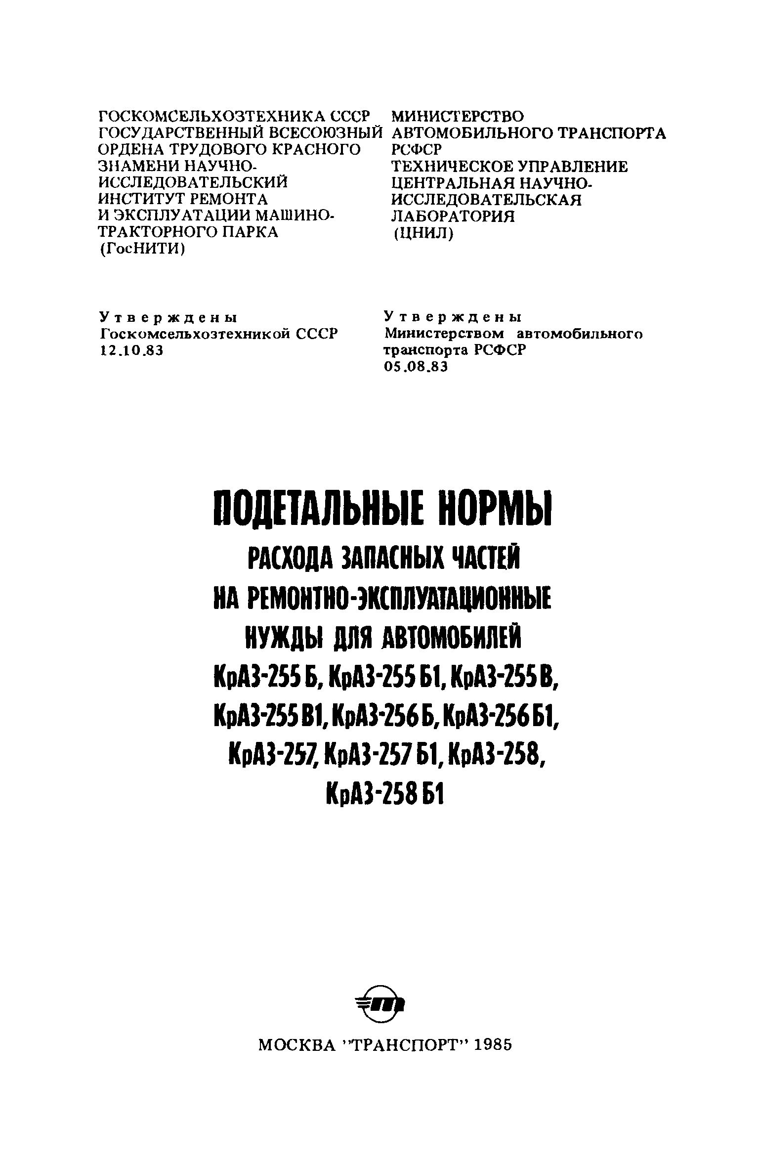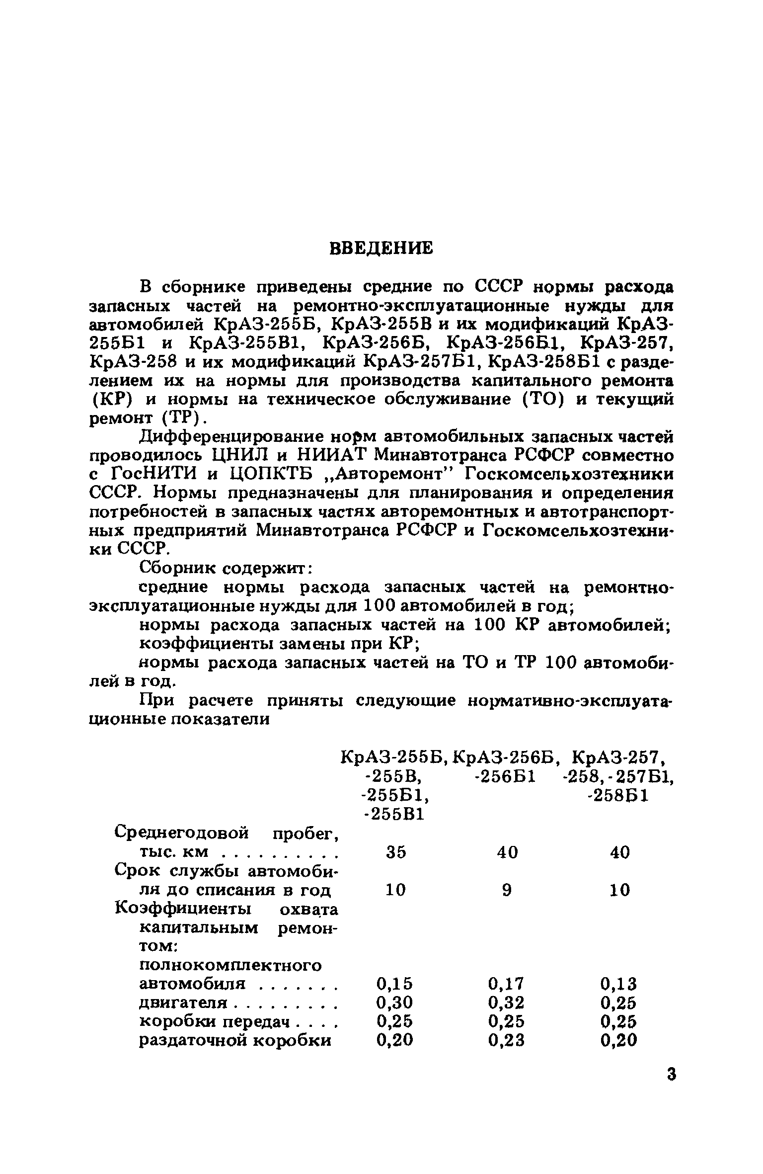 нормы расхода запасных частей на ремонтно-эксплуатационные нужды для автомобилей КрАЭ-257,