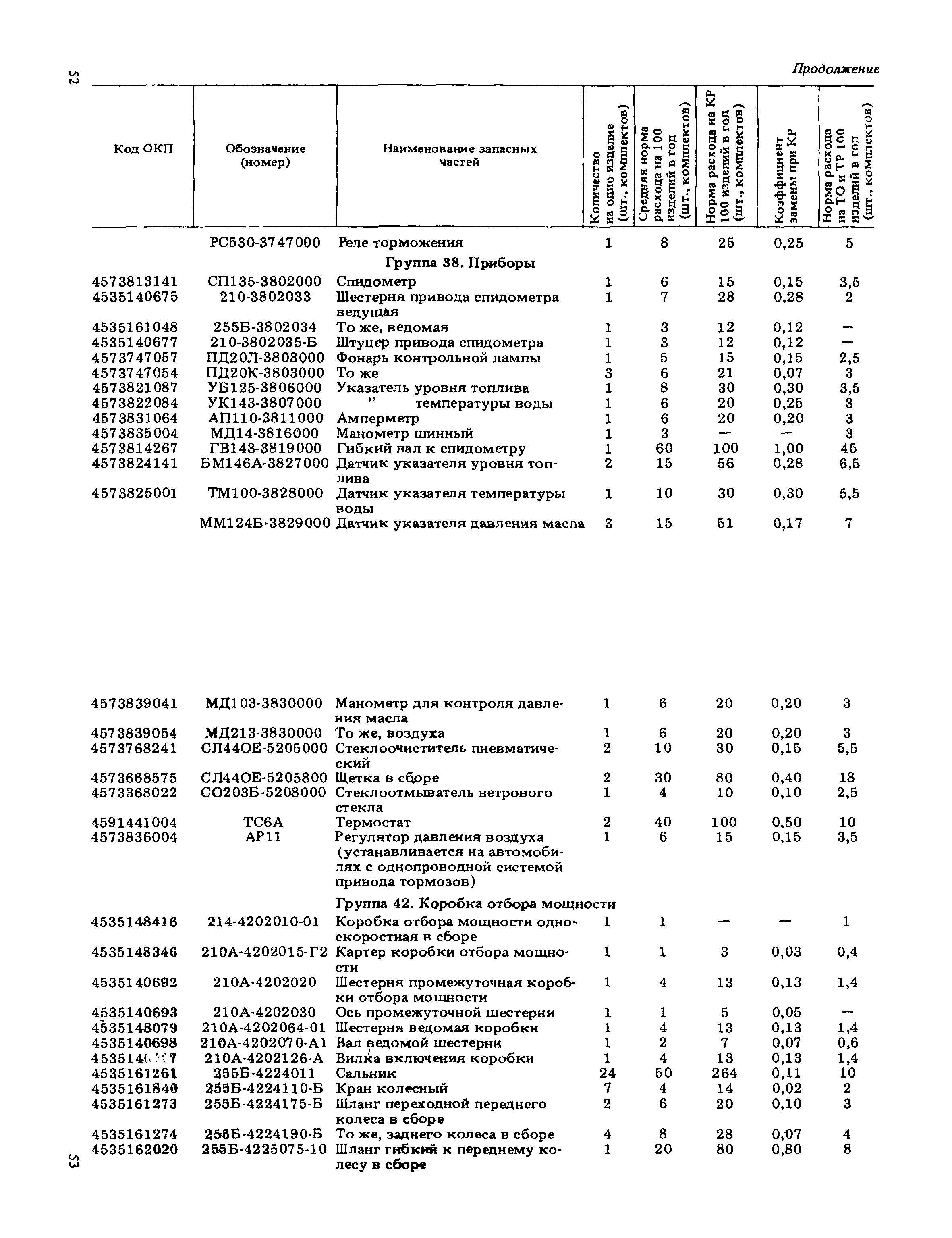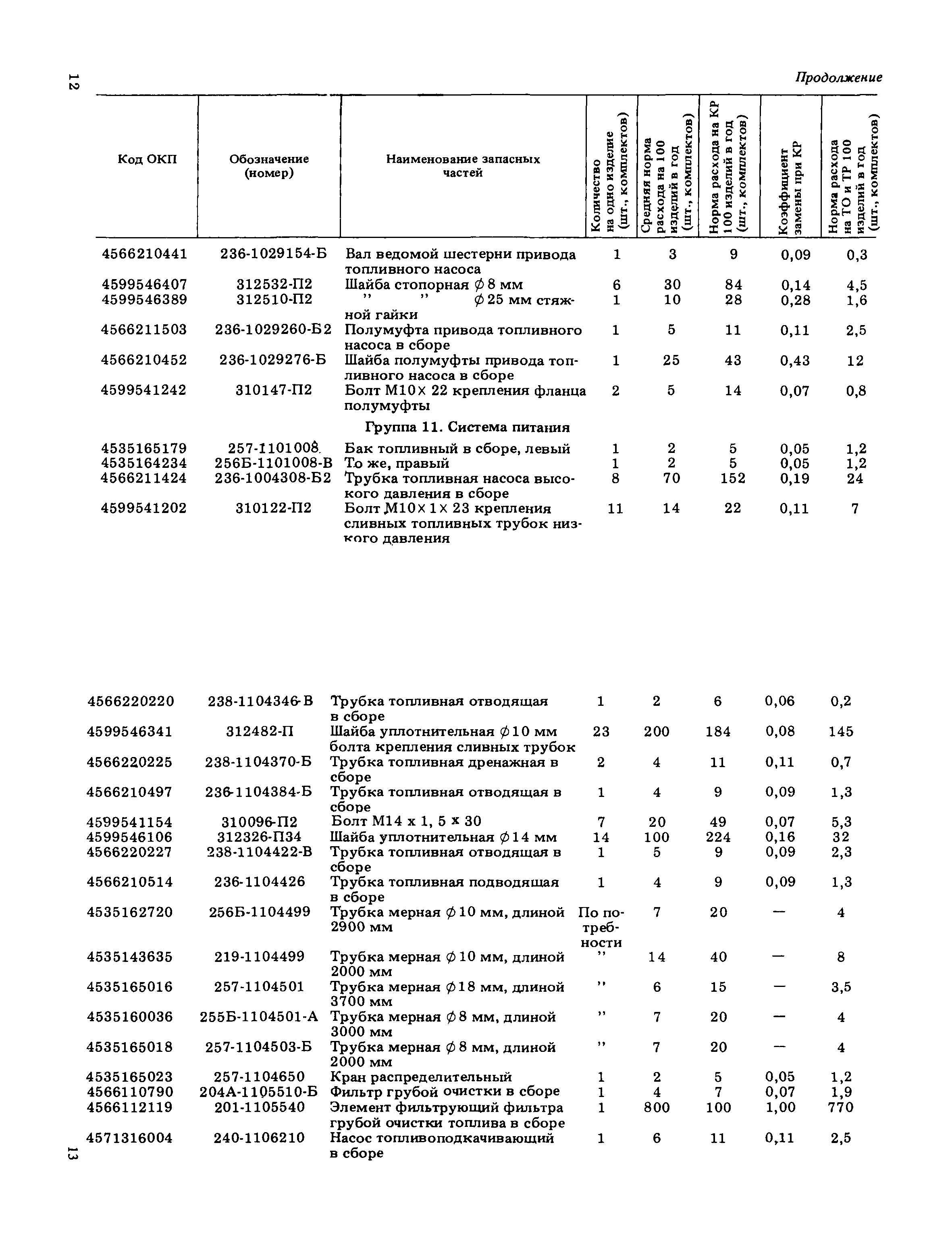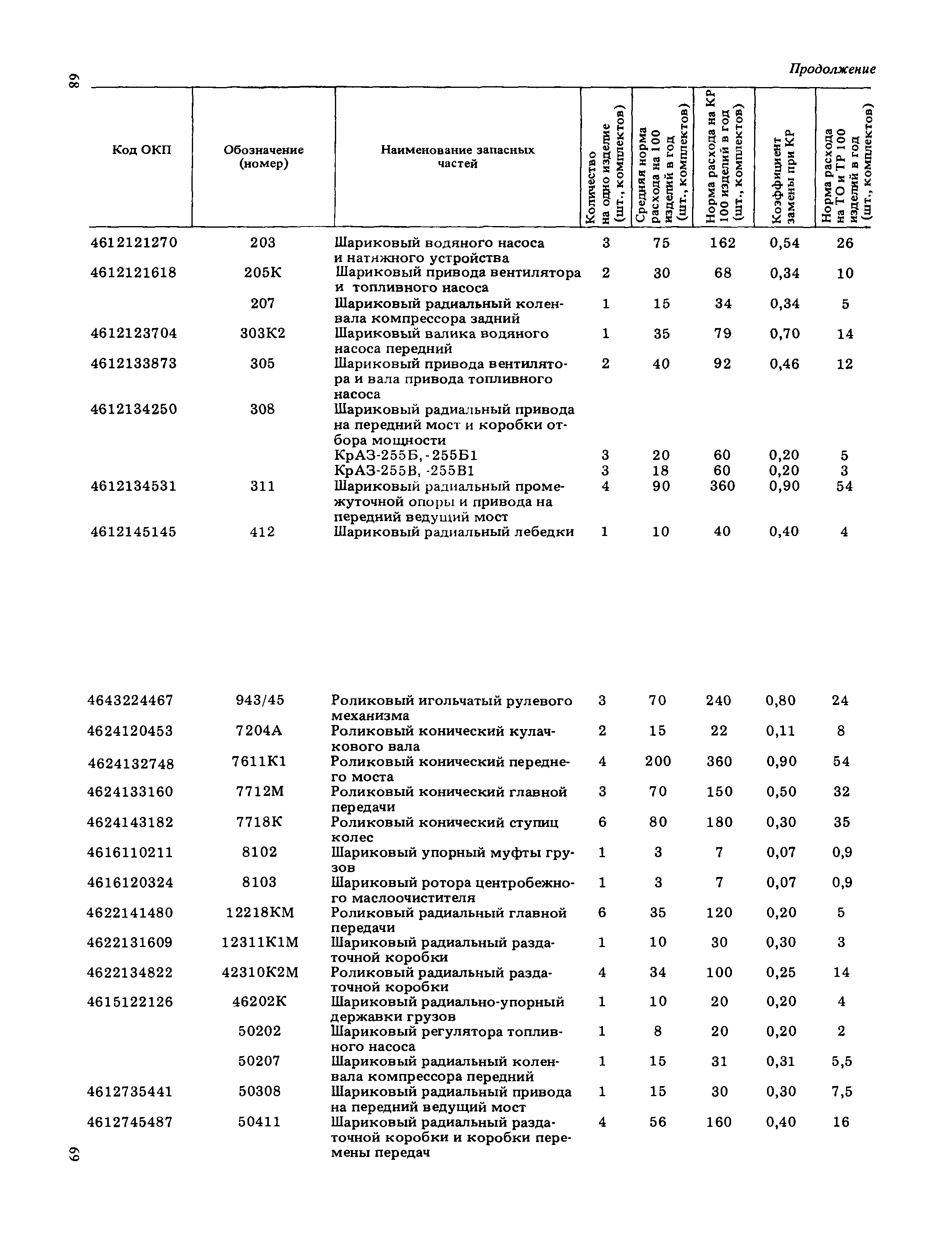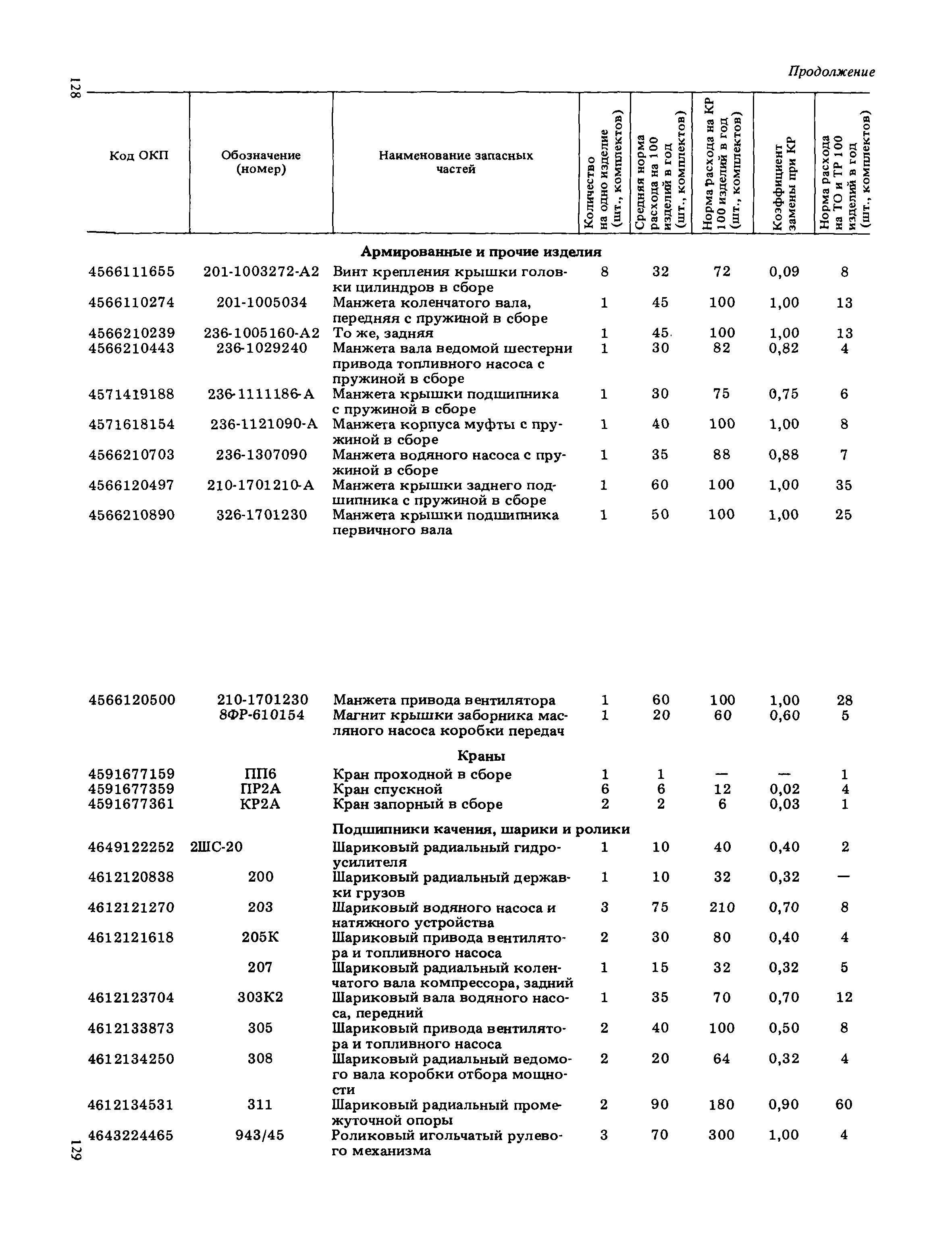 нормы расхода запасных частей на ремонтно-эксплуатационные нужды для автомобилей КрАЭ-257,