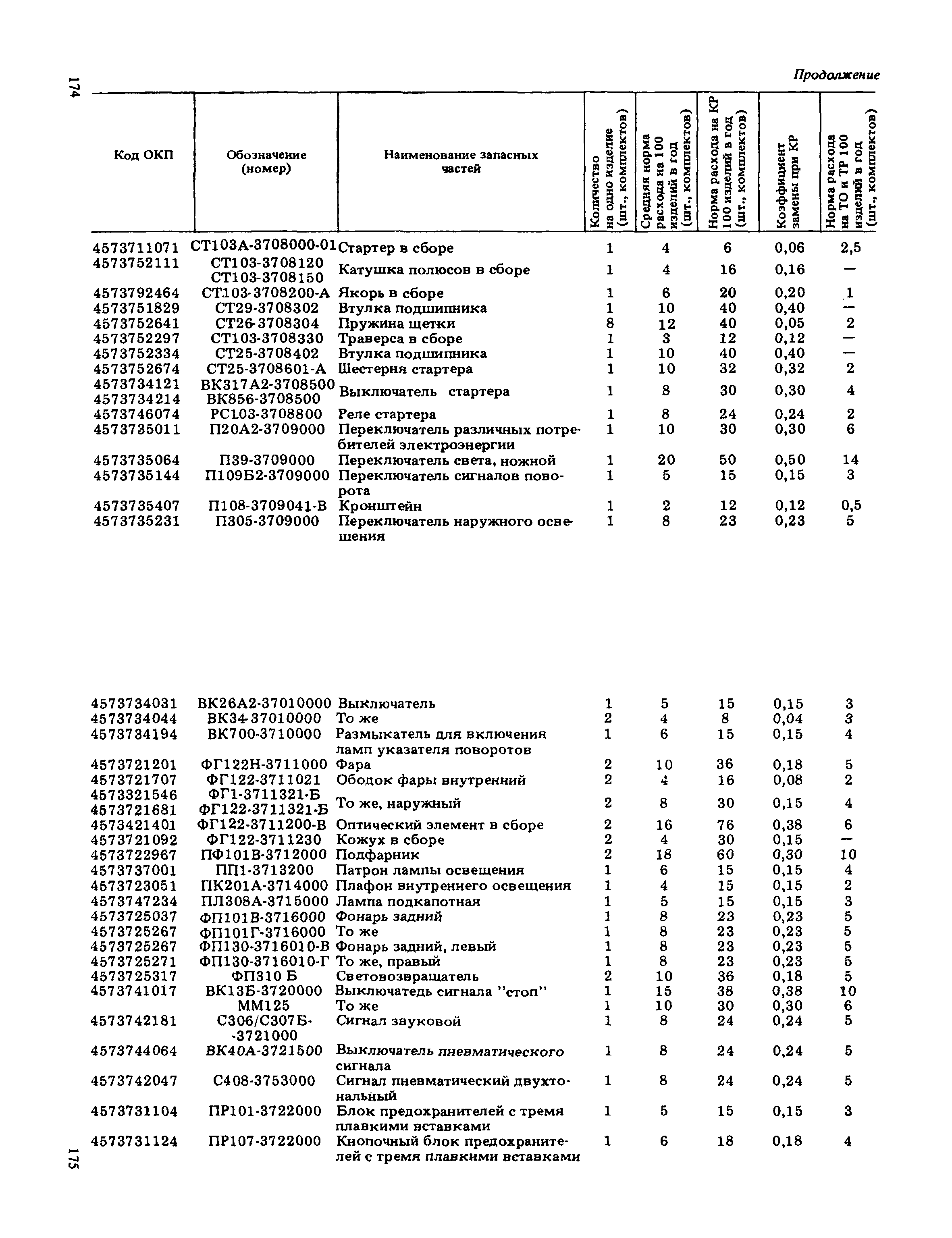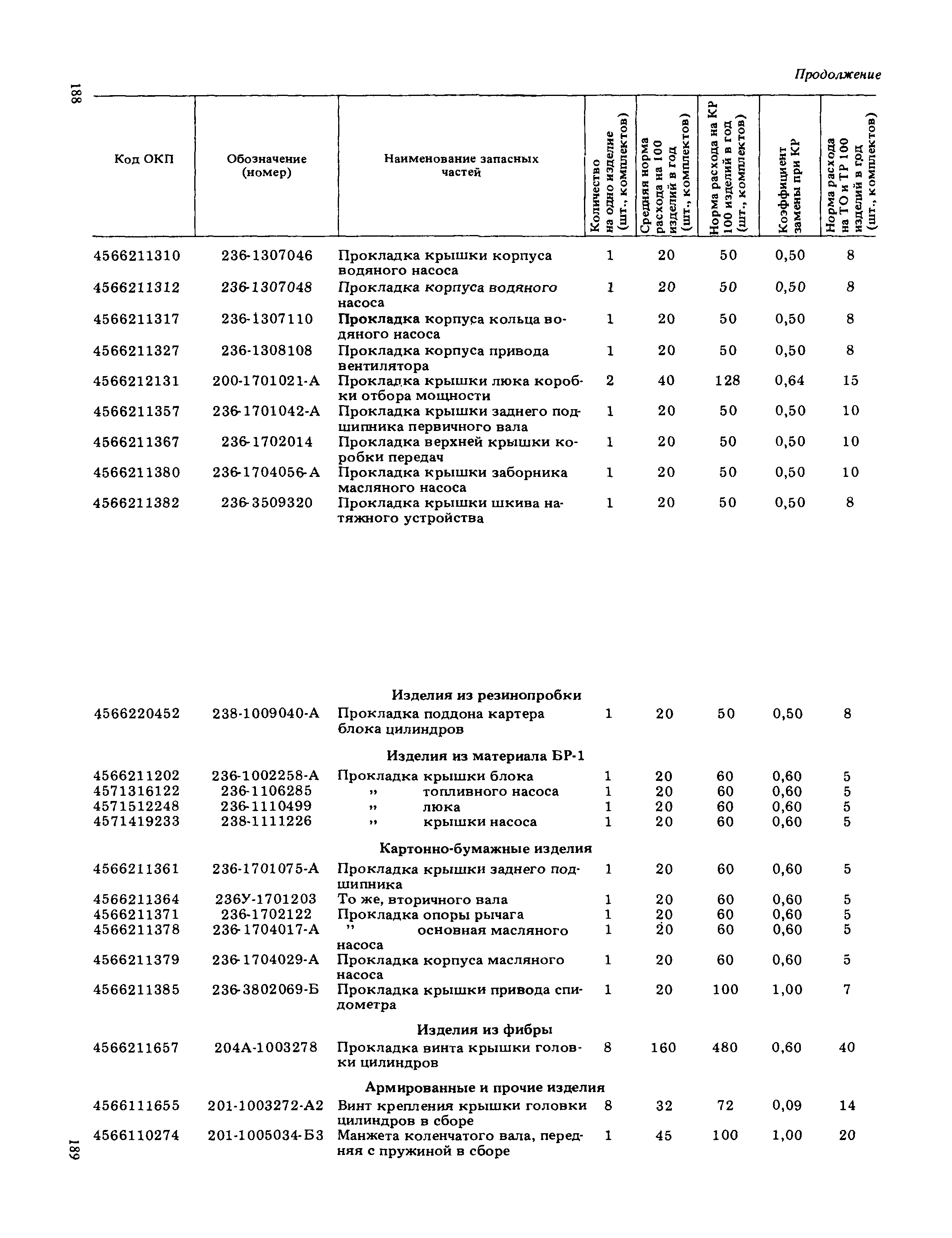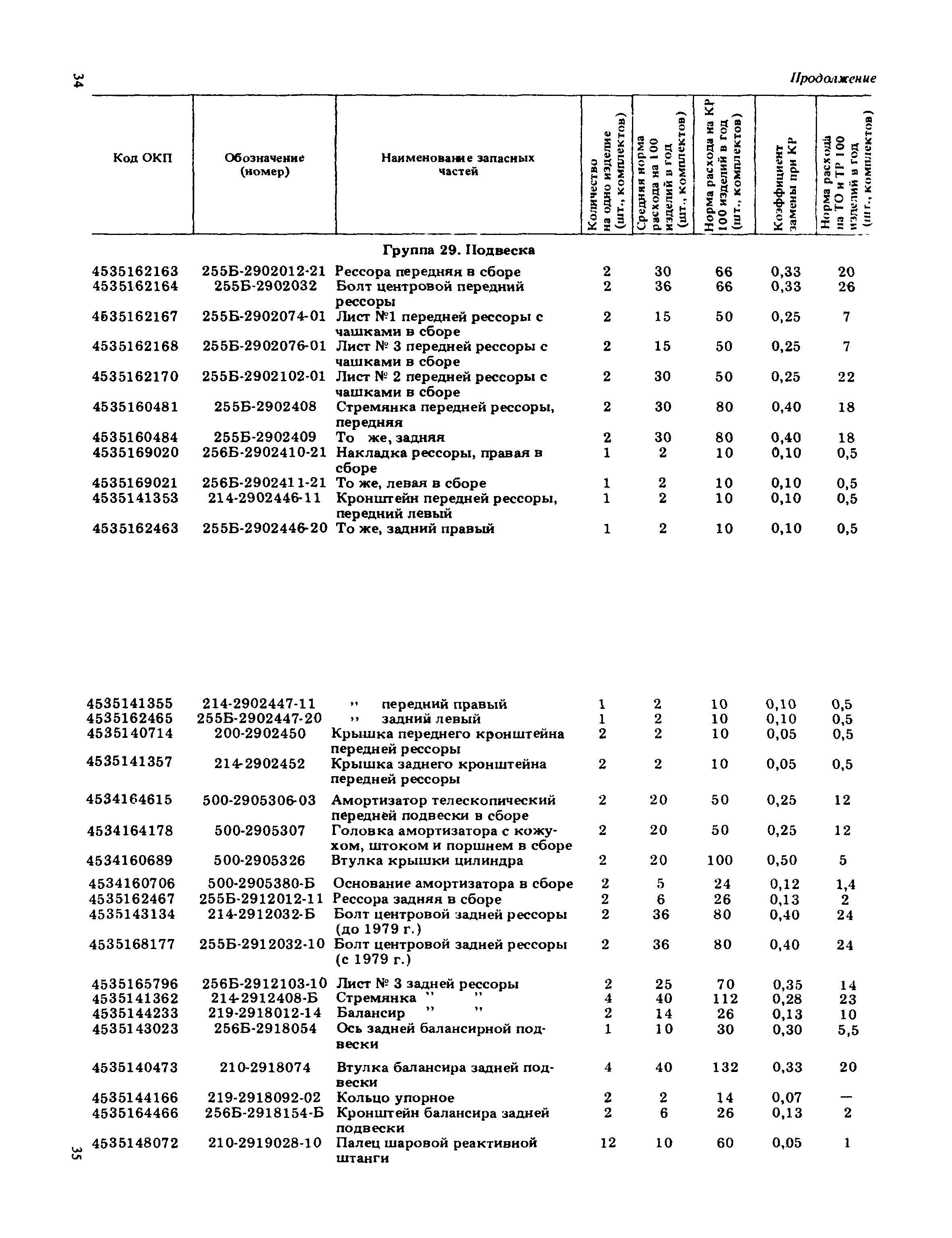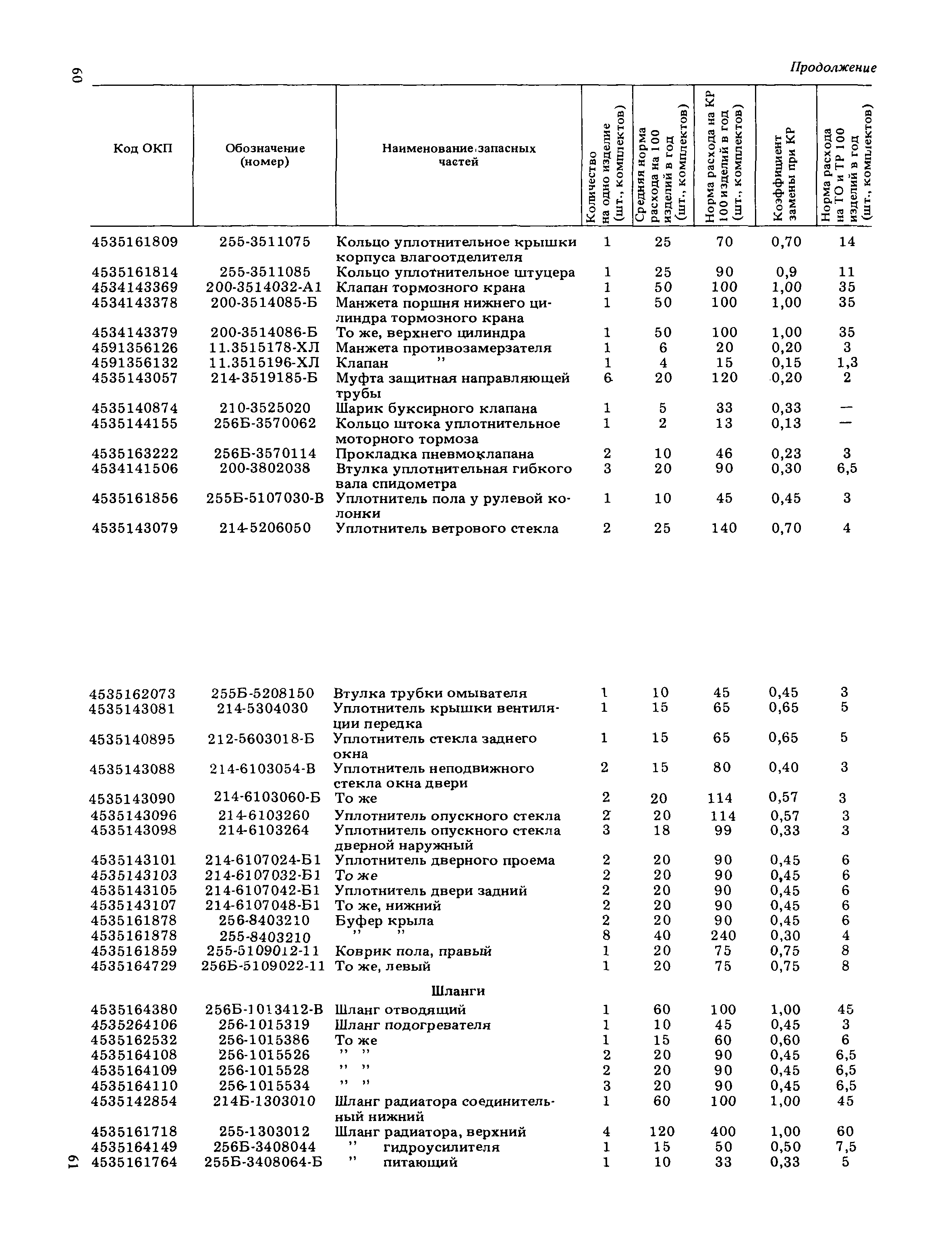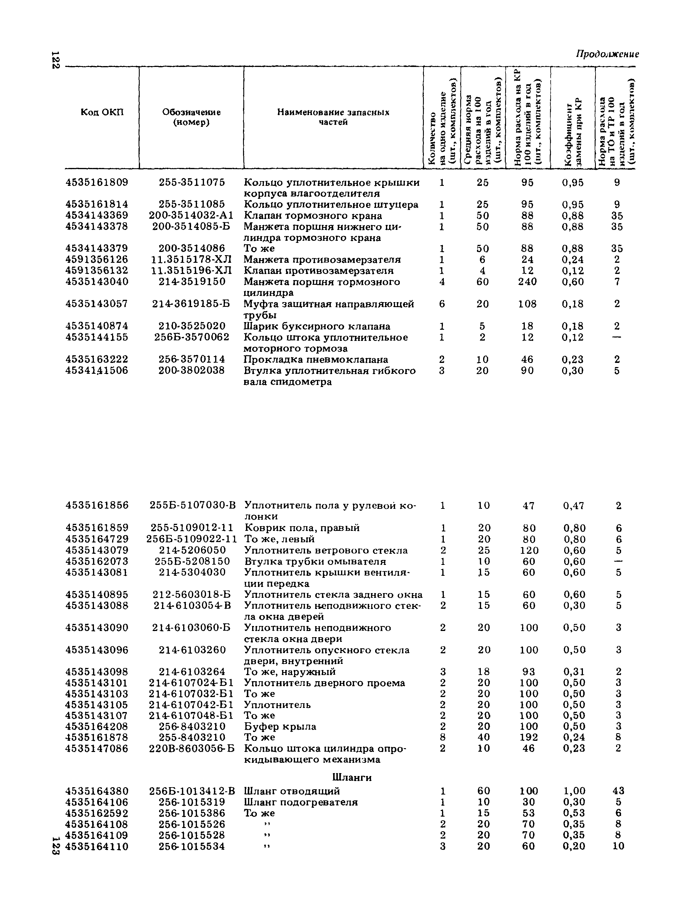 нормы расхода запасных частей на ремонтно-эксплуатационные нужды для автомобилей КрАЭ-257,