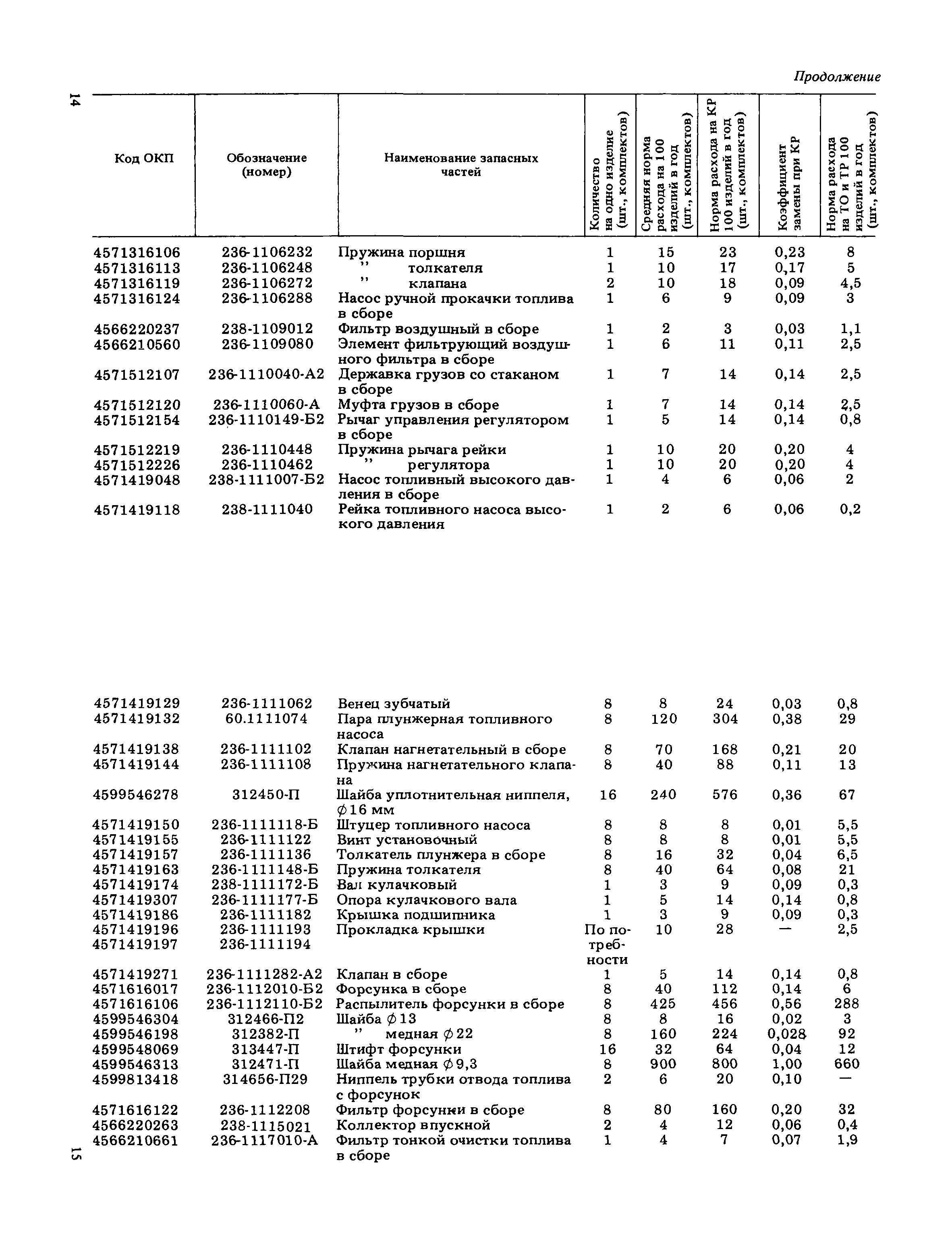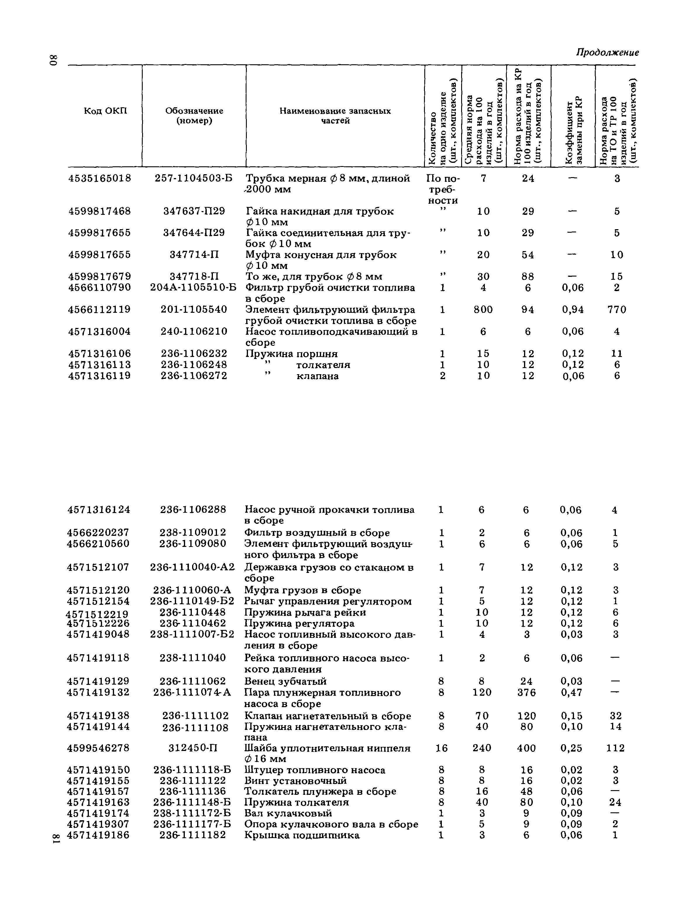 Подетальные нормы расхода запасных частей на ремонтно-эксплуатационные нужды