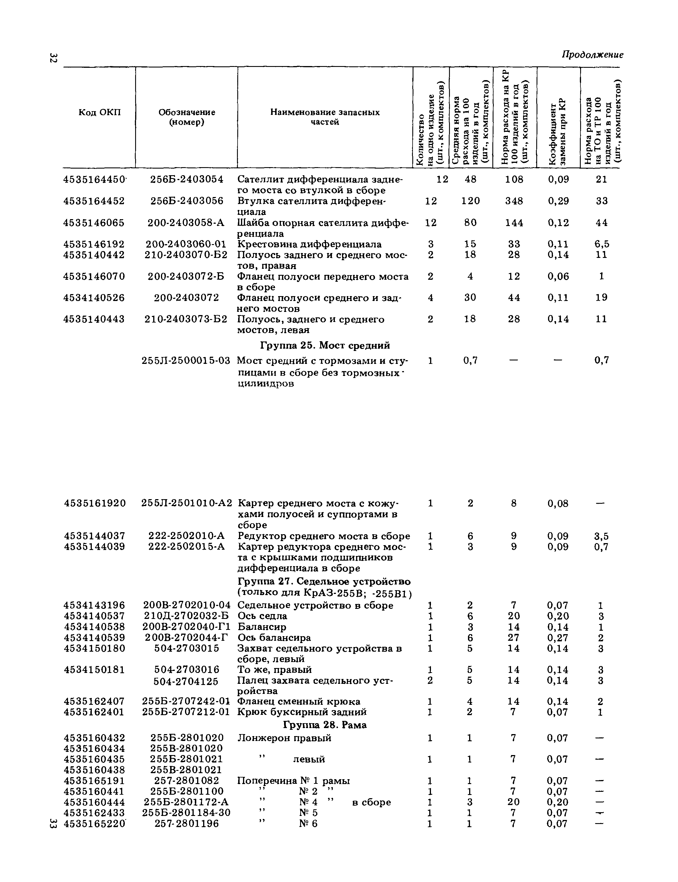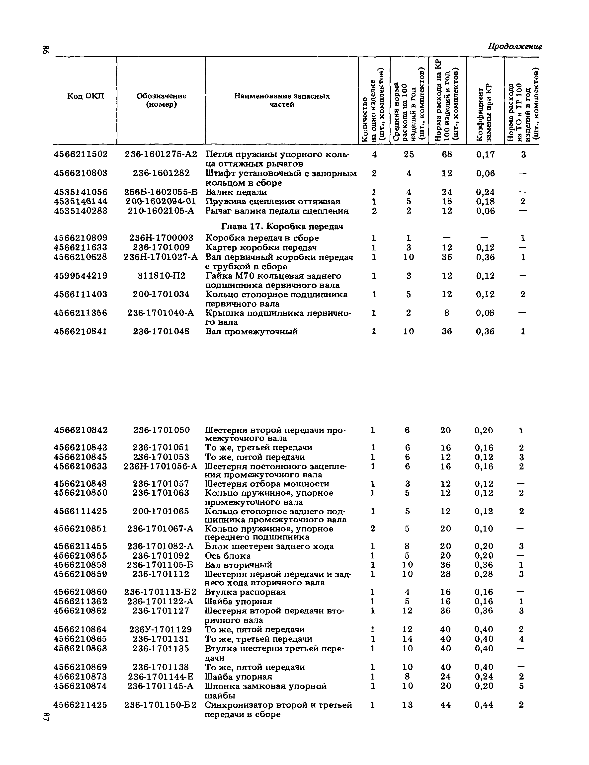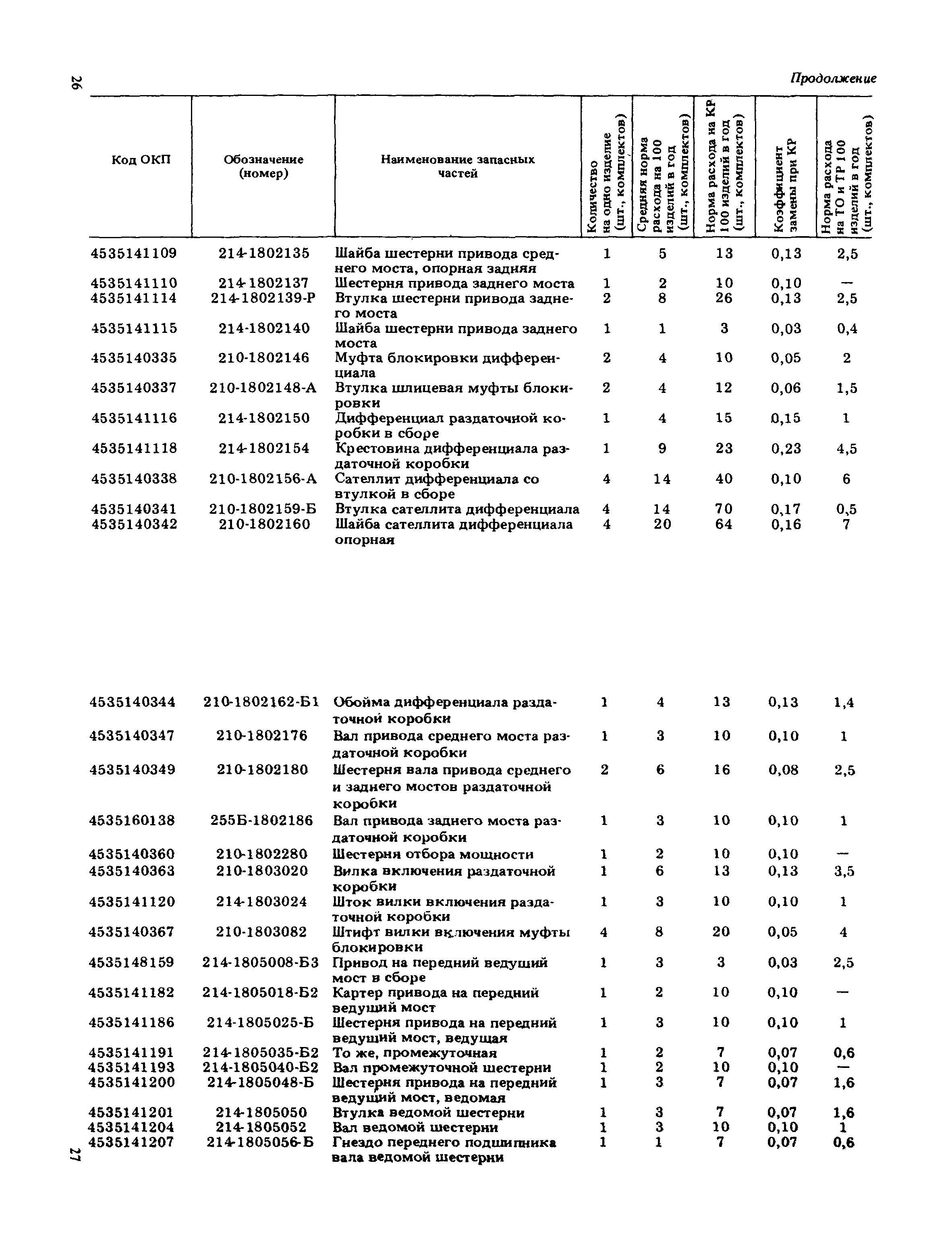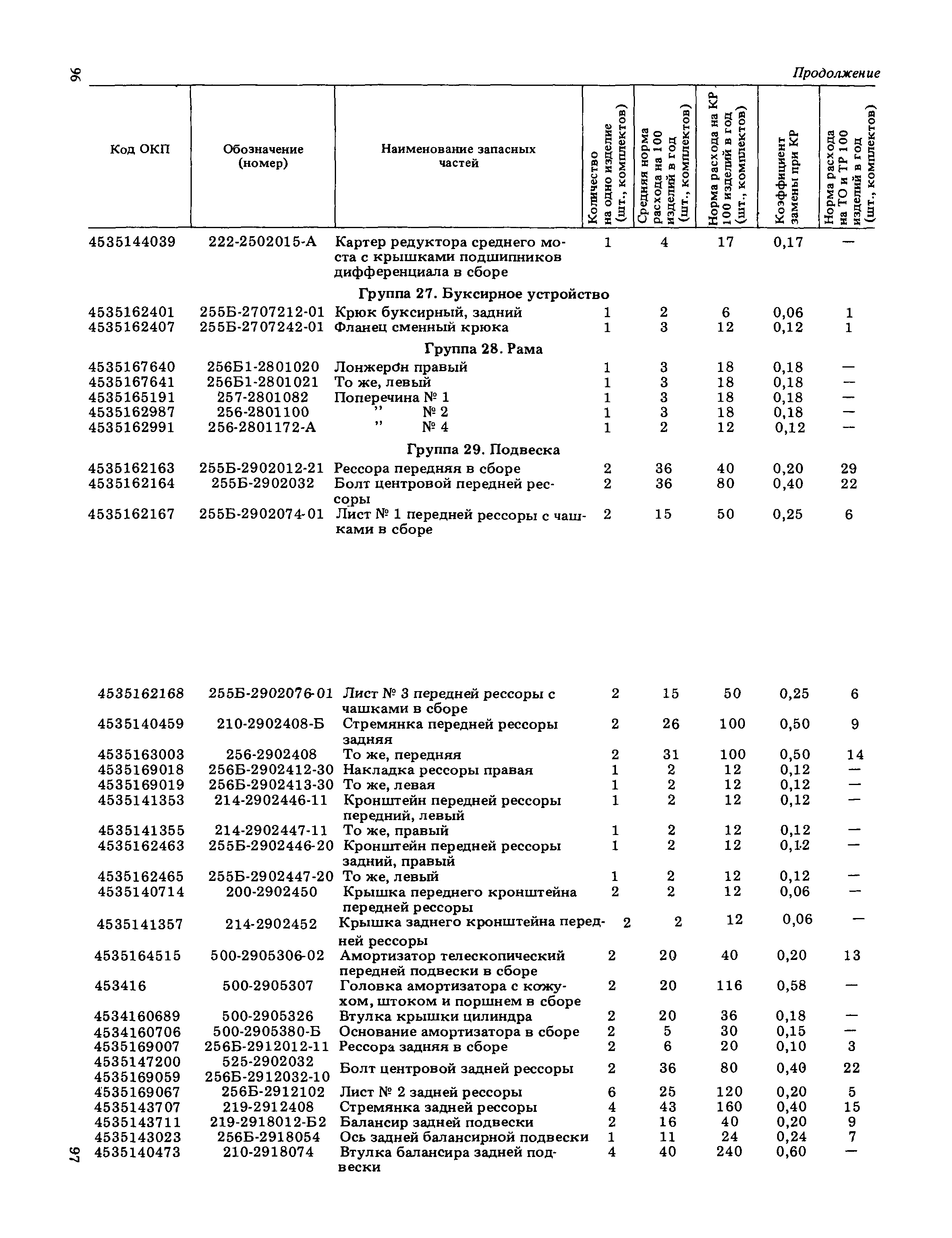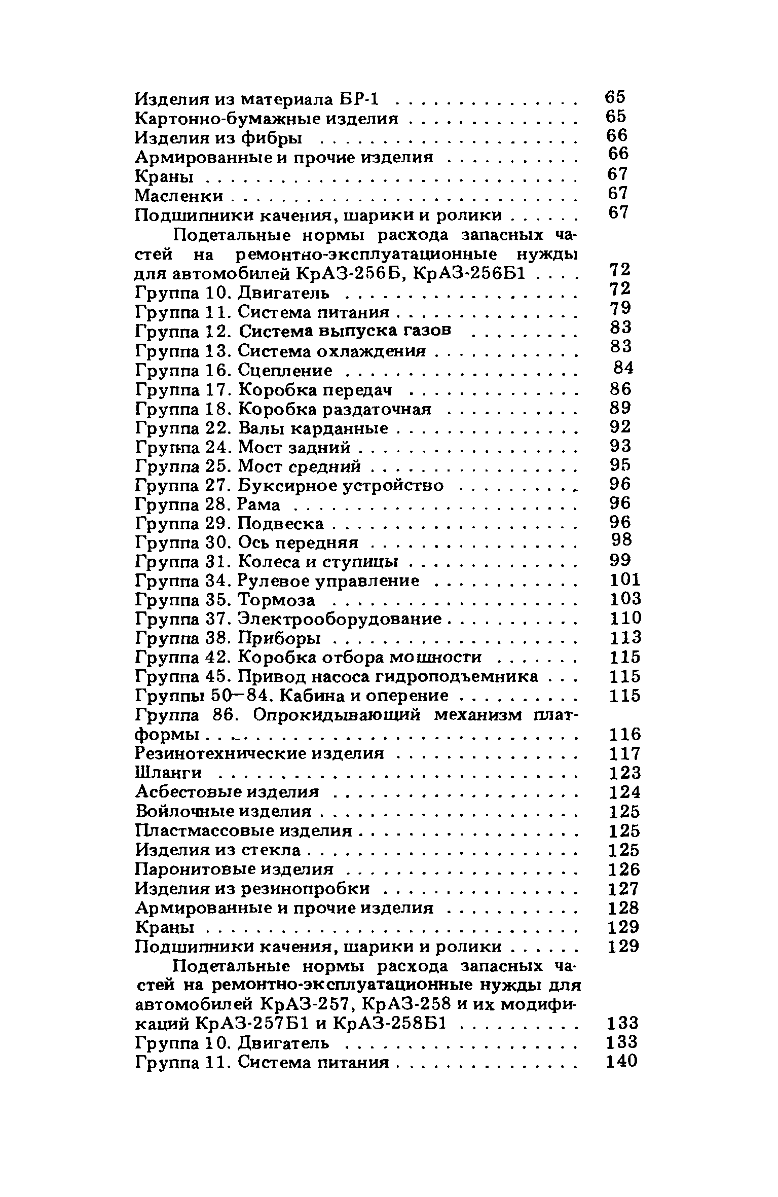 нормы расхода запасных частей на ремонтно-эксплуатационные нужды для автомобилей КрАЗ-256Б,