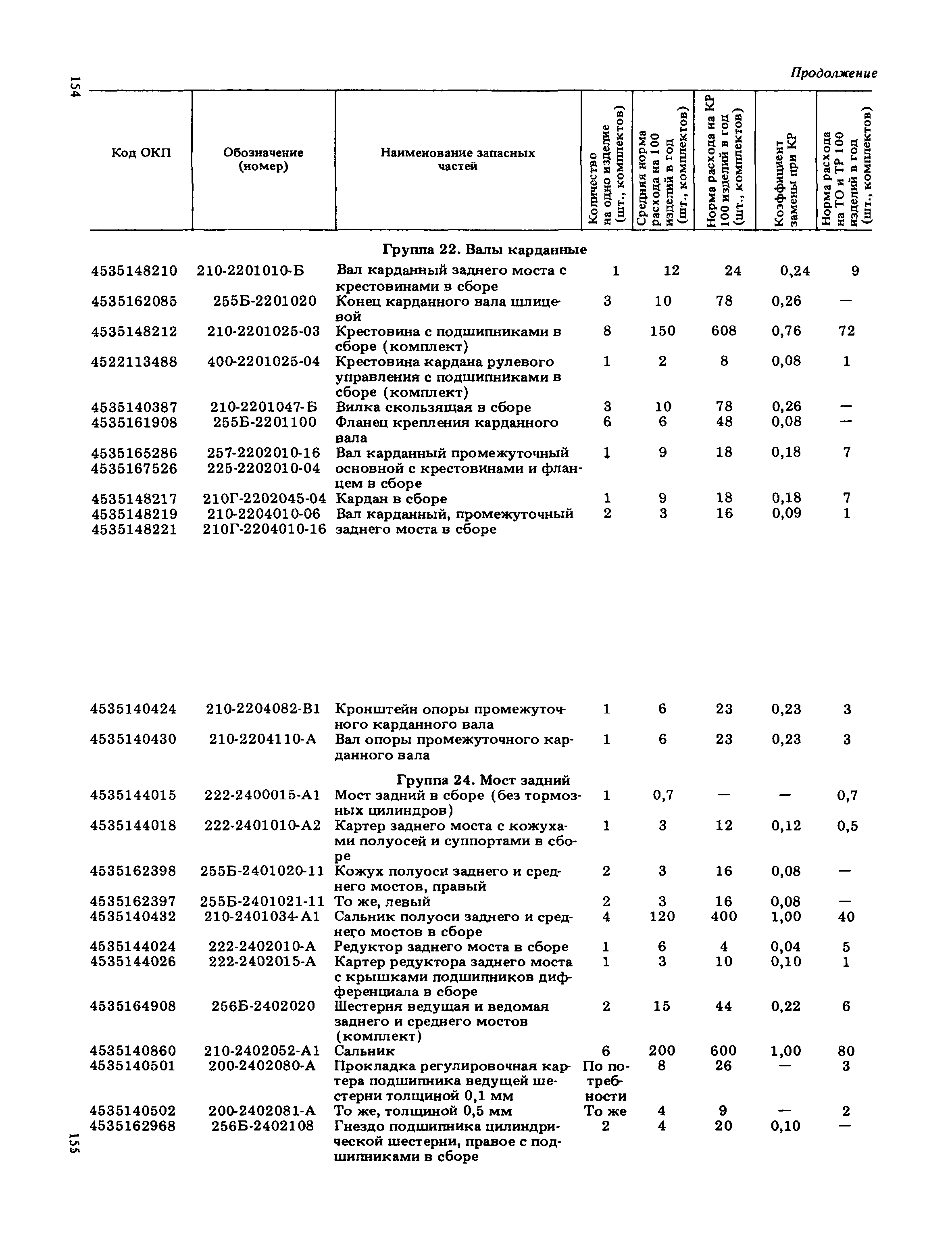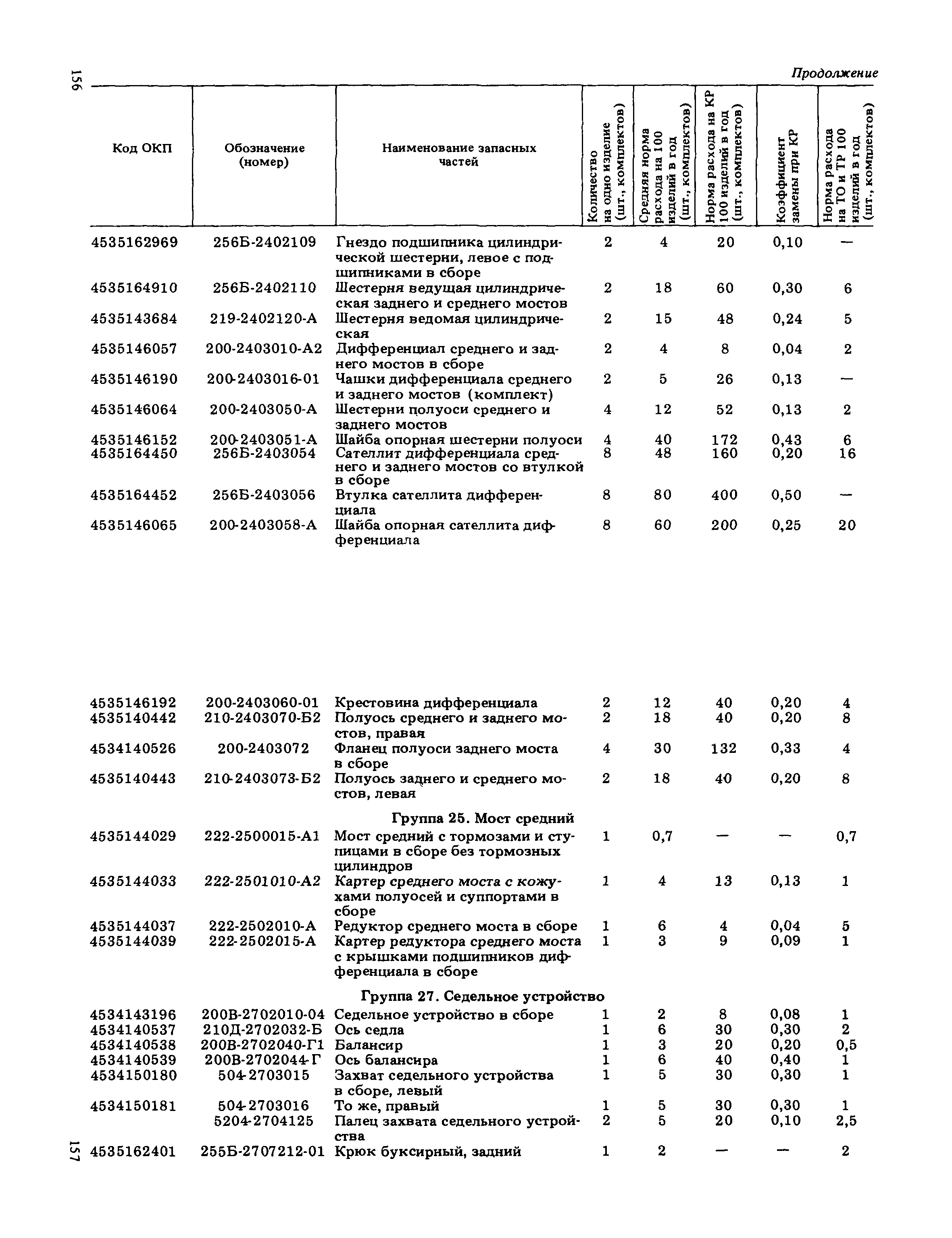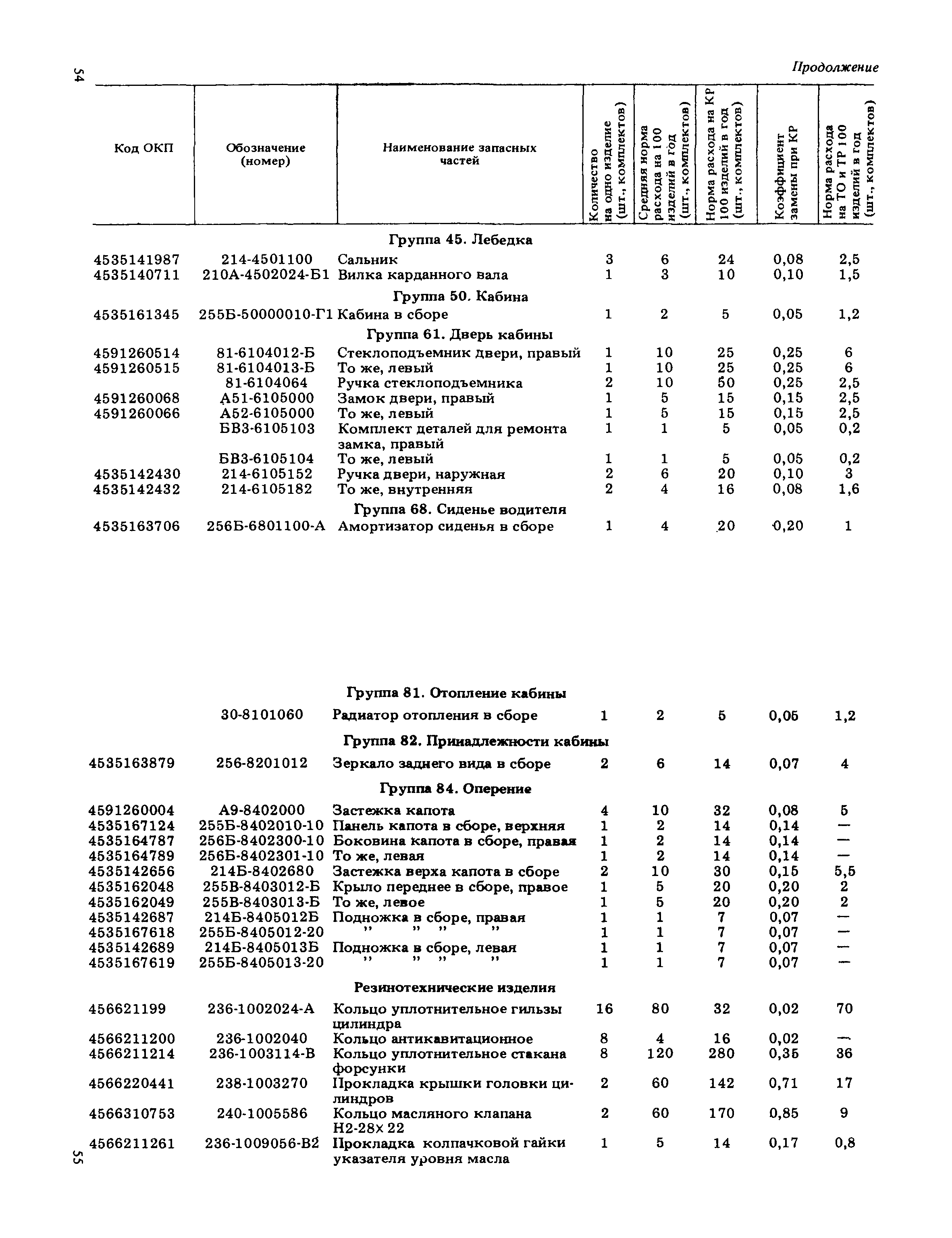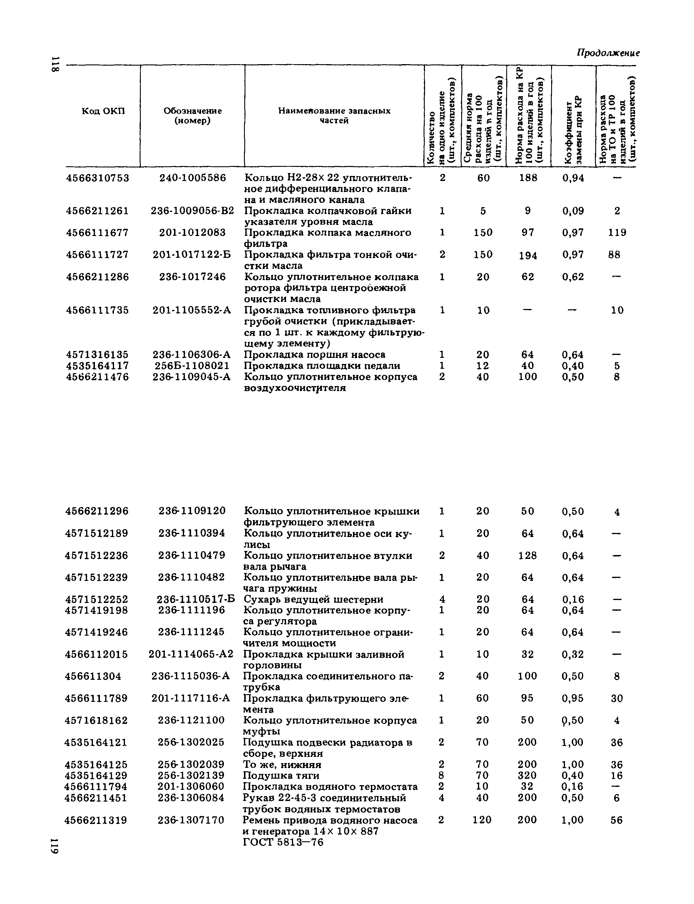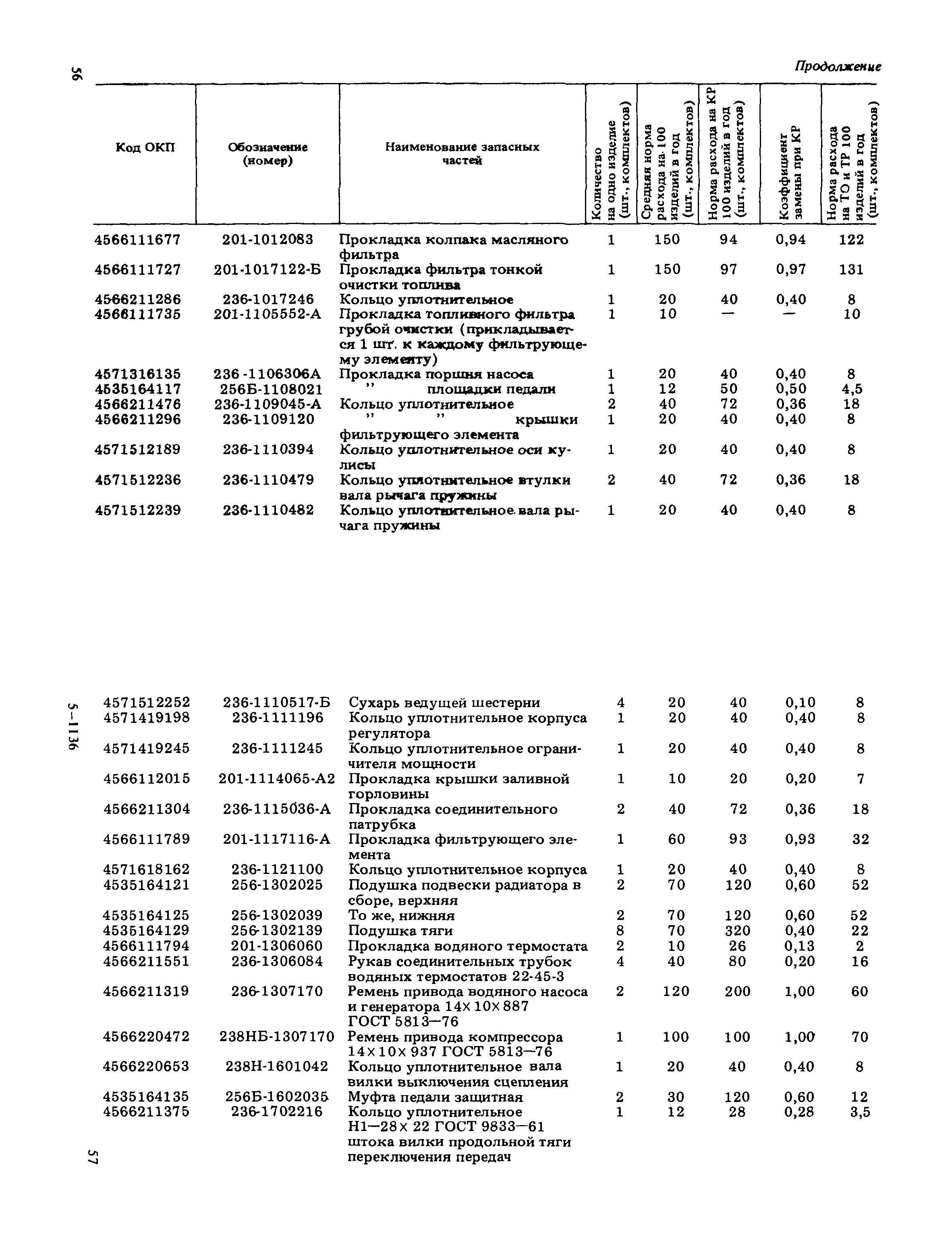 нормы расхода запасных частей на ремонтно-эксплуатационные нужды для автомобилей КрАЗ-256Б,
