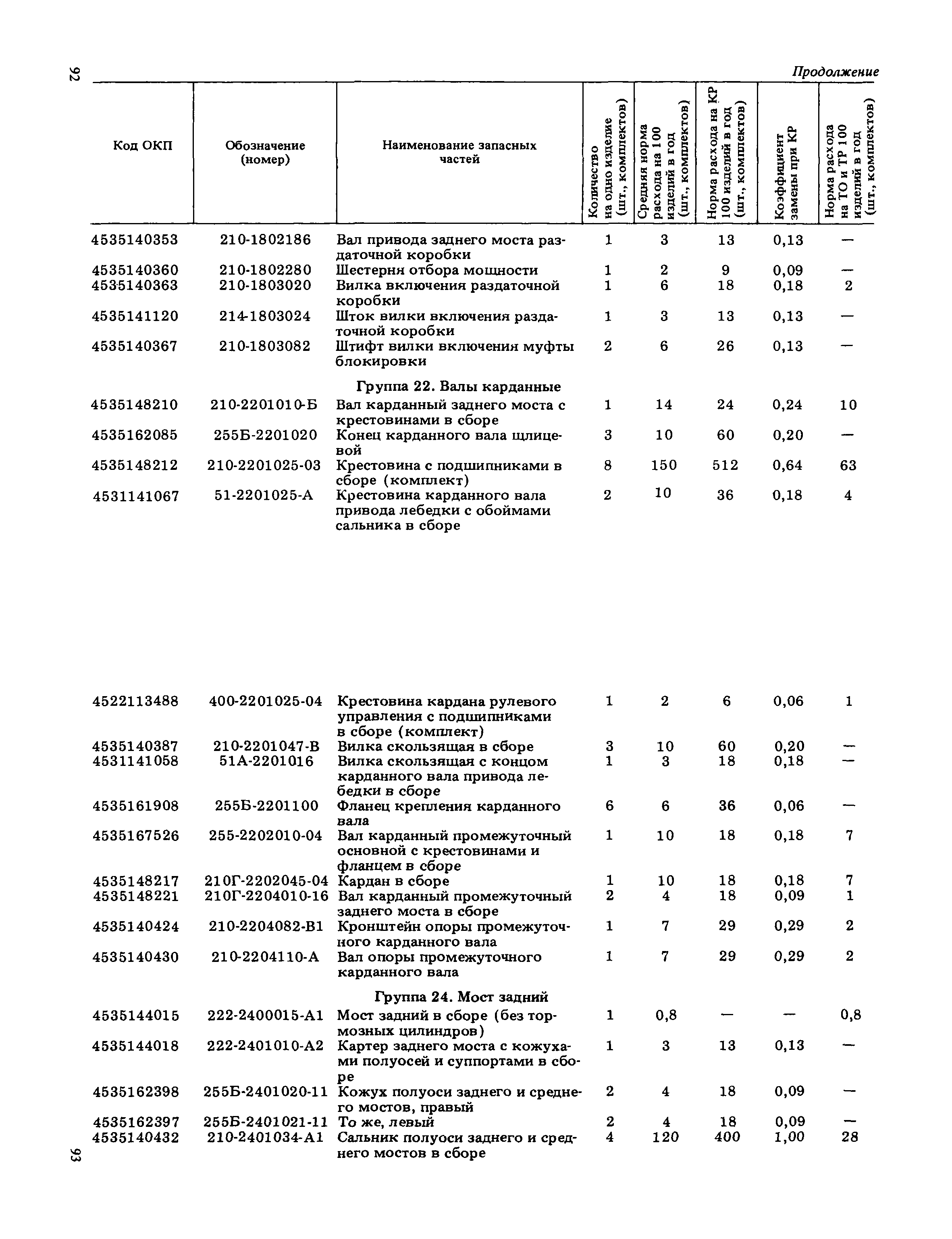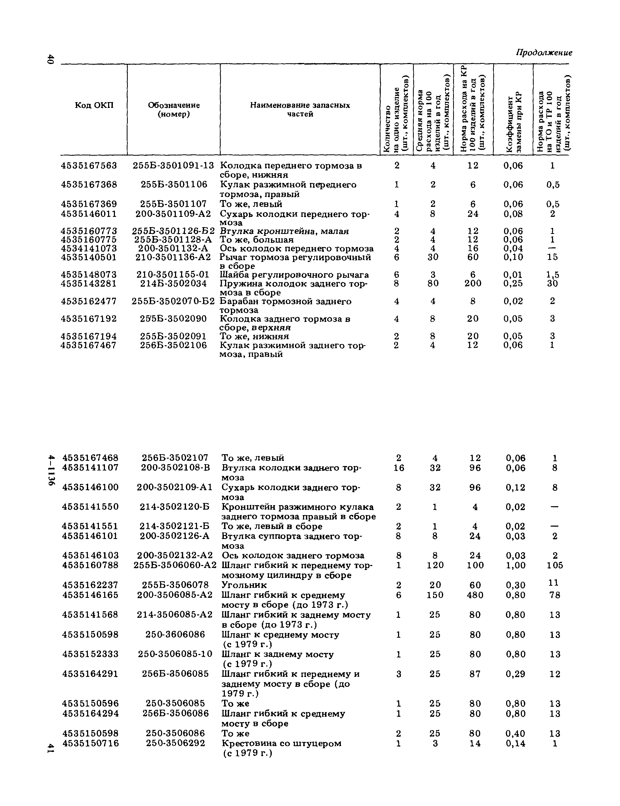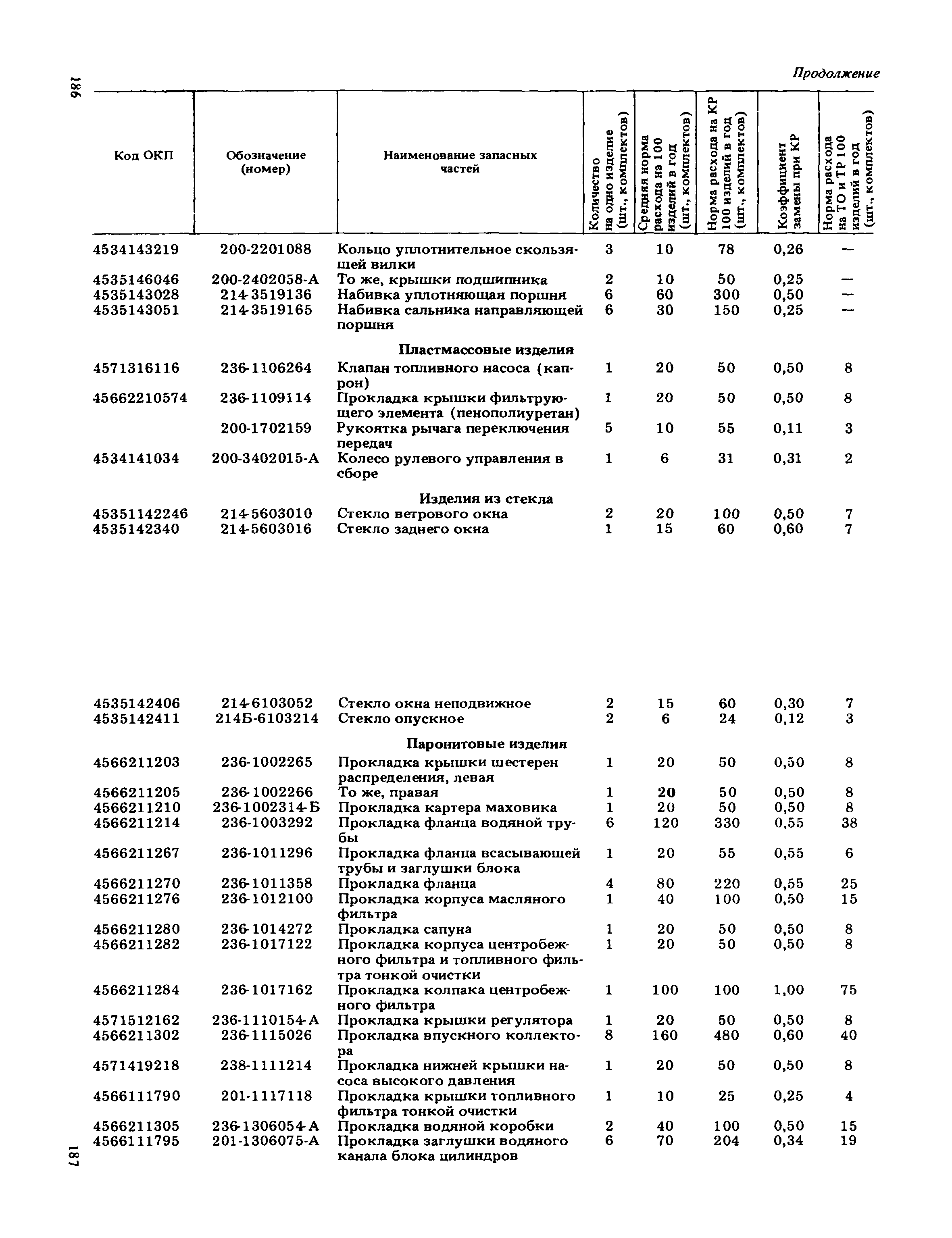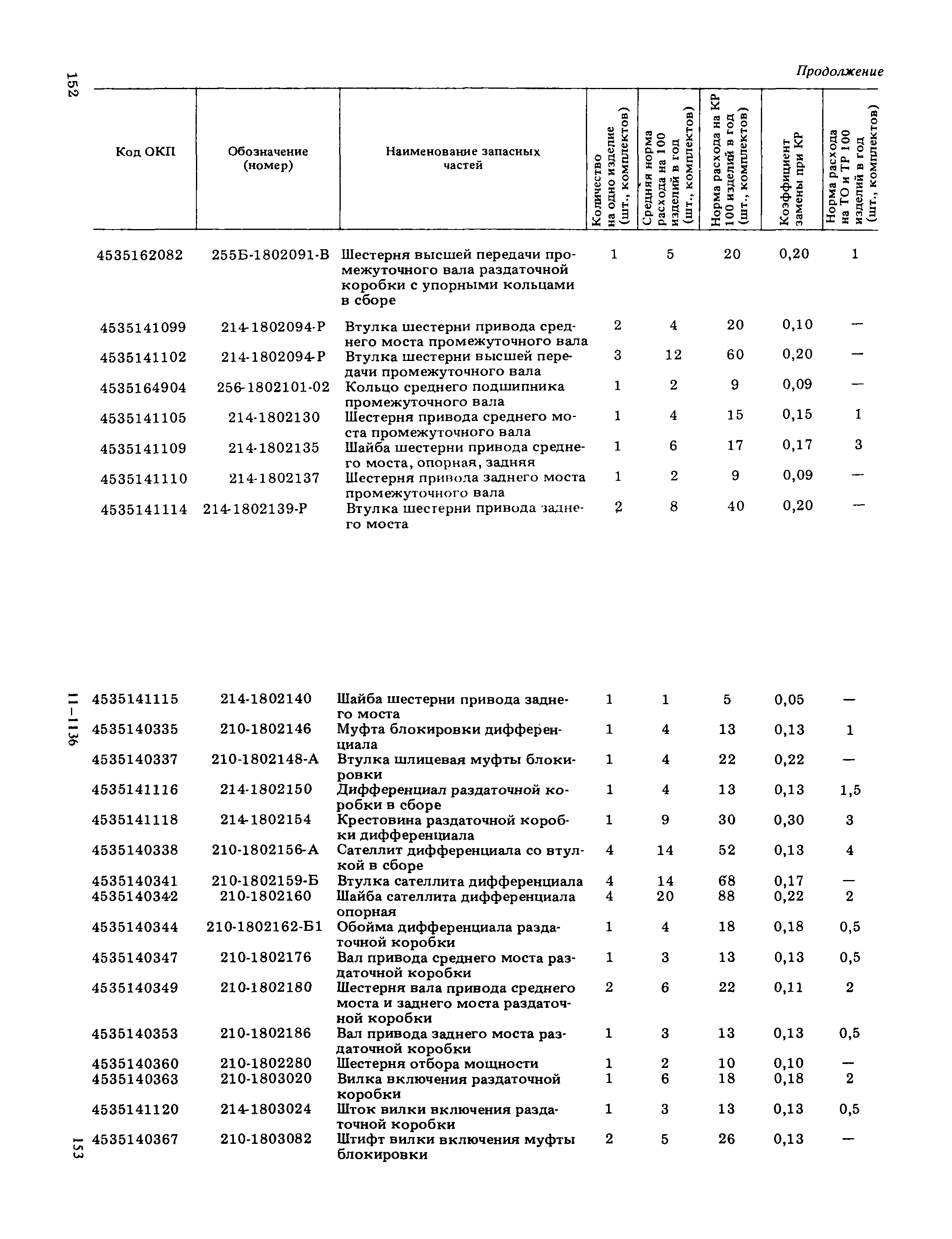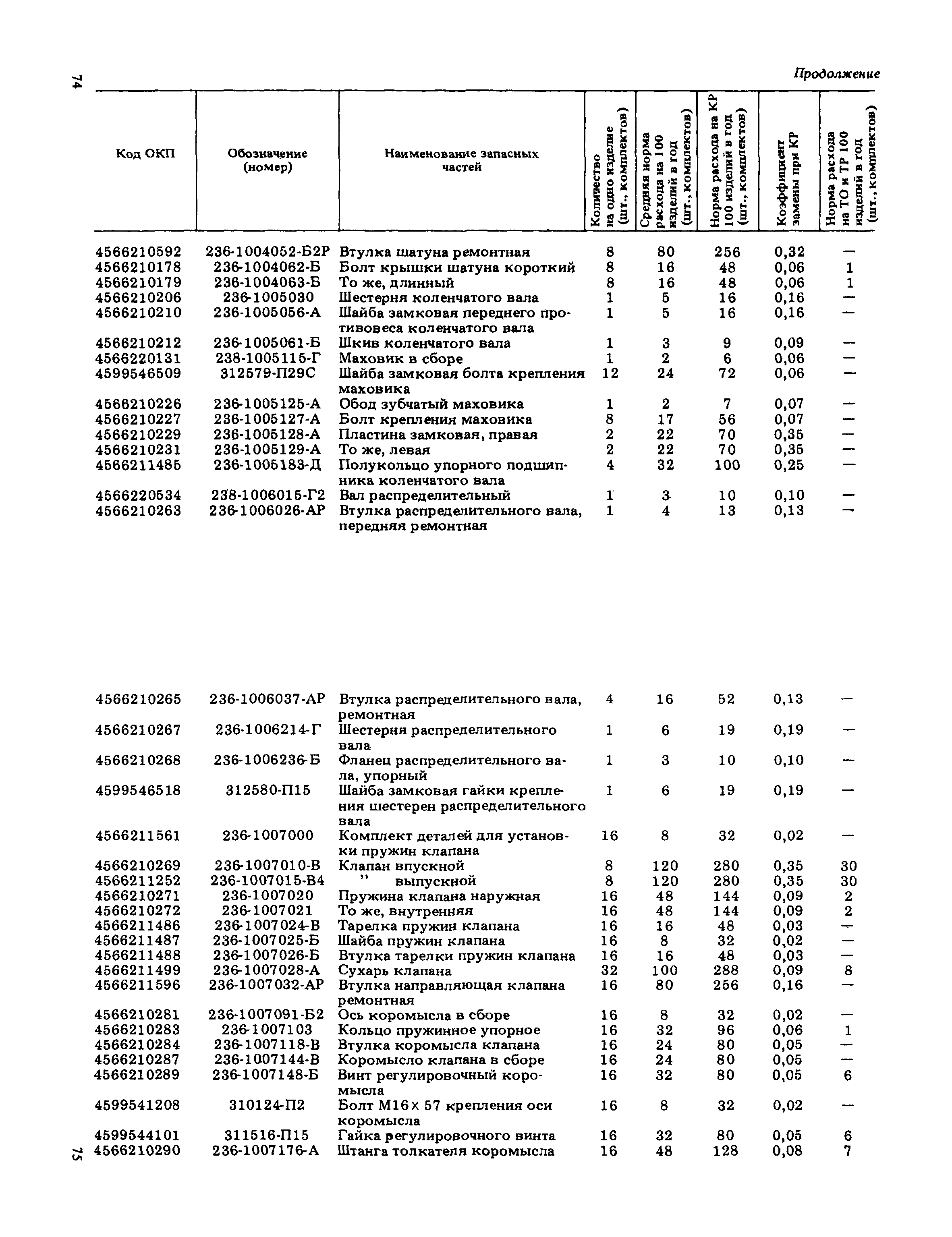 нормы расхода запасных частей на ремонтно-эксплуатационные нужды для автомобилей КрАЗ-256Б,