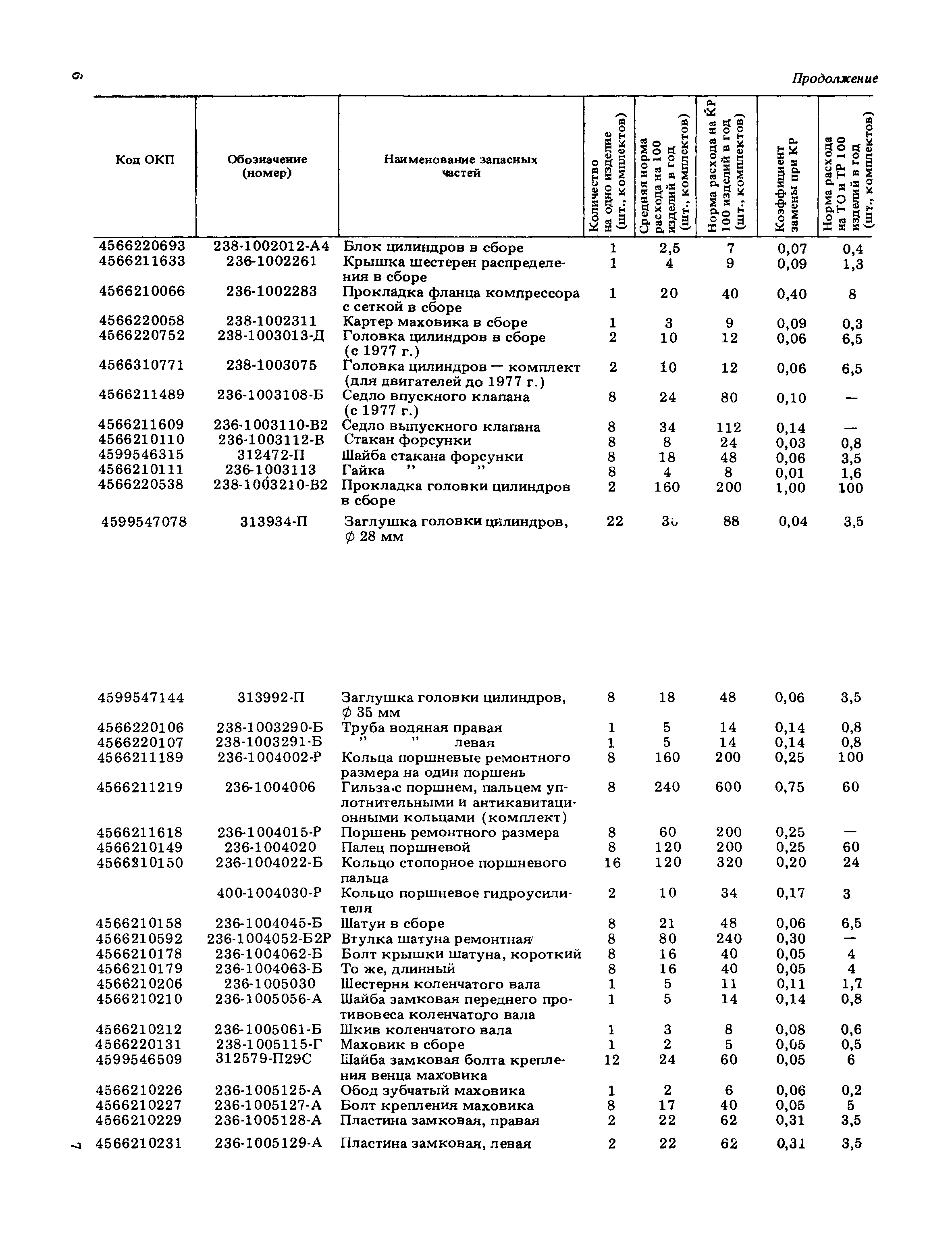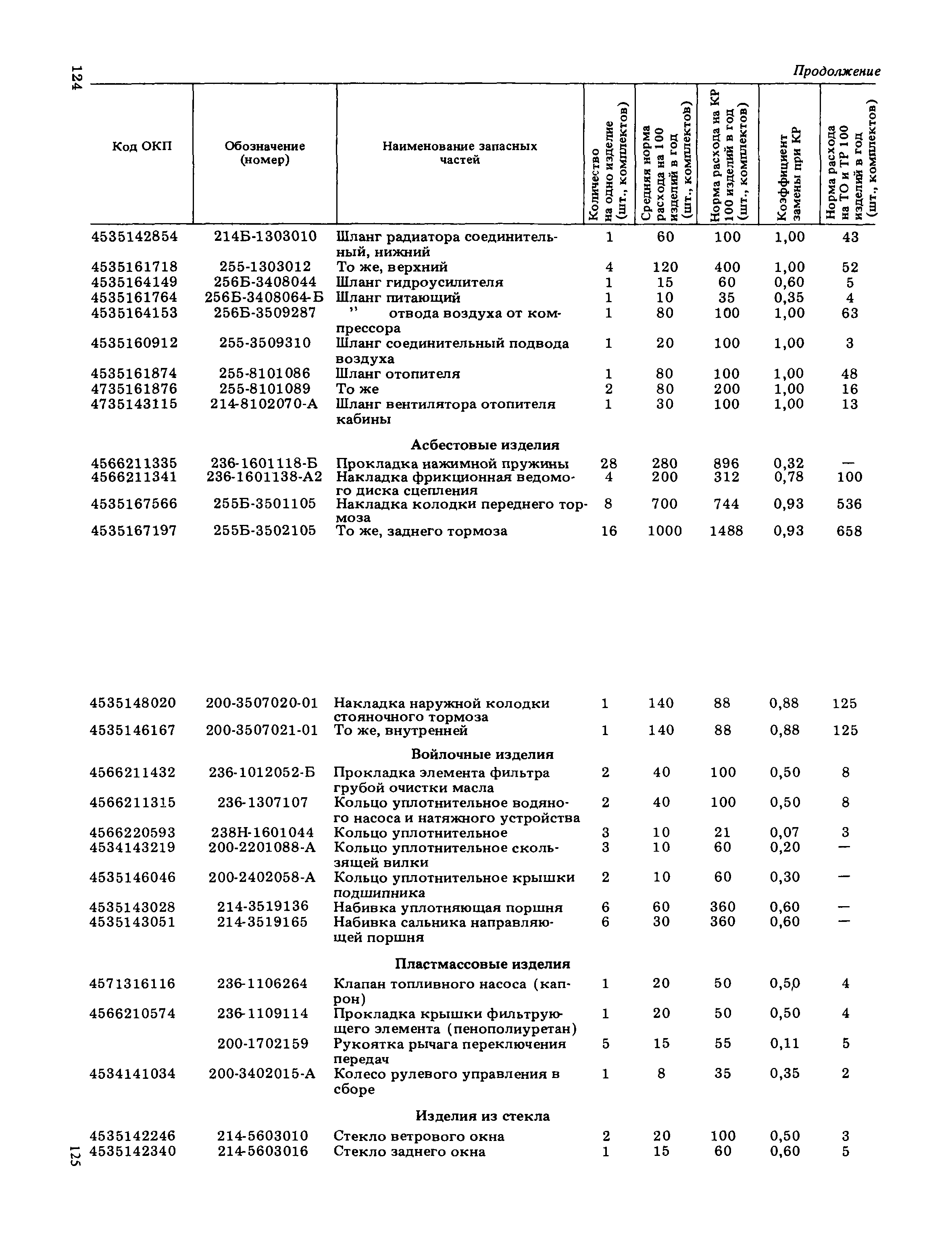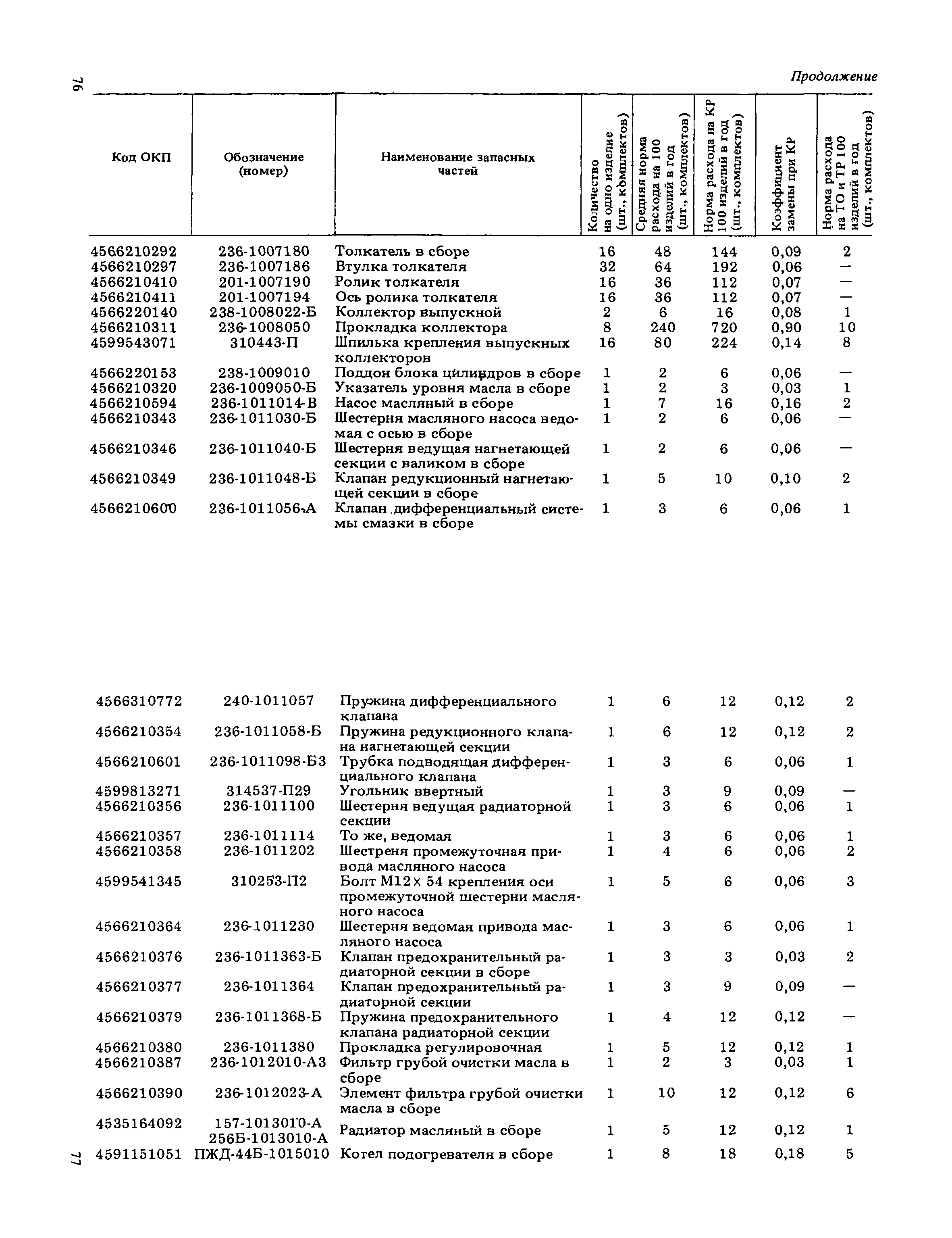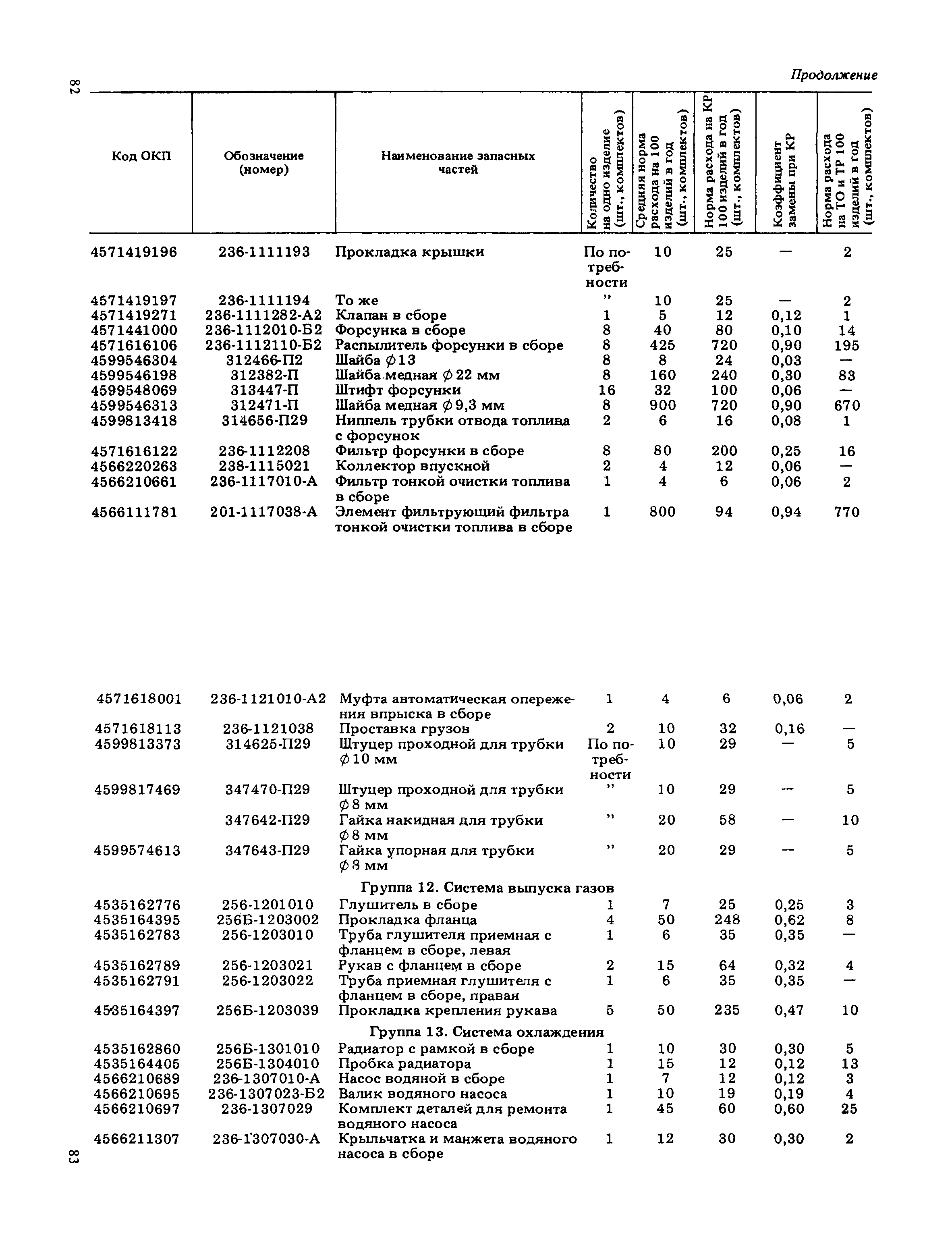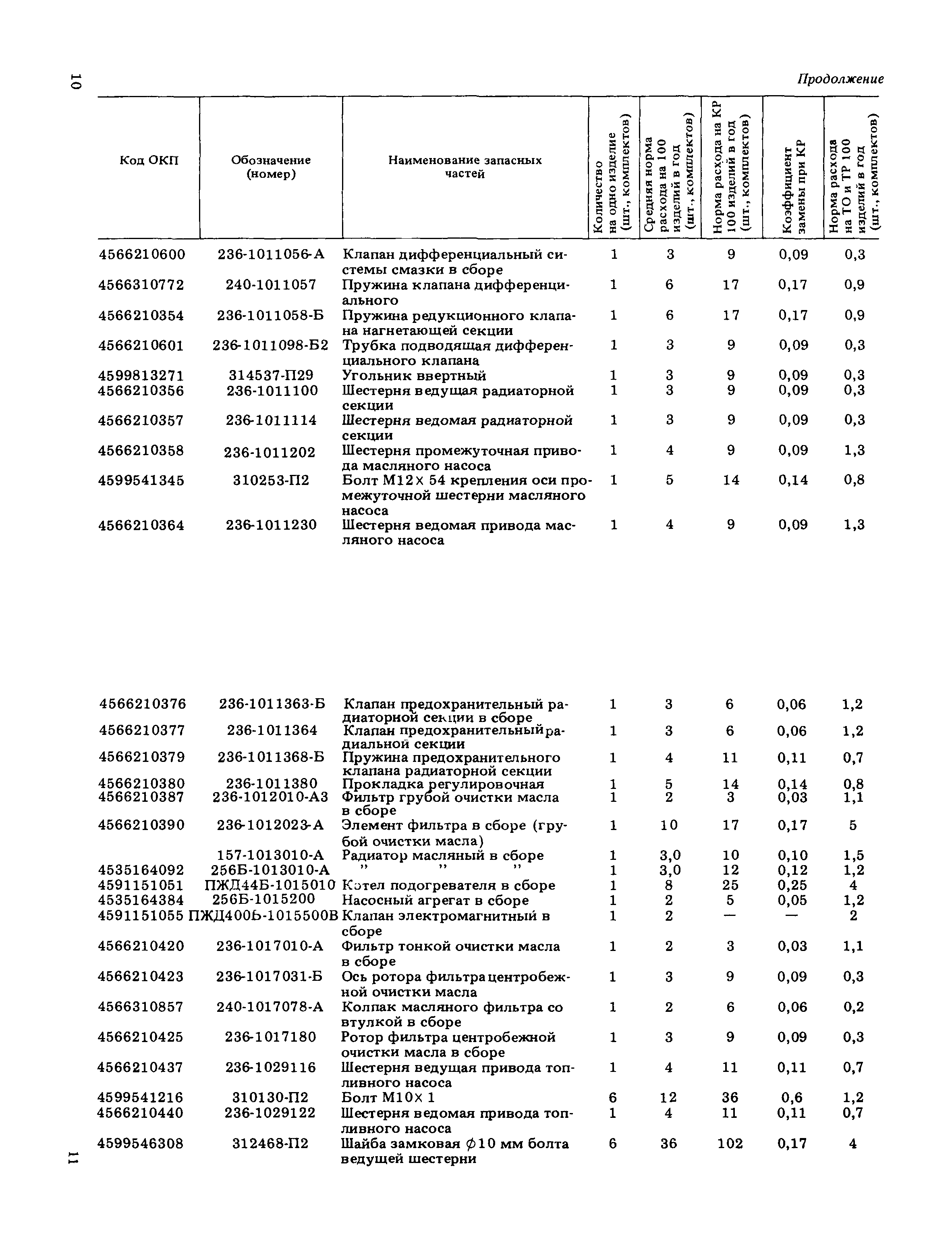 нормы расхода запасных частей на ремонтно-эксплуатационные нужды для автомобилей КрАЗ-256Б,