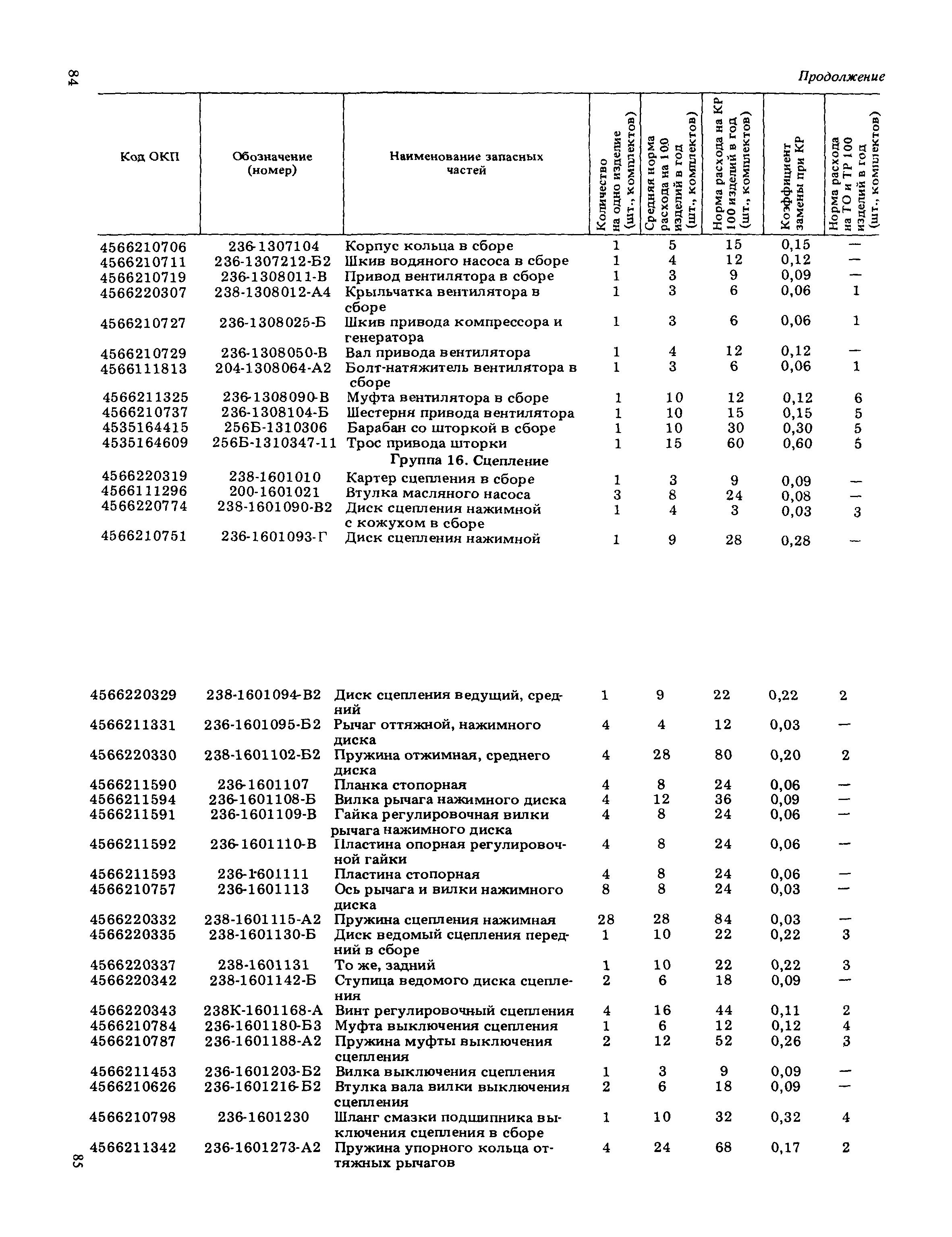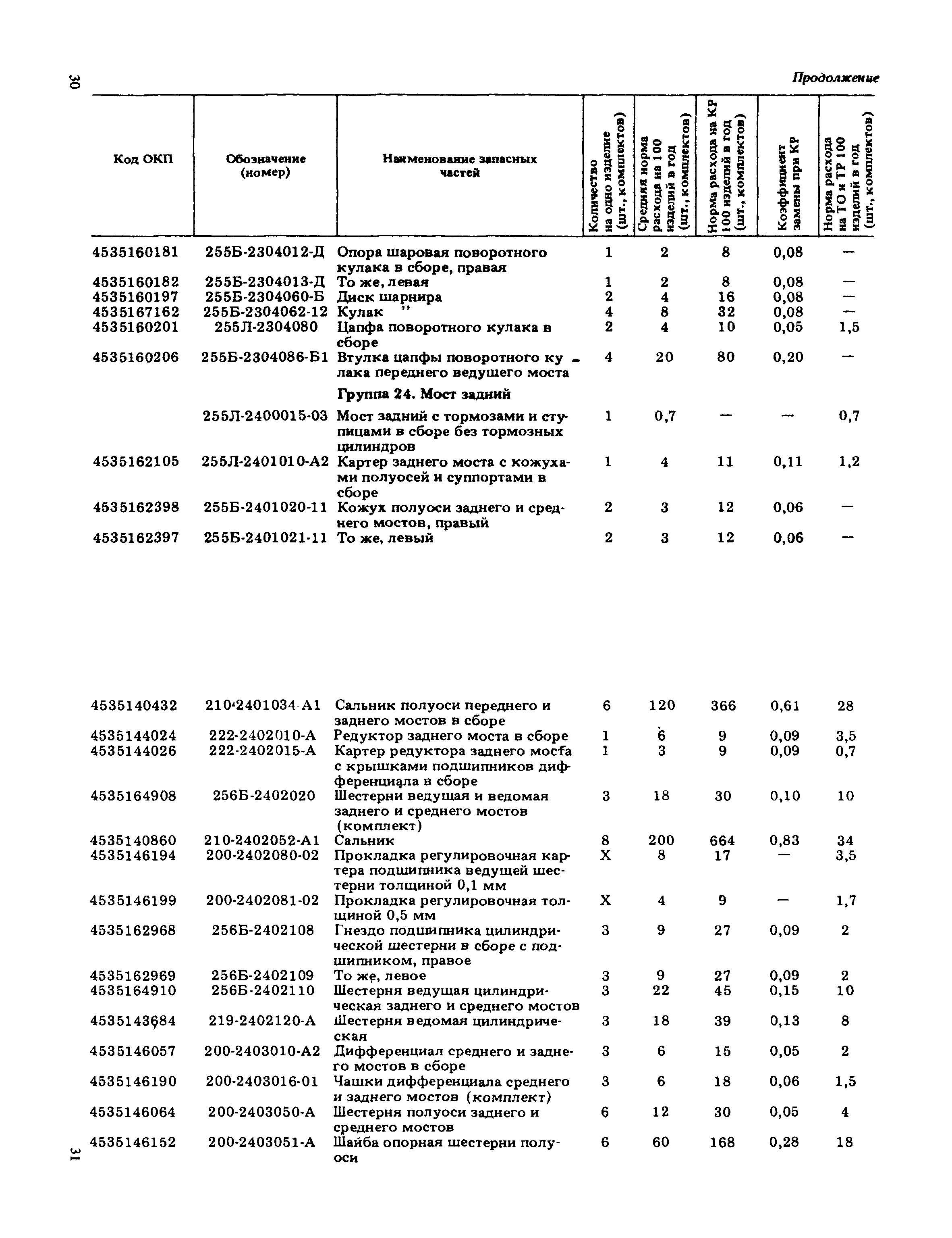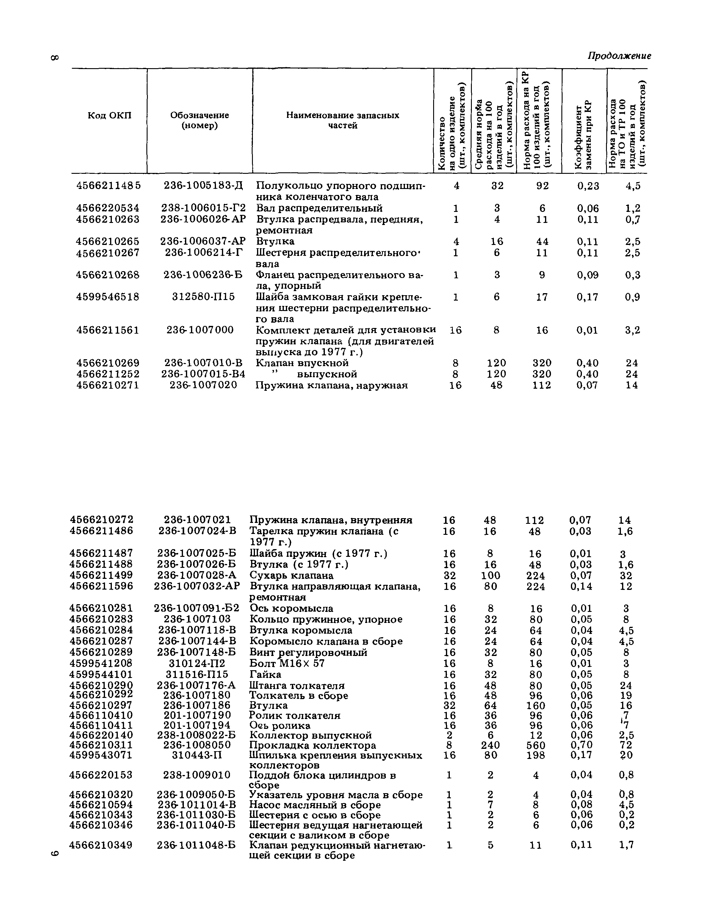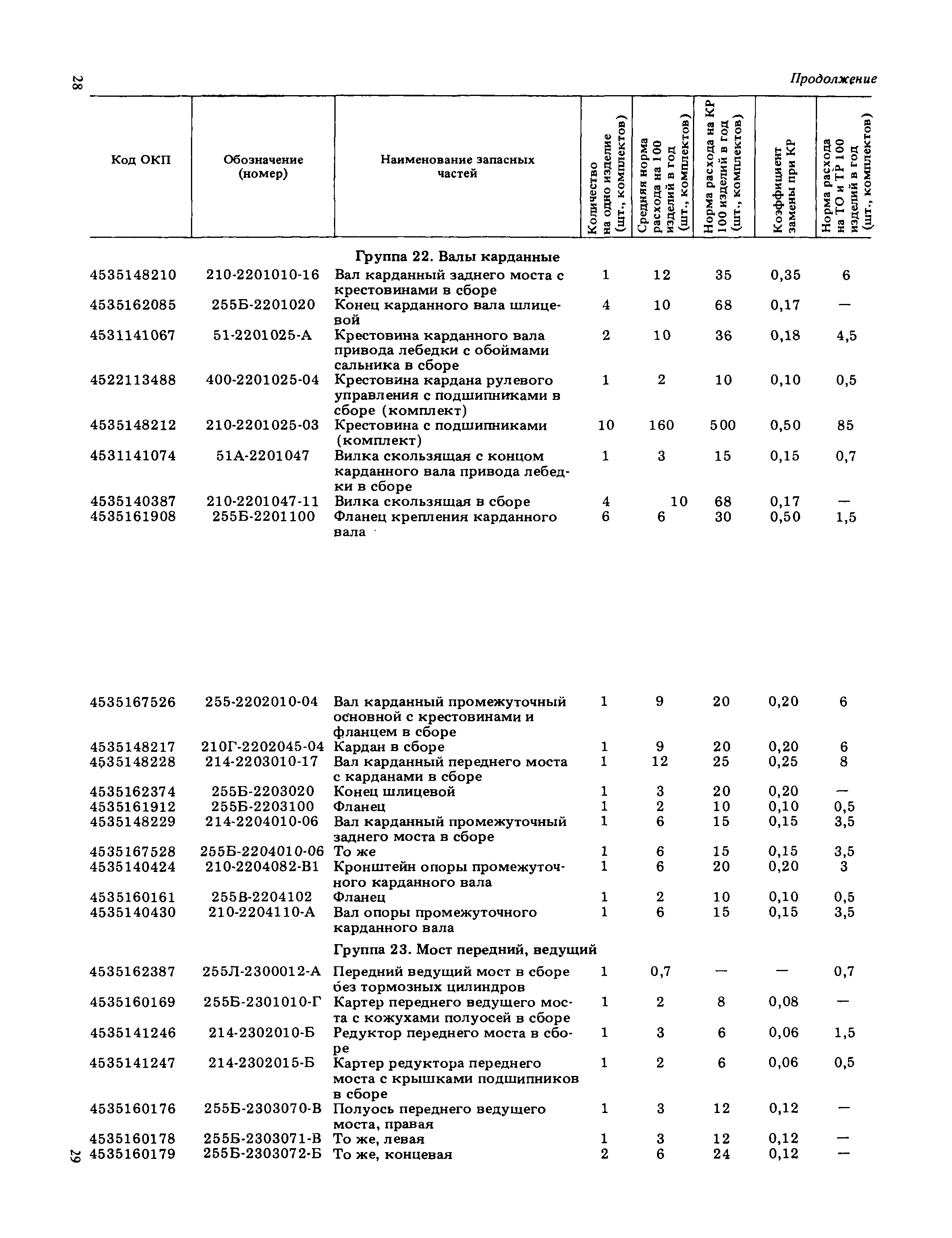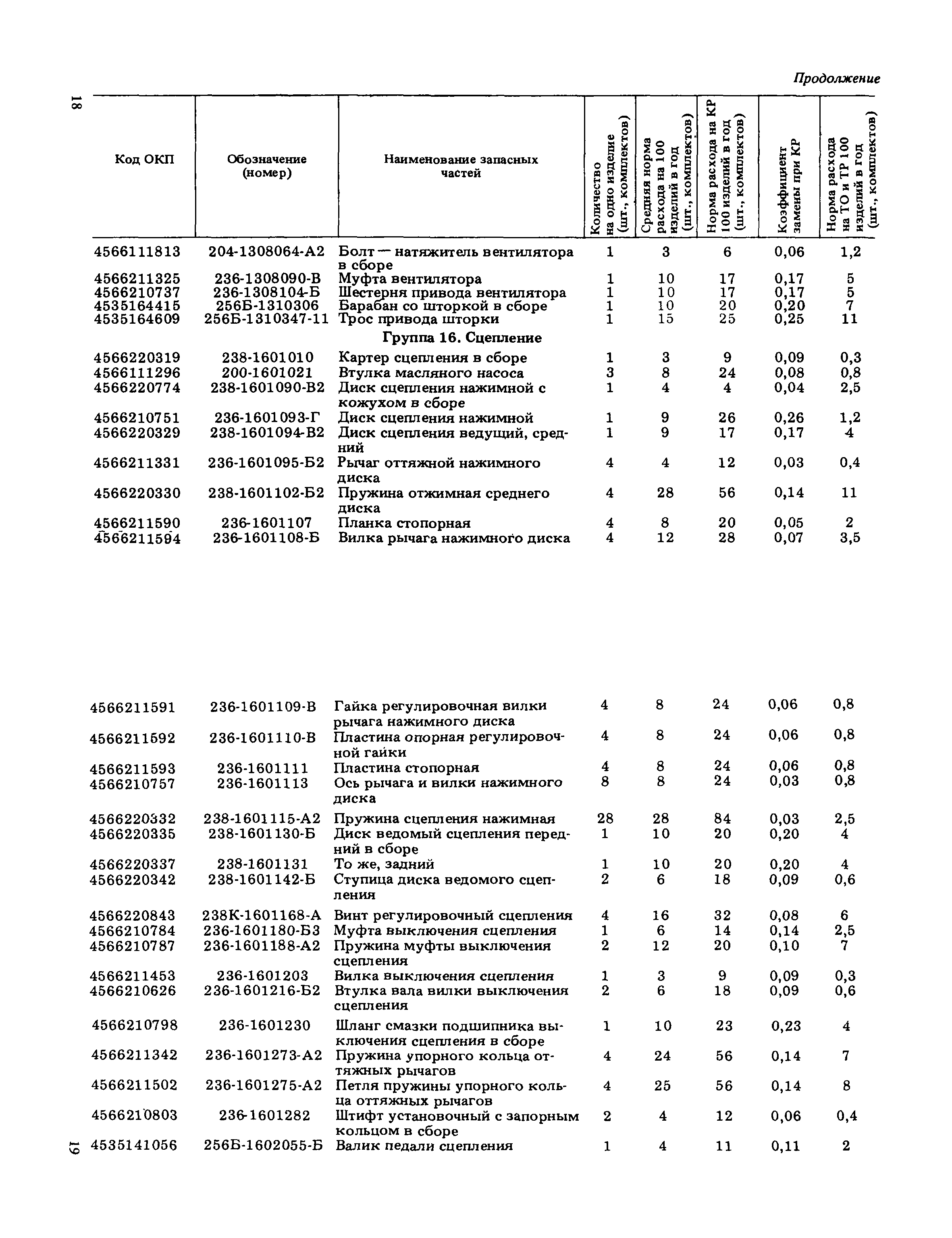 нормы расхода запасных частей на ремонтно-эксплуатационные нужды для автомобилей КрАЗ-256Б,