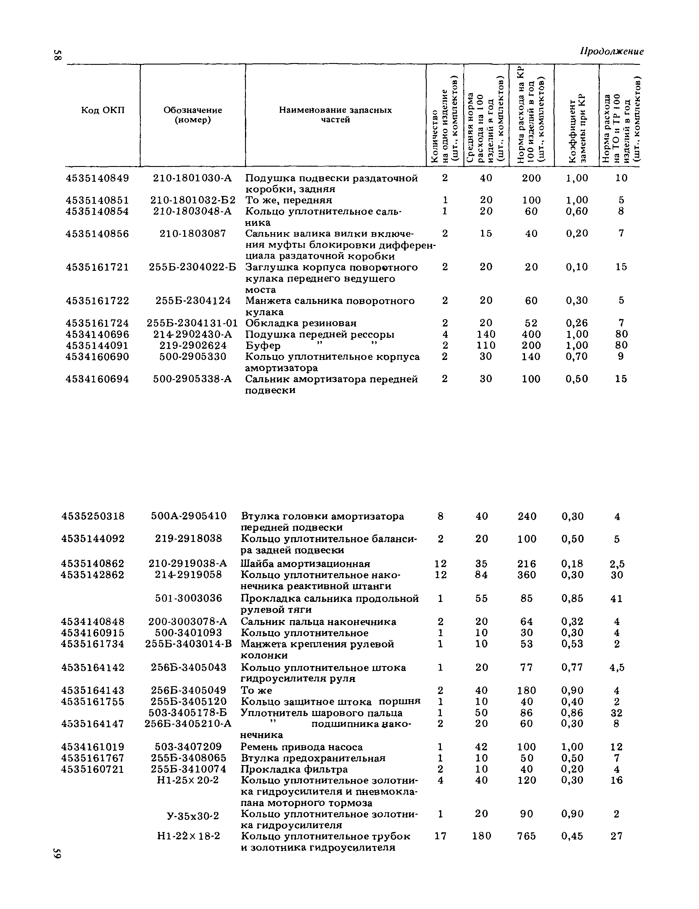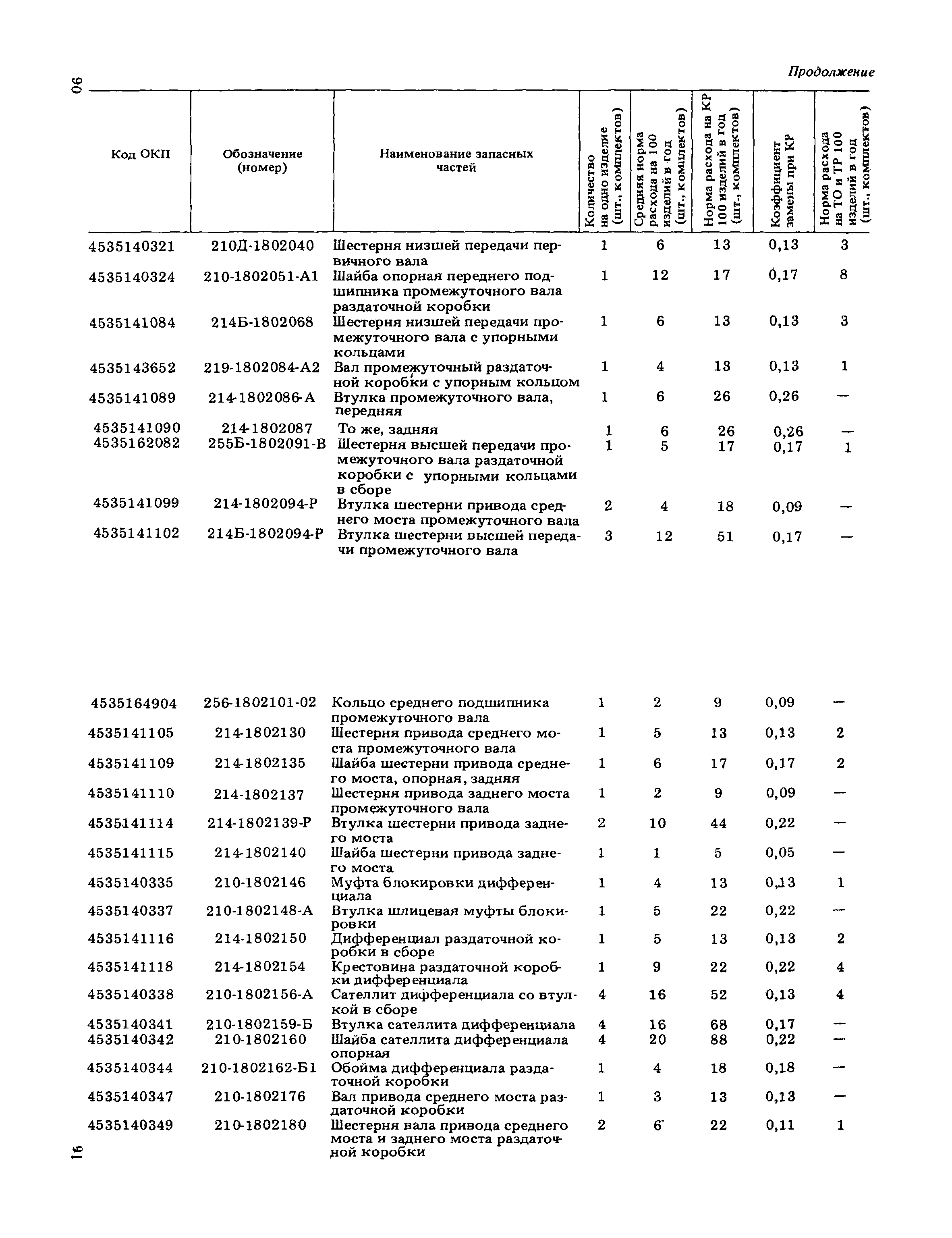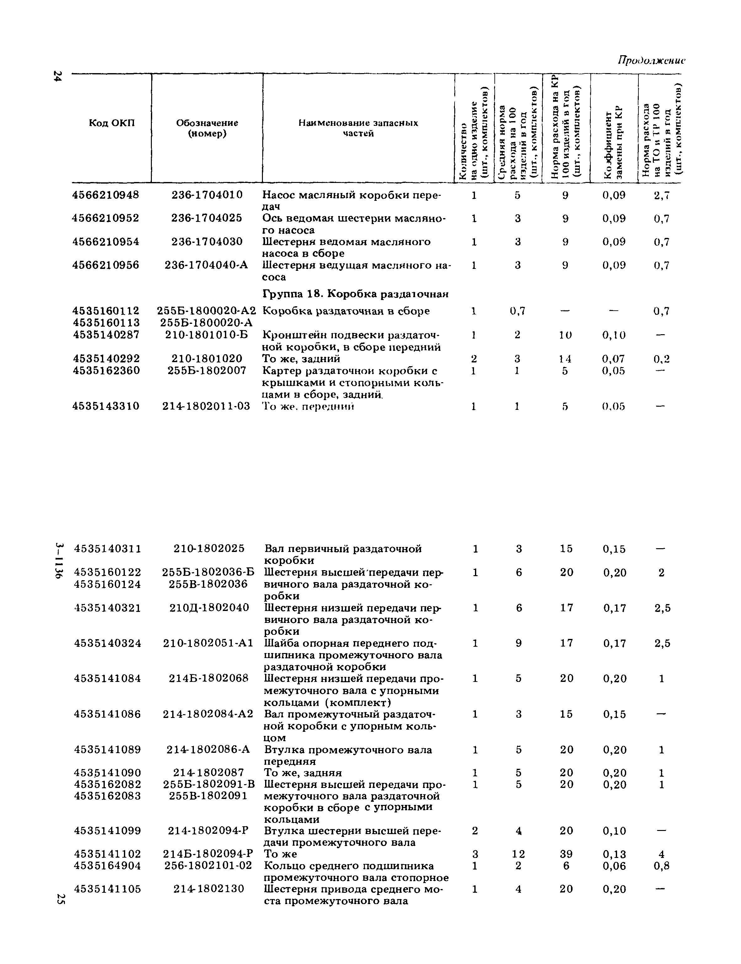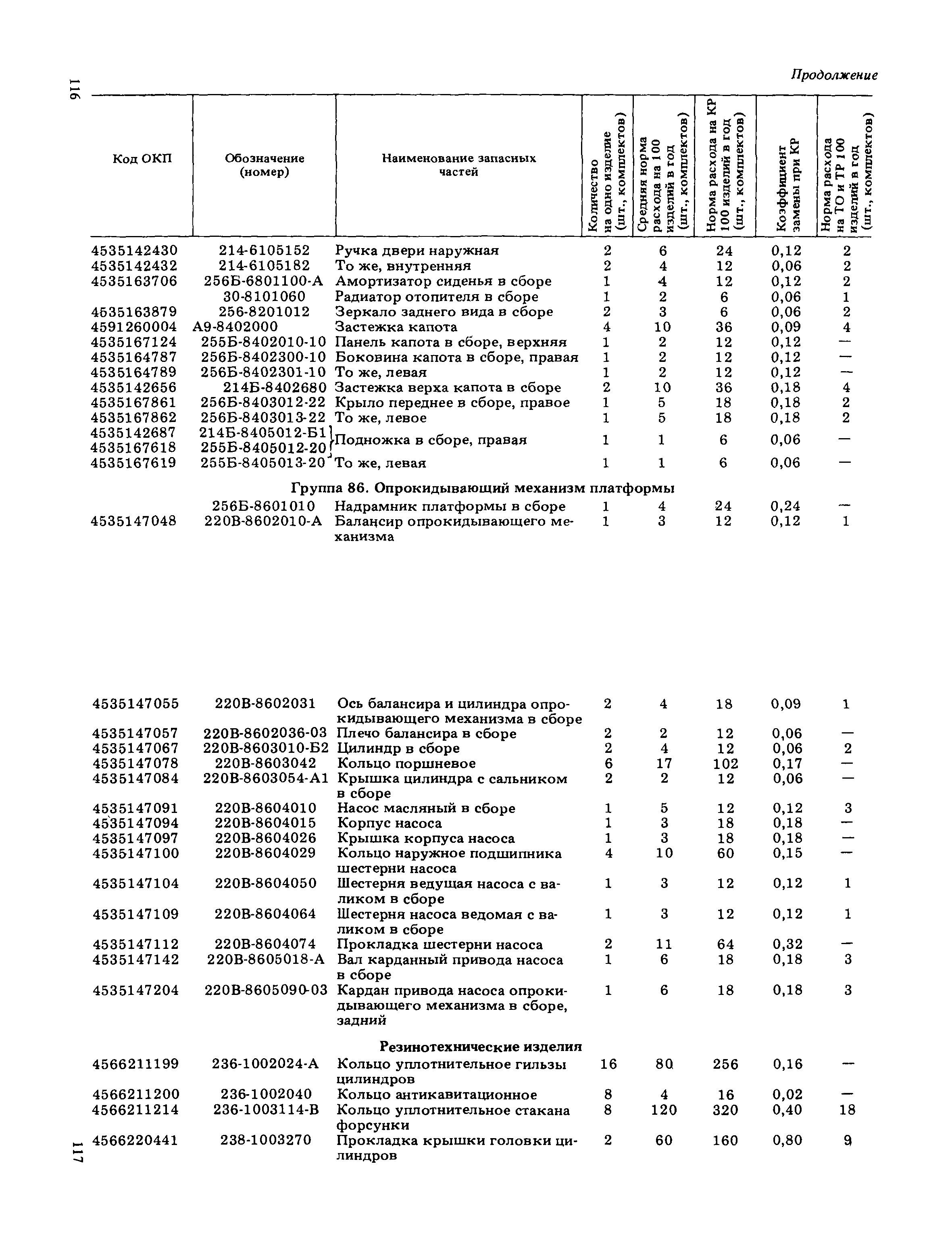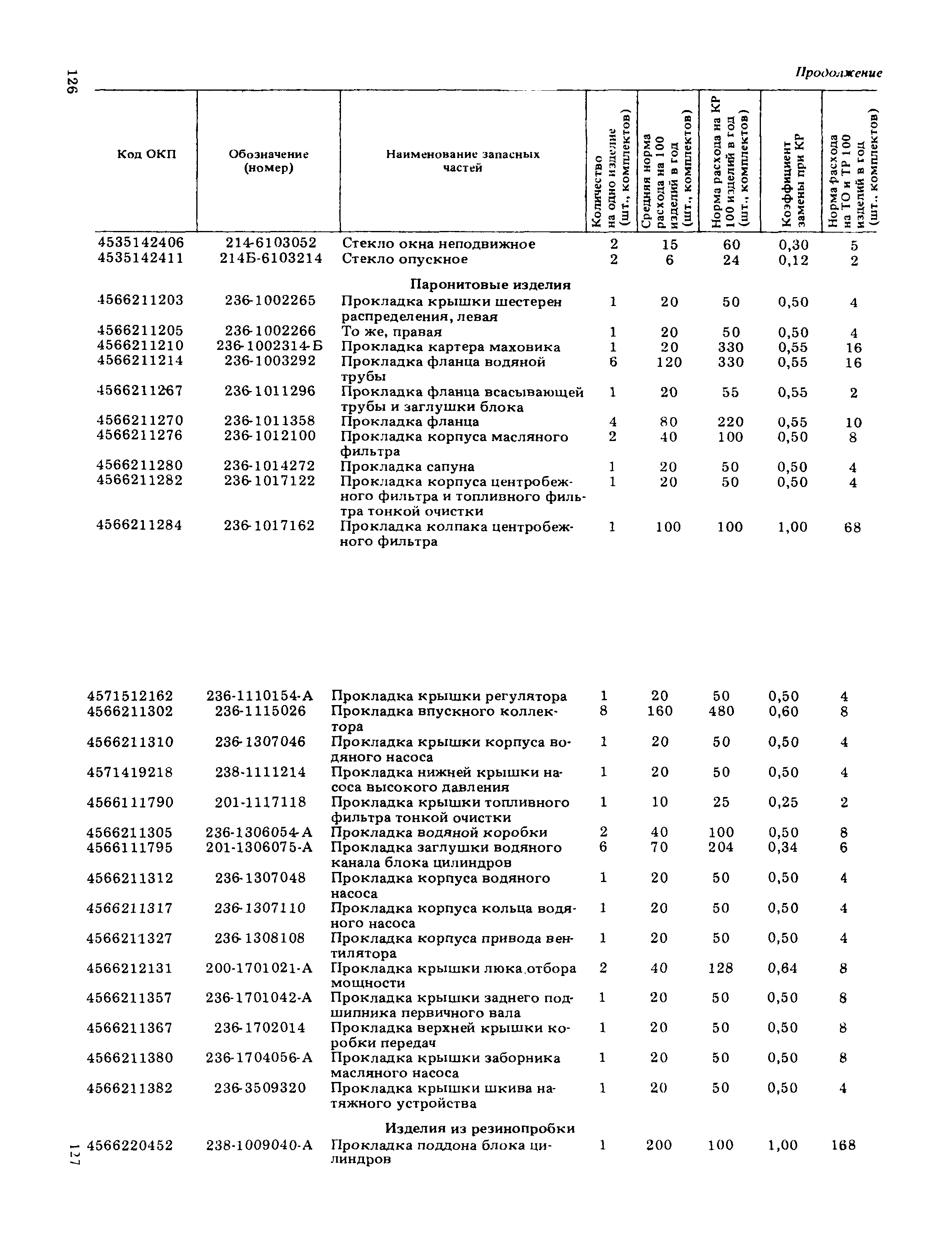 нормы расхода запасных частей на ремонтно-эксплуатационные нужды для автомобилей КрАЗ-256Б,