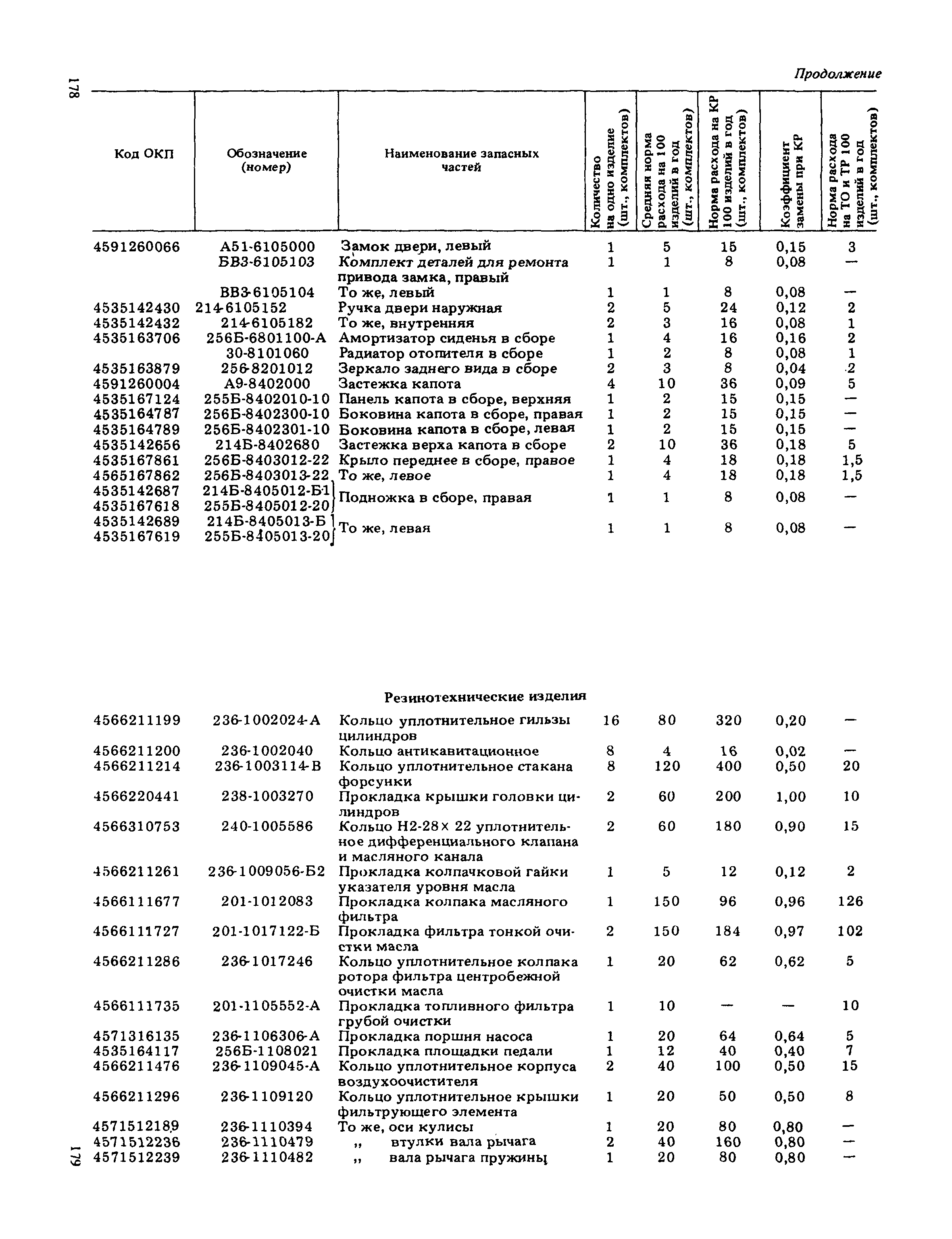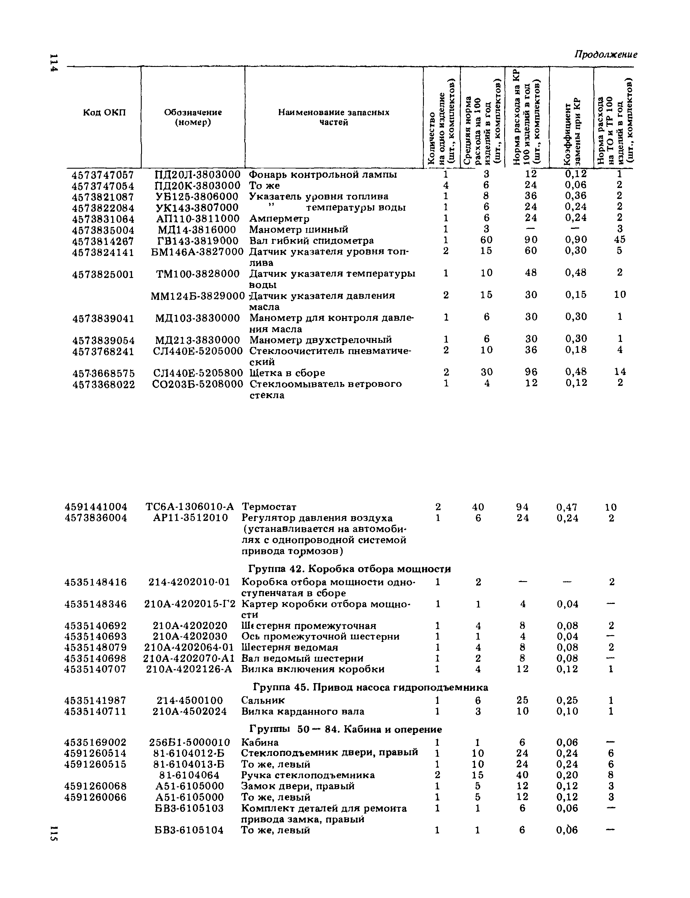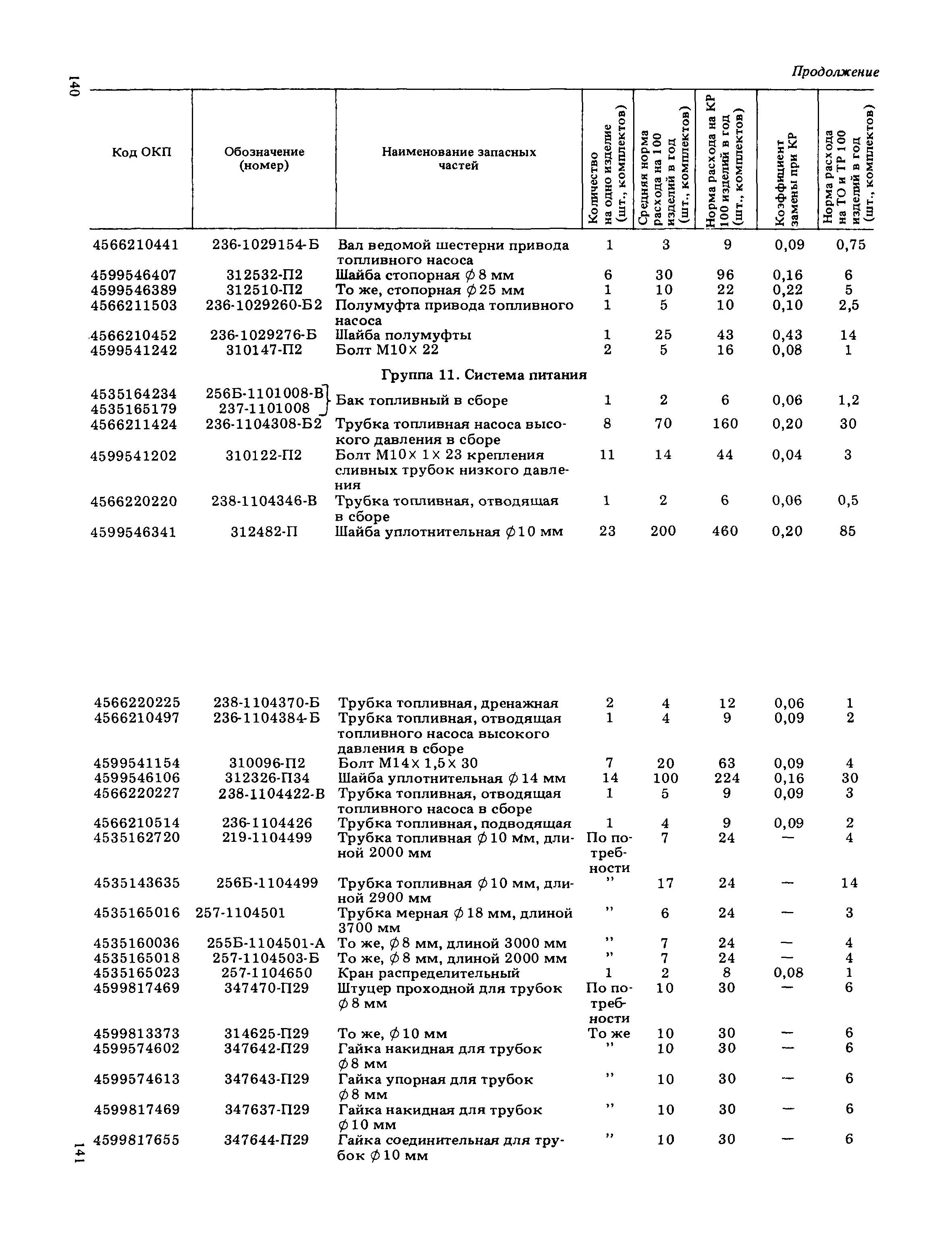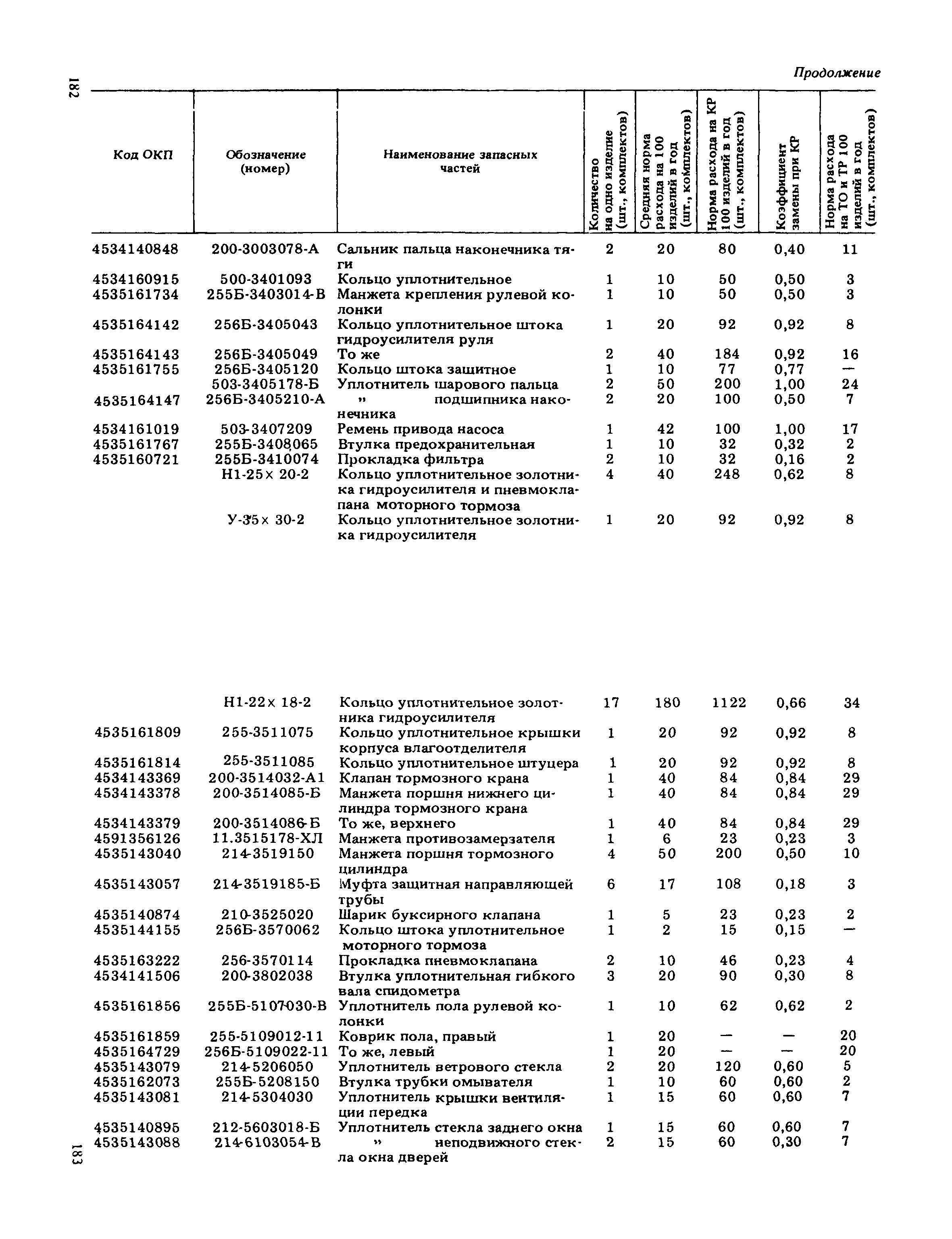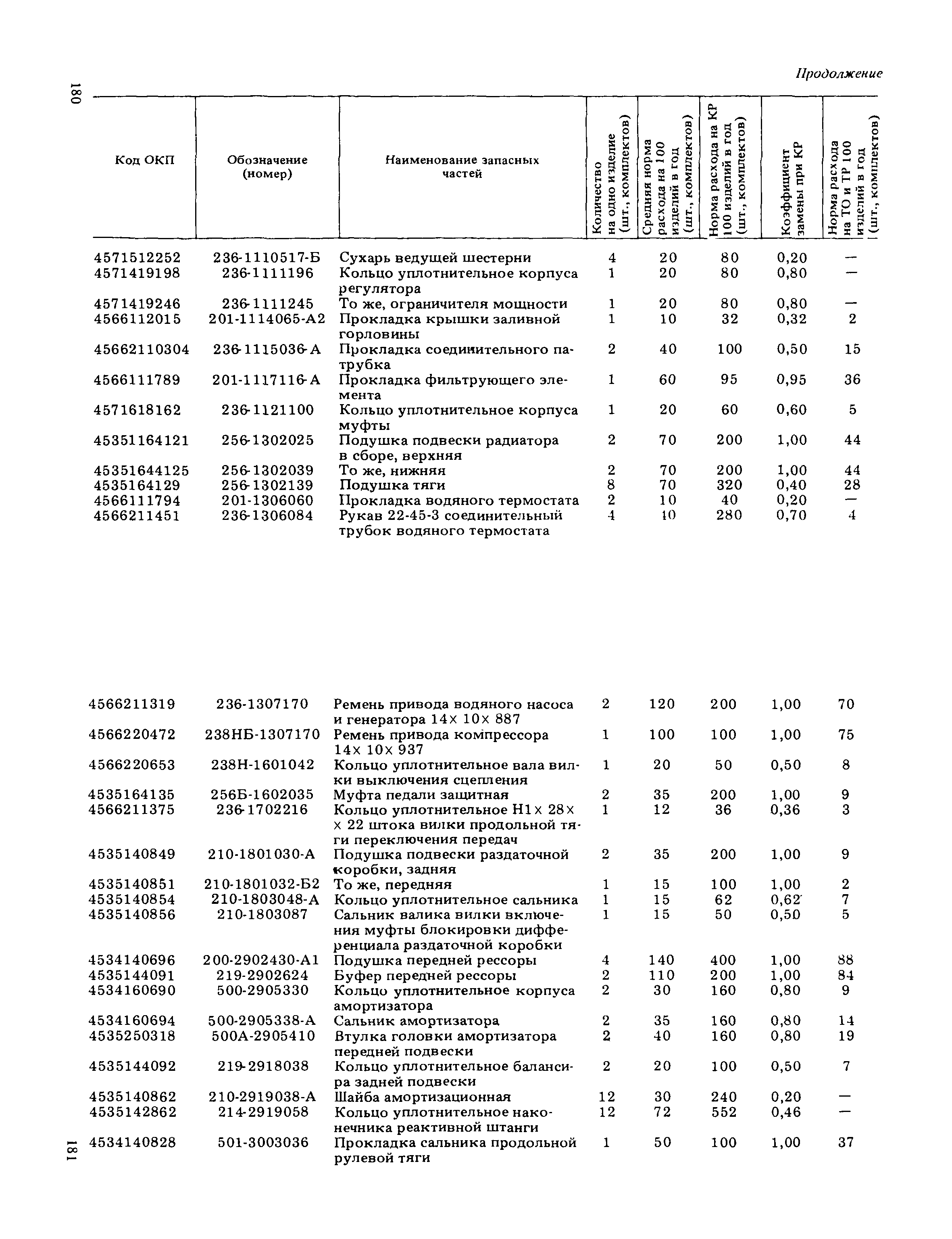 нормы расхода запасных частей на ремонтно-эксплуатационные нужды для автомобилей КрАЗ-256Б,
