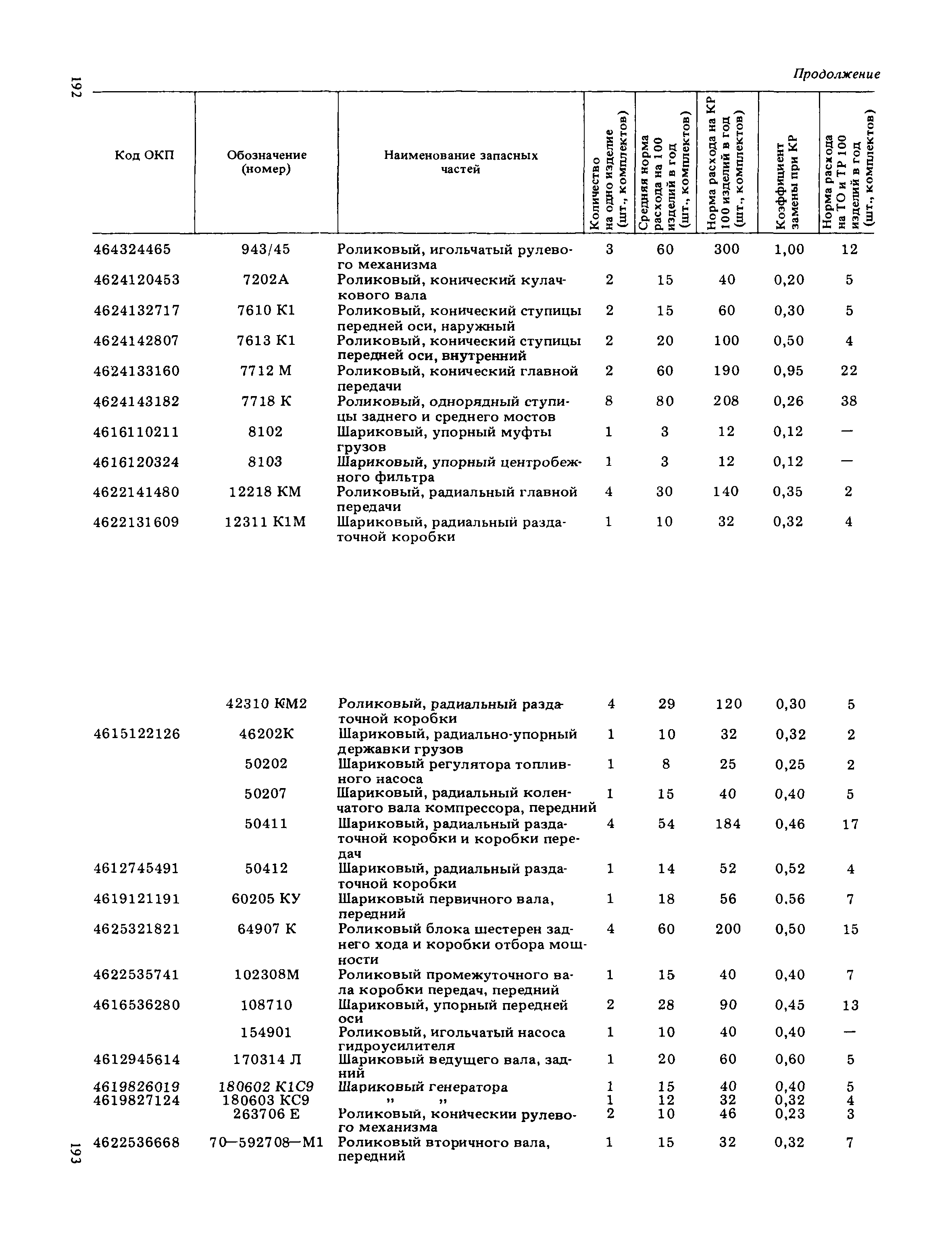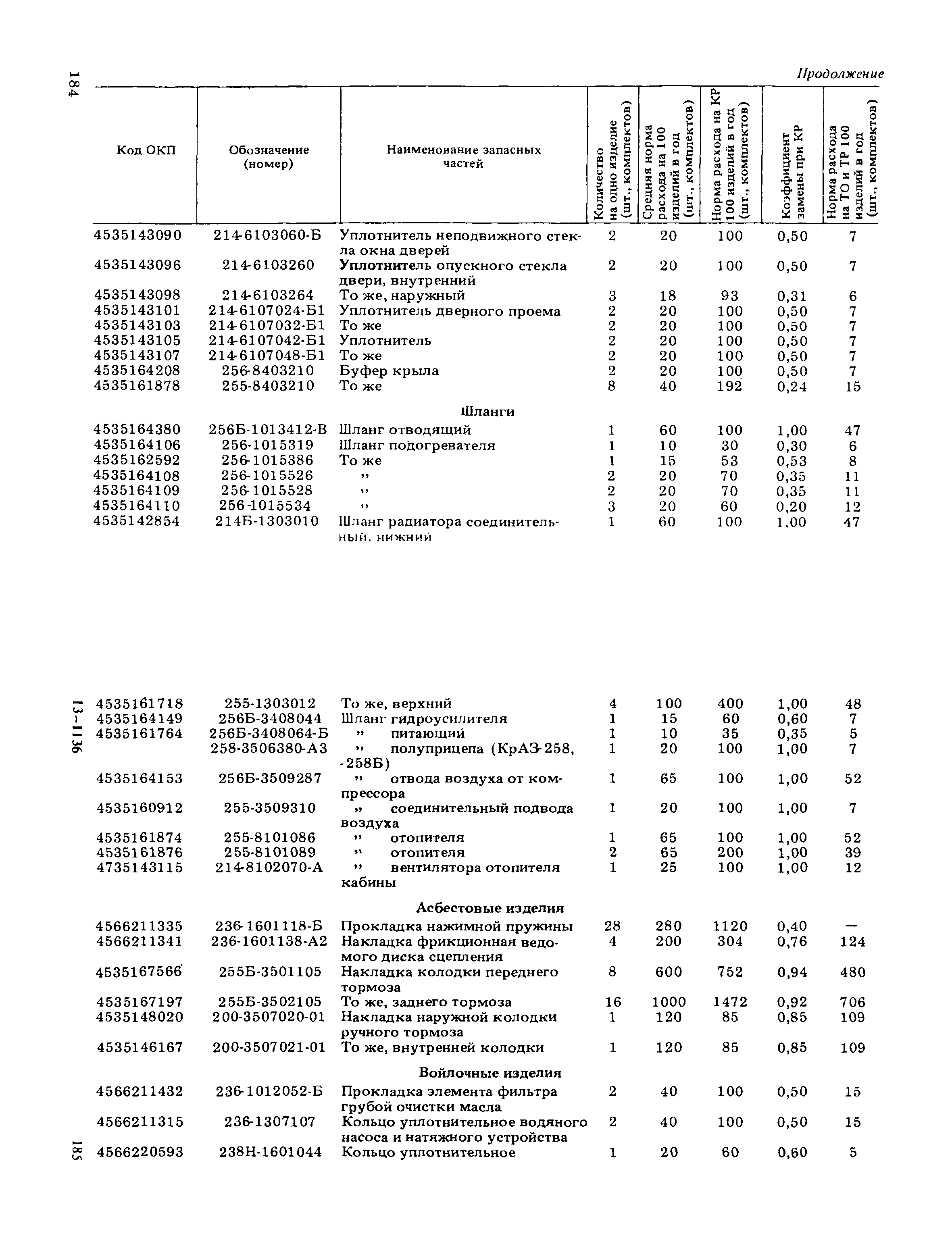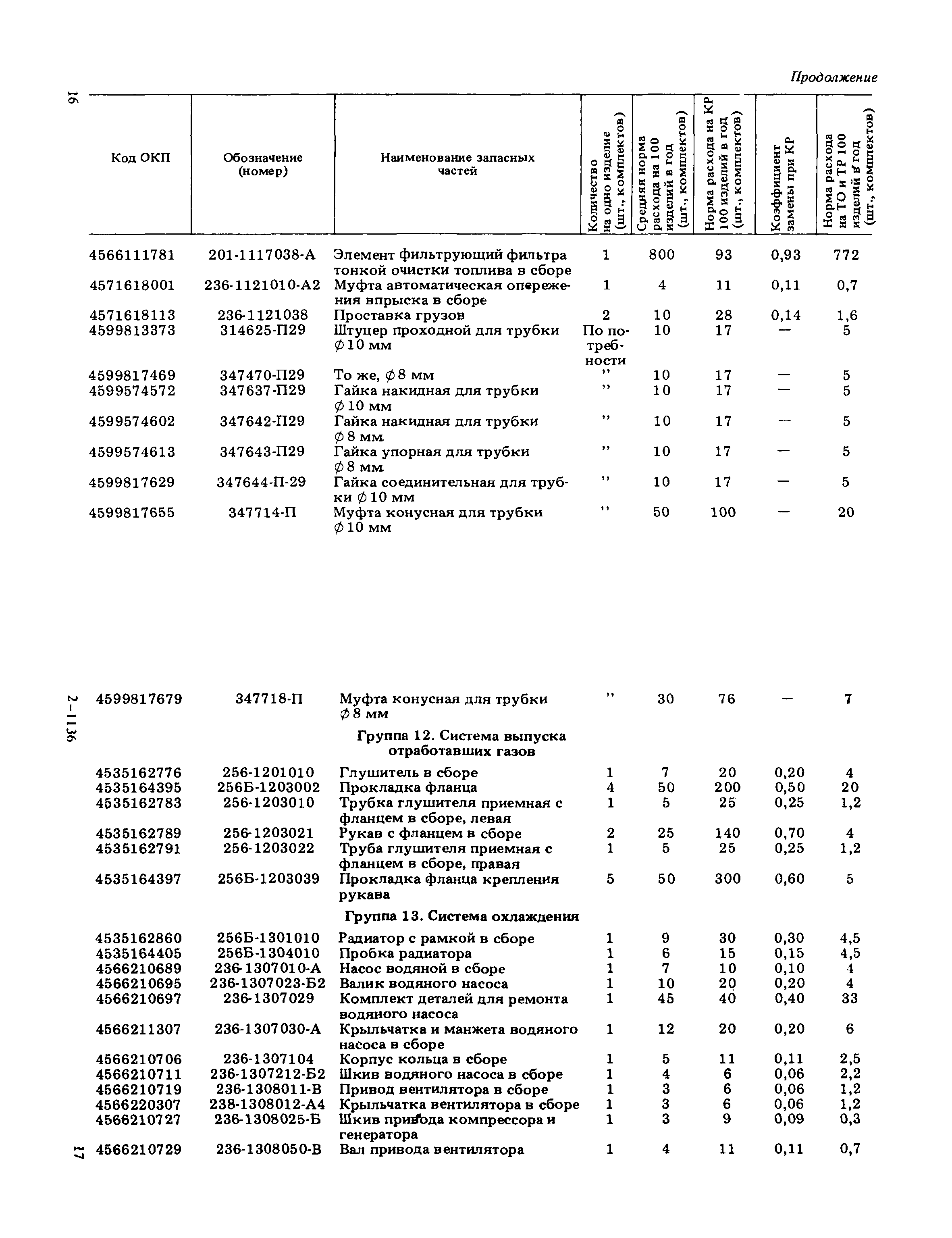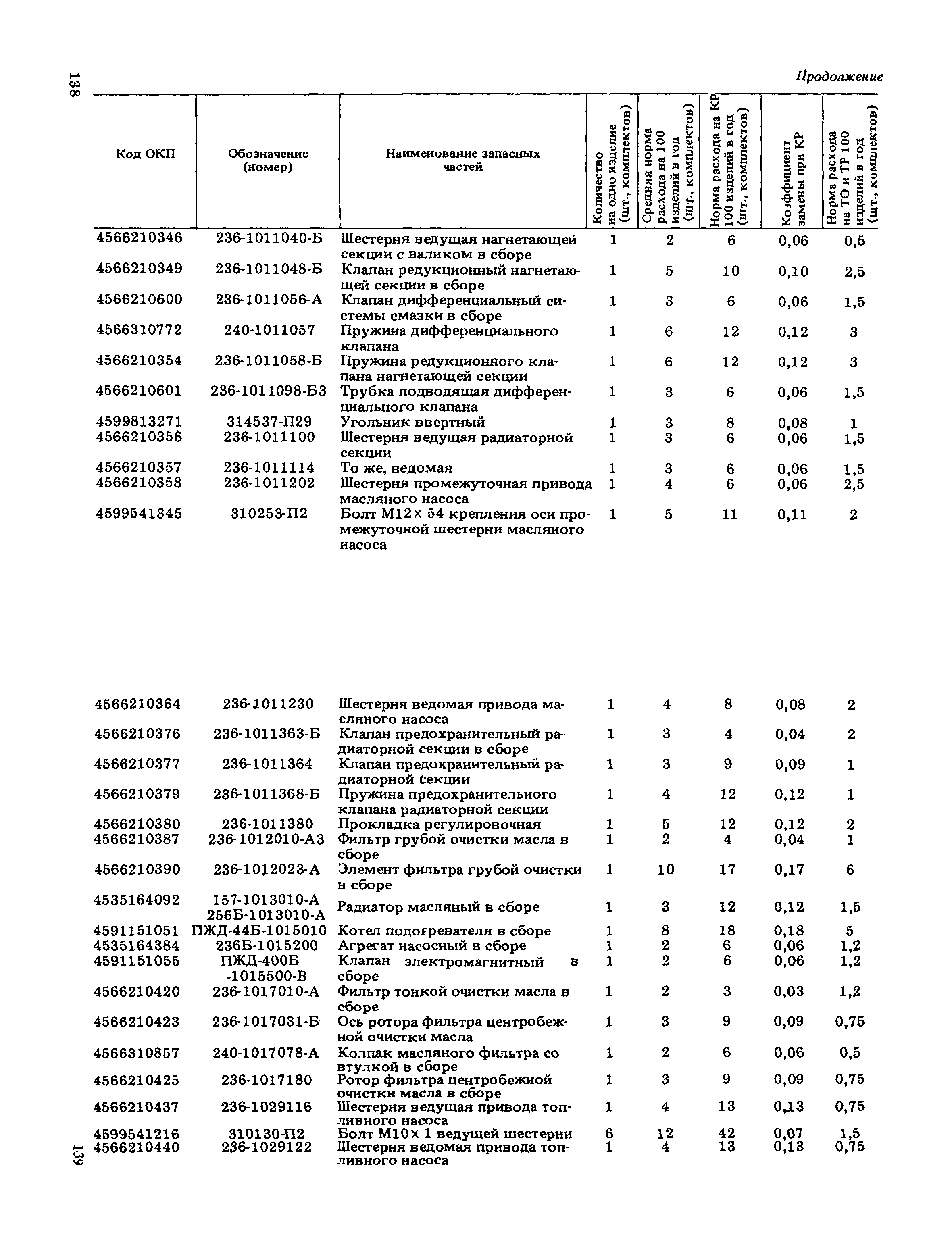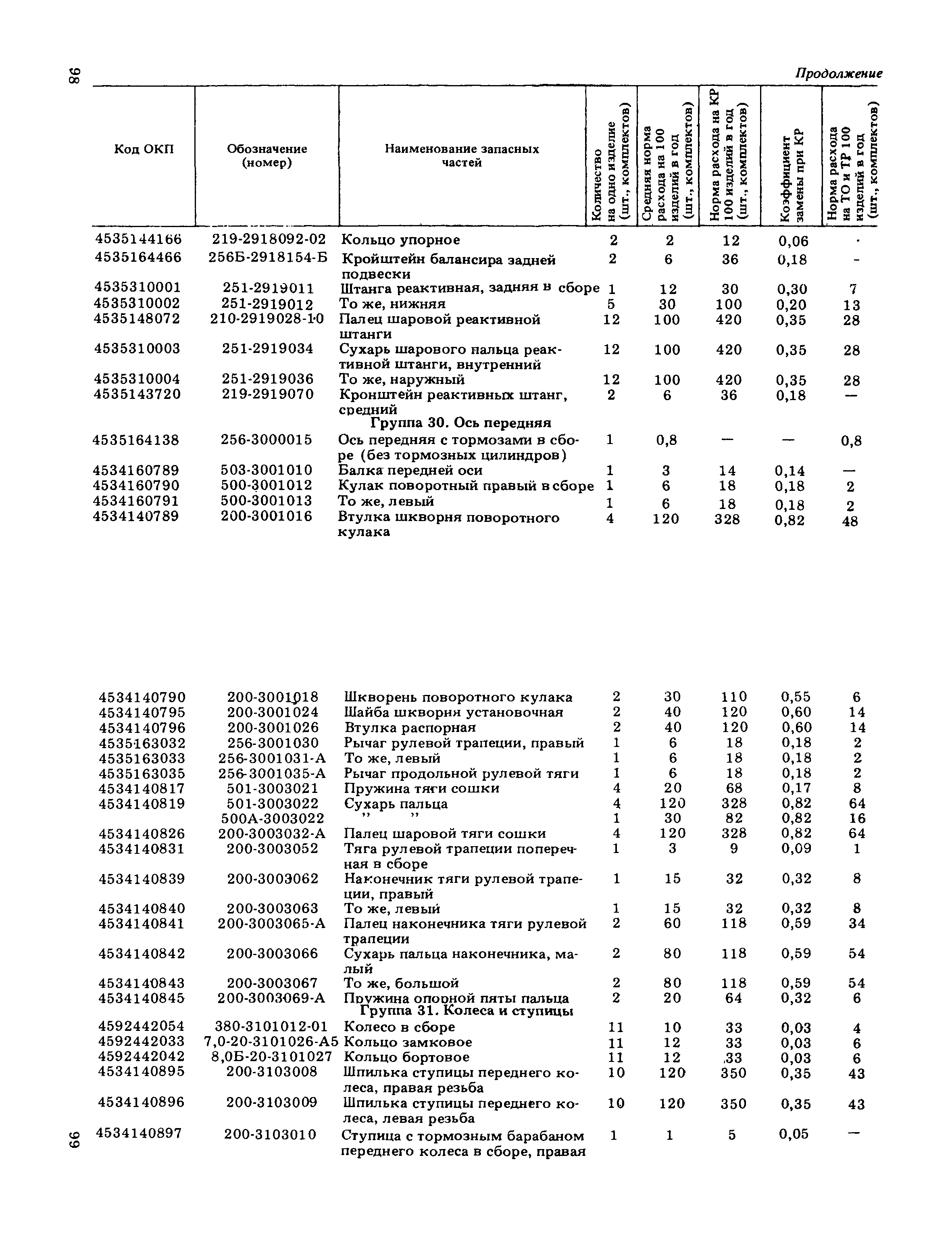 нормы расхода запасных частей на ремонтно-эксплуатационные нужды для автомобилей КрАЗ-256Б,