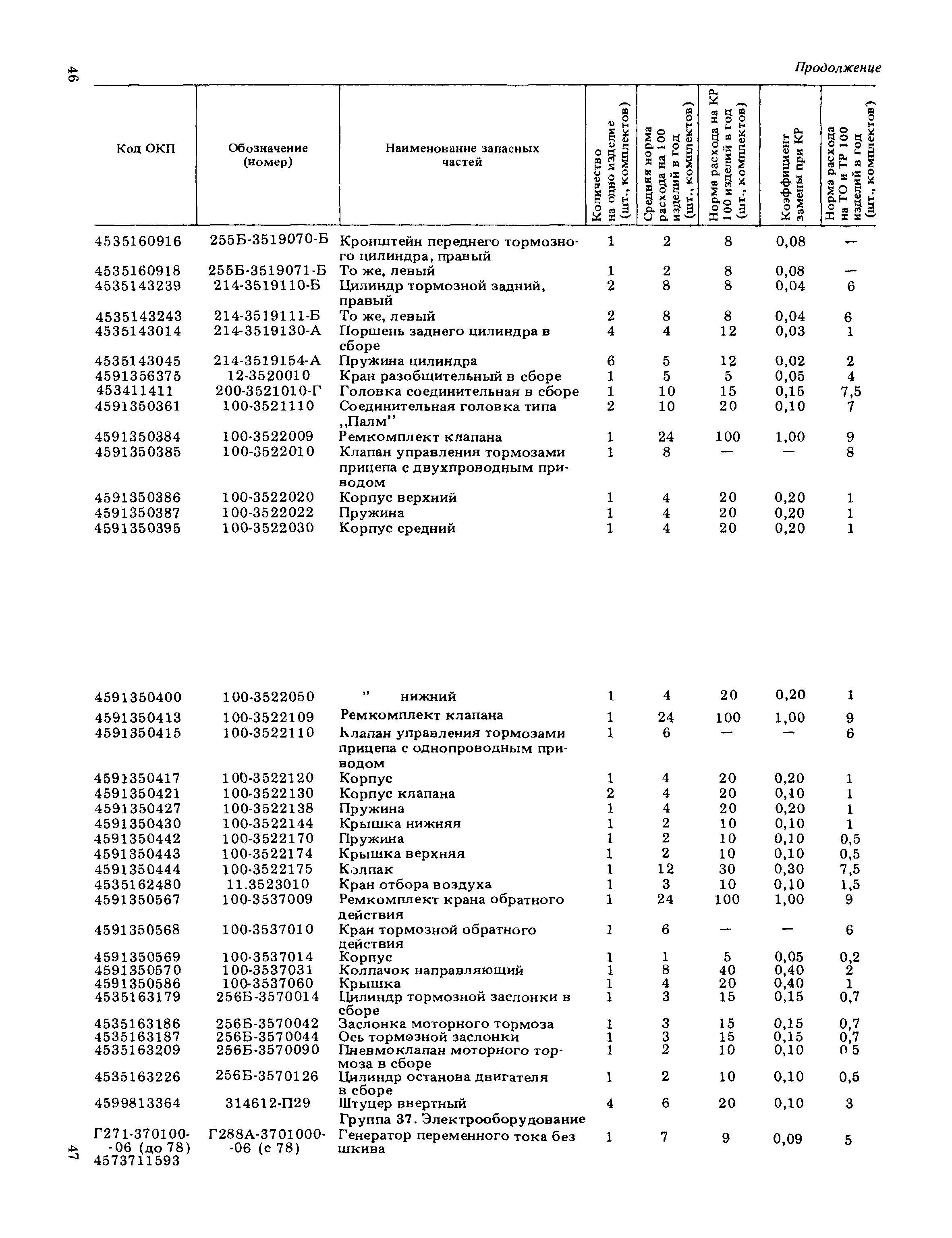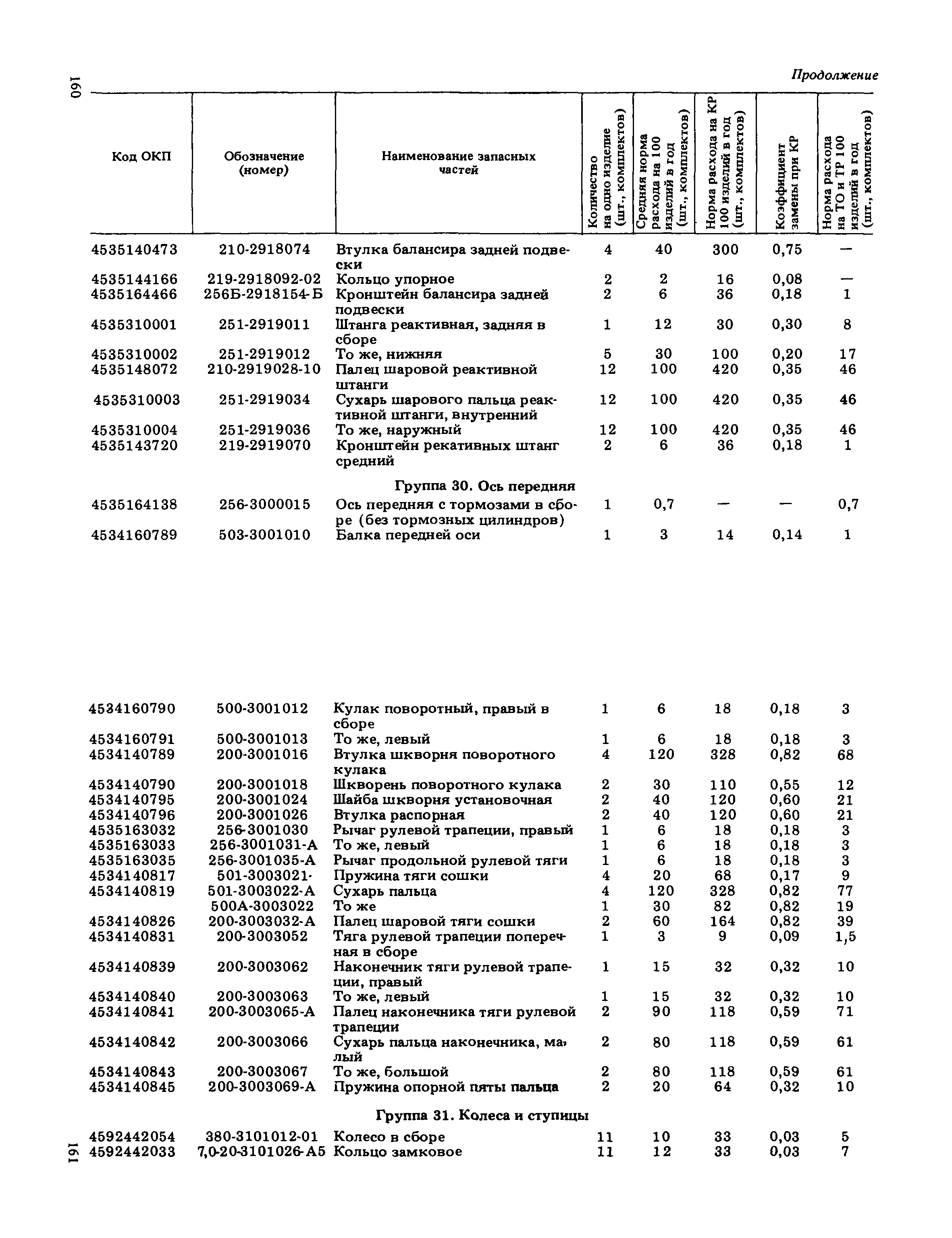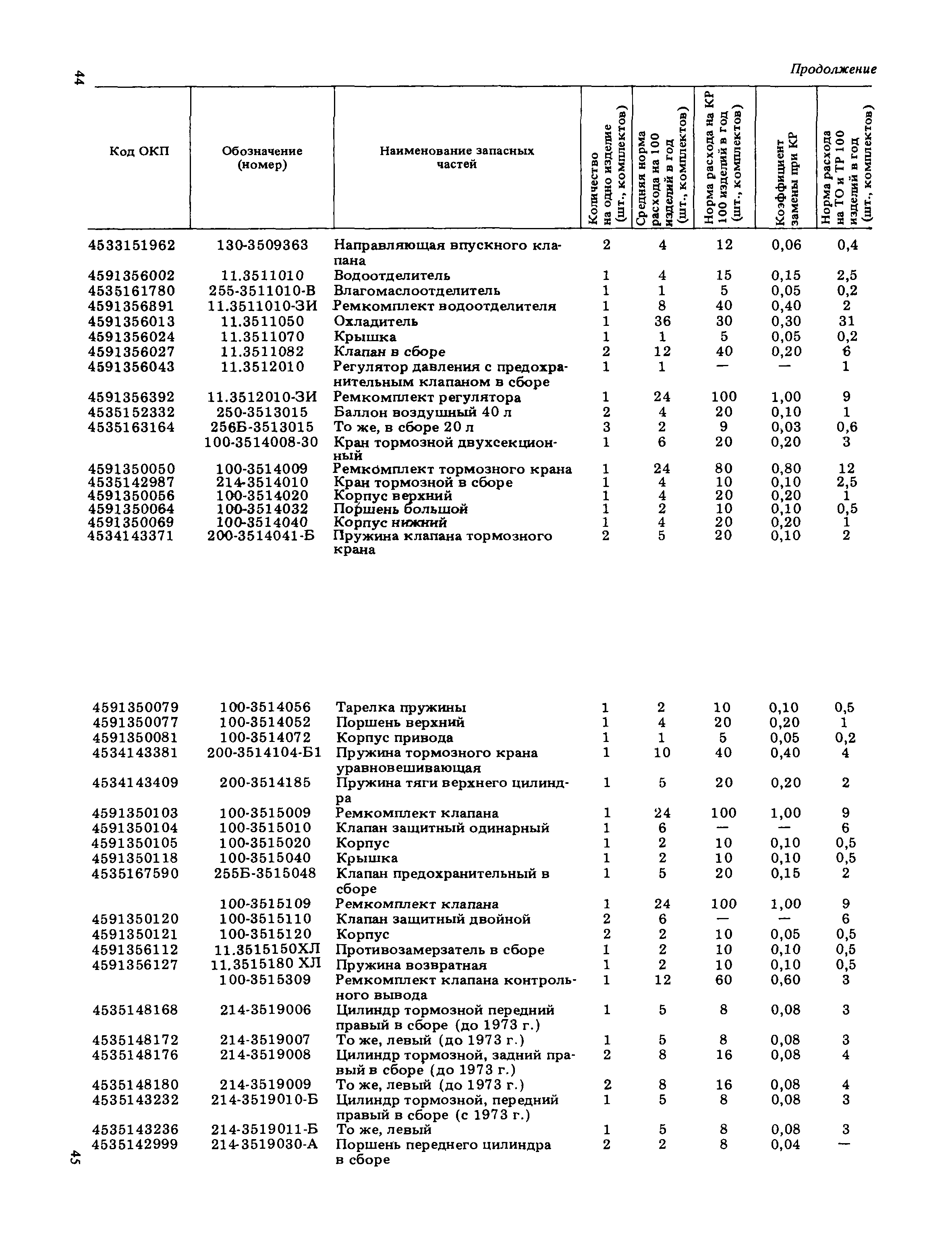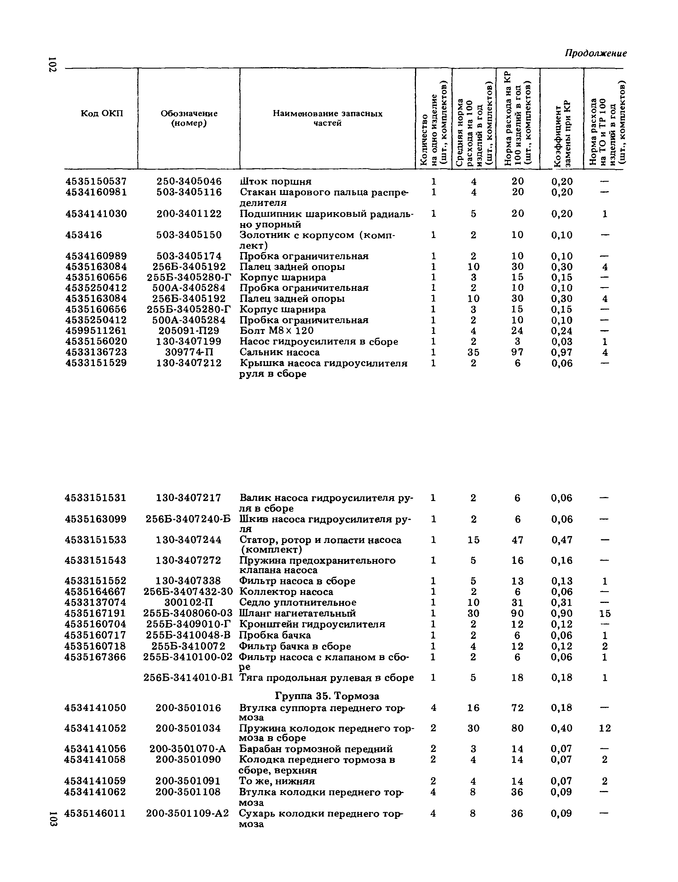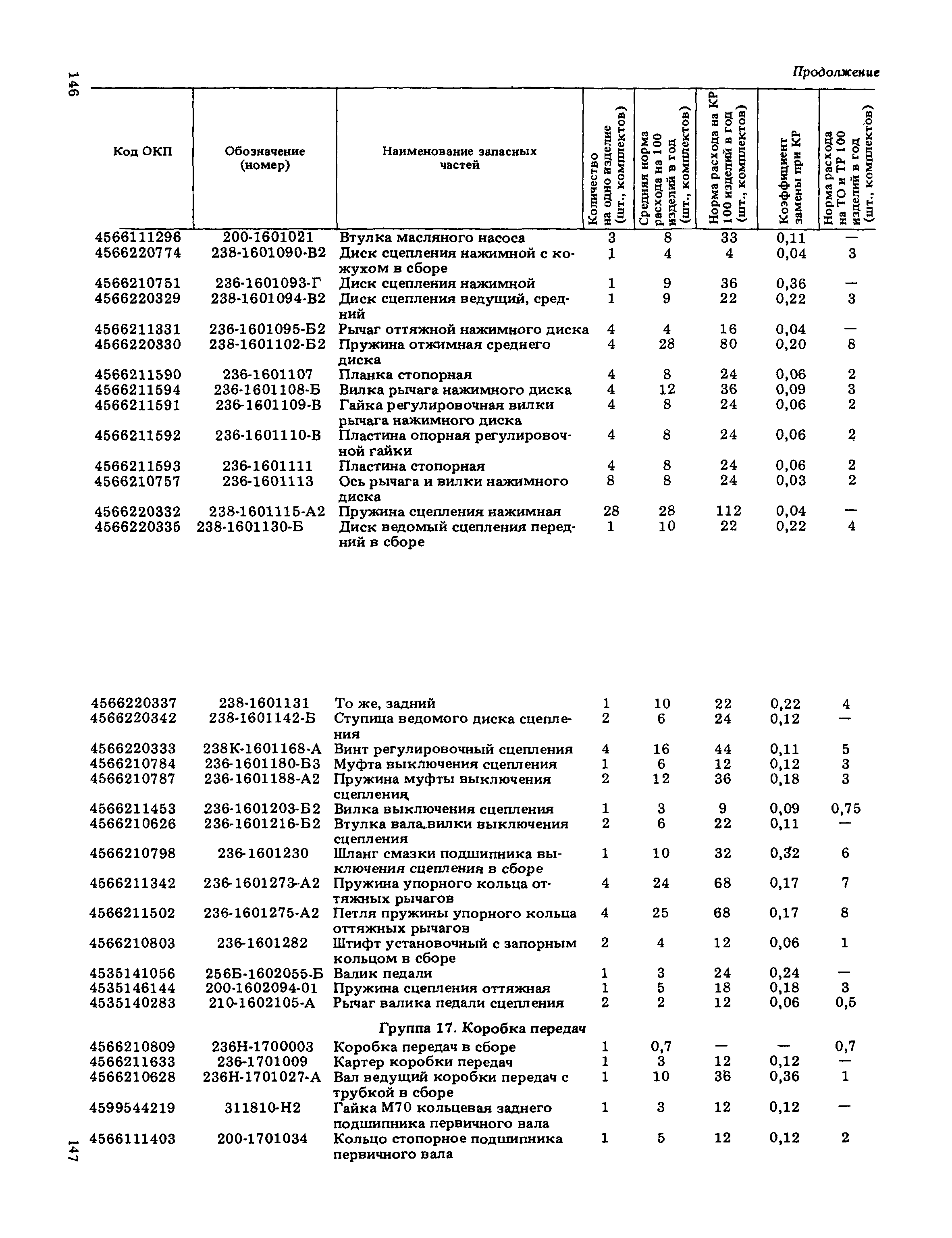 нормы расхода запасных частей на ремонтно-эксплуатационные нужды для автомобилей КрАЗ-256Б,