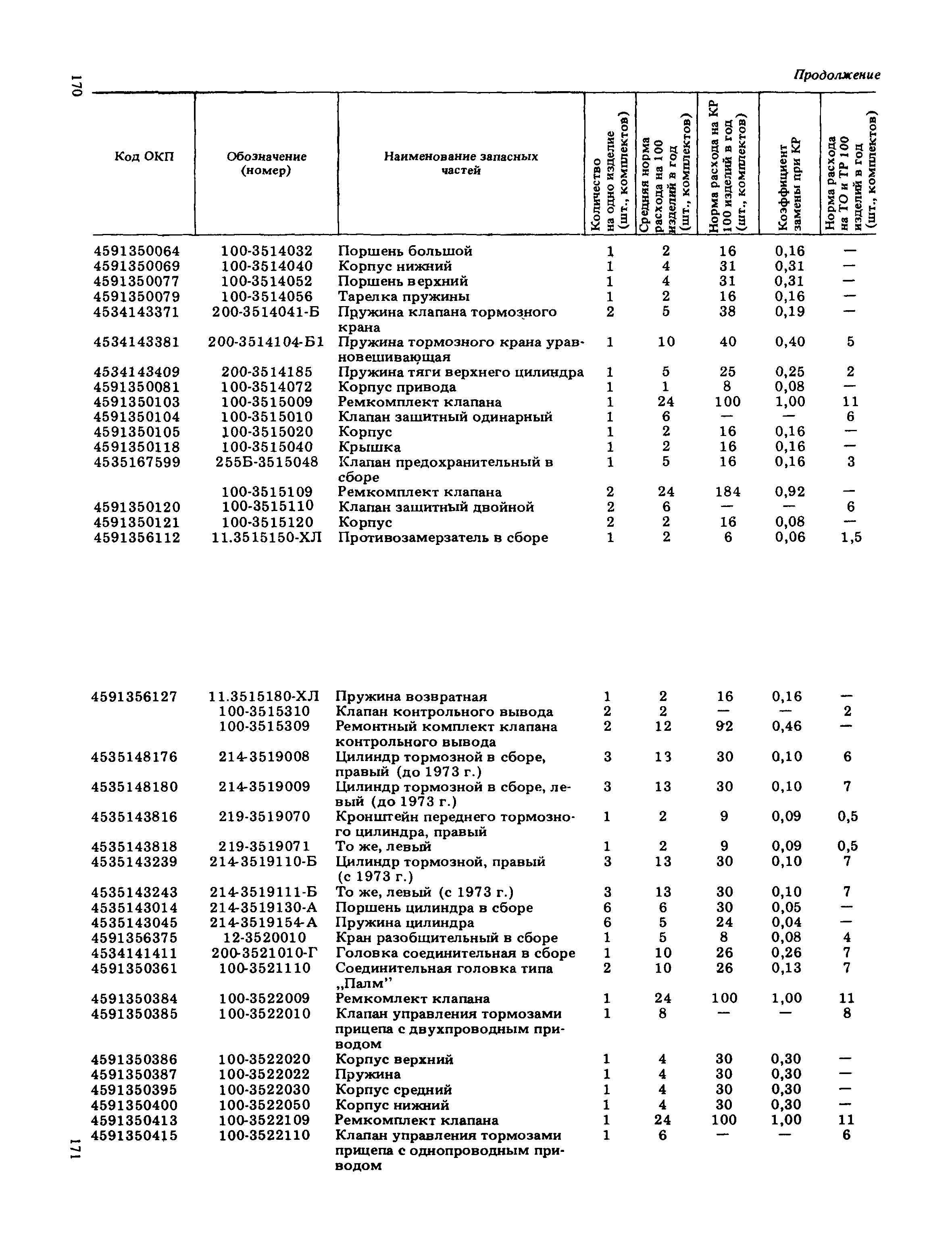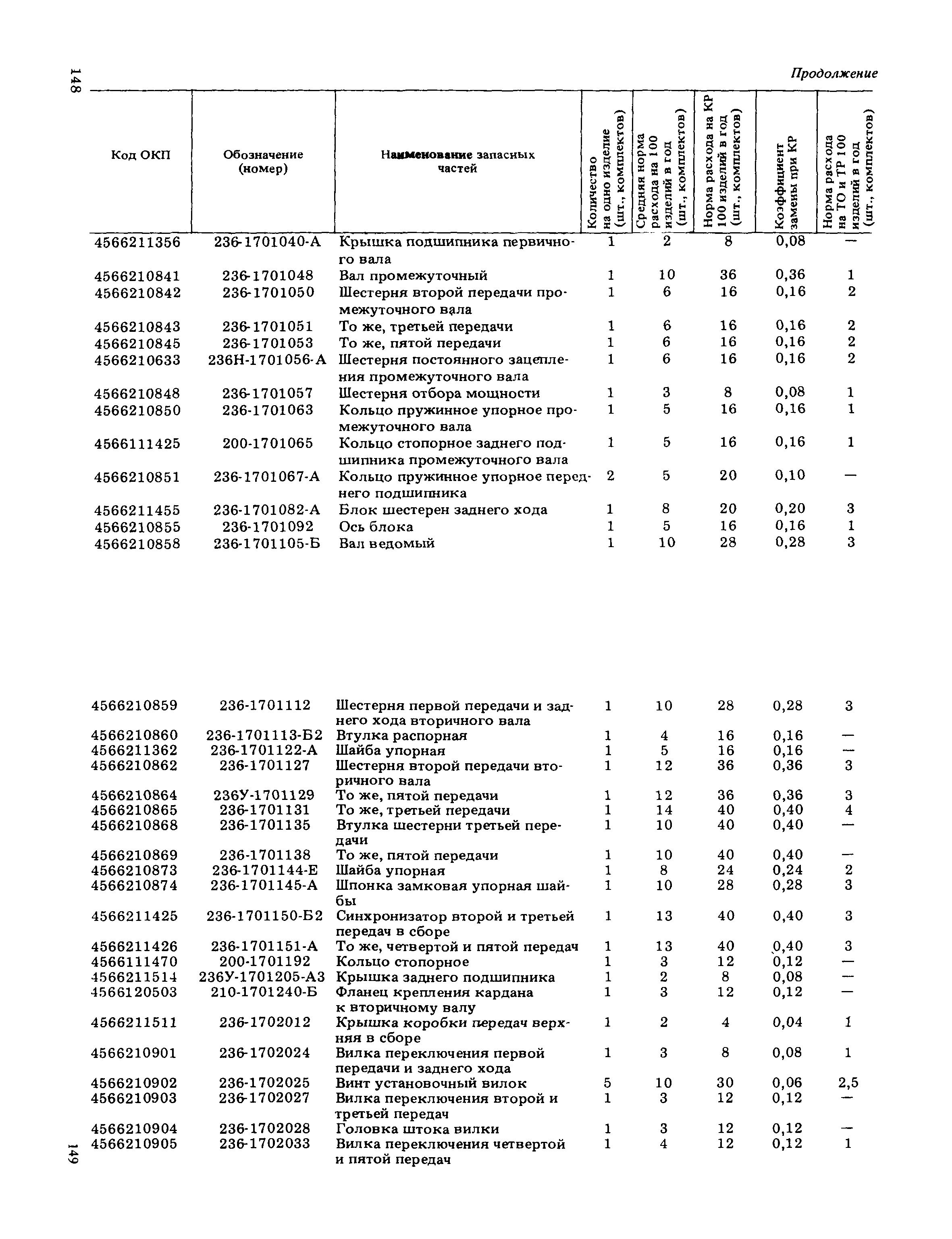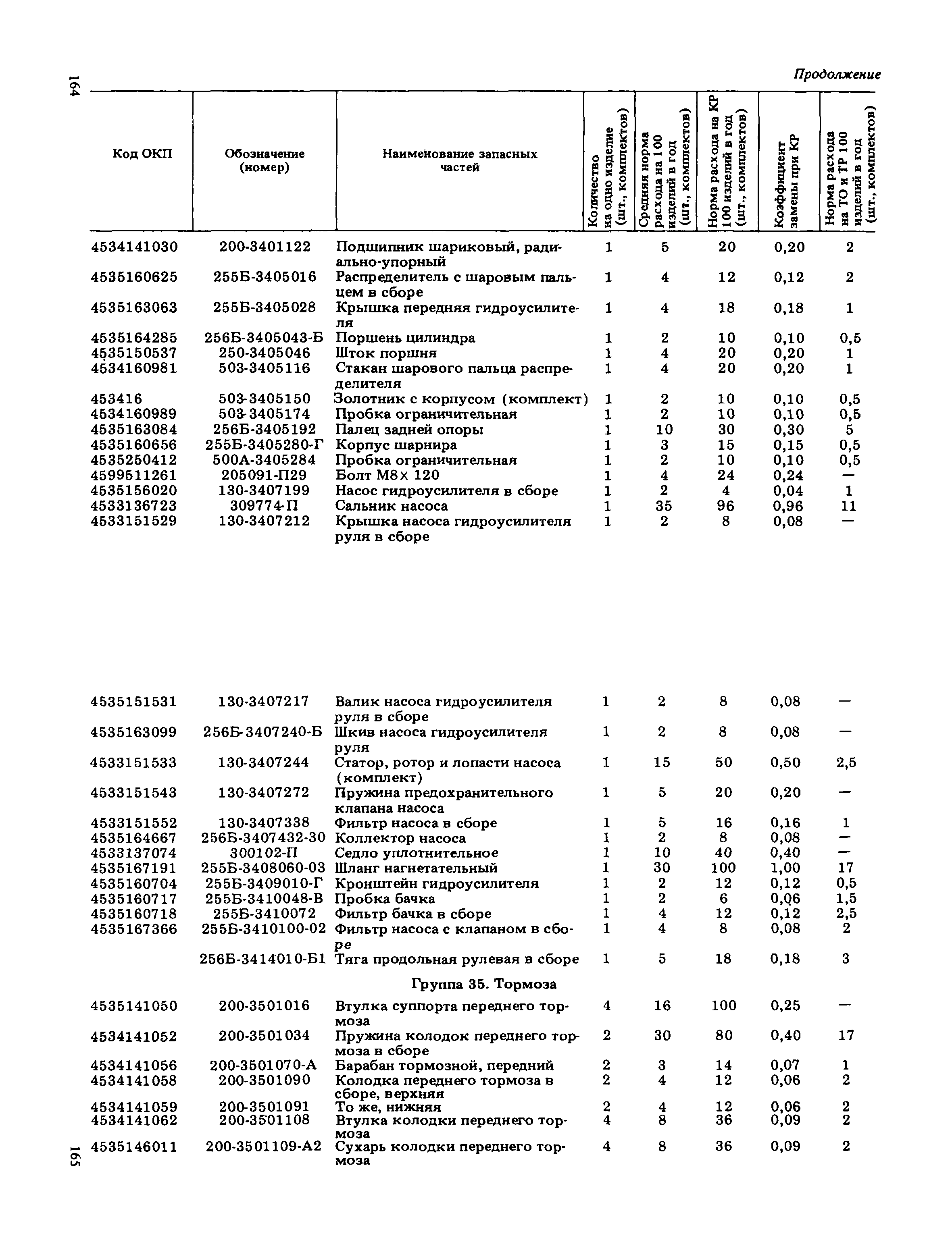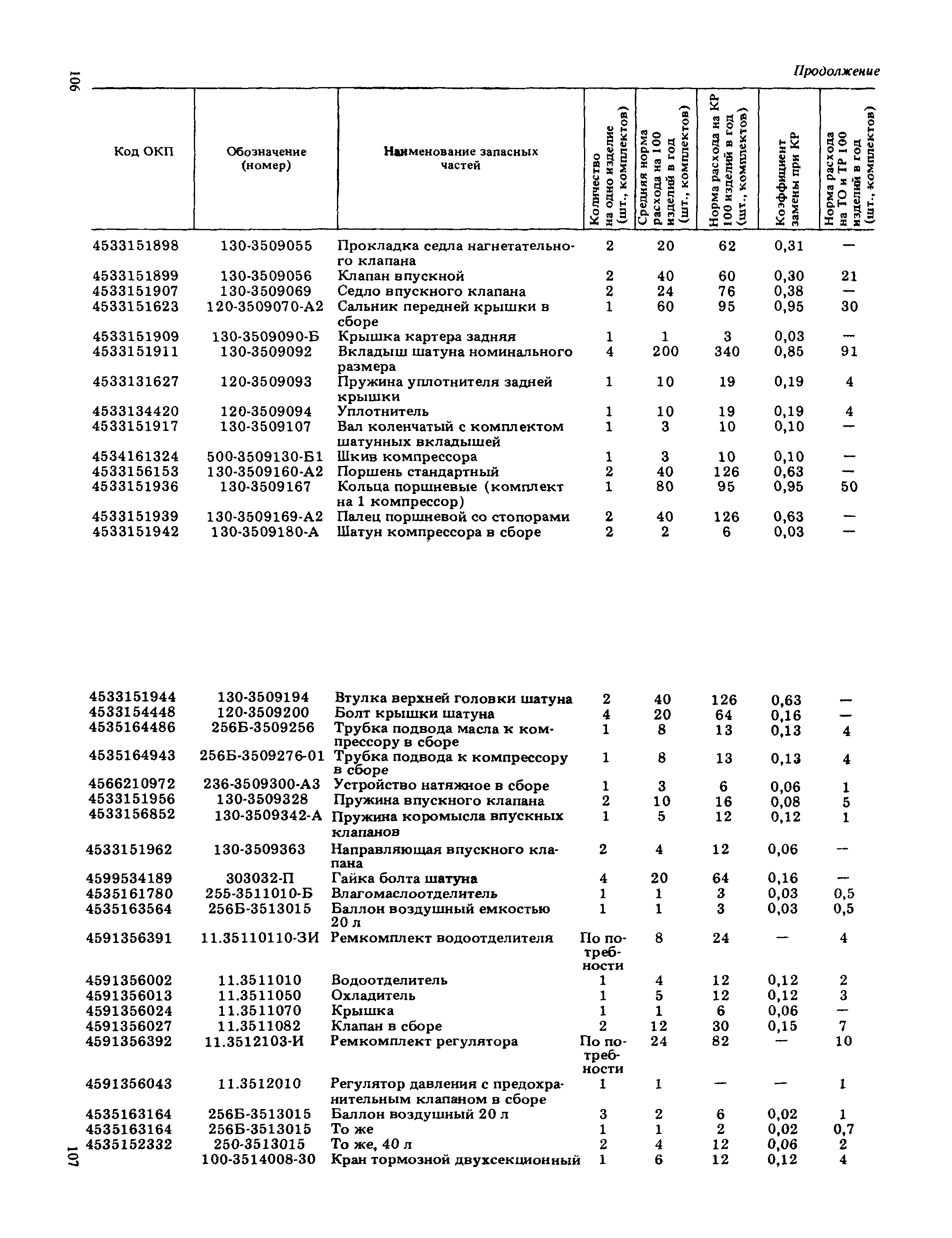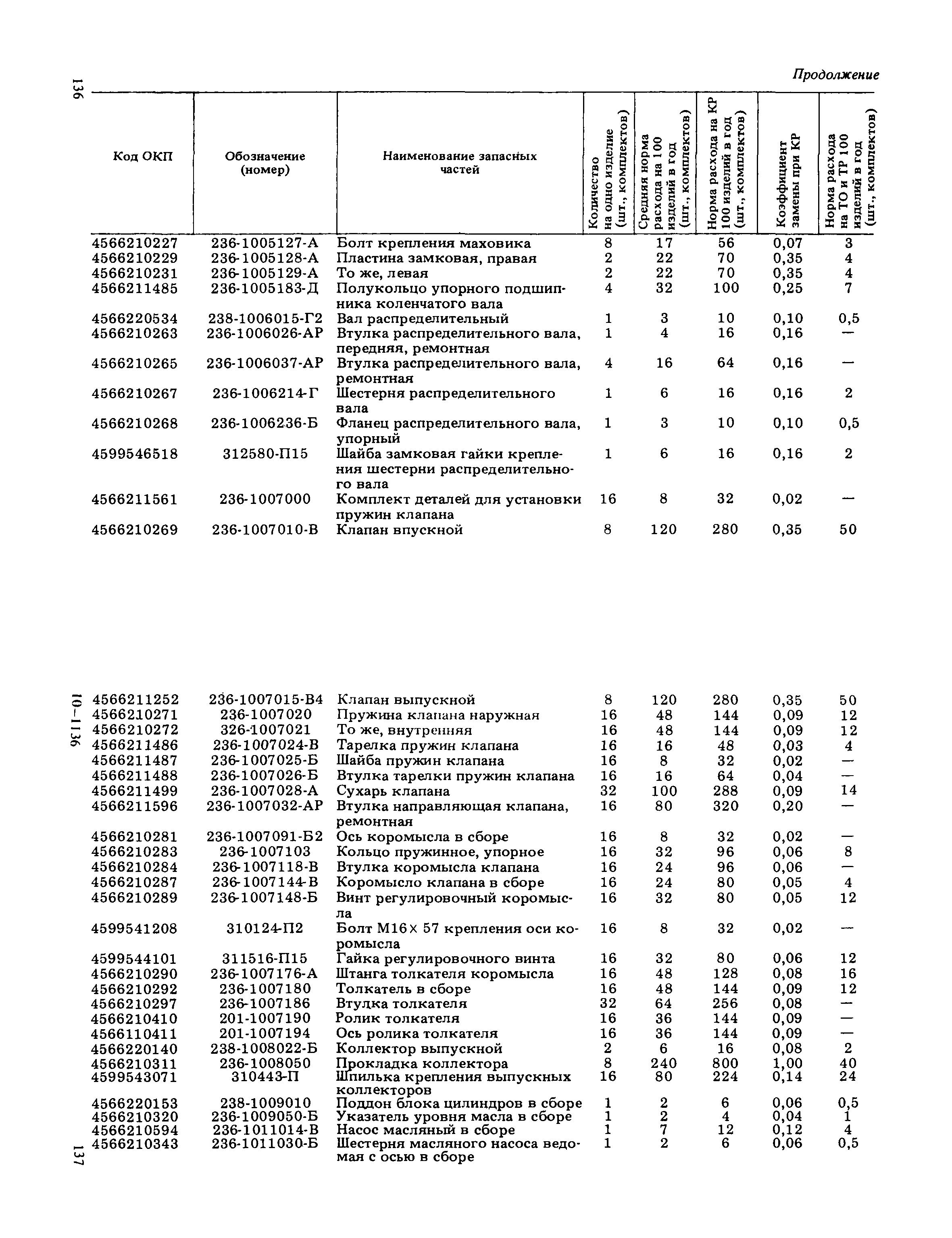 нормы расхода запасных частей на ремонтно-эксплуатационные нужды для автомобилей КрАЗ-256Б,