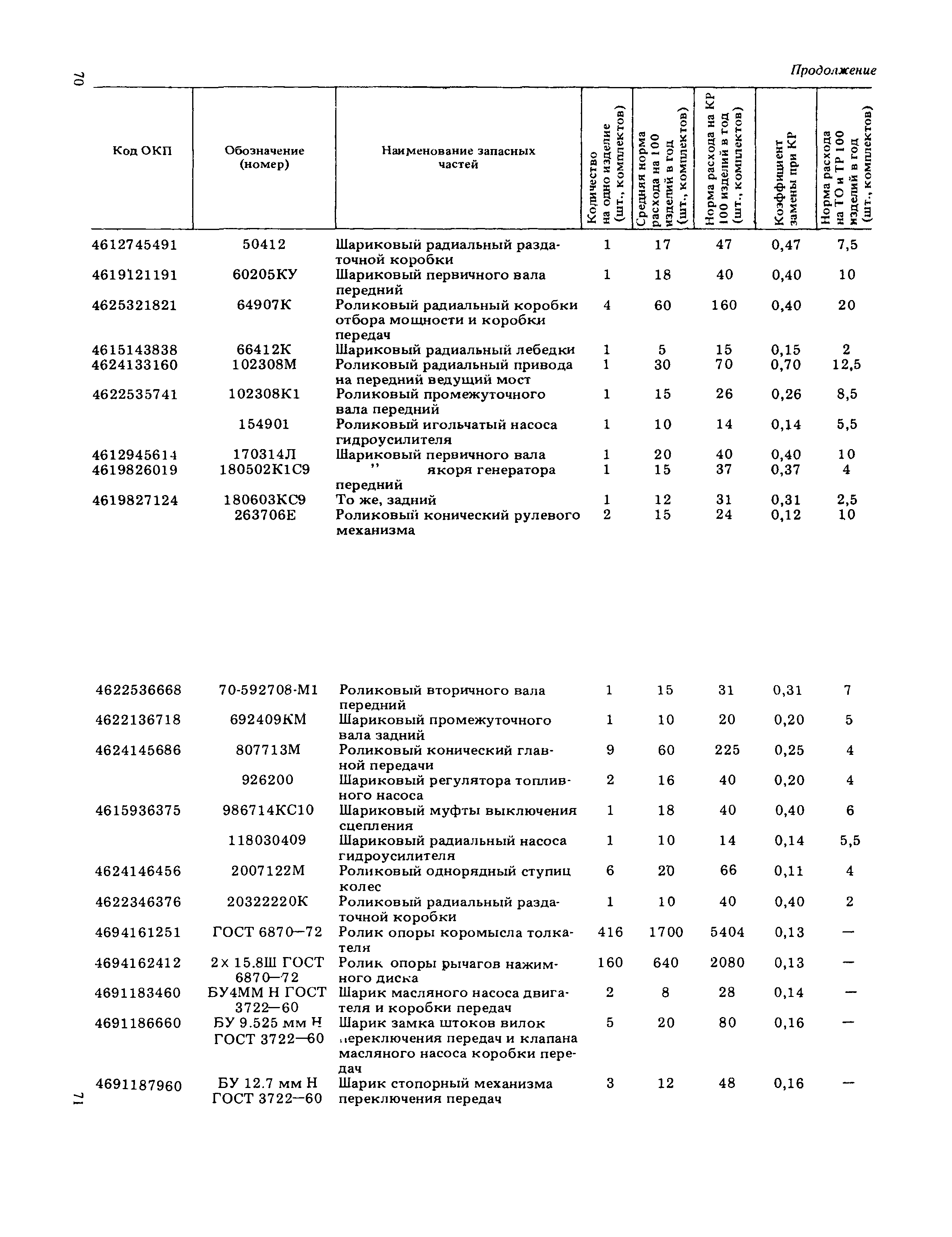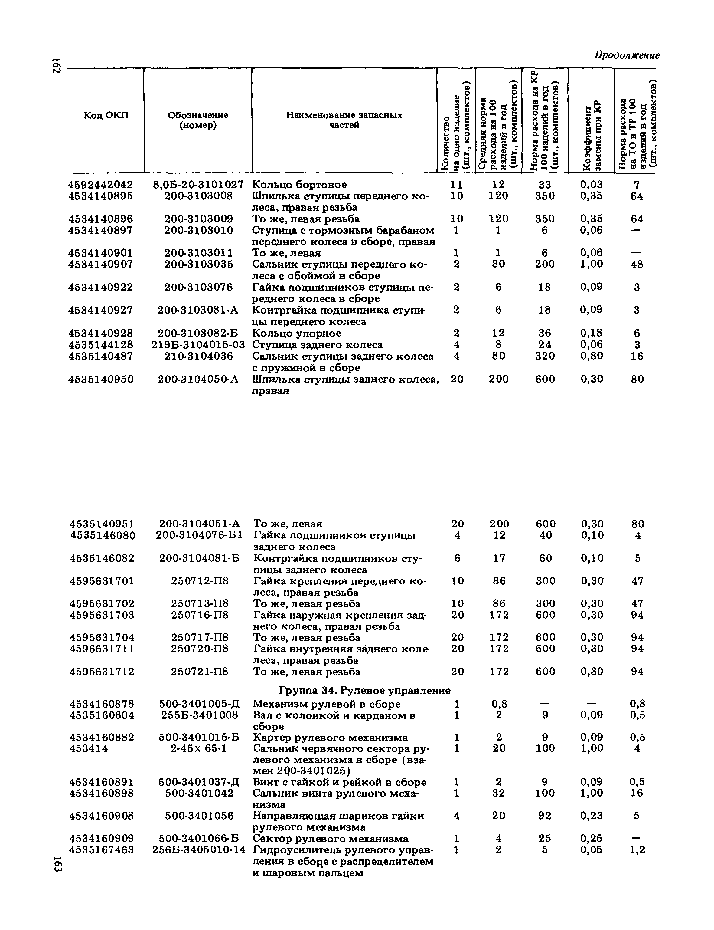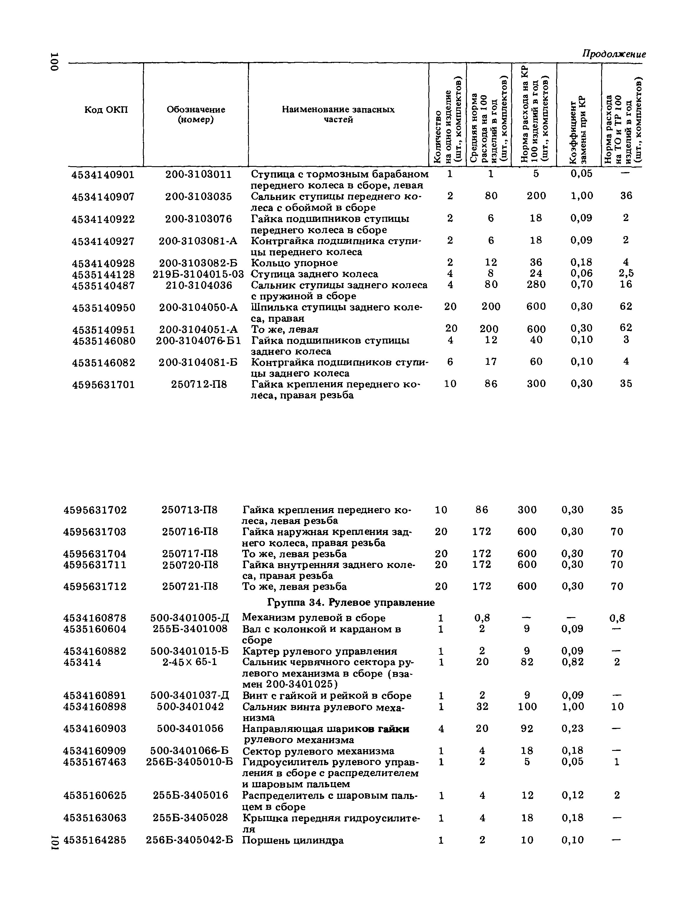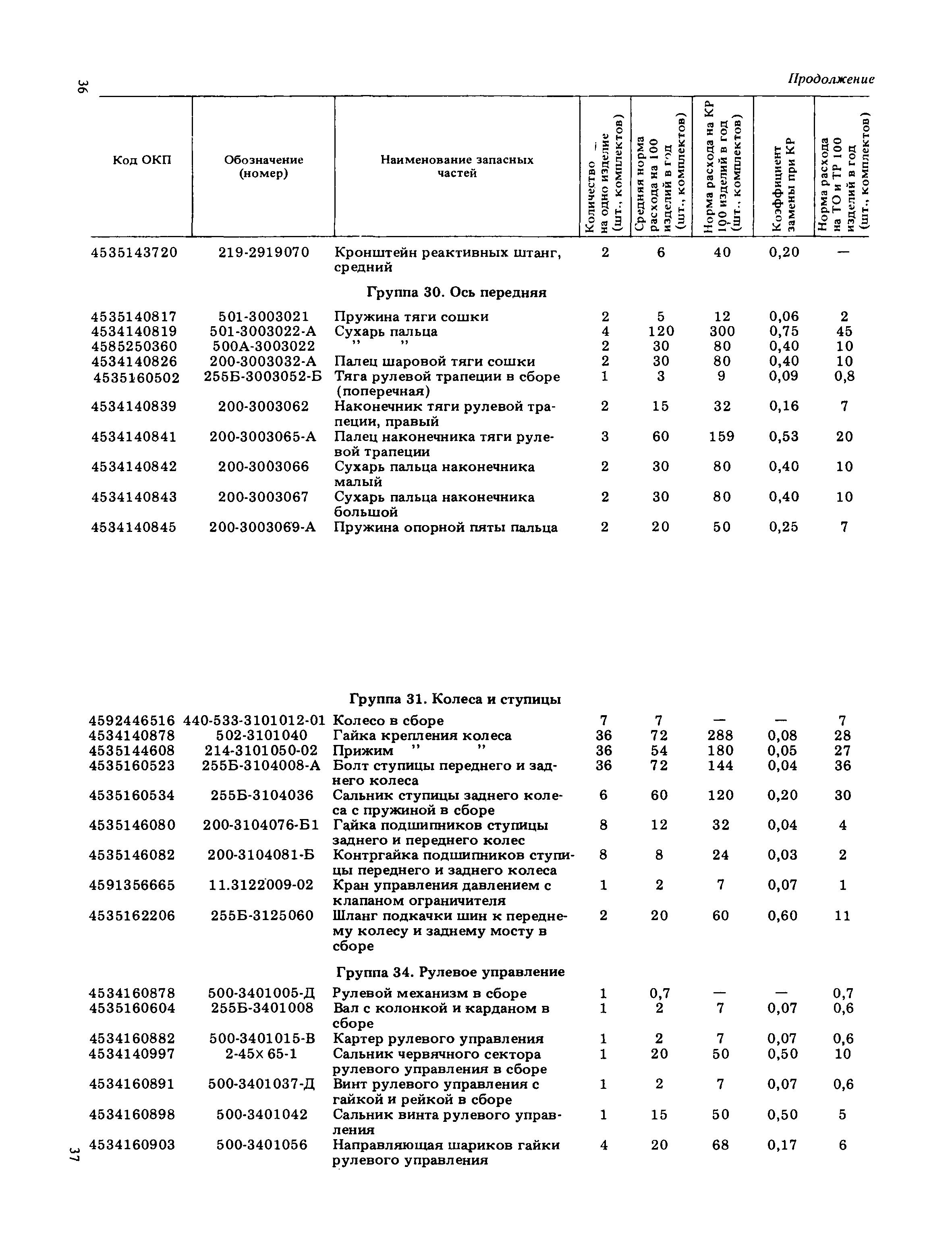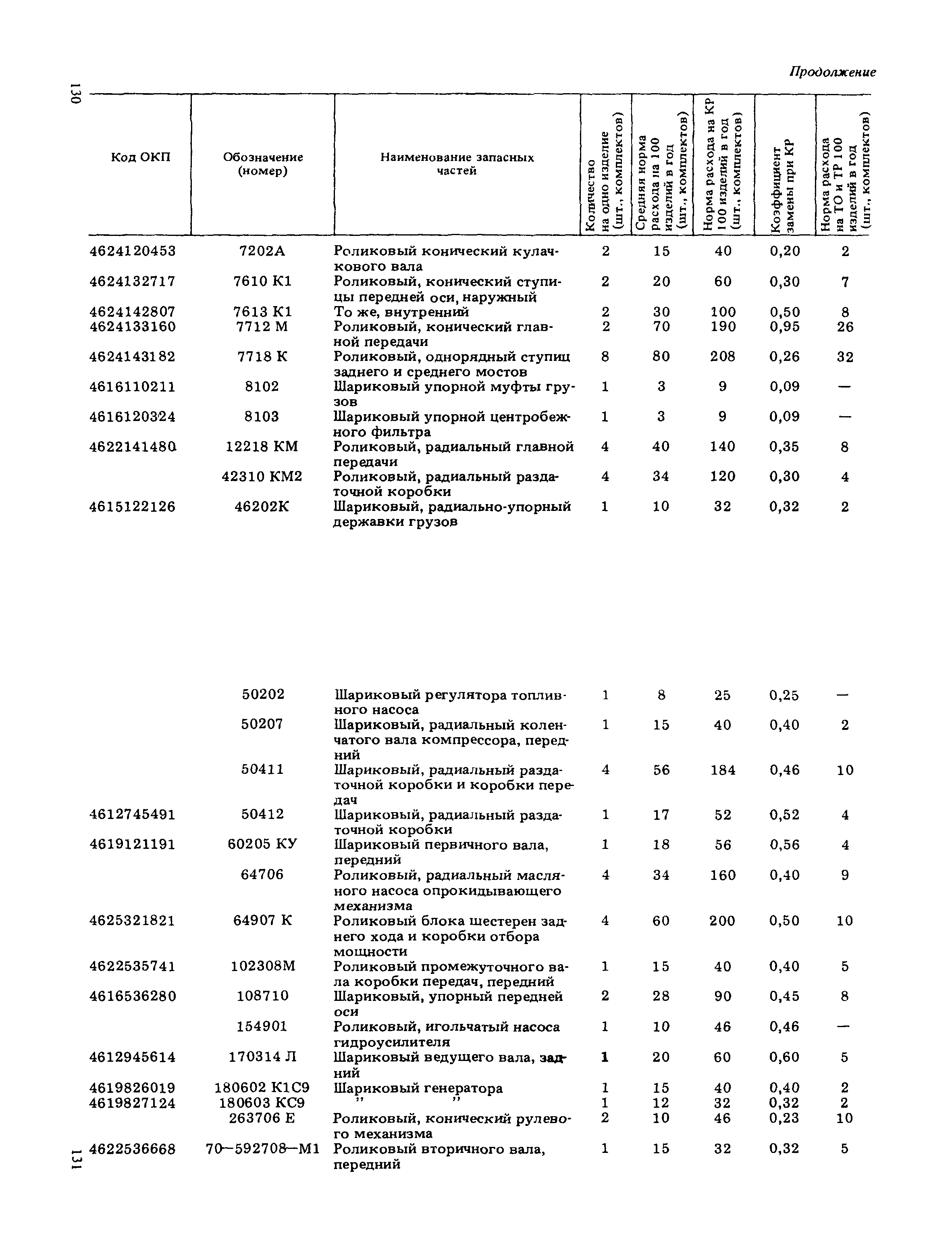 Подетальные нормы расхода запасных частей на ремонтно-эксплуатационные нужды для автомобилей