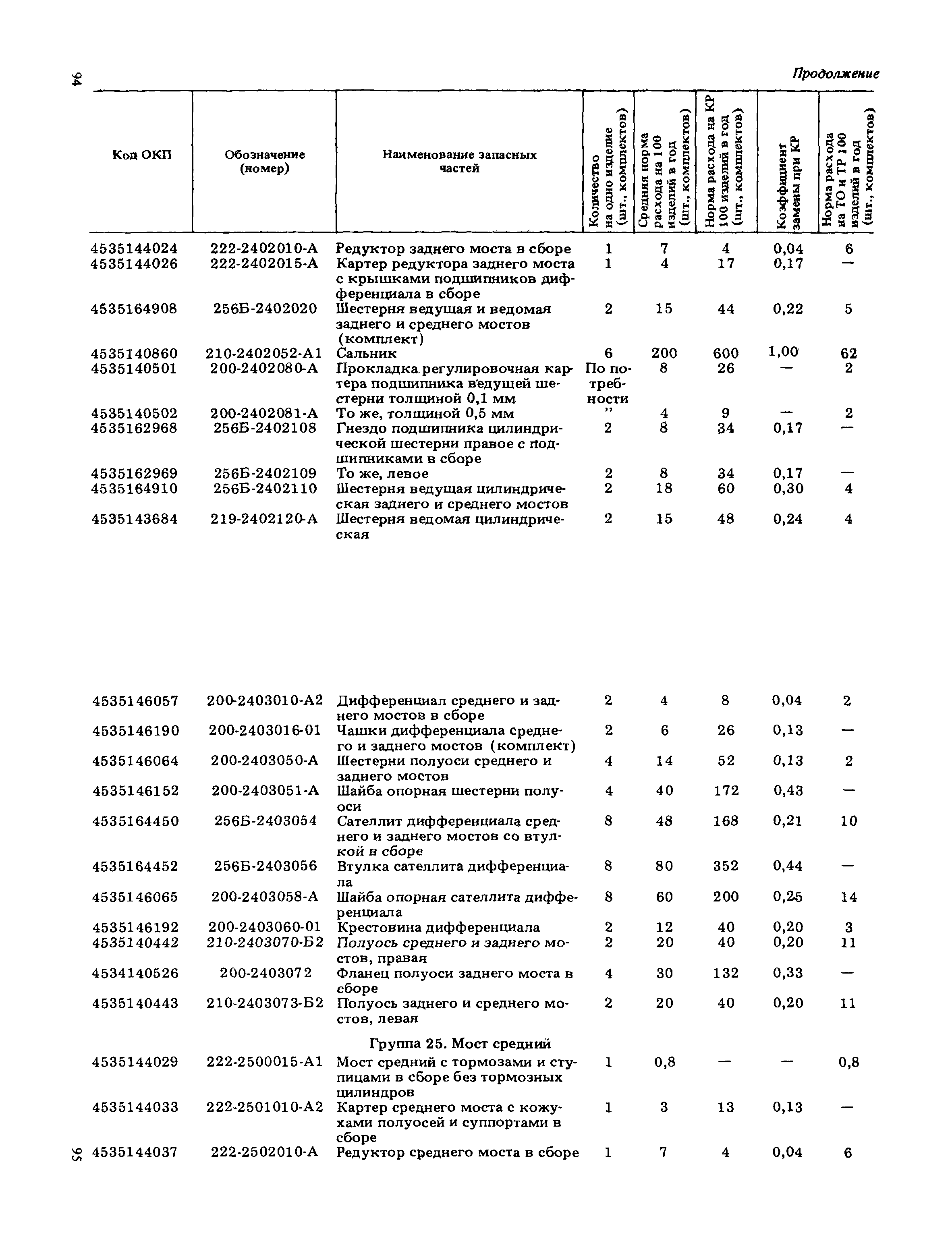 карданные Группа 24. Мост задний Группа 25. Мост средний Группа 27.
