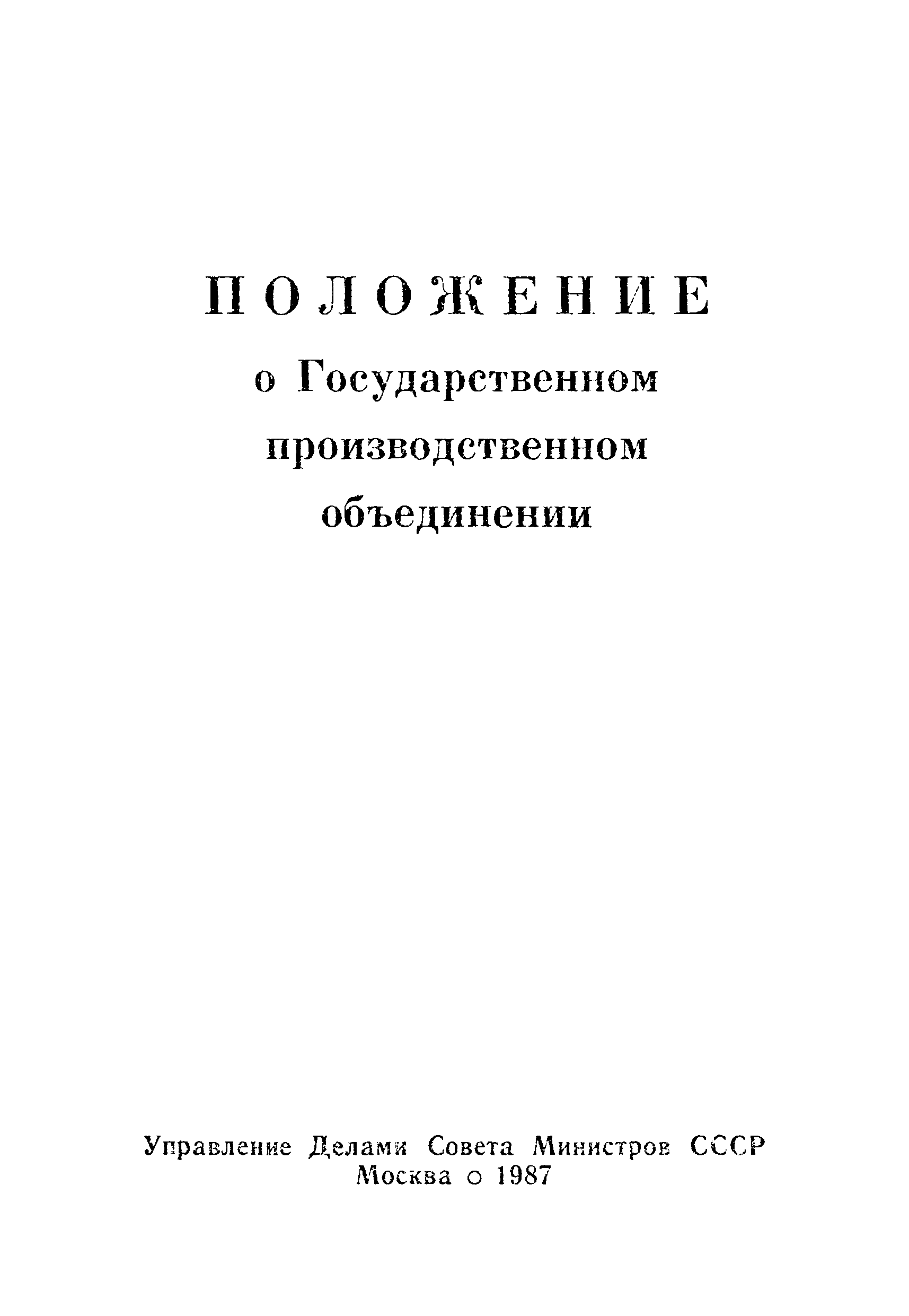 | Область применения: | Действие настоящего Положения распространяется на Государственное производственное объединение всех отраслей народного хозяйства. |