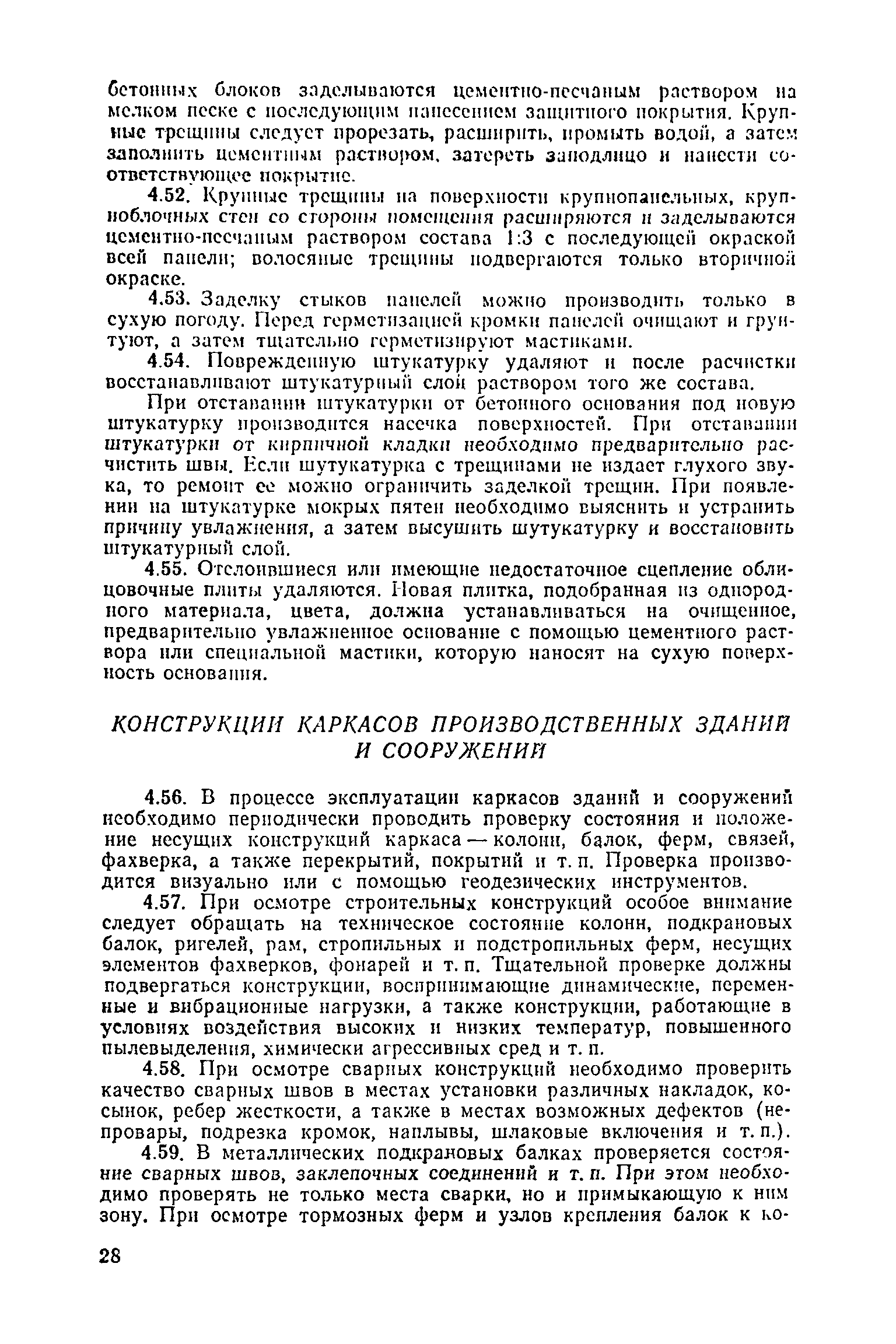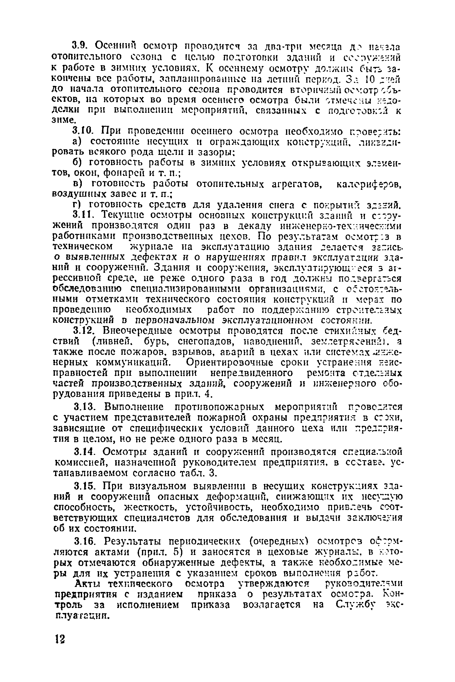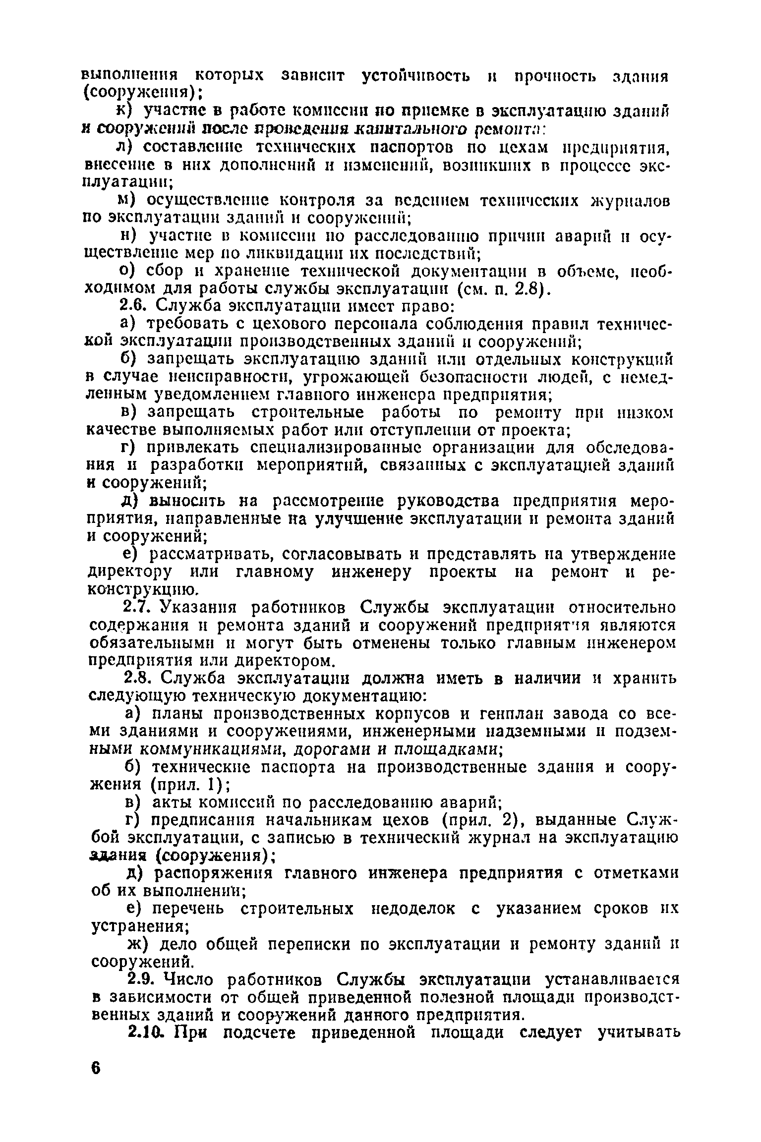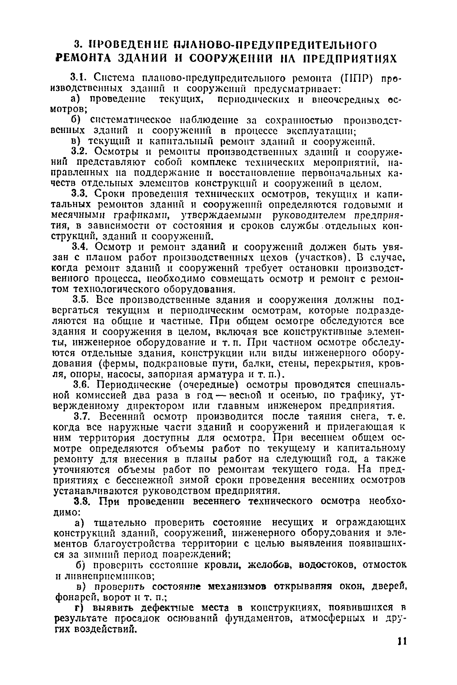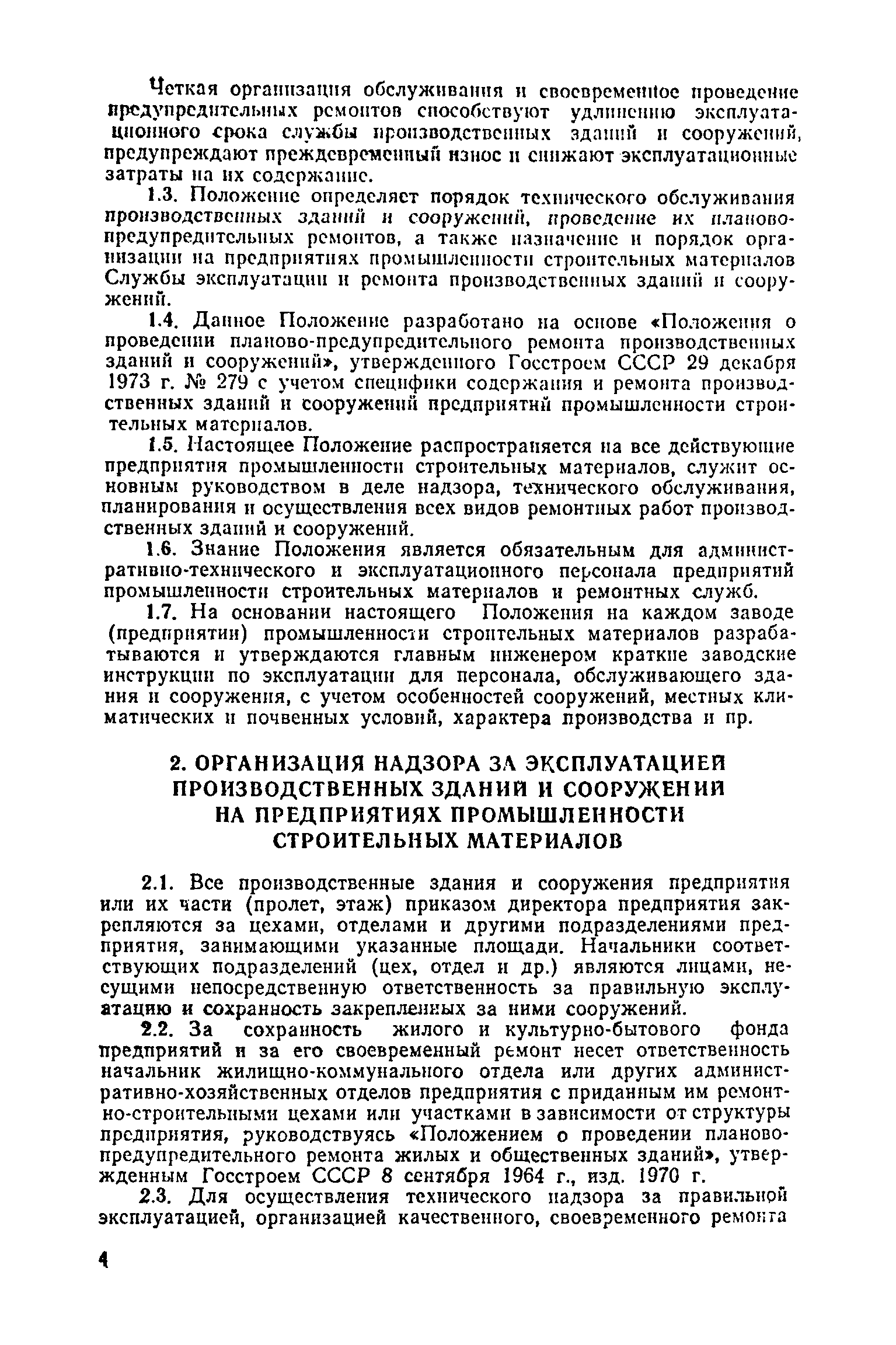 Положение о проведении планово-предупредительного ремонта и технической эксплуатации производственных зданий и сооружений предприятий промышленности строительных материалов| Статус: | справочные материалы, мп, тпр | | Название рус.: | Положение о проведении планово-предупредительного ремонта и технической эксплуатации производственных зданий и сооружений предприятий промышленности строительных материалов | | Дата добавления в базу: | 01.01.2021 | | Дата актуализации: | 01.01.2021 | | Область применения: | Положение дополнено новыми разделами, содержащими правила технической эксплуатации производственных зданий н сооружений в условиях влияния агрессивной среды, высоких и низких температур, повышенной вибрации конструкций, запыленности и влажности, а также эксплуатации н ремонта основных промышленных инженерных сооружений, инженерных сетей, вспомогательных производственных сооружений, складских помещений, конструктивных частей зданий п т.п.; требования к эксплуатации н ремонту сооружений автомобильно-железнодорожного транспорта; порядок обследования стальных и железобетонных конструкций. | | Оглавление: | 1. Общая часть 2. Организация надзора за эксплуатацией производственных зданий и сооружений на предприятиях промышленности строительных материалов 3. Проведение планово-предупредительного ремонта зданий и сооружений на предприятиях 4. Технические условия эксплуатации территории предприятия и конструктивных частей производственных зданий и сооружений 5. Дополнительные требования к эксплуатации строительных конструкций в особых условиях 6. Обследование и освидетельствование стальных конструкций зданий и сооружений промышленных предприятий 7. Осмотр строительных конструкций 8. Эксплуатация основных промышленных зданий и сооружений 9. Эксплуатация инженерных сетей и сооружений на них 10. Эксплуатация сооружений автомобильного и внутризаводского железнодорожного транспорта 11. Порядок приемки в эксплуатацию законченных строительством и капитальным ремонтом производственных зданий и сооружений Приложение 1 Технические паспорт на производственное здание (сооружение) Приложение 2 Предписание отдела эксплуатации и ремонта производственных зданий и сооружений Приложение 3 Технический журнал на эксплуатацию здания (сооружения) Приложение 4 Ориентировочные сроки устранения неисправностей при непредвиденном или аварийном ремонте отдельных частей производственных зданий, сооружений и инженерного оборудования Приложение 5 Акт очередного технического осмотра здания (сооружения) Приложение 6 Положение о порядке расследования причин аварии (обрушений) зданий, сооружений, их частей и конструктивных элементов Приложение 7 Перечень работ, выполняемых при текущем и капитальном ремонтах конструктивных элементов производственных зданий и сооружений, а также инженерных сетей и сооружений на них Приложение 8 Периодичность проведения работ по капитальному ремонту Приложение 9 План-заявка на проведение капитального ремонта производственных зданий и сооружений Приложение 10 Перечень работ по капитальному ремонту промышленных зданий и сооружений, турбин, котельных агрегатов, линий электропередач, промышленных печей, промышленной вентиляции, кип и автоматики и пусконаладочные работы, подлежащие выполнению подрядными о