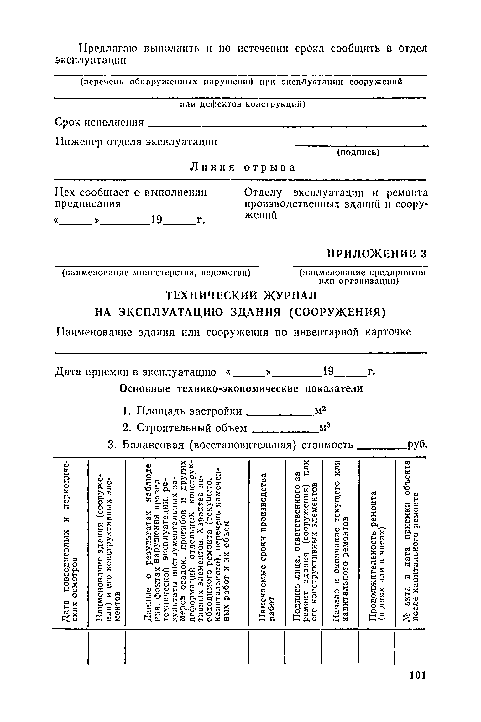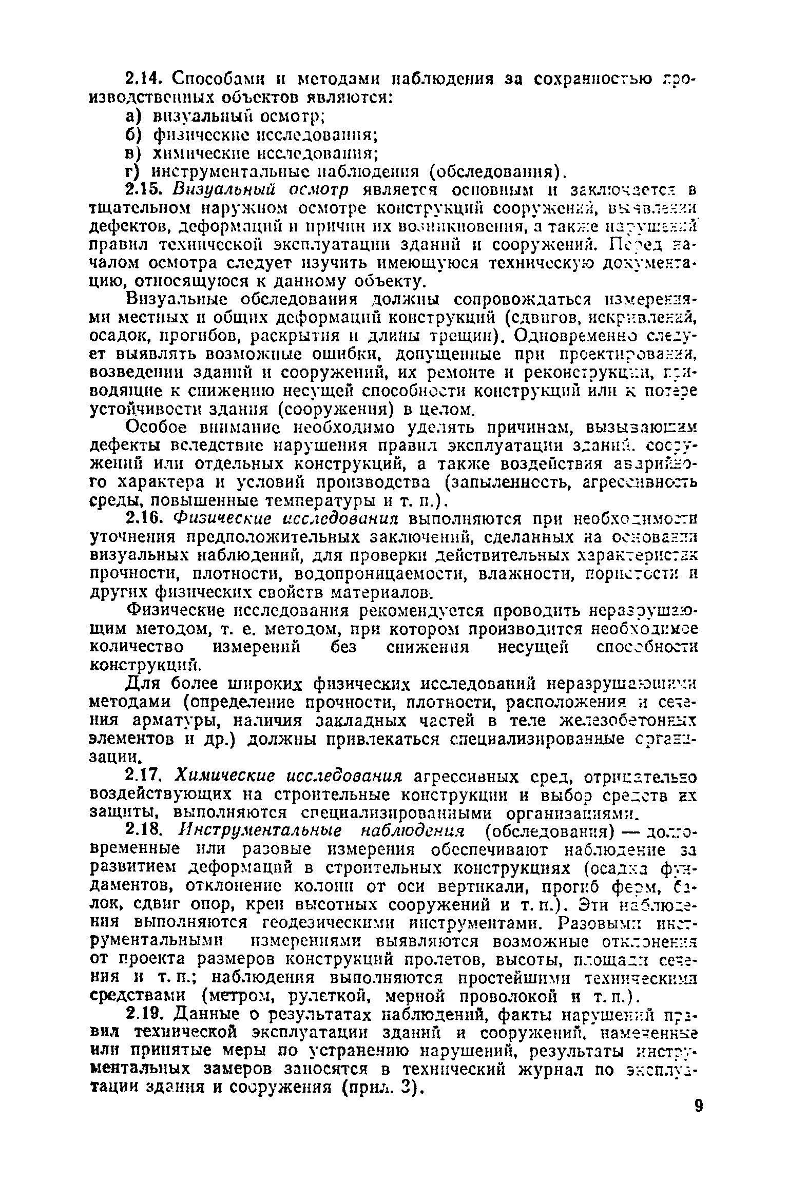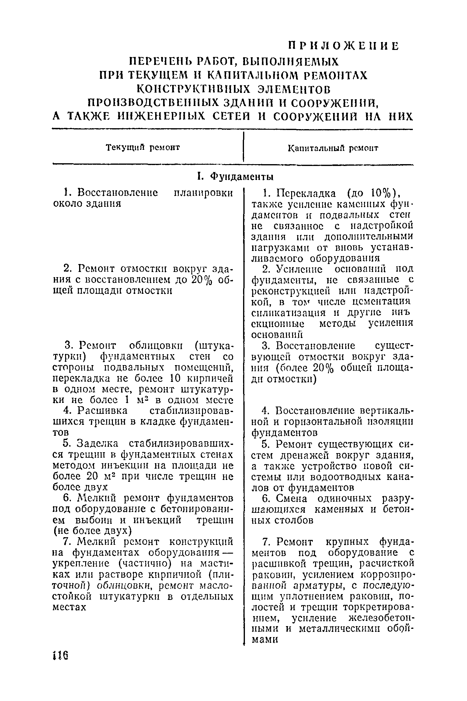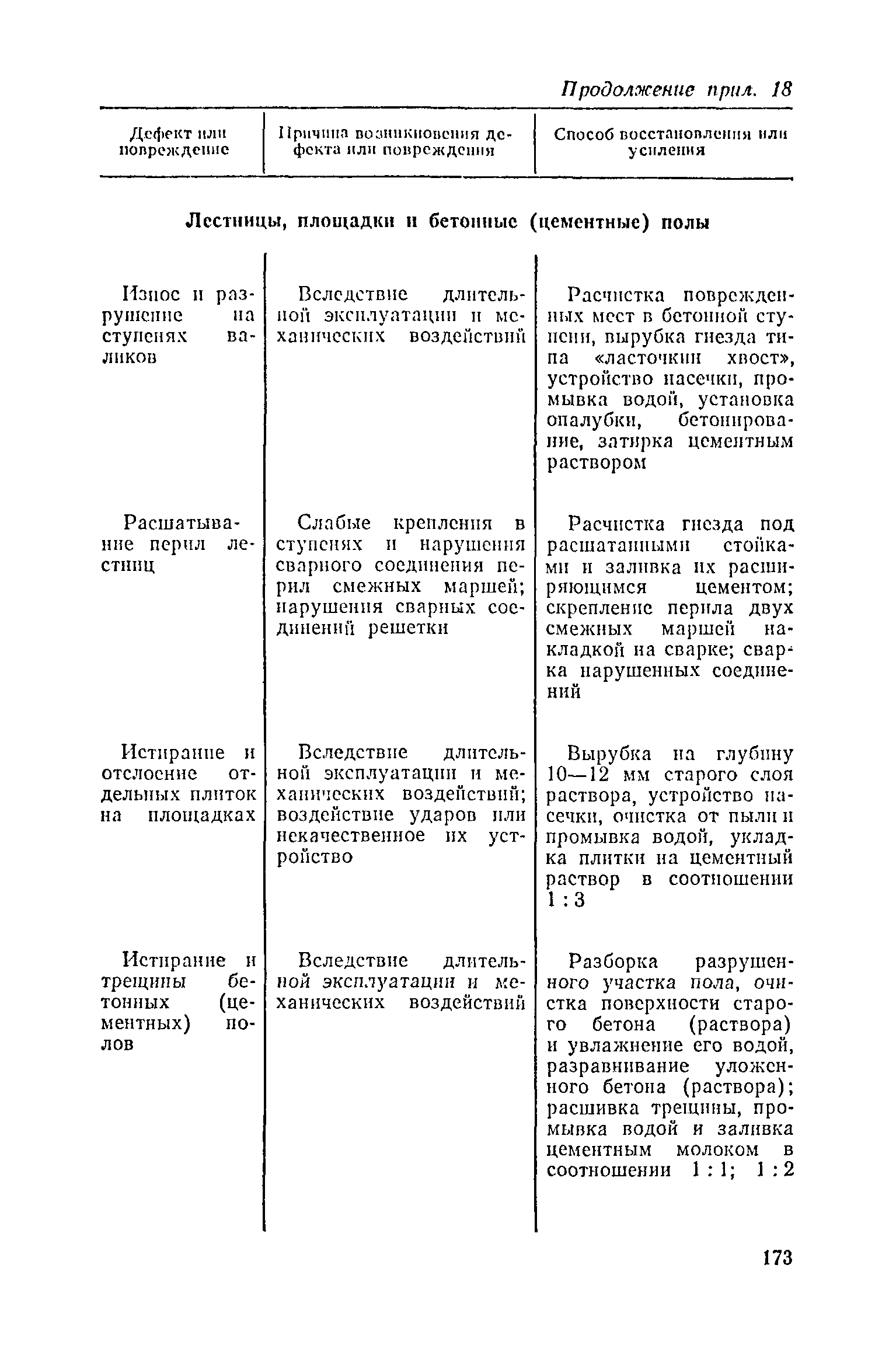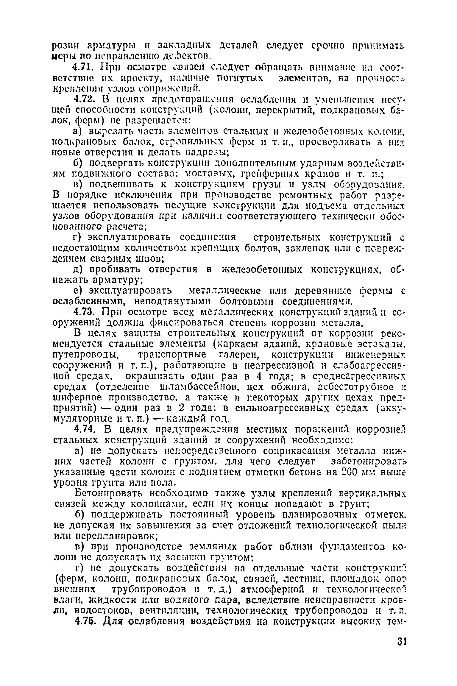Положение о проведении планово-предупредительного ремонта и технической эксплуатации производственных зданий и сооружений предприятий промышленности строительных материалов| Статус: | справочные материалы, мп, тпр | | Название рус.: | Положение о проведении планово-предупредительного ремонта и технической эксплуатации производственных зданий и сооружений предприятий промышленности строительных материалов | | Дата добавления в базу: | 01.01.2021 | | Дата актуализации: | 01.01.2021 | | Область применения: | Положение дополнено новыми разделами, содержащими правила технической эксплуатации производственных зданий н сооружений в условиях влияния агрессивной среды, высоких и низких температур, повышенной вибрации конструкций, запыленности и влажности, а также эксплуатации н ремонта основных промышленных инженерных сооружений, инженерных сетей, вспомогательных производственных сооружений, складских помещений, конструктивных частей зданий п т.п.; требования к эксплуатации н ремонту сооружений автомобильно-железнодорожного транспорта; порядок обследования стальных и железобетонных конструкций. | | Оглавление: | 1. Общая часть 2. Организация надзора за эксплуатацией производственных зданий и сооружений на предприятиях промышленности строительных материалов 3. Проведение планово-предупредительного ремонта зданий и сооружений на предприятиях 4. Технические условия эксплуатации территории предприятия и конструктивных частей производственных зданий и сооружений 5. Дополнительные требования к эксплуатации строительных конструкций в особых условиях 6. Обследование и освидетельствование стальных конструкций зданий и сооружений промышленных предприятий 7. Осмотр строительных конструкций 8. Эксплуатация основных промышленных зданий и сооружений 9. Эксплуатация инженерных сетей и сооружений на них 10. Эксплуатация сооружений автомобильного и внутризаводского железнодорожного транспорта 11. Порядок приемки в эксплуатацию законченных строительством и капитальным ремонтом производственных зданий и сооружений Приложение 1 Технические паспорт на производственное здание (сооружение) Приложение 2 Предписание отдела эксплуатации и ремонта производственных зданий и сооружений Приложение 3 Технический журнал на эксплуатацию здания (сооружения) Приложение 4 Ориентировочные сроки устранения неисправностей при непредвиденном или аварийном ремонте отдельных частей производственных зданий, сооружений и инженерного оборудования Приложение 5 Акт очередного технического осмотра здания (сооружения) Приложение 6 Положение о порядке расследования причин аварии (обрушений) зданий, сооружений, их частей и конструктивных элементов Приложение 7 Перечень работ, выполняемых при текущем и капитальном ремонтах конструктивных элементов производственных зданий и сооружений, а также инженерных сетей и сооружений на них Приложение 8 Периодичность проведения работ по капитальному ремонту Приложение 9 План-заявка на проведение капитального ремонта производственных зданий и сооружений Приложение 10 Перечень работ по капитальному ремонту промышленных зданий и сооружений, турбин, котельных агрегатов, линий электропередач, промышленных печей, промышленной вентиляции, кип и автоматики и пусконаладочные работы, подлежащие выполнению подрядными о