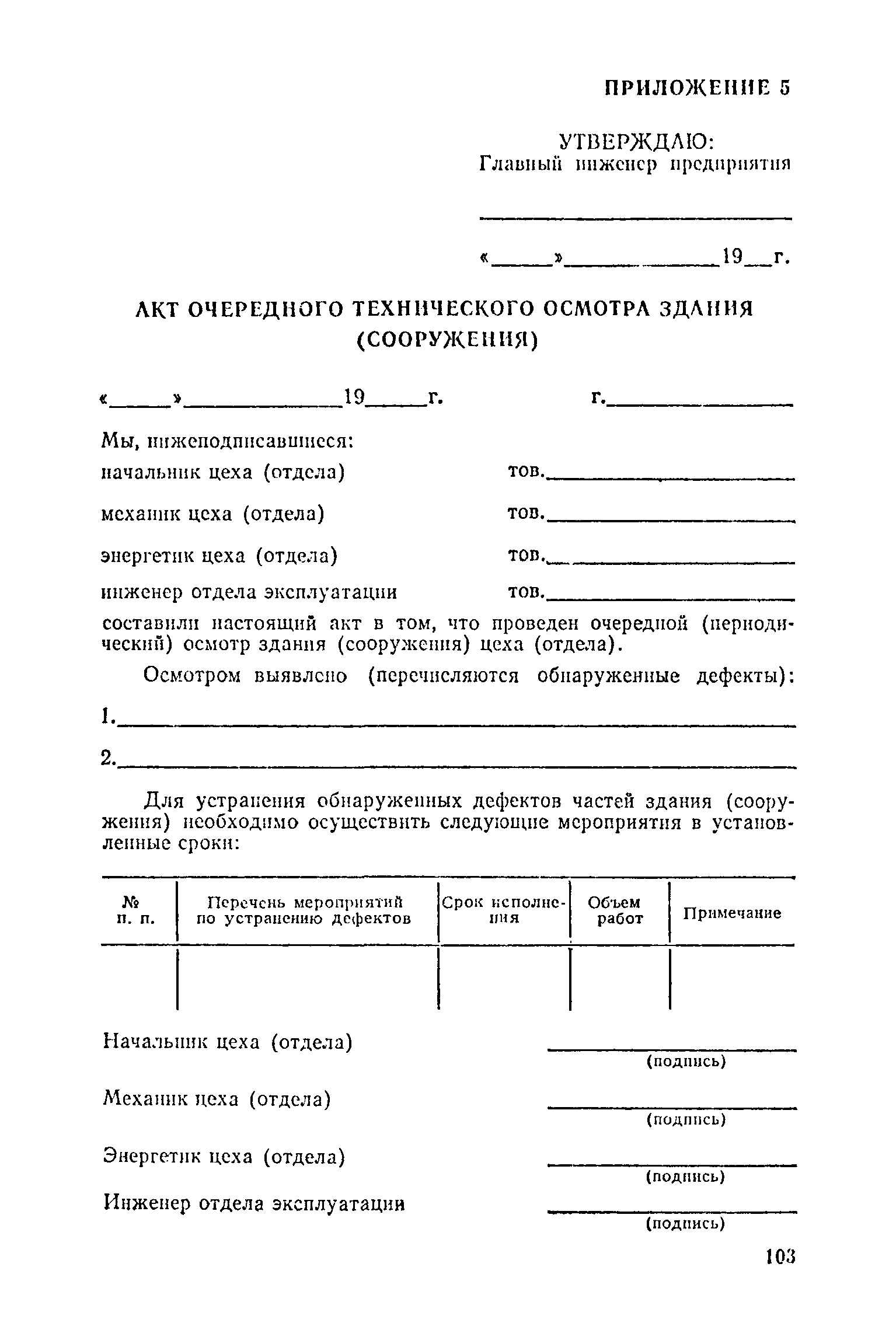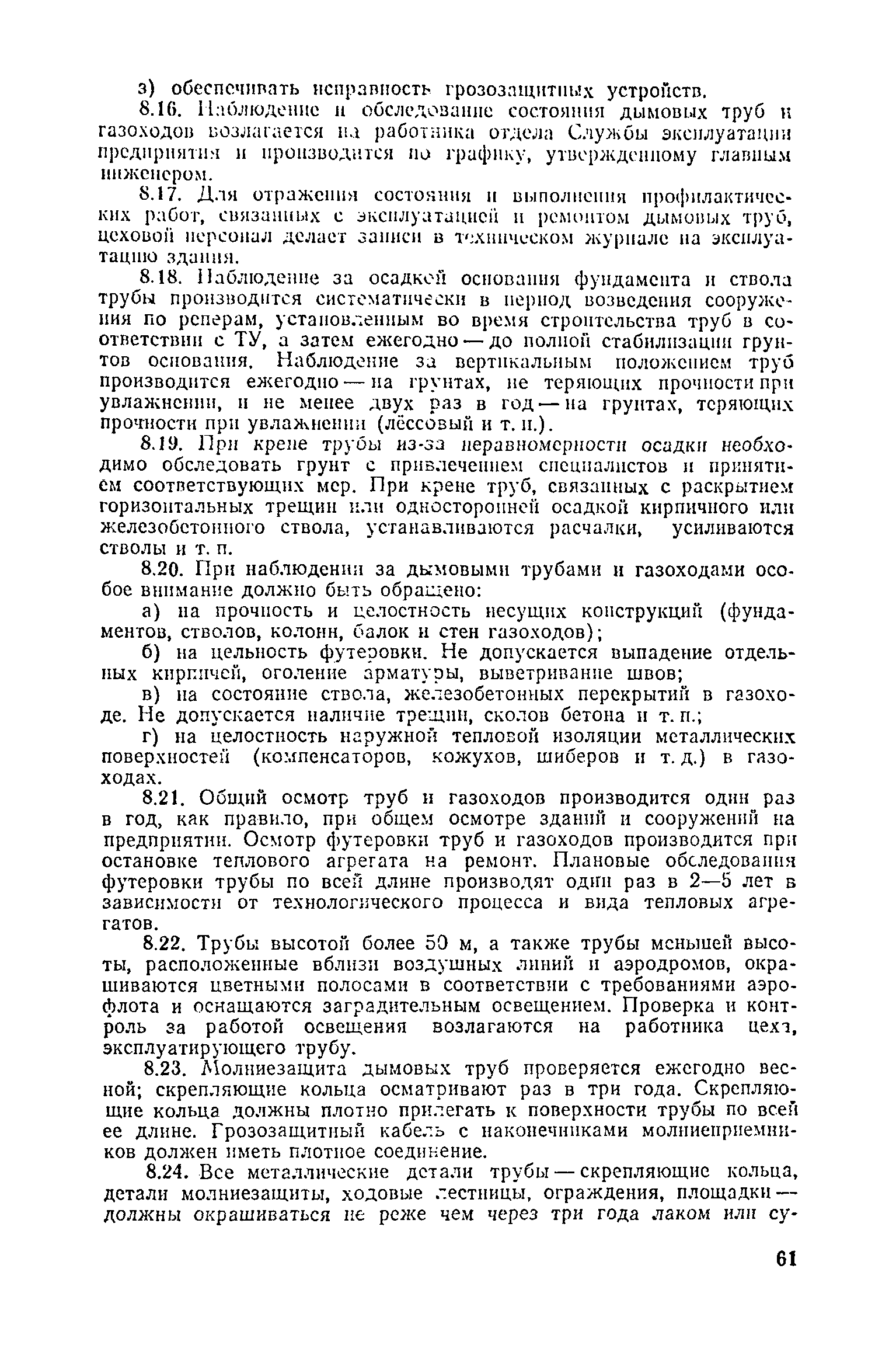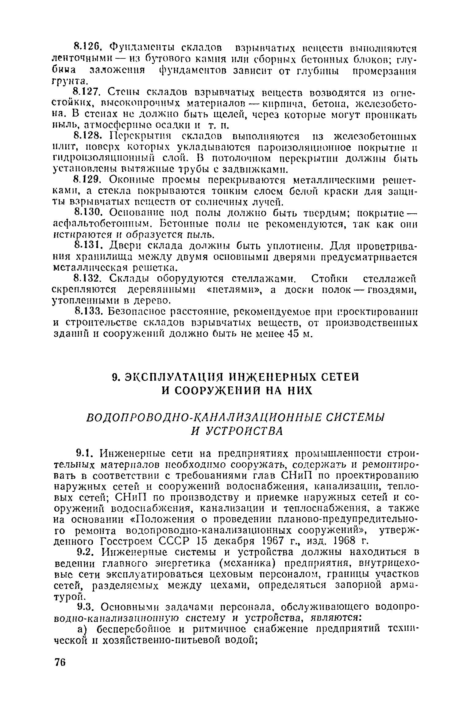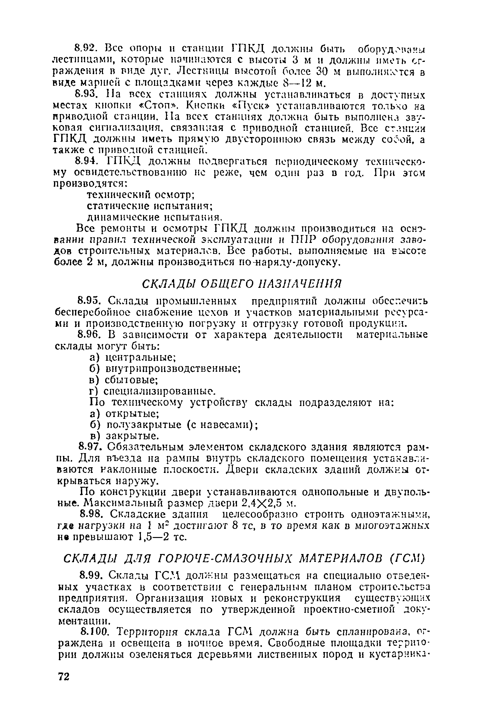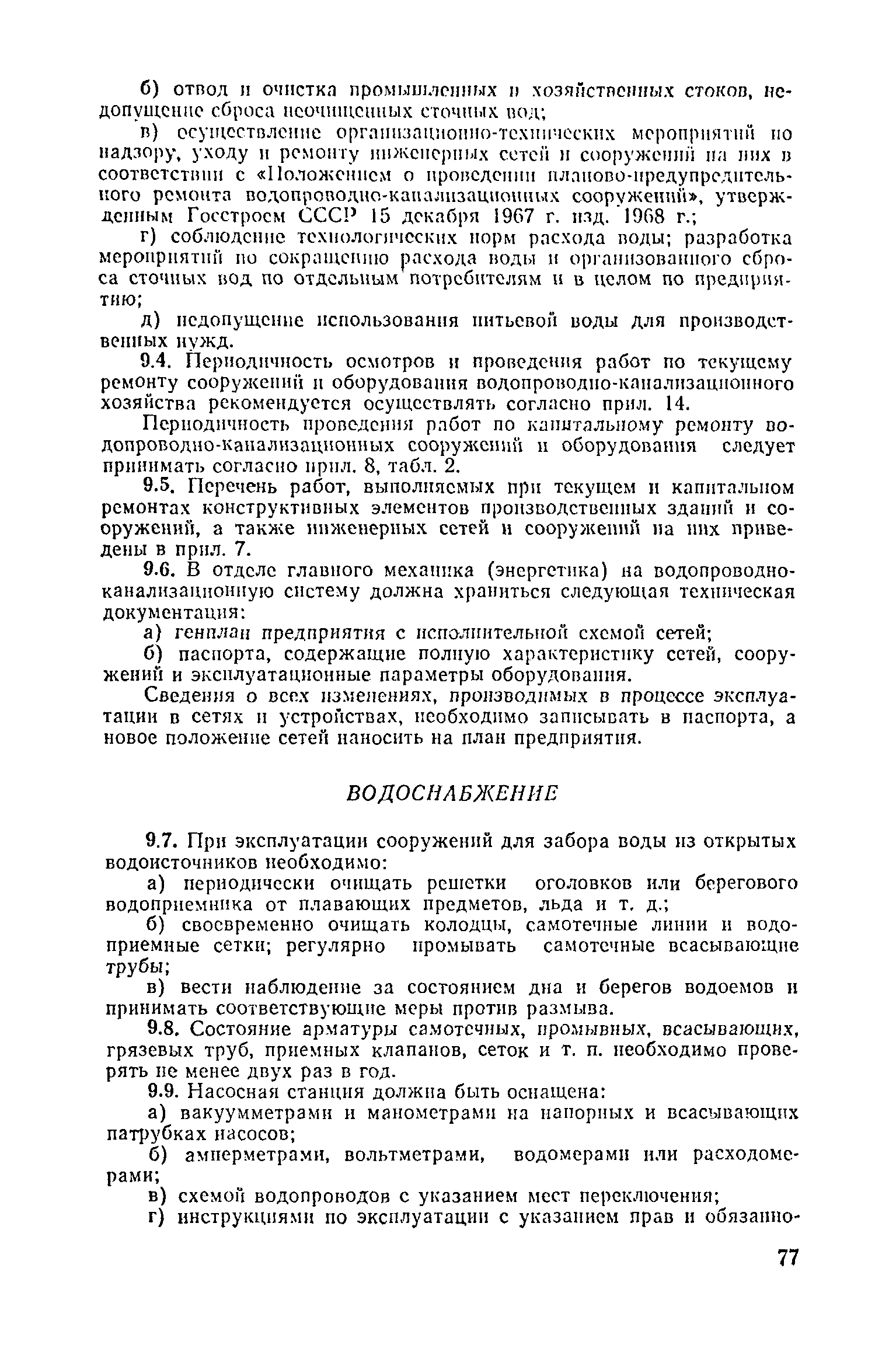 Положение о проведении планово-предупредительного ремонта и технической эксплуатации производственных зданий и сооружений предприятий промышленности строительных материалов| Статус: | справочные материалы, мп, тпр | | Название рус.: | Положение о проведении планово-предупредительного ремонта и технической эксплуатации производственных зданий и сооружений предприятий промышленности строительных материалов | | Дата добавления в базу: | 01.01.2021 | | Дата актуализации: | 01.01.2021 | | Область применения: | Положение дополнено новыми разделами, содержащими правила технической эксплуатации производственных зданий н сооружений в условиях влияния агрессивной среды, высоких и низких температур, повышенной вибрации конструкций, запыленности и влажности, а также эксплуатации н ремонта основных промышленных инженерных сооружений, инженерных сетей, вспомогательных производственных сооружений, складских помещений, конструктивных частей зданий п т.п.; требования к эксплуатации н ремонту сооружений автомобильно-железнодорожного транспорта; порядок обследования стальных и железобетонных конструкций. | | Оглавление: | 1. Общая часть 2. Организация надзора за эксплуатацией производственных зданий и сооружений на предприятиях промышленности строительных материалов 3. Проведение планово-предупредительного ремонта зданий и сооружений на предприятиях 4. Технические условия эксплуатации территории предприятия и конструктивных частей производственных зданий и сооружений 5. Дополнительные требования к эксплуатации строительных конструкций в особых условиях 6. Обследование и освидетельствование стальных конструкций зданий и сооружений промышленных предприятий 7. Осмотр строительных конструкций 8. Эксплуатация основных промышленных зданий и сооружений 9. Эксплуатация инженерных сетей и сооружений на них 10. Эксплуатация сооружений автомобильного и внутризаводского железнодорожного транспорта 11. Порядок приемки в эксплуатацию законченных строительством и капитальным ремонтом производственных зданий и сооружений Приложение 1 Технические паспорт на производственное здание (сооружение) Приложение 2 Предписание отдела эксплуатации и ремонта производственных зданий и сооружений Приложение 3 Технический журнал на эксплуатацию здания (сооружения) Приложение 4 Ориентировочные сроки устранения неисправностей при непредвиденном или аварийном ремонте отдельных частей производственных зданий, сооружений и инженерного оборудования Приложение 5 Акт очередного технического осмотра здания (сооружения) Приложение 6 Положение о порядке расследования причин аварии (обрушений) зданий, сооружений, их частей и конструктивных элементов Приложение 7 Перечень работ, выполняемых при текущем и капитальном ремонтах конструктивных элементов производственных зданий и сооружений, а также инженерных сетей и сооружений на них Приложение 8 Периодичность проведения работ по капитальному ремонту Приложение 9 План-заявка на проведение капитального ремонта производственных зданий и сооружений Приложение 10 Перечень работ по капитальному ремонту промышленных зданий и сооружений, турбин, котельных агрегатов, линий электропередач, промышленных печей, промышленной вентиляции, кип и автоматики и пусконаладочные работы, подлежащие выполнению подрядными о
