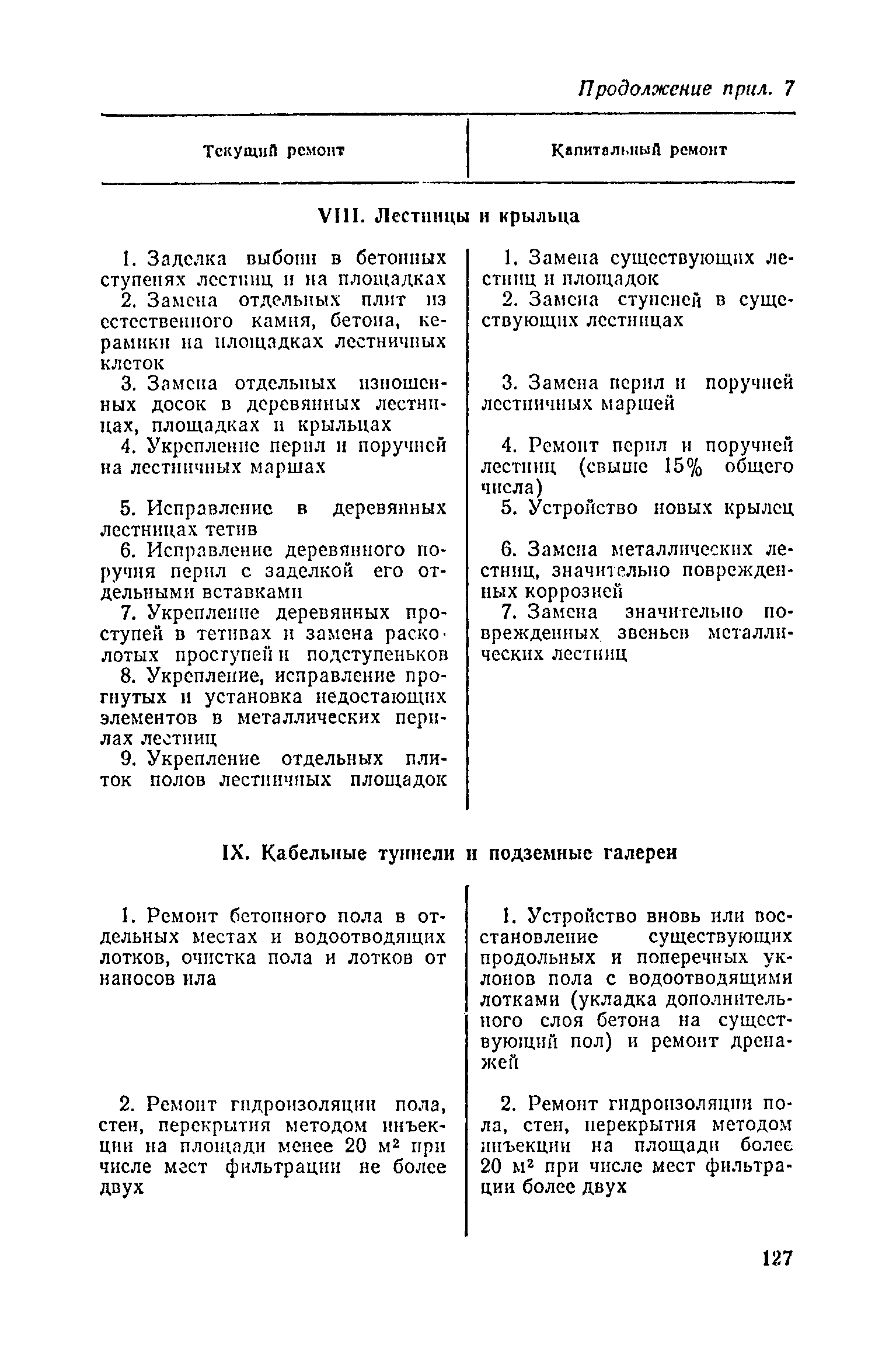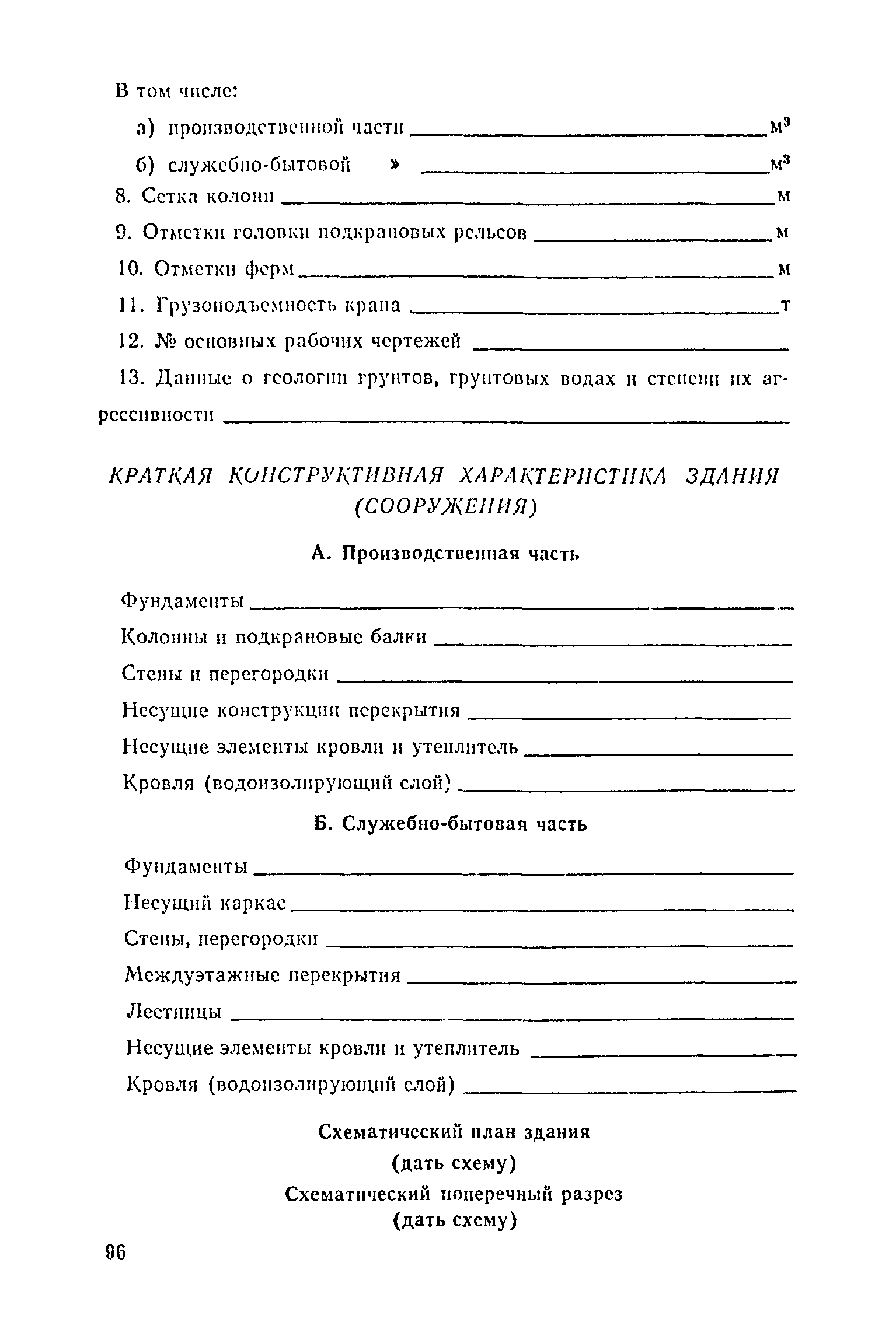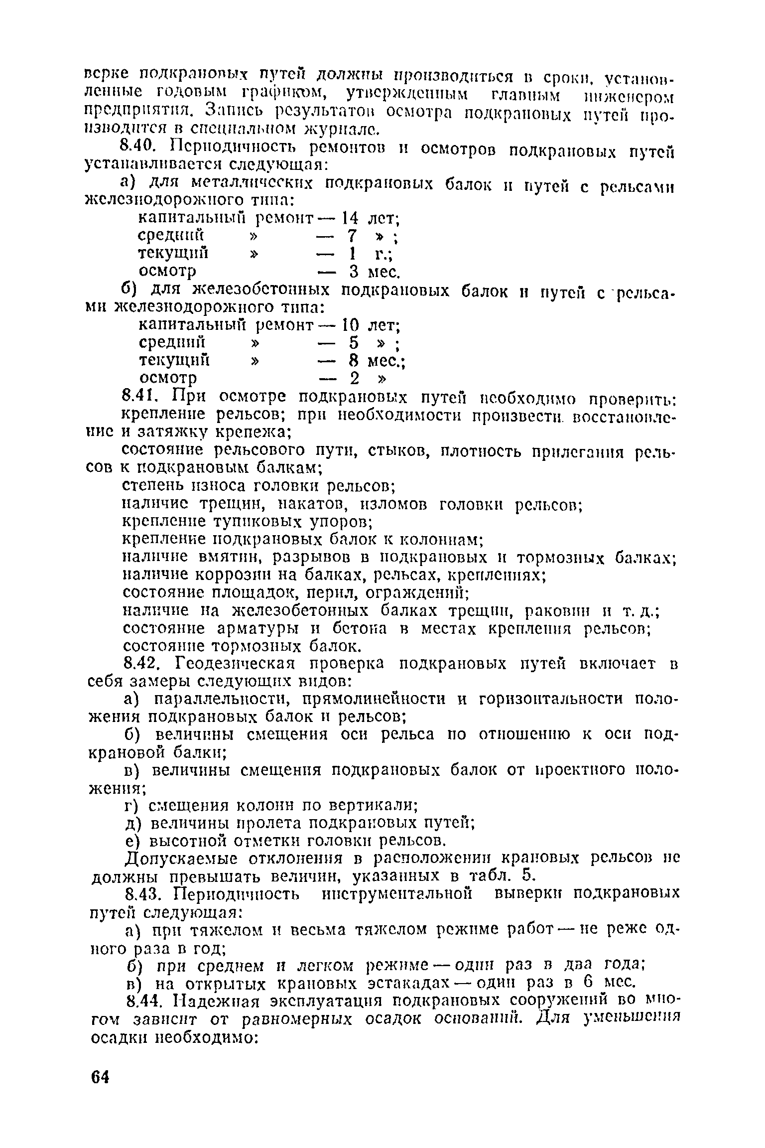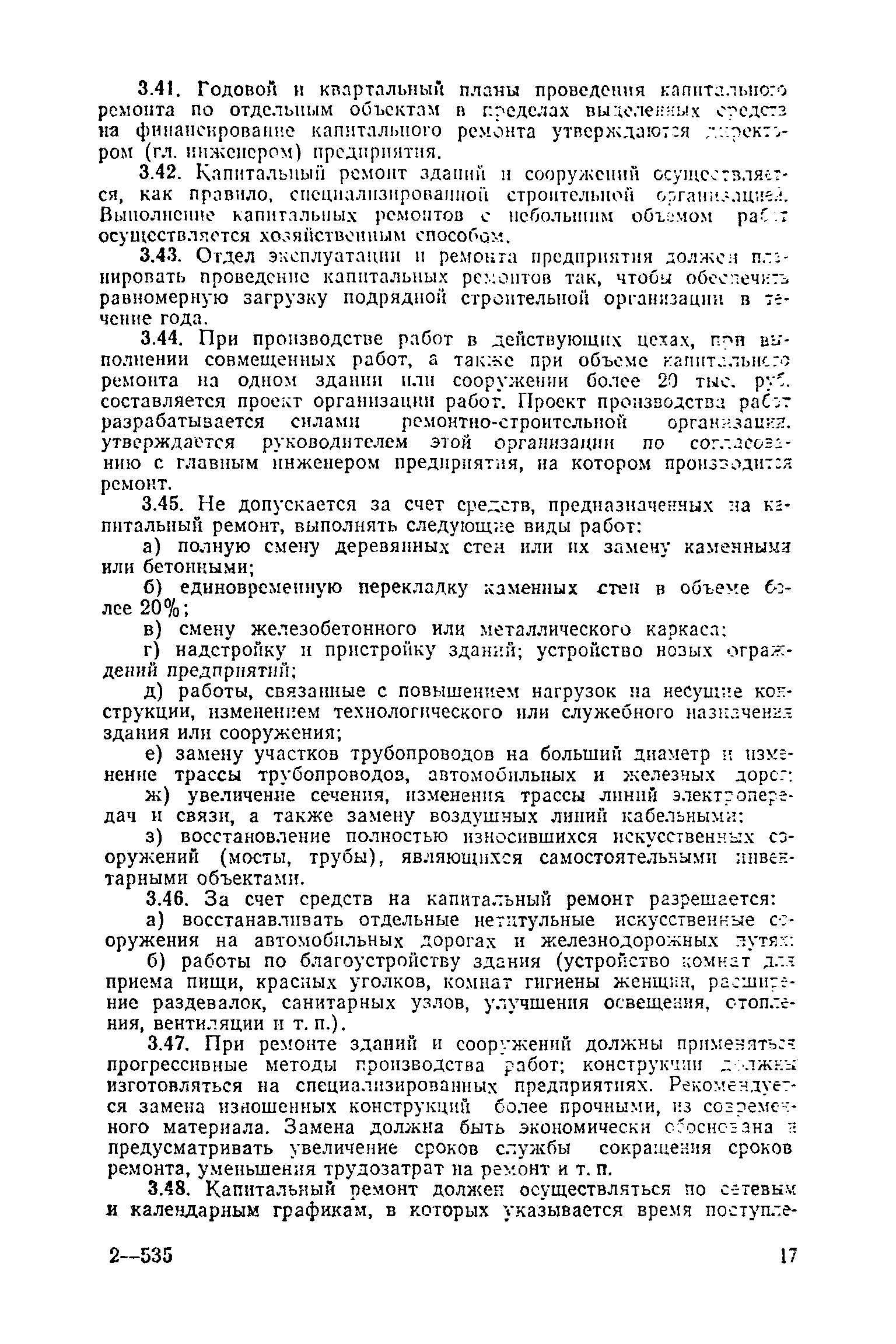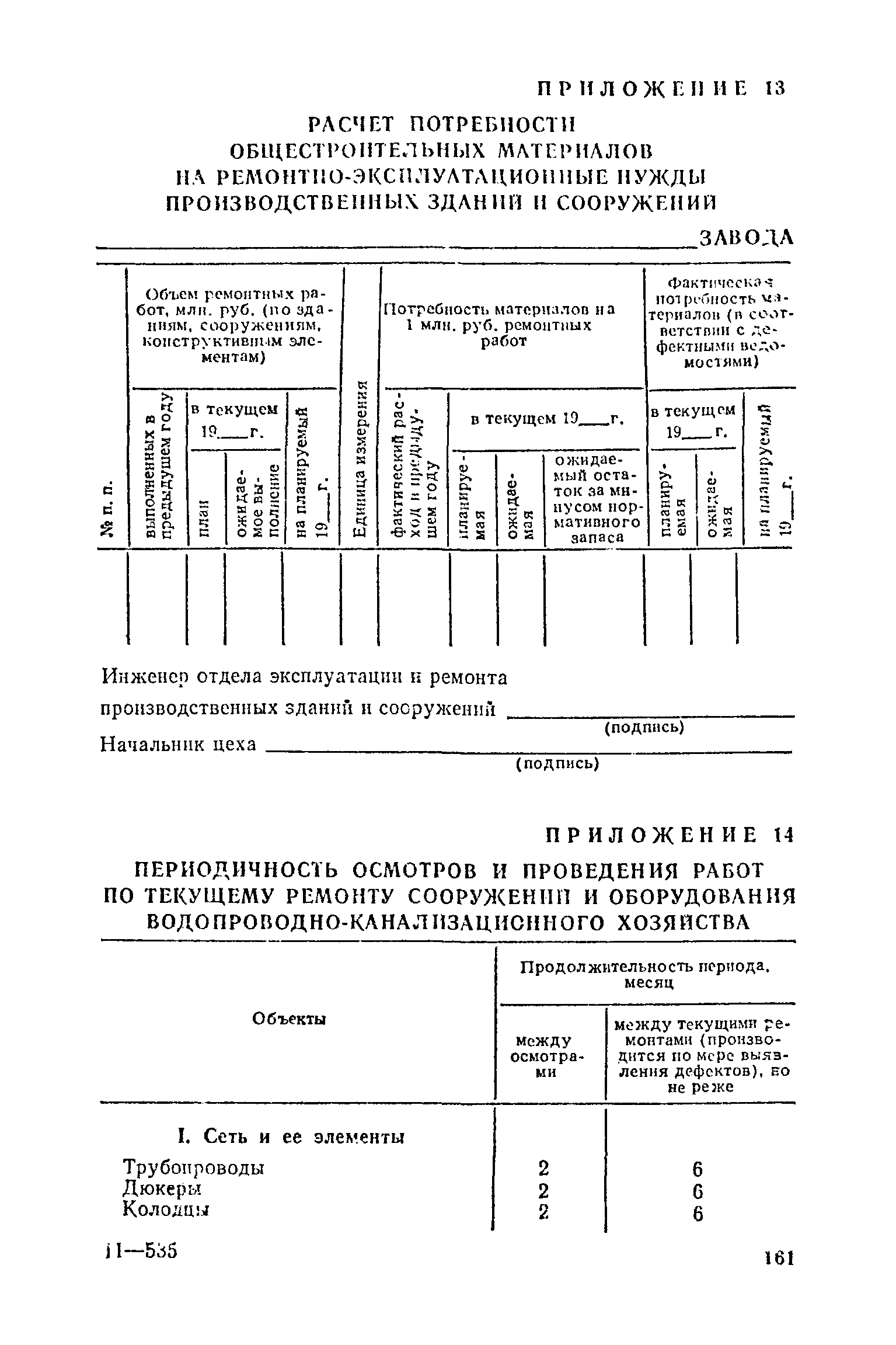 Положение о проведении планово-предупредительного ремонта и технической эксплуатации производственных зданий и сооружений предприятий промышленности строительных материалов| Статус: | справочные материалы, мп, тпр | | Название рус.: | Положение о проведении планово-предупредительного ремонта и технической эксплуатации производственных зданий и сооружений предприятий промышленности строительных материалов | | Дата добавления в базу: | 01.01.2021 | | Дата актуализации: | 01.01.2021 | | Область применения: | Положение дополнено новыми разделами, содержащими правила технической эксплуатации производственных зданий н сооружений в условиях влияния агрессивной среды, высоких и низких температур, повышенной вибрации конструкций, запыленности и влажности, а также эксплуатации н ремонта основных промышленных инженерных сооружений, инженерных сетей, вспомогательных производственных сооружений, складских помещений, конструктивных частей зданий п т.п.; требования к эксплуатации н ремонту сооружений автомобильно-железнодорожного транспорта; порядок обследования стальных и железобетонных конструкций. | | Оглавление: | 1. Общая часть 2. Организация надзора за эксплуатацией производственных зданий и сооружений на предприятиях промышленности строительных материалов 3. Проведение планово-предупредительного ремонта зданий и сооружений на предприятиях 4. Технические условия эксплуатации территории предприятия и конструктивных частей производственных зданий и сооружений 5. Дополнительные требования к эксплуатации строительных конструкций в особых условиях 6. Обследование и освидетельствование стальных конструкций зданий и сооружений промышленных предприятий 7. Осмотр строительных конструкций 8. Эксплуатация основных промышленных зданий и сооружений 9. Эксплуатация инженерных сетей и сооружений на них 10. Эксплуатация сооружений автомобильного и внутризаводского железнодорожного транспорта 11. Порядок приемки в эксплуатацию законченных строительством и капитальным ремонтом производственных зданий и сооружений Приложение 1 Технические паспорт на производственное здание (сооружение) Приложение 2 Предписание отдела эксплуатации и ремонта производственных зданий и сооружений Приложение 3 Технический журнал на эксплуатацию здания (сооружения) Приложение 4 Ориентировочные сроки устранения неисправностей при непредвиденном или аварийном ремонте отдельных частей производственных зданий, сооружений и инженерного оборудования Приложение 5 Акт очередного технического осмотра здания (сооружения) Приложение 6 Положение о порядке расследования причин аварии (обрушений) зданий, сооружений, их частей и конструктивных элементов Приложение 7 Перечень работ, выполняемых при текущем и капитальном ремонтах конструктивных элементов производственных зданий и сооружений, а также инженерных сетей и сооружений на них Приложение 8 Периодичность проведения работ по капитальному ремонту Приложение 9 План-заявка на проведение капитального ремонта производственных зданий и сооружений Приложение 10 Перечень работ по капитальному ремонту промышленных зданий и сооружений, турбин, котельных агрегатов, линий электропередач, промышленных печей, промышленной вентиляции, кип и автоматики и пусконаладочные работы, подлежащие выполнению подрядными о