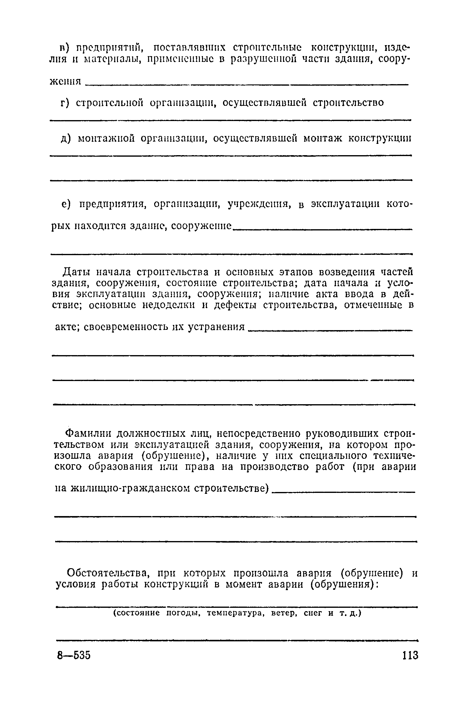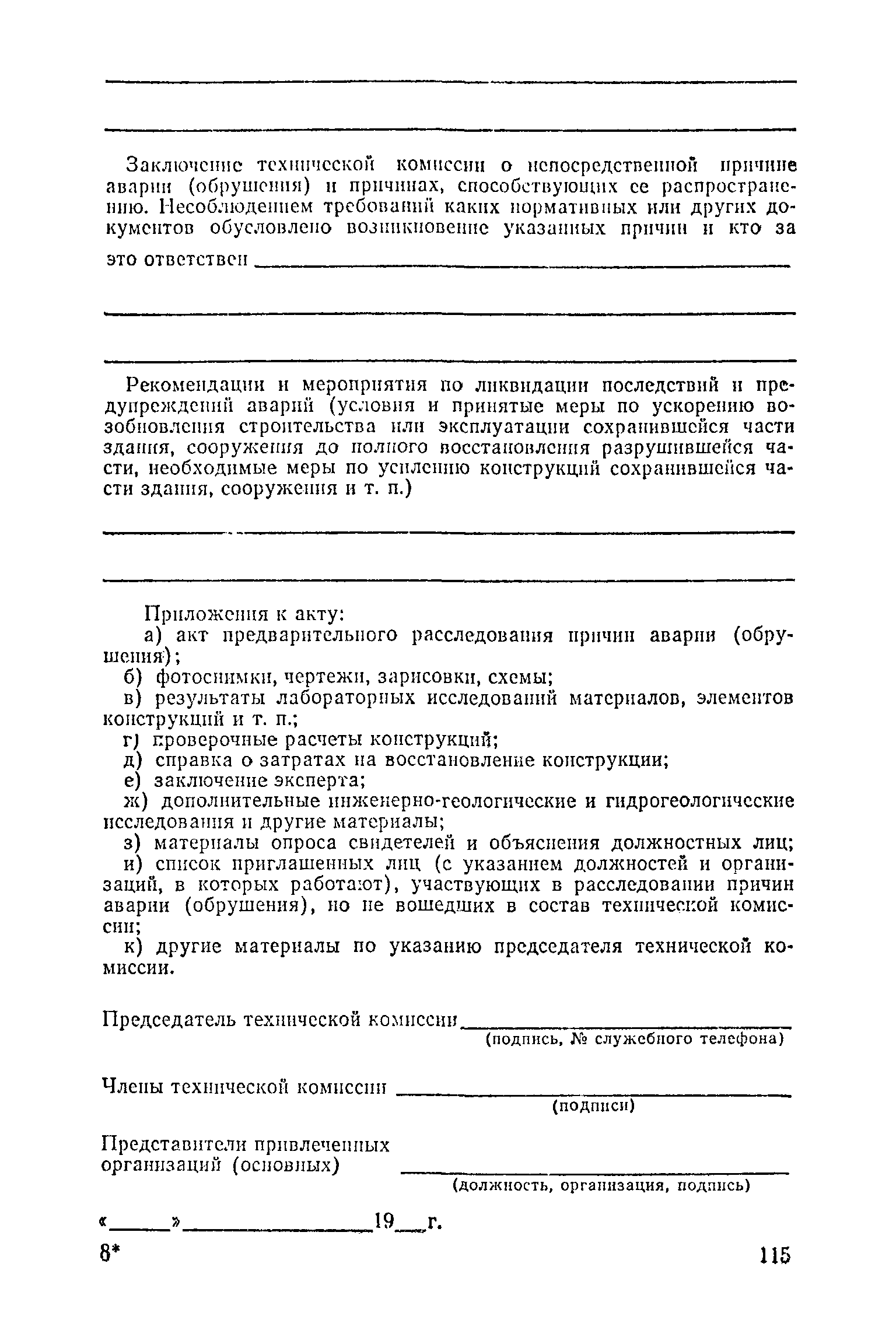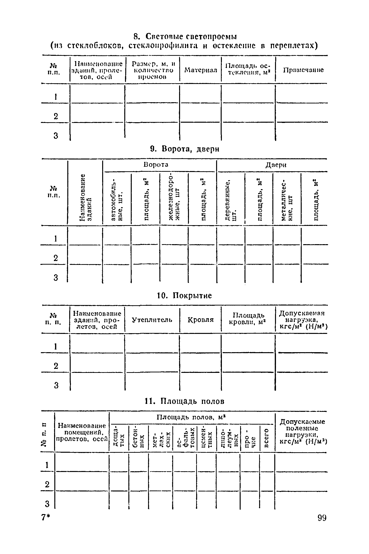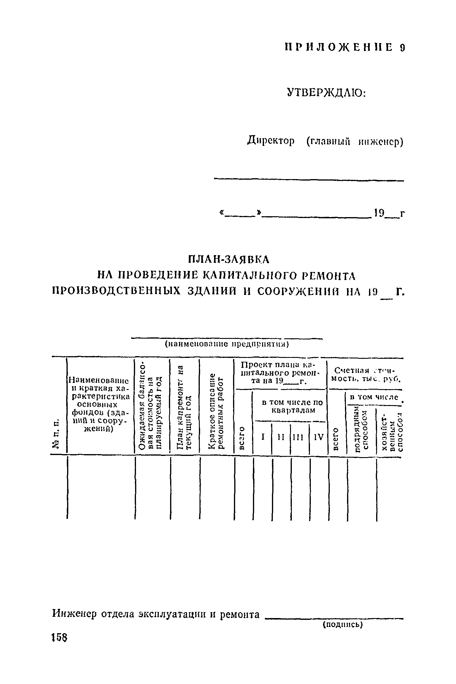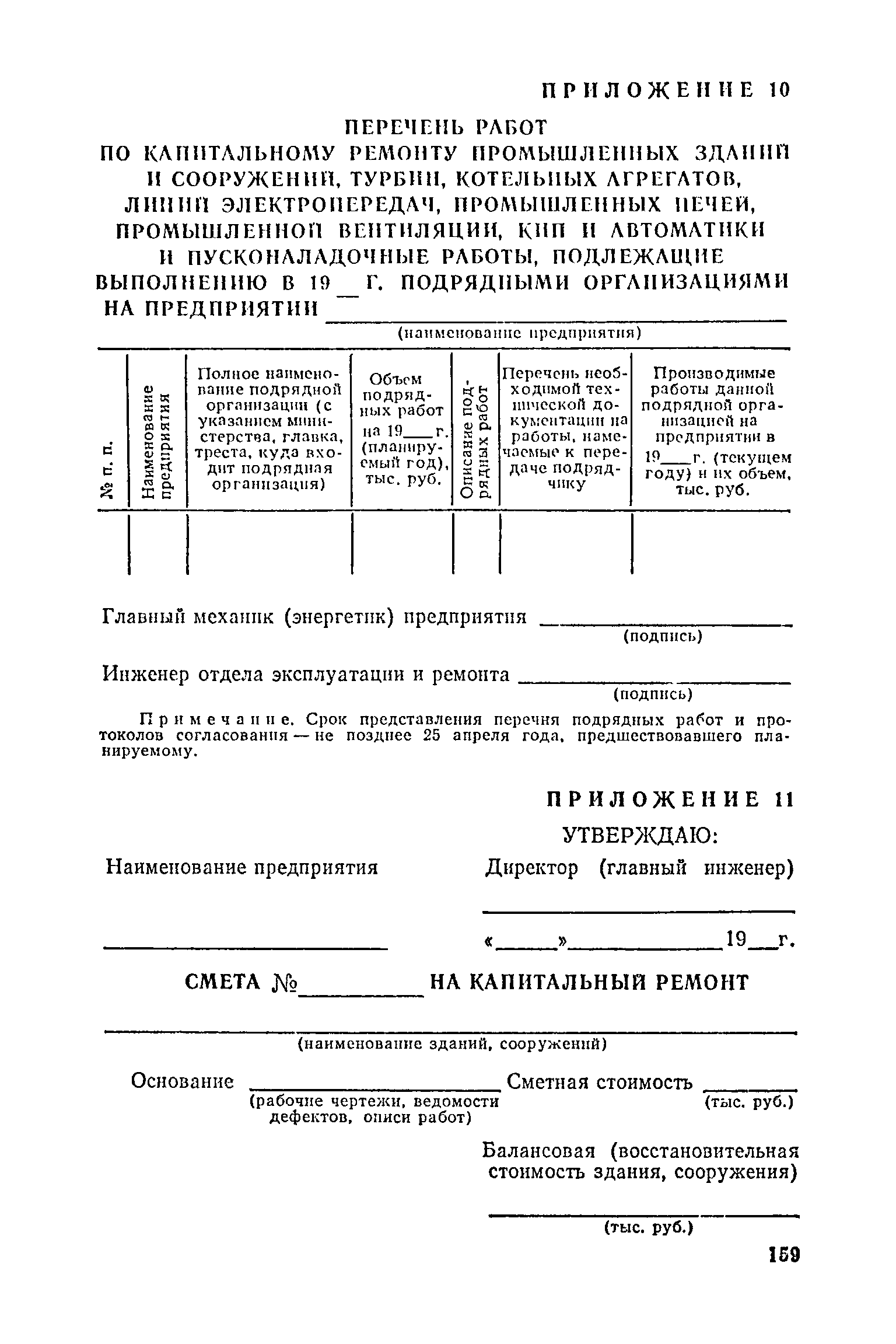 Положение о проведении планово-предупредительного ремонта и технической эксплуатации производственных зданий и сооружений предприятий промышленности строительных материалов| Статус: | справочные материалы, мп, тпр | | Название рус.: | Положение о проведении планово-предупредительного ремонта и технической эксплуатации производственных зданий и сооружений предприятий промышленности строительных материалов | | Дата добавления в базу: | 01.01.2021 | | Дата актуализации: | 01.01.2021 | | Область применения: | Положение дополнено новыми разделами, содержащими правила технической эксплуатации производственных зданий н сооружений в условиях влияния агрессивной среды, высоких и низких температур, повышенной вибрации конструкций, запыленности и влажности, а также эксплуатации н ремонта основных промышленных инженерных сооружений, инженерных сетей, вспомогательных производственных сооружений, складских помещений, конструктивных частей зданий п т.п.; требования к эксплуатации н ремонту сооружений автомобильно-железнодорожного транспорта; порядок обследования стальных и железобетонных конструкций. | | Оглавление: | 1. Общая часть 2. Организация надзора за эксплуатацией производственных зданий и сооружений на предприятиях промышленности строительных материалов 3. Проведение планово-предупредительного ремонта зданий и сооружений на предприятиях 4. Технические условия эксплуатации территории предприятия и конструктивных частей производственных зданий и сооружений 5. Дополнительные требования к эксплуатации строительных конструкций в особых условиях 6. Обследование и освидетельствование стальных конструкций зданий и сооружений промышленных предприятий 7. Осмотр строительных конструкций 8. Эксплуатация основных промышленных зданий и сооружений 9. Эксплуатация инженерных сетей и сооружений на них 10. Эксплуатация сооружений автомобильного и внутризаводского железнодорожного транспорта 11. Порядок приемки в эксплуатацию законченных строительством и капитальным ремонтом производственных зданий и сооружений Приложение 1 Технические паспорт на производственное здание (сооружение) Приложение 2 Предписание отдела эксплуатации и ремонта производственных зданий и сооружений Приложение 3 Технический журнал на эксплуатацию здания (сооружения) Приложение 4 Ориентировочные сроки устранения неисправностей при непредвиденном или аварийном ремонте отдельных частей производственных зданий, сооружений и инженерного оборудования Приложение 5 Акт очередного технического осмотра здания (сооружения) Приложение 6 Положение о порядке расследования причин аварии (обрушений) зданий, сооружений, их частей и конструктивных элементов Приложение 7 Перечень работ, выполняемых при текущем и капитальном ремонтах конструктивных элементов производственных зданий и сооружений, а также инженерных сетей и сооружений на них Приложение 8 Периодичность проведения работ по капитальному ремонту Приложение 9 План-заявка на проведение капитального ремонта производственных зданий и сооружений Приложение 10 Перечень работ по капитальному ремонту промышленных зданий и сооружений, турбин, котельных агрегатов, линий электропередач, промышленных печей, промышленной вентиляции, кип и автоматики и пусконаладочные работы, подлежащие выполнению подрядными о