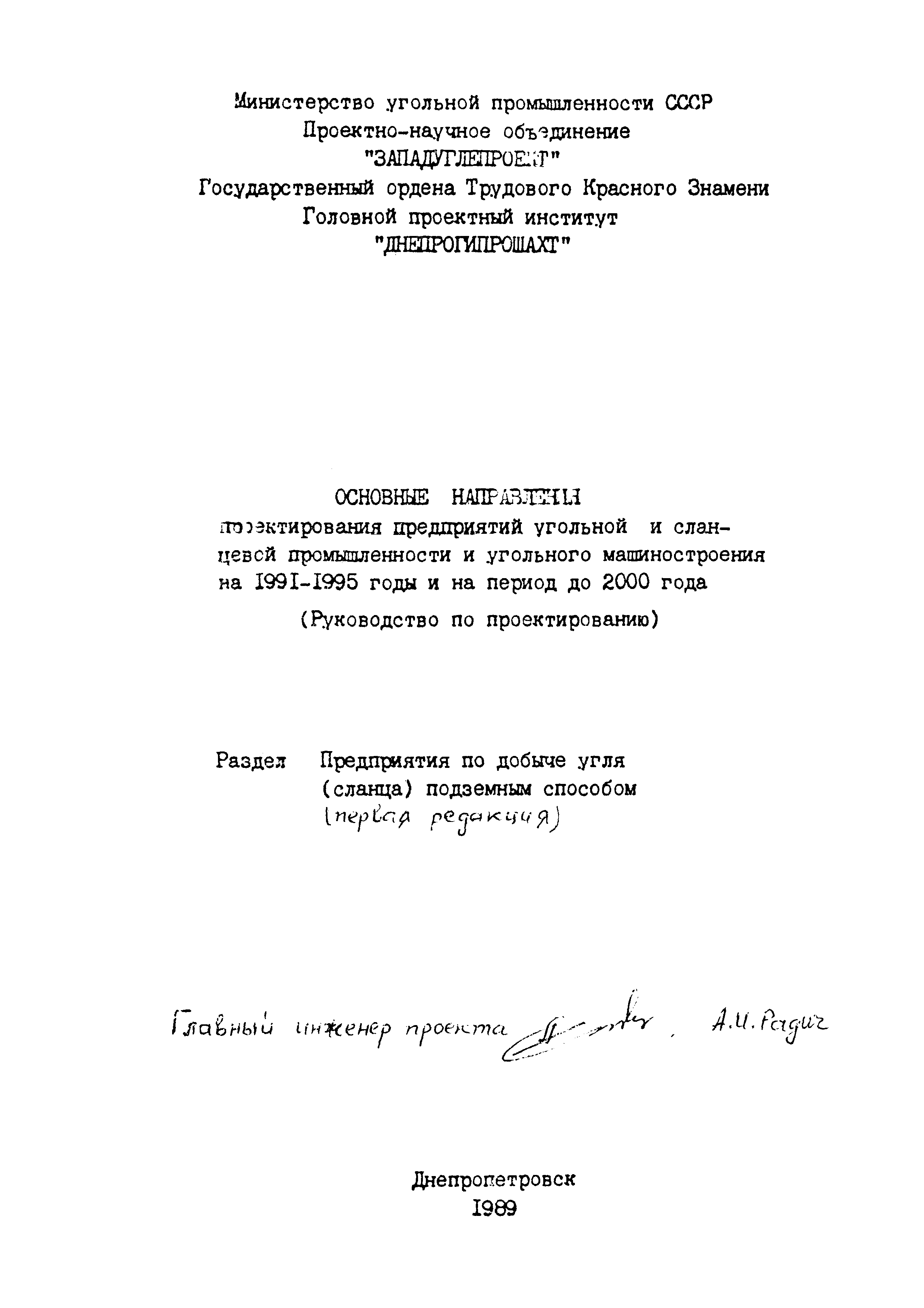 | Разработан: | Днепрогипрошахт Западуглепроект