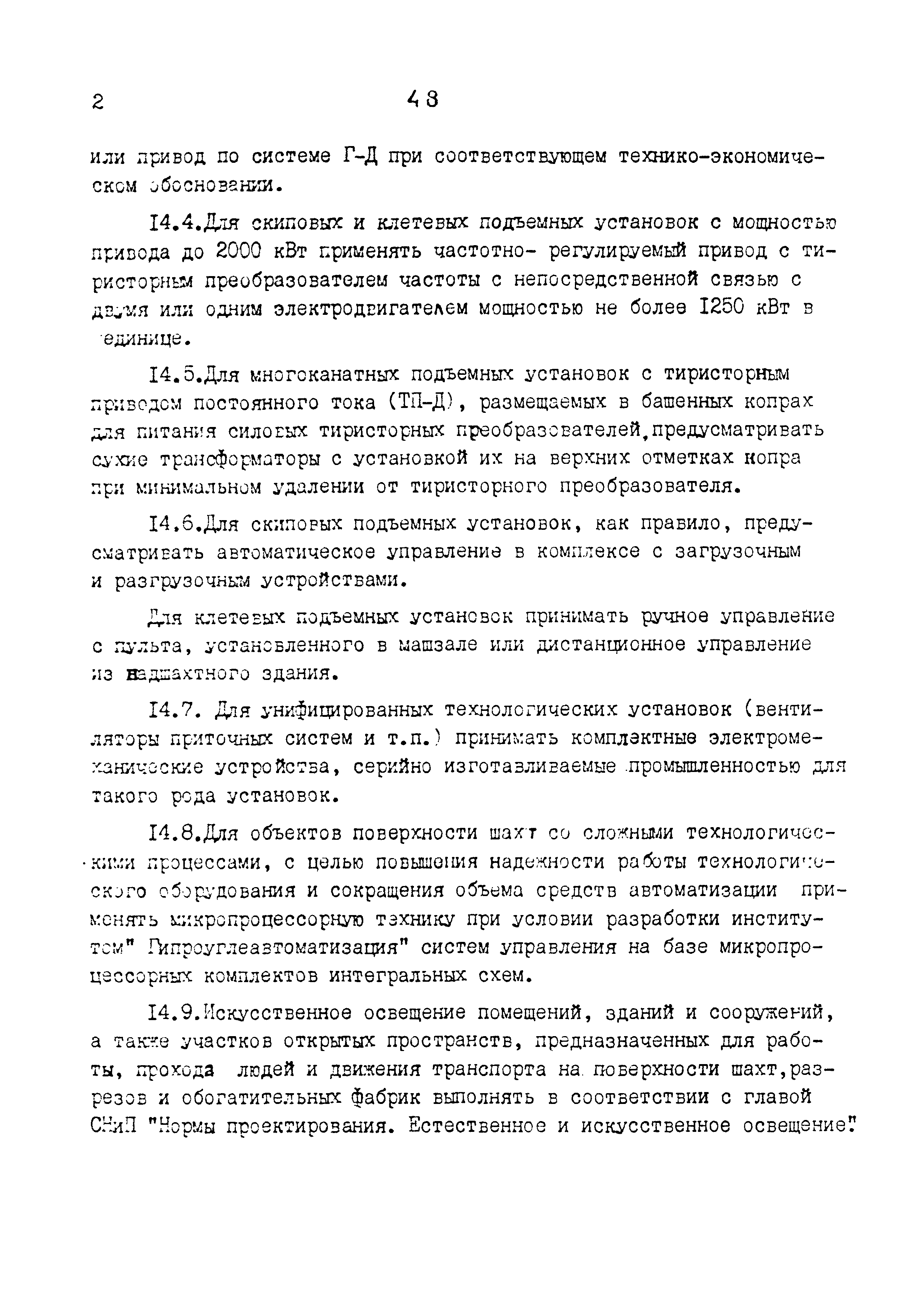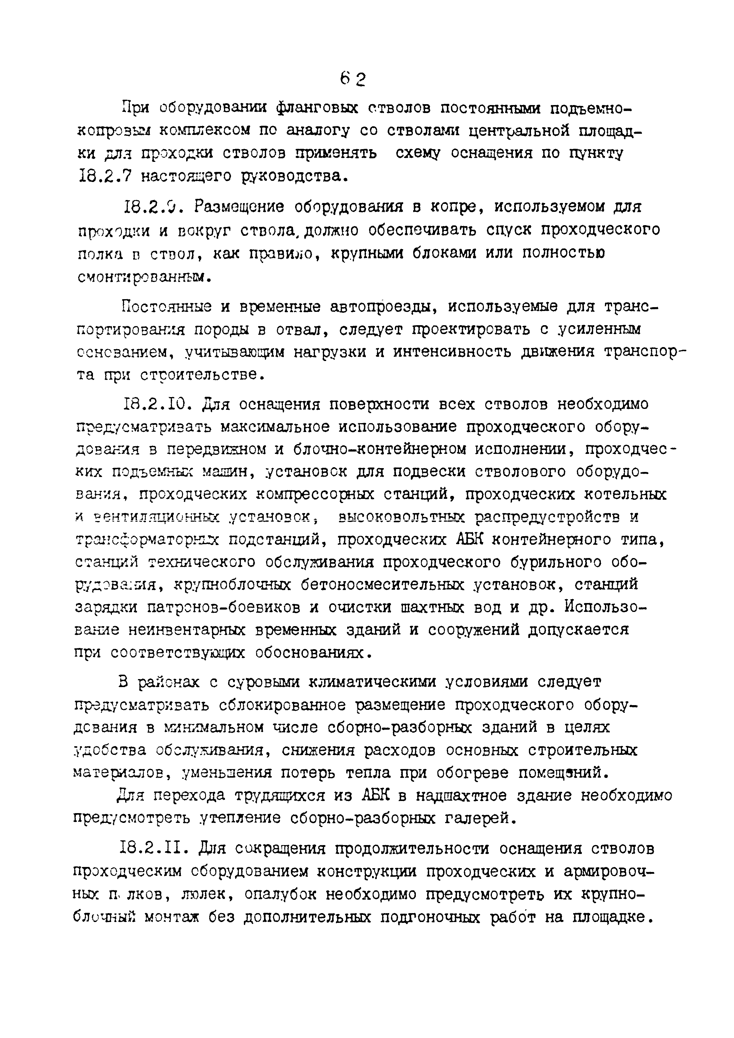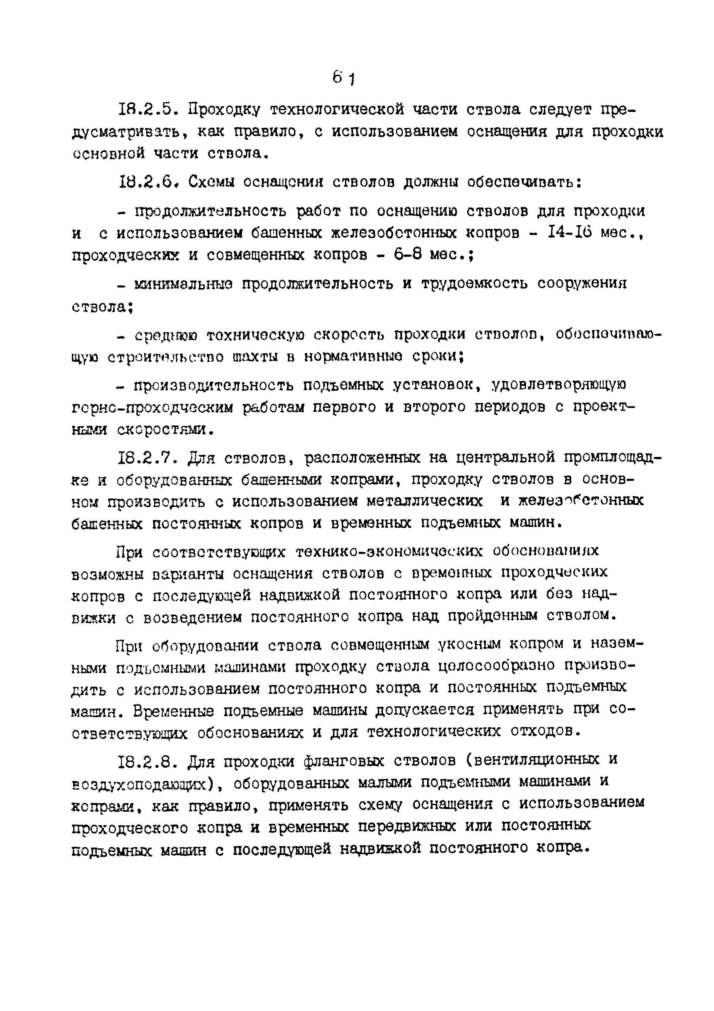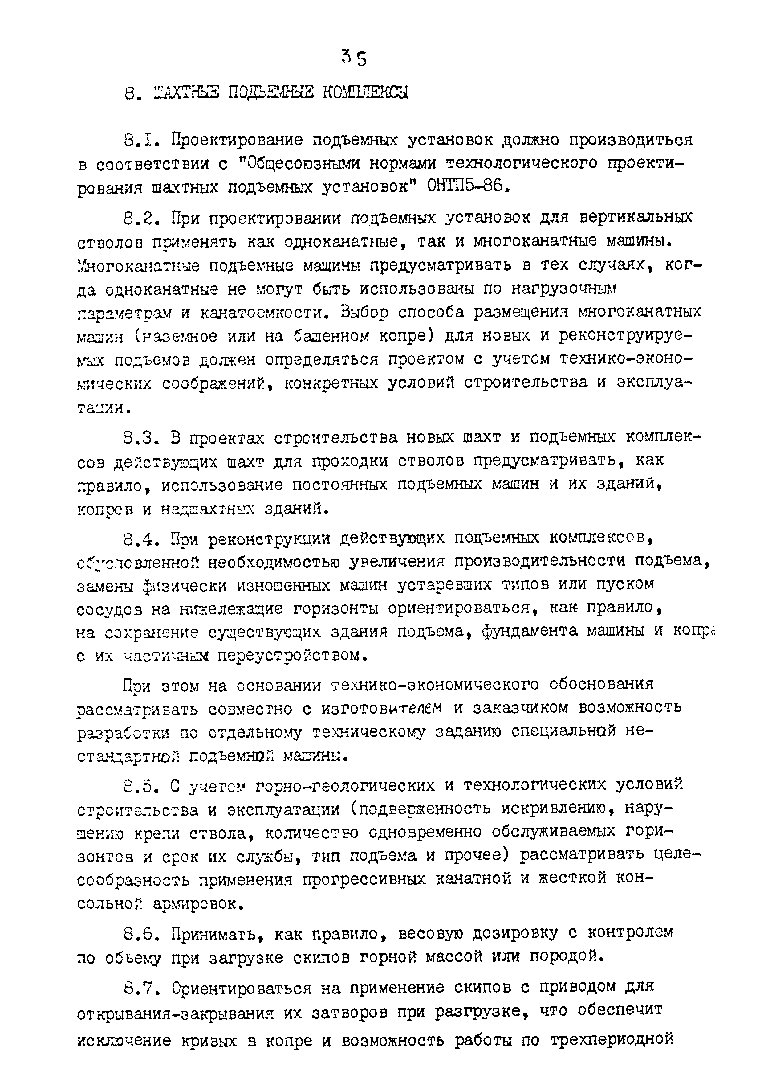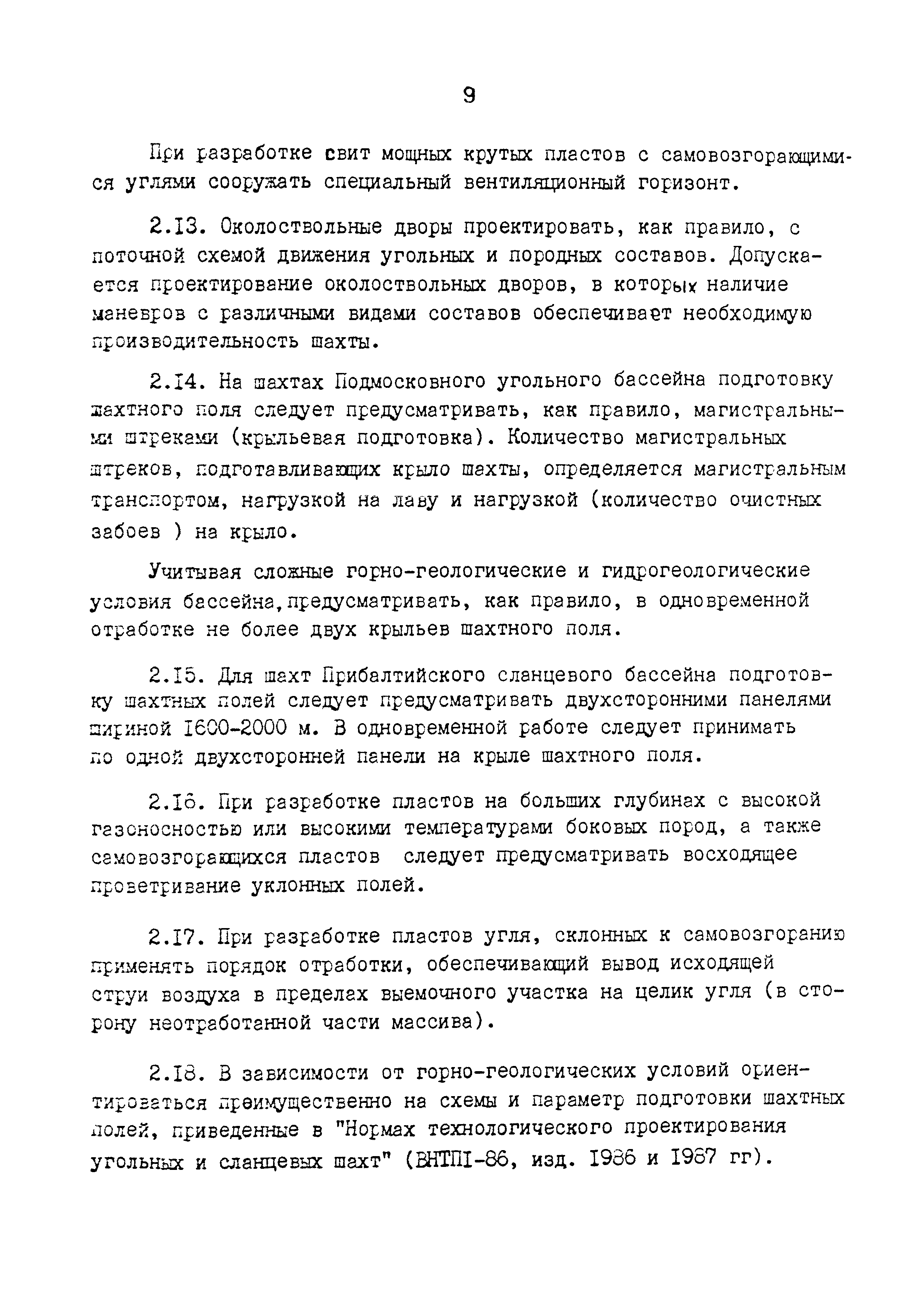 | Оглавление: | 1. Основные положения 2. Вскрытие и подготовка шахтных полей 3. Системы разработки и механизация очистных работ 4. Проведение и поддержание горных выработок 5. Проветривание, дегазация, пылеподавление, противопожарные мероприятия и борьба с высокими температурами 6. Подземный транспорт 7. Осушение и водоотлив 8. Шахтные подъемные комплексы 9. Компрессорные установки 10. Технологический комплекс 11. Погрузочно-складское хозяйство 12. Породный комплекс 13. Электроснабжение 14. Электрооборудование и автоматизация технологических процессов 15. Управление технологическими процессами 16. Производственно-технологическая связь и сигнализация 17. Охрана природы 18. Организация строительства |