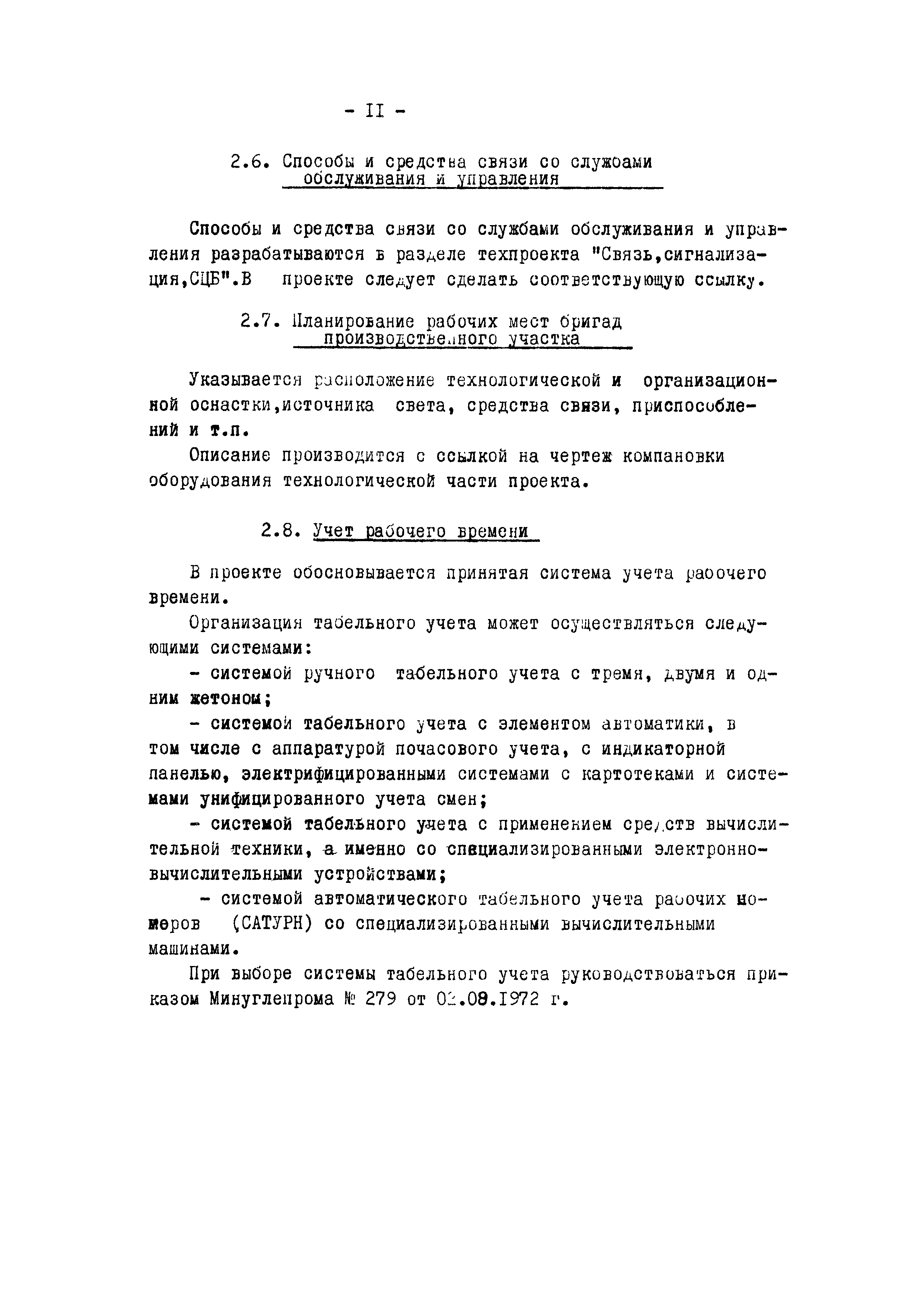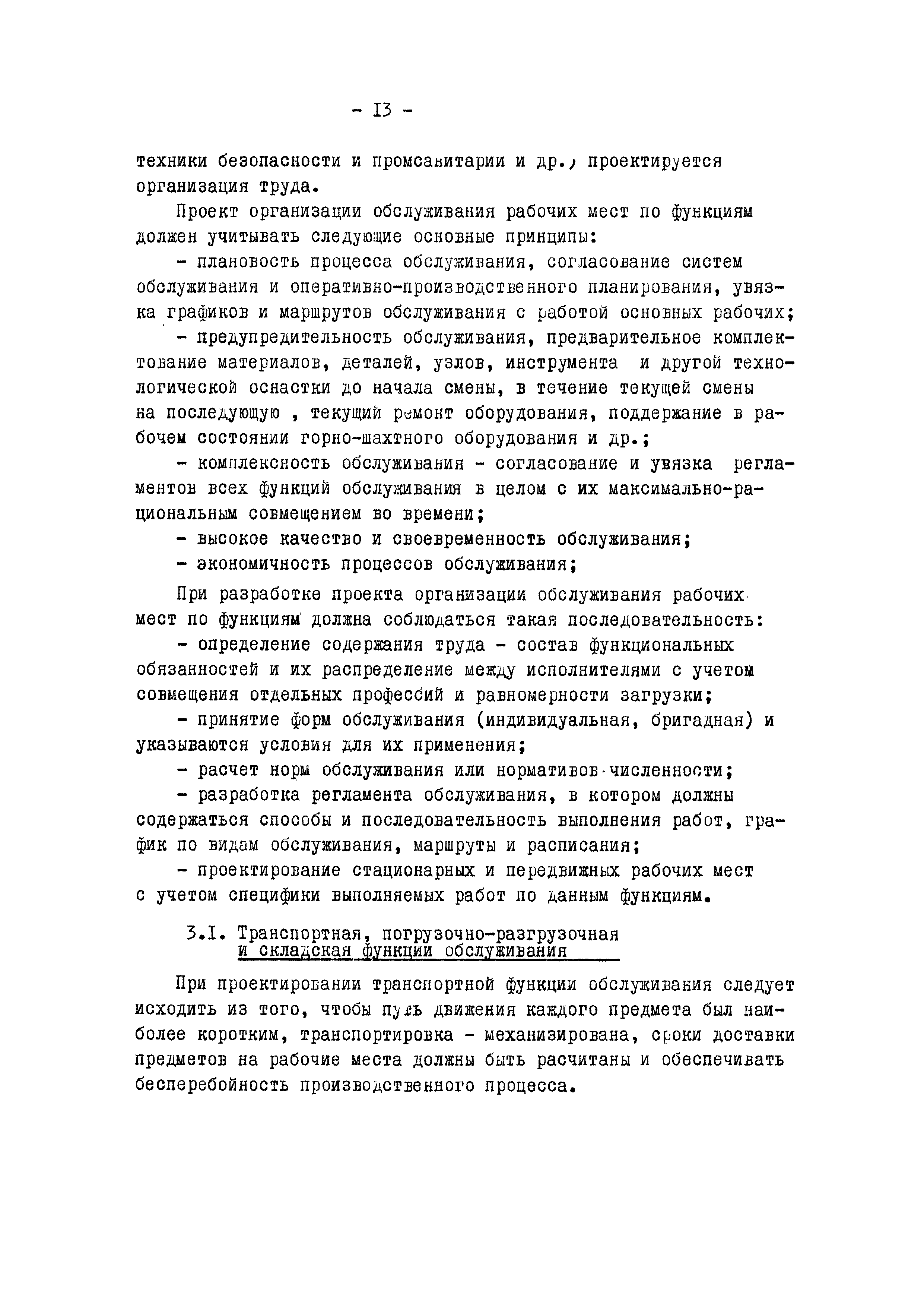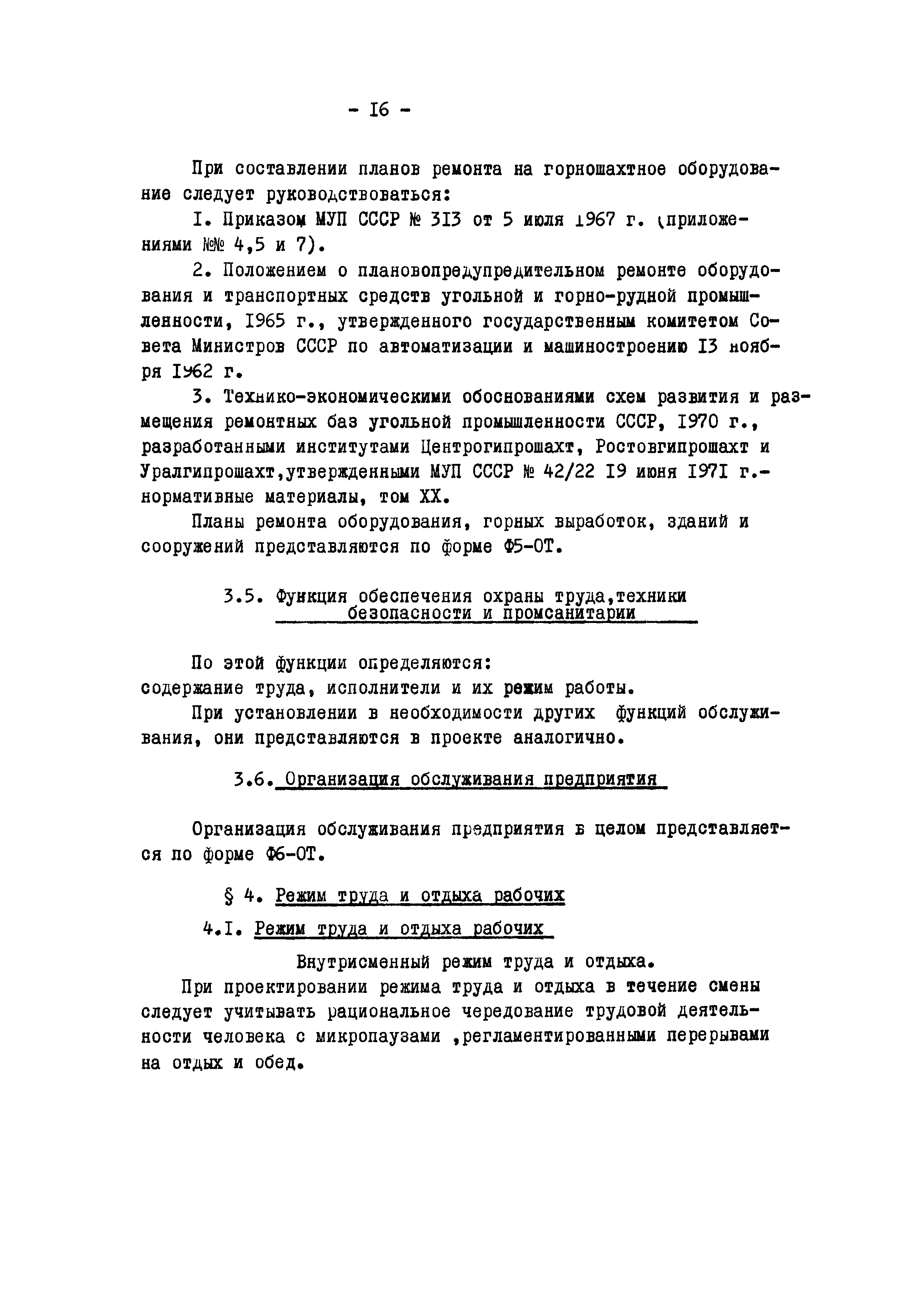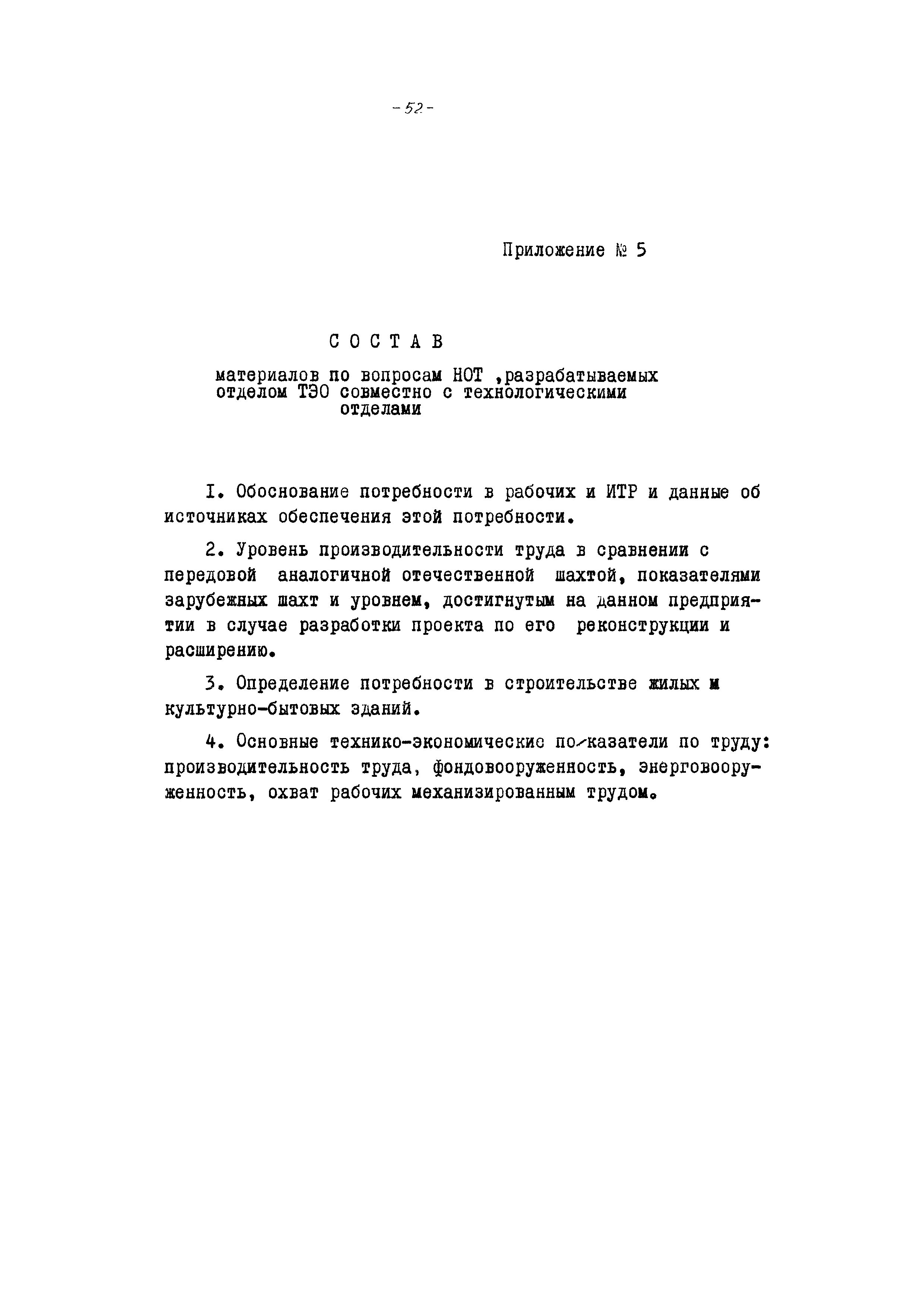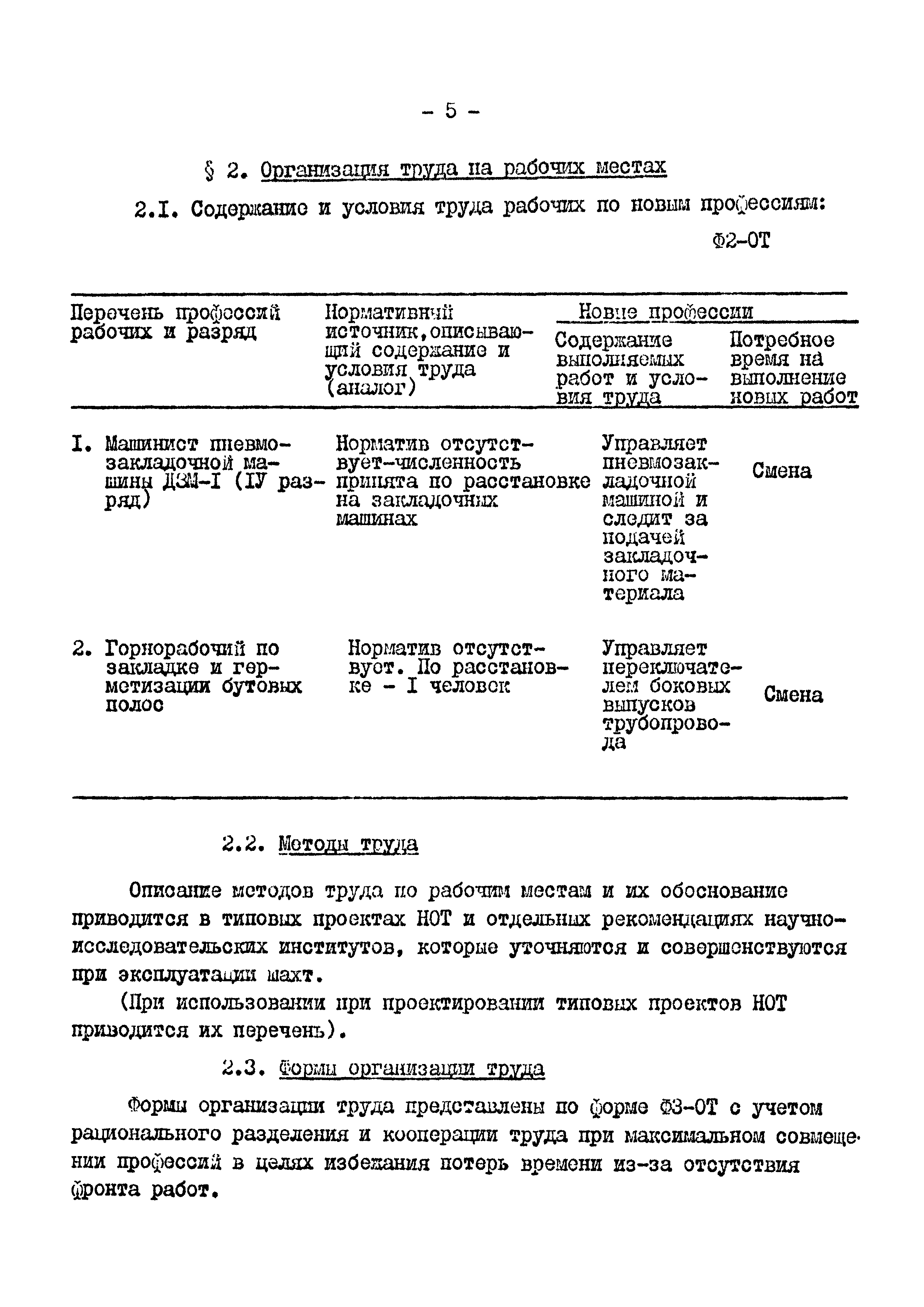 Организация труда и системы управления производством. Книга II. Методические указания| Статус: | справочные материалы, мп, тпр | | Название рус.: | Организация труда и системы управления производством. Книга II. Методические указания | | Дата добавления в базу: | 01.01.2021 | | Дата актуализации: | 01.01.2021 | | Оглавление: | А. Организация труда 1. Определение численного профессионально-квалификационного состава и источников обеспечения рабочей силой предприятия 2. Организация труда на рабочих местах 3. Организация обслуживания рабочих мест 4. Режим труда и отдыха рабочих 5. Мероприятия по научной организации труда Б. Системы управления производством 1. Организация аппарата управления 2. Автоматизированные системы управления производством Приложение 1. Перечень приборов для определения параметров внешней среды и санитарно-гигиенических условий труда на рабочих местах, рекомендуемых для применения в проектах Приложение 2 Перечень нормативных документов и рекомендуемых материалов по проектированию раздела Организация труда Приложение 3. Обслуживание трудящихся шахты Приложение 4. Состав материалов по вопросам НОТ, разрабатываемых под общим руководством главного инженера проекта Приложение 5. Состав материалов по вопросам НОТ разрабатываемых отделом ТЭО совместно с технологическими отделами Приложение 6. Состав материалов по вопросам НОТ, разрабатываемых технологическими отделами Приложение 7. Состав материалов по вопросам НОТ, разрабатываемых электромеханическим отделом Приложение 8. Состав материалов по вопросам НОТ, разрабатываемых сантехническим отделом Приложение 9. Состав материалов по вопросам НОТ, разрабатываемых отделом Генплана и Транспорта Приложение 10. Состав материалов по вопросам НОТ, разрабатываемых строительными отделами Приложение 11. Примерный перечень функций управления Приложение 12. Перечень основных технических средств, используемых для механизации и автоматизации инженерно-управленческих работ Приложение 13. Нормативы на проектирование условий труда персонала аппарата управления Приложение 14. Рекомендуемые цветовые сочетания для окраски оборудования и служебных помещений Приложение 15. Рабочее место (кабинет) главного бухгалтера Приложение 16. Рабочее место бухгалтера (старшего бухгалтера) Приложение 17. Рабочее место бухгалтера (старшего бухгалтера) Приложение 18. Рабочее место экономиста по финансовой работе Приложение ‚9. Рабочее место инженера по труду Приложение 20. Рабочее место инженера по нормированию Приложение 21. Рабочее место начальника ОТЗ Приложение 22. Пример | | Разработан: | Центргипрошахт Минуглепрома СССР