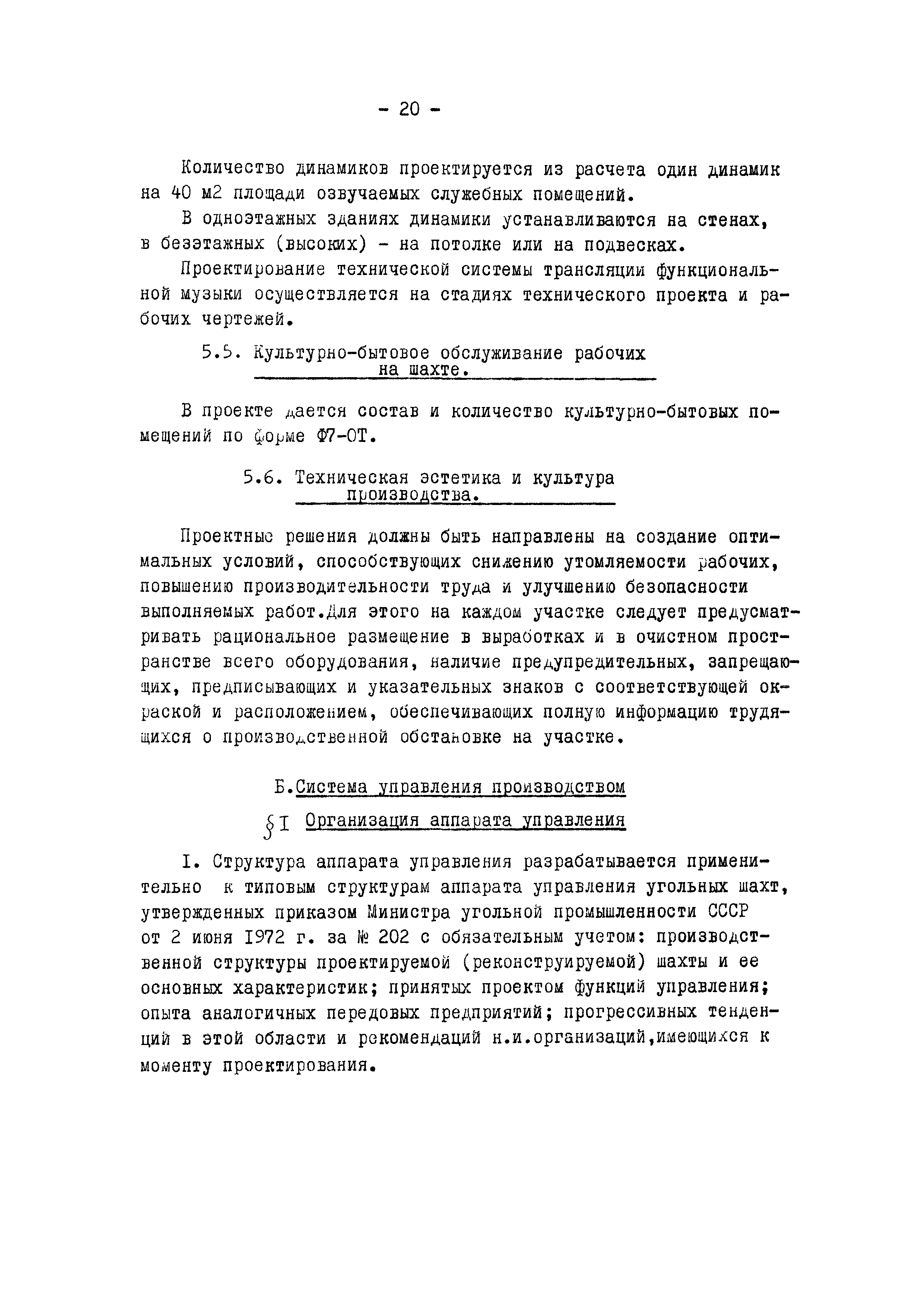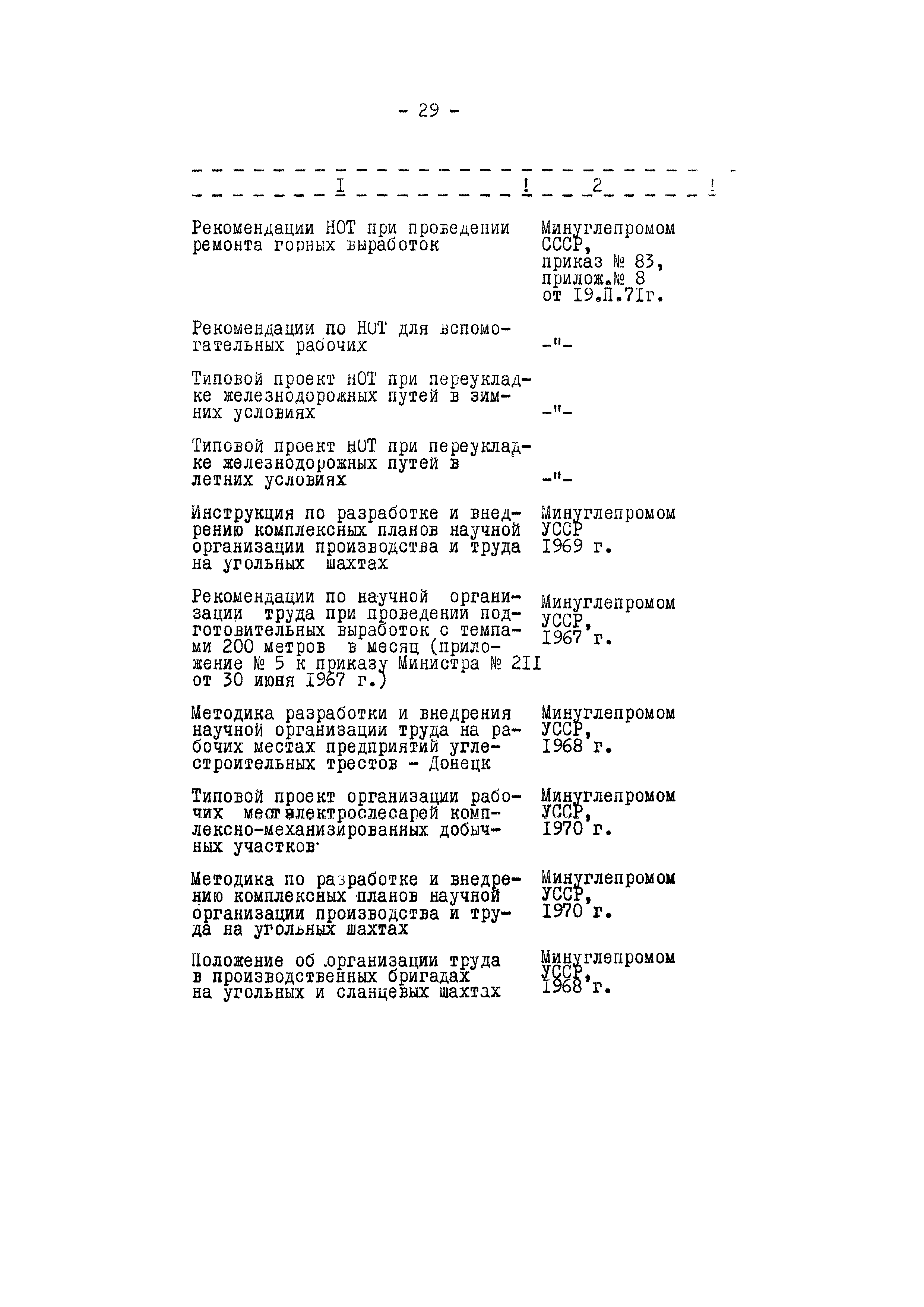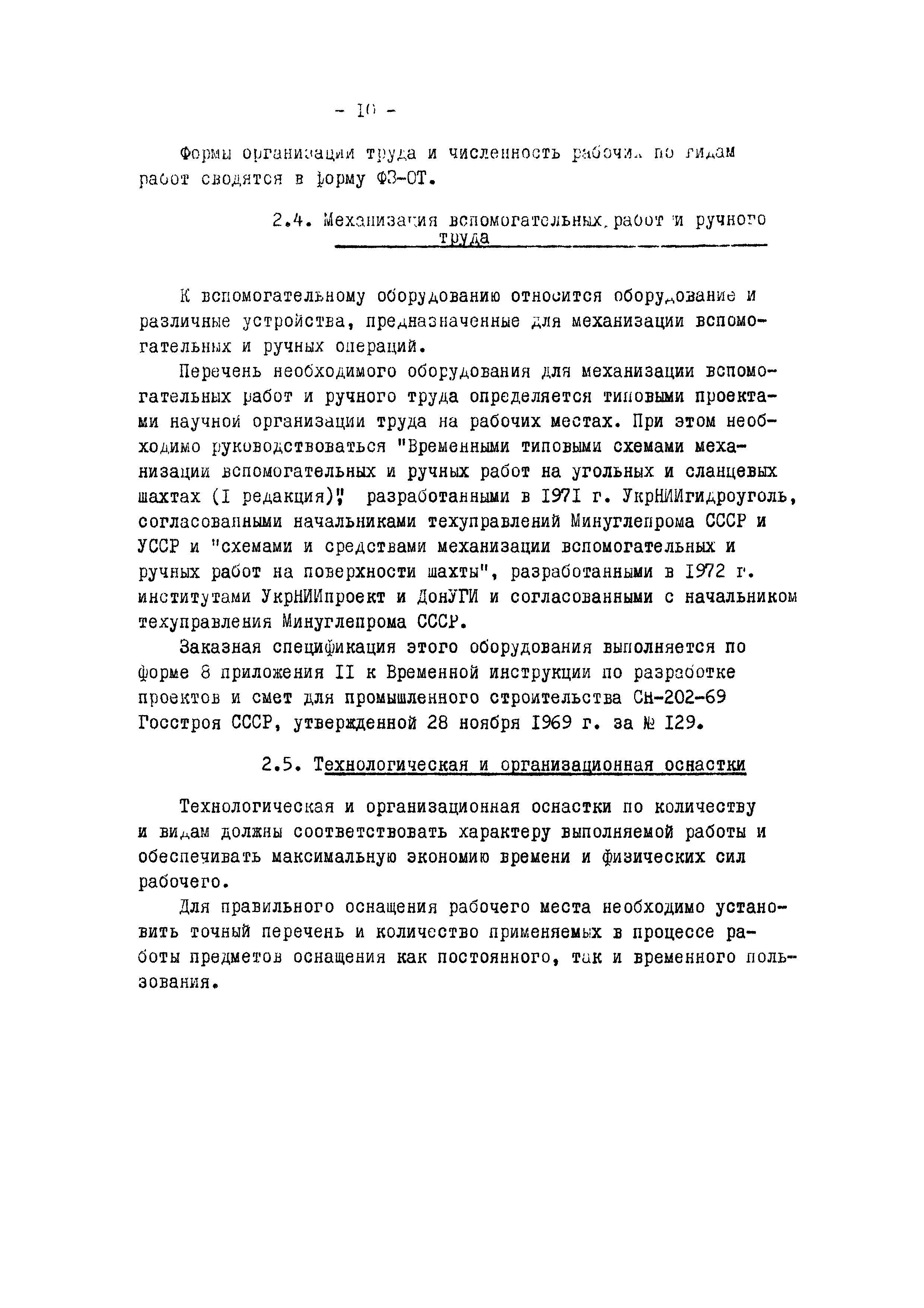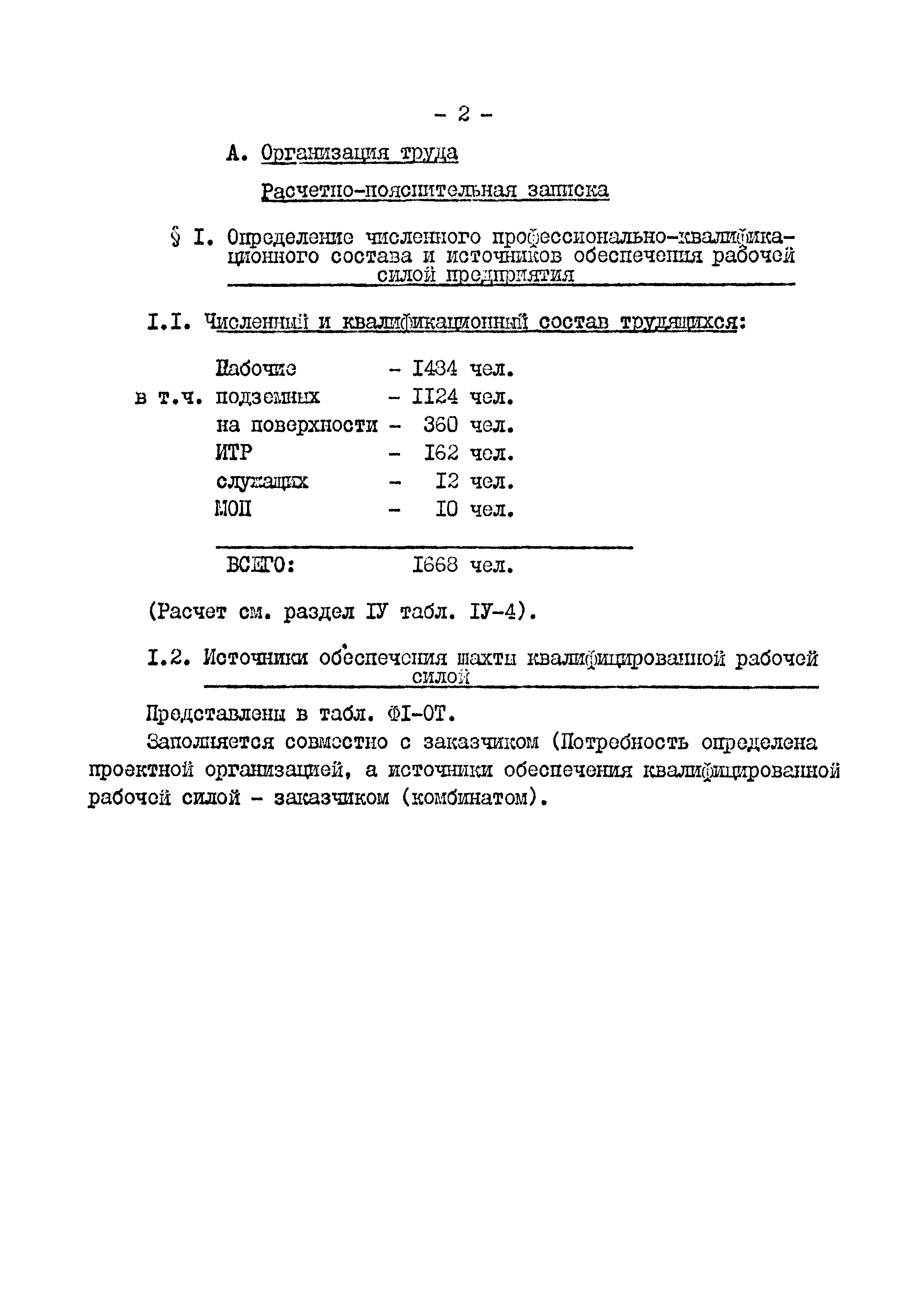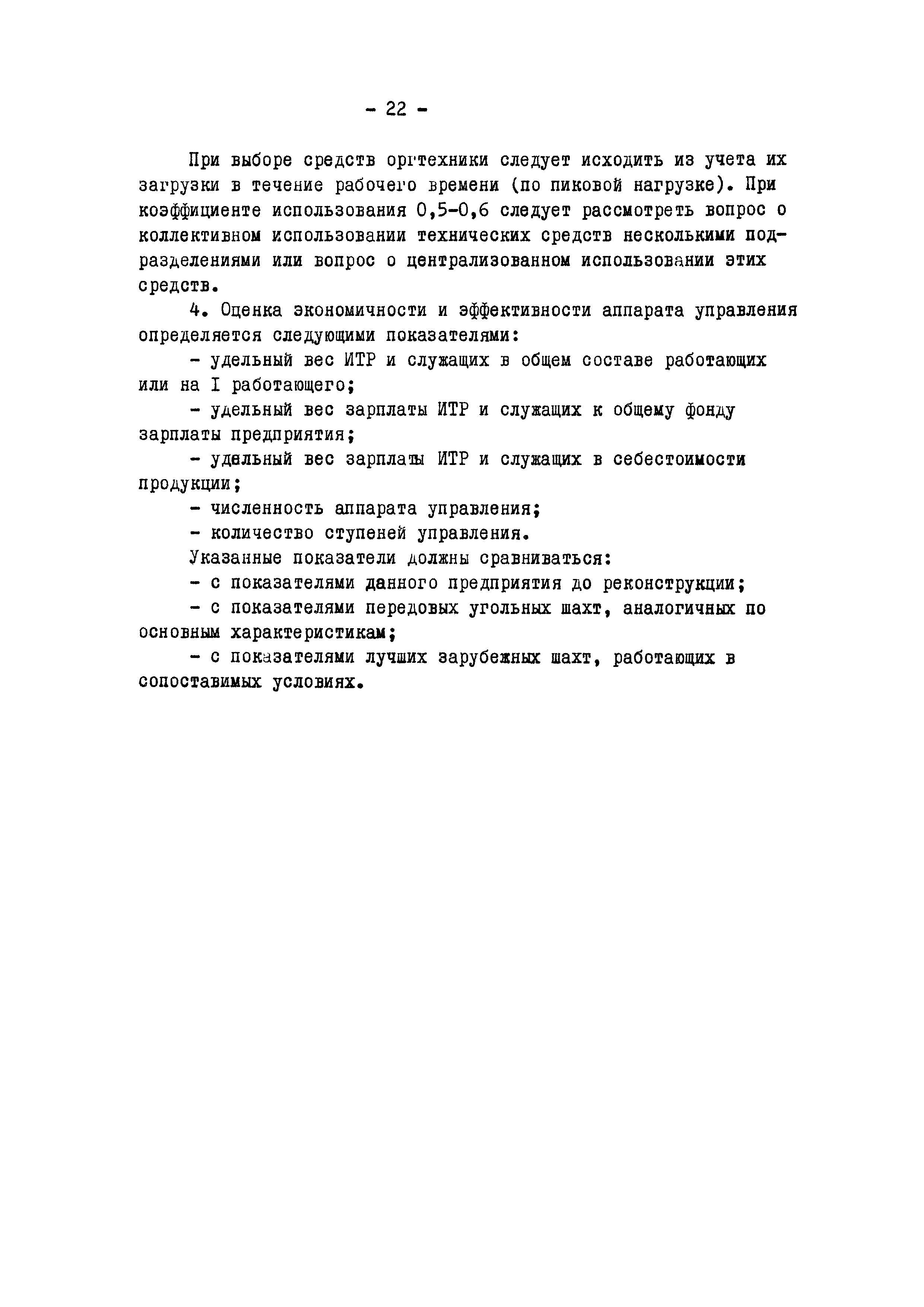 Организация труда и системы управления производством. Книга II. Методические указания| Статус: | справочные материалы, мп, тпр | | Название рус.: | Организация труда и системы управления производством. Книга II. Методические указания | | Дата добавления в базу: | 01.01.2021 | | Дата актуализации: | 01.01.2021 | | Оглавление: | А. Организация труда 1. Определение численного профессионально-квалификационного состава и источников обеспечения рабочей силой предприятия 2. Организация труда на рабочих местах 3. Организация обслуживания рабочих мест 4. Режим труда и отдыха рабочих 5. Мероприятия по научной организации труда Б. Системы управления производством 1. Организация аппарата управления 2. Автоматизированные системы управления производством Приложение 1. Перечень приборов для определения параметров внешней среды и санитарно-гигиенических условий труда на рабочих местах, рекомендуемых для применения в проектах Приложение 2 Перечень нормативных документов и рекомендуемых материалов по проектированию раздела Организация труда Приложение 3. Обслуживание трудящихся шахты Приложение 4. Состав материалов по вопросам НОТ, разрабатываемых под общим руководством главного инженера проекта Приложение 5. Состав материалов по вопросам НОТ разрабатываемых отделом ТЭО совместно с технологическими отделами Приложение 6. Состав материалов по вопросам НОТ, разрабатываемых технологическими отделами Приложение 7. Состав материалов по вопросам НОТ, разрабатываемых электромеханическим отделом Приложение 8. Состав материалов по вопросам НОТ, разрабатываемых сантехническим отделом Приложение 9. Состав материалов по вопросам НОТ, разрабатываемых отделом Генплана и Транспорта Приложение 10. Состав материалов по вопросам НОТ, разрабатываемых строительными отделами Приложение 11. Примерный перечень функций управления Приложение 12. Перечень основных технических средств, используемых для механизации и автоматизации инженерно-управленческих работ Приложение 13. Нормативы на проектирование условий труда персонала аппарата управления Приложение 14. Рекомендуемые цветовые сочетания для окраски оборудования и служебных помещений Приложение 15. Рабочее место (кабинет) главного бухгалтера Приложение 16. Рабочее место бухгалтера (старшего бухгалтера) Приложение 17. Рабочее место бухгалтера (старшего бухгалтера) Приложение 18. Рабочее место экономиста по финансовой работе Приложение ‚9. Рабочее место инженера по труду Приложение 20. Рабочее место инженера по нормированию Приложение 21. Рабочее место начальника ОТЗ Приложение 22. Пример | | Разработан: | Центргипрошахт Минуглепрома СССР