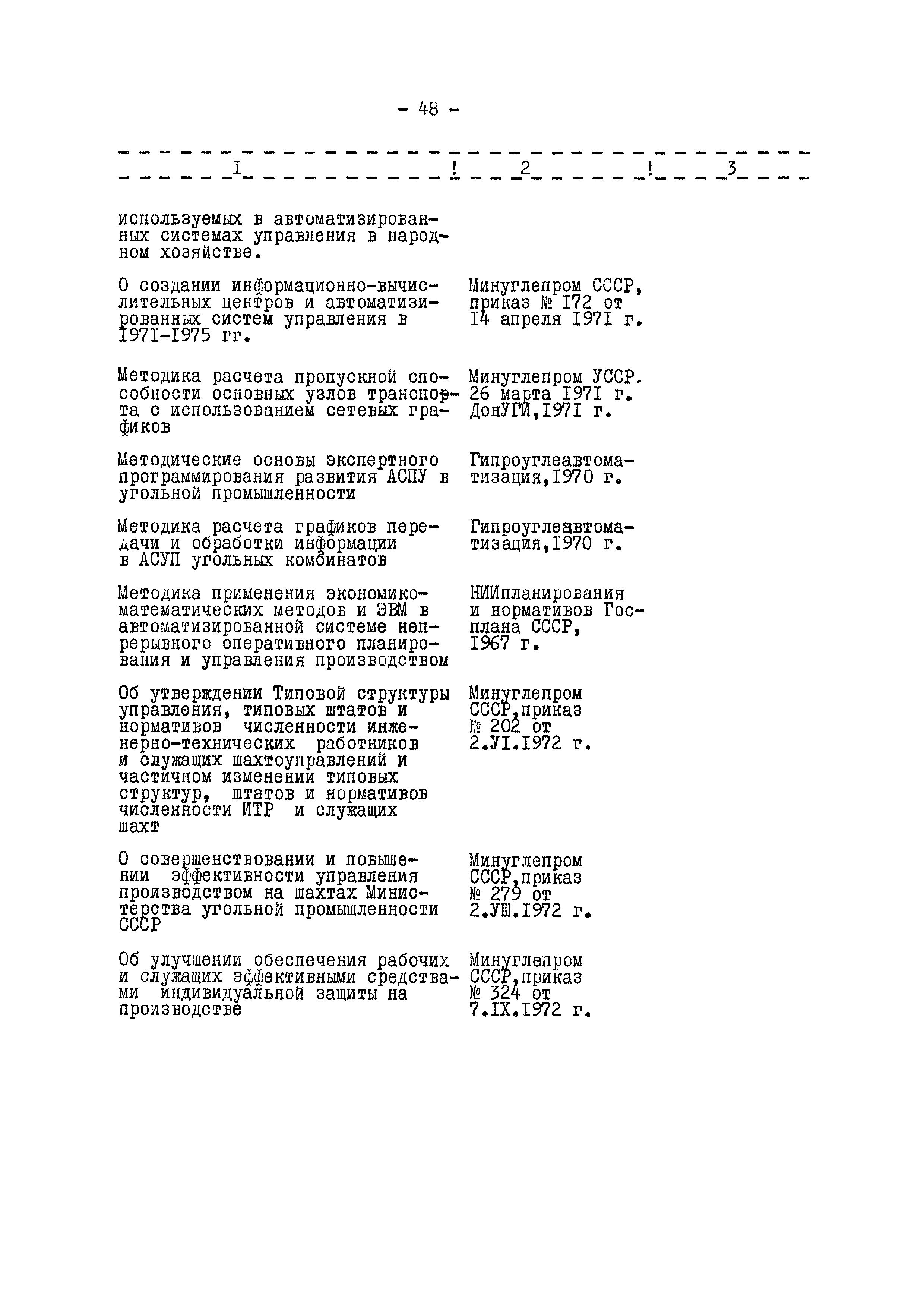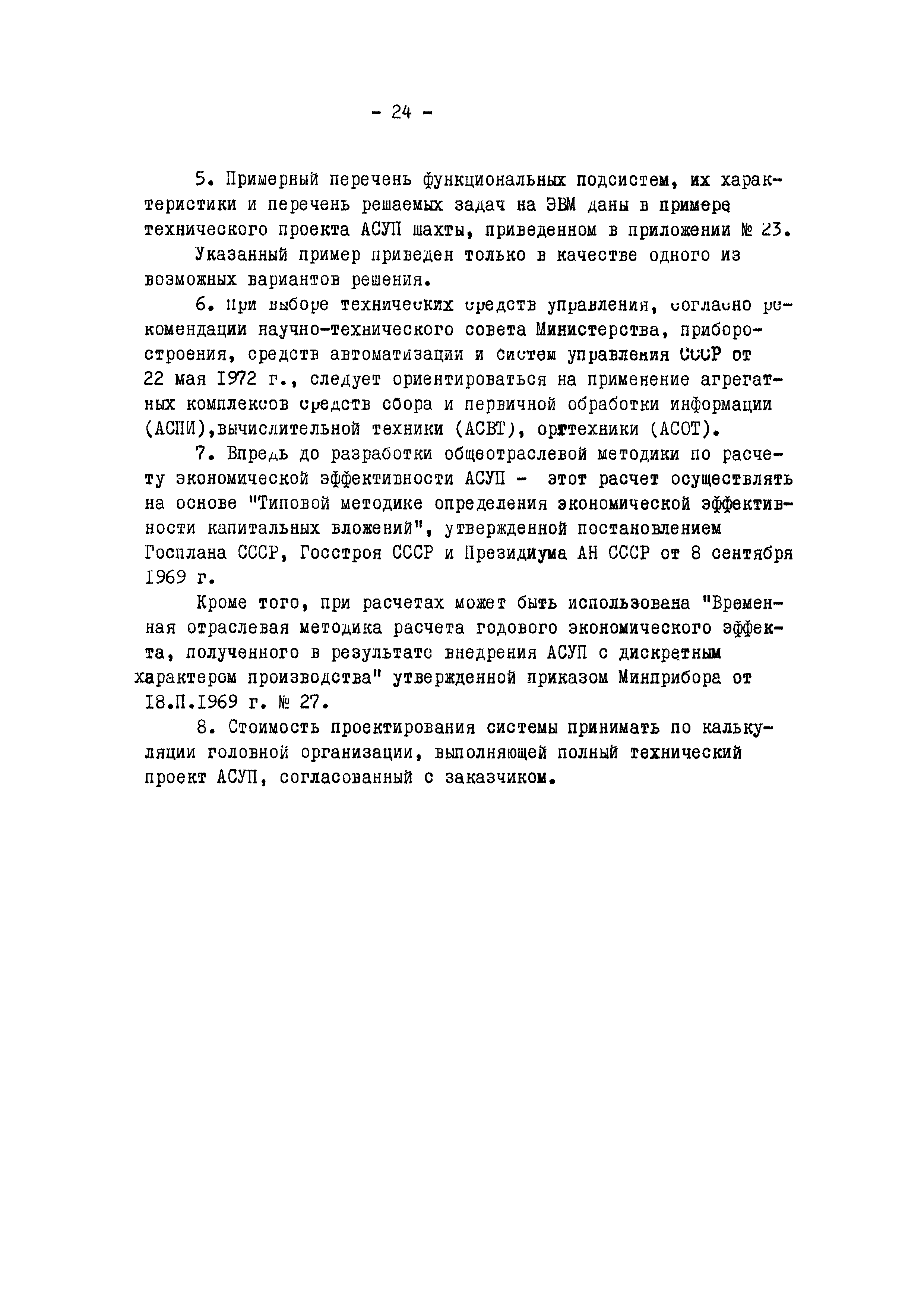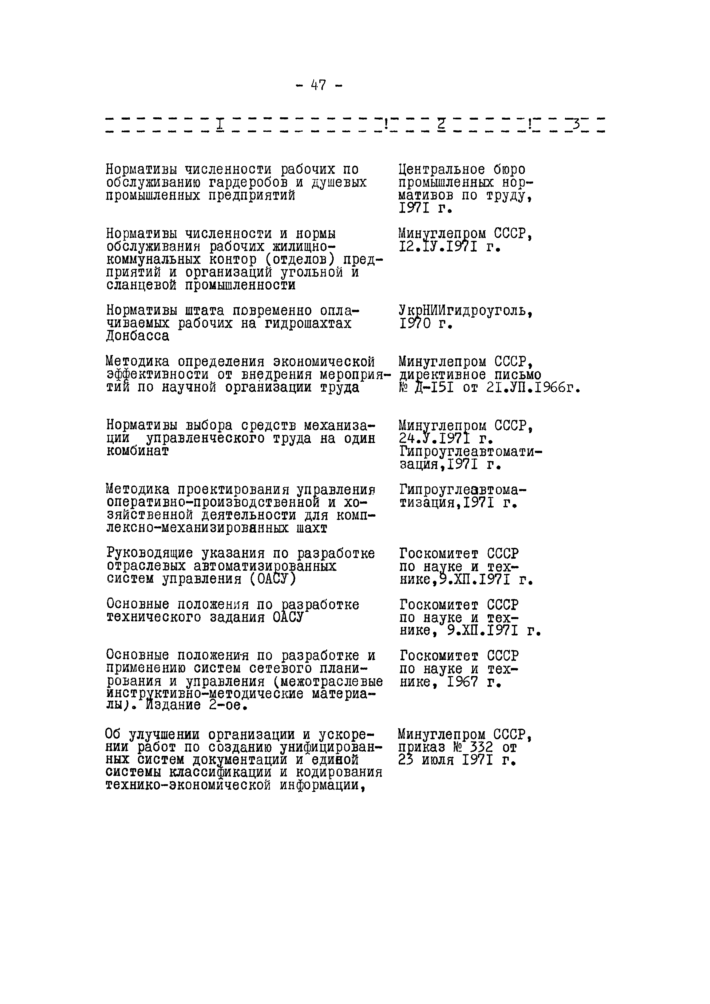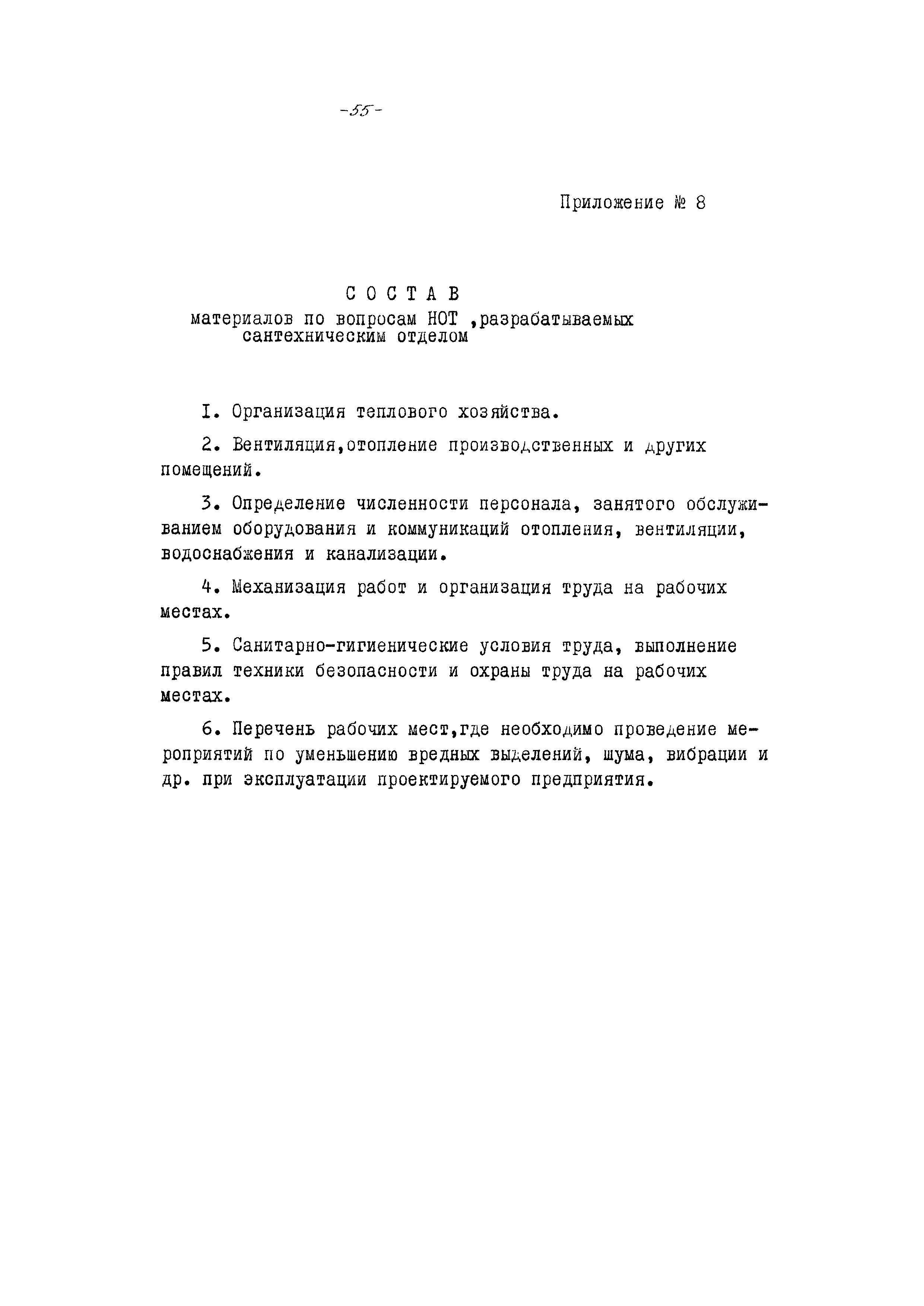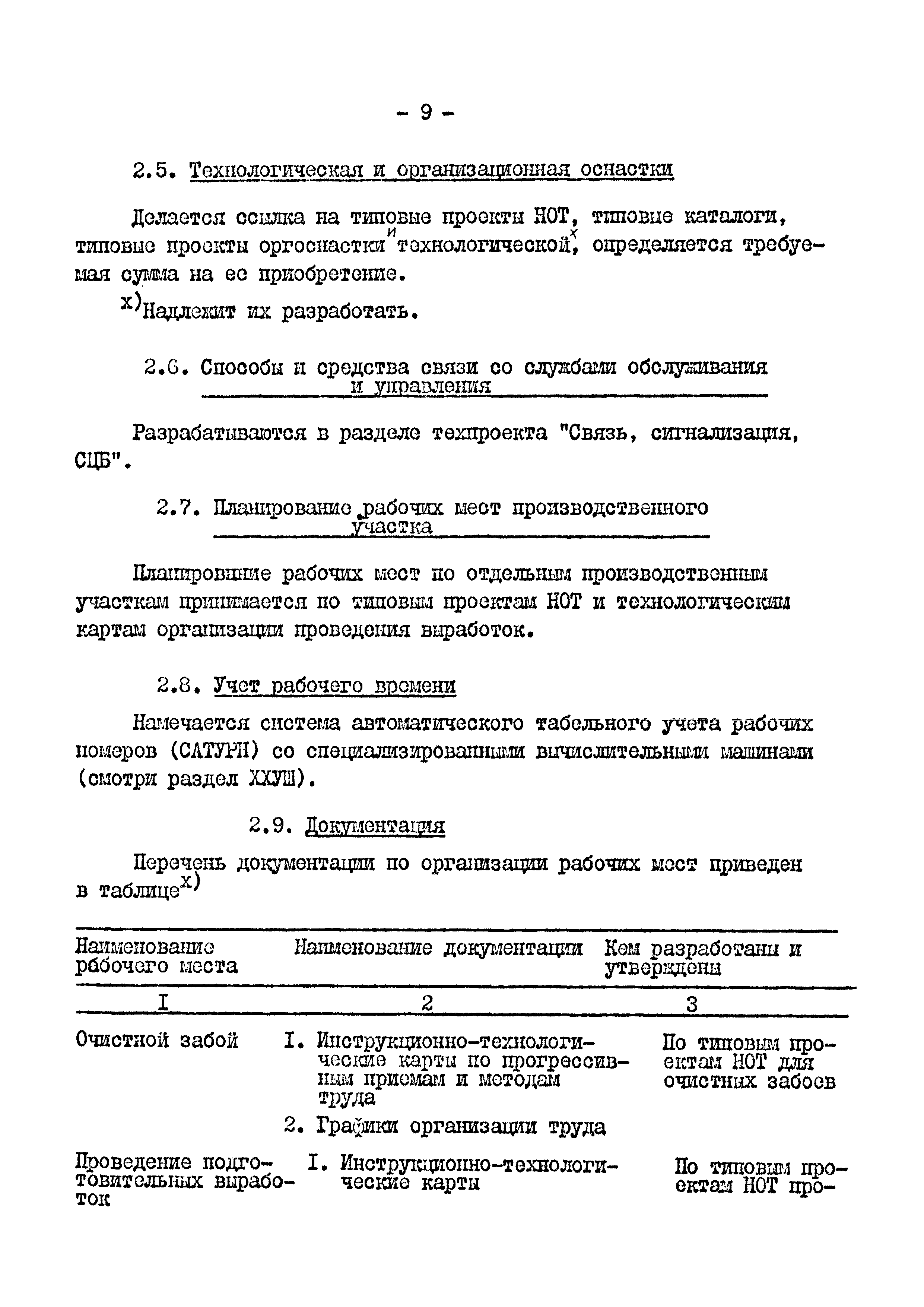 Организация труда и системы управления производством. Книга II. Методические указания| Статус: | справочные материалы, мп, тпр | | Название рус.: | Организация труда и системы управления производством. Книга II. Методические указания | | Дата добавления в базу: | 01.01.2021 | | Дата актуализации: | 01.01.2021 | | Оглавление: | А. Организация труда 1. Определение численного профессионально-квалификационного состава и источников обеспечения рабочей силой предприятия 2. Организация труда на рабочих местах 3. Организация обслуживания рабочих мест 4. Режим труда и отдыха рабочих 5. Мероприятия по научной организации труда Б. Системы управления производством 1. Организация аппарата управления 2. Автоматизированные системы управления производством Приложение 1. Перечень приборов для определения параметров внешней среды и санитарно-гигиенических условий труда на рабочих местах, рекомендуемых для применения в проектах Приложение 2 Перечень нормативных документов и рекомендуемых материалов по проектированию раздела Организация труда Приложение 3. Обслуживание трудящихся шахты Приложение 4. Состав материалов по вопросам НОТ, разрабатываемых под общим руководством главного инженера проекта Приложение 5. Состав материалов по вопросам НОТ разрабатываемых отделом ТЭО совместно с технологическими отделами Приложение 6. Состав материалов по вопросам НОТ, разрабатываемых технологическими отделами Приложение 7. Состав материалов по вопросам НОТ, разрабатываемых электромеханическим отделом Приложение 8. Состав материалов по вопросам НОТ, разрабатываемых сантехническим отделом Приложение 9. Состав материалов по вопросам НОТ, разрабатываемых отделом Генплана и Транспорта Приложение 10. Состав материалов по вопросам НОТ, разрабатываемых строительными отделами Приложение 11. Примерный перечень функций управления Приложение 12. Перечень основных технических средств, используемых для механизации и автоматизации инженерно-управленческих работ Приложение 13. Нормативы на проектирование условий труда персонала аппарата управления Приложение 14. Рекомендуемые цветовые сочетания для окраски оборудования и служебных помещений Приложение 15. Рабочее место (кабинет) главного бухгалтера Приложение 16. Рабочее место бухгалтера (старшего бухгалтера) Приложение 17. Рабочее место бухгалтера (старшего бухгалтера) Приложение 18. Рабочее место экономиста по финансовой работе Приложение ‚9. Рабочее место инженера по труду Приложение 20. Рабочее место инженера по нормированию Приложение 21. Рабочее место начальника ОТЗ Приложение 22. Пример | | Разработан: | Центргипрошахт Минуглепрома СССР