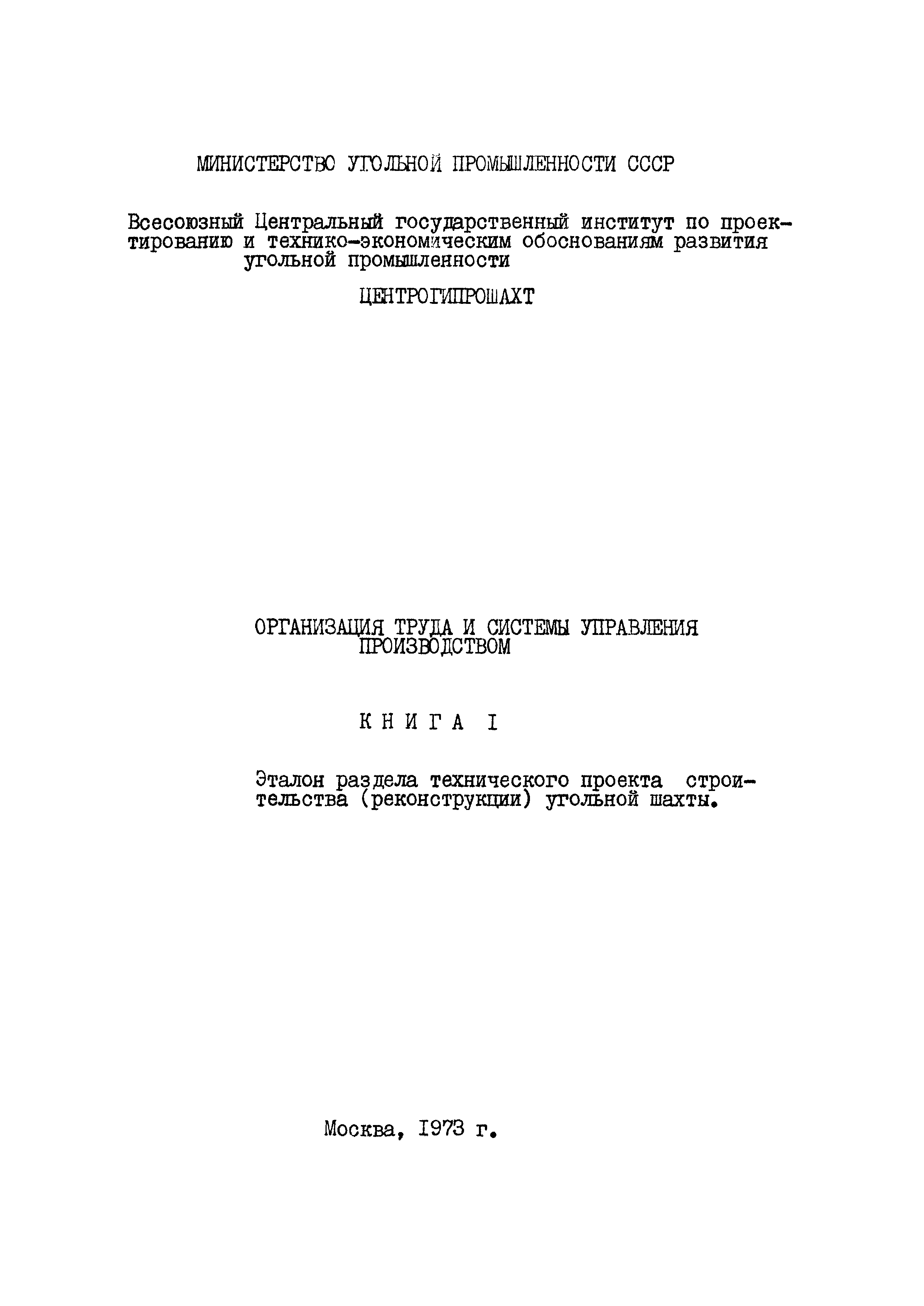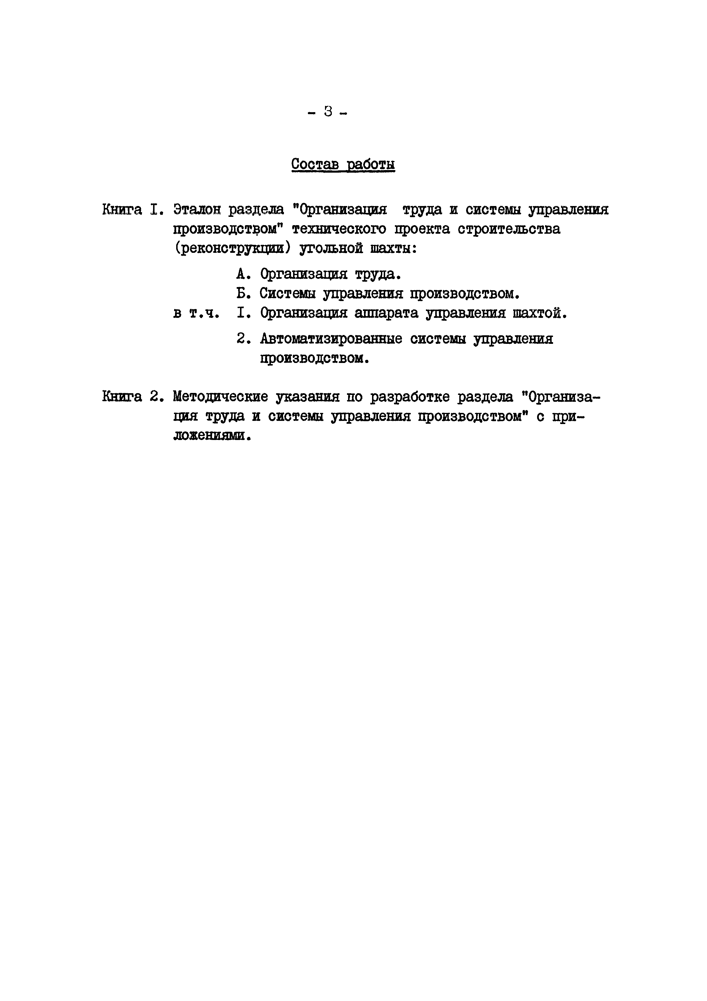| Название рус.: | Организация труда и системы управления производством. Книга I. Эталон раздела технического проекта строительства (реконструкции) угольной шахты |