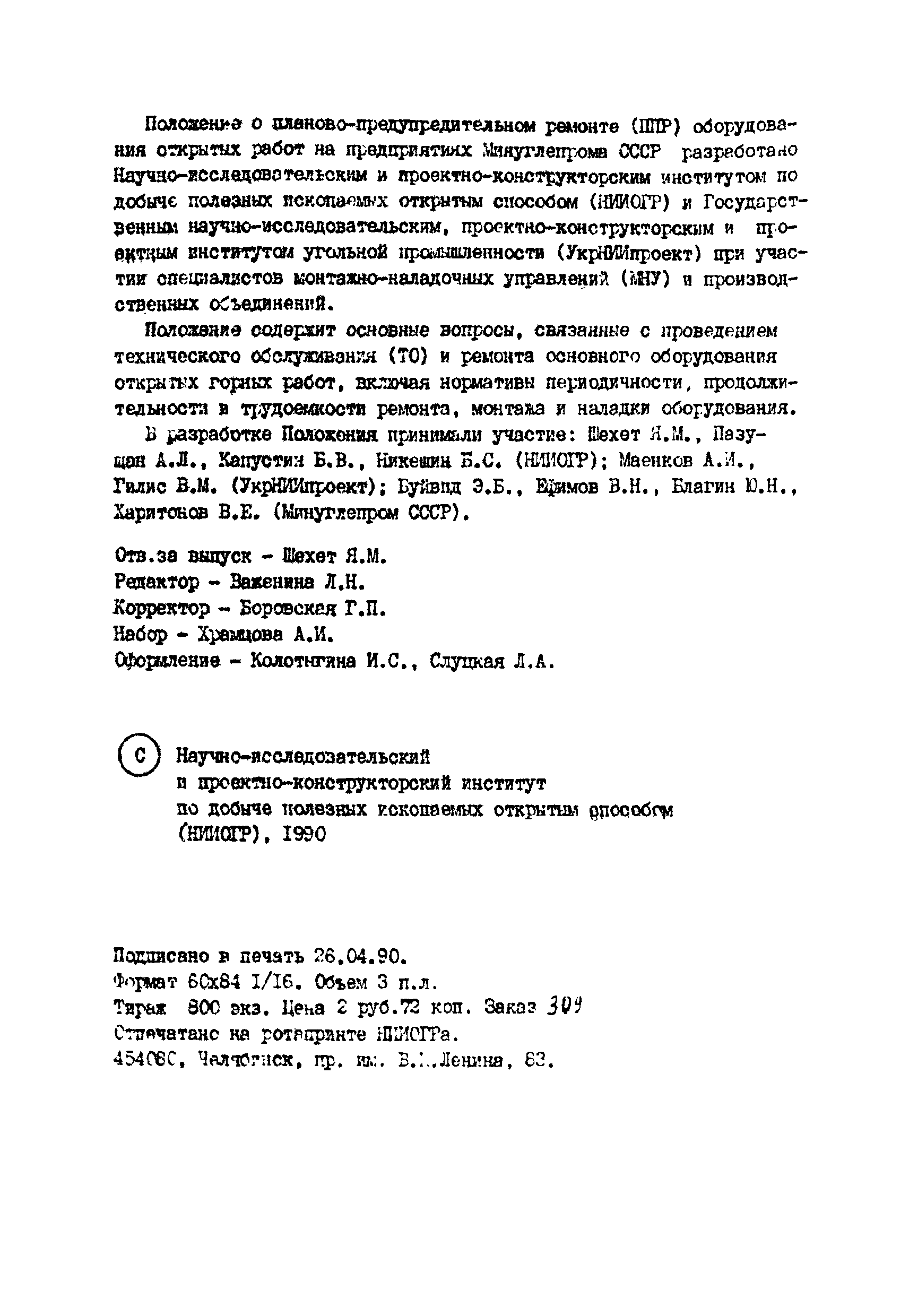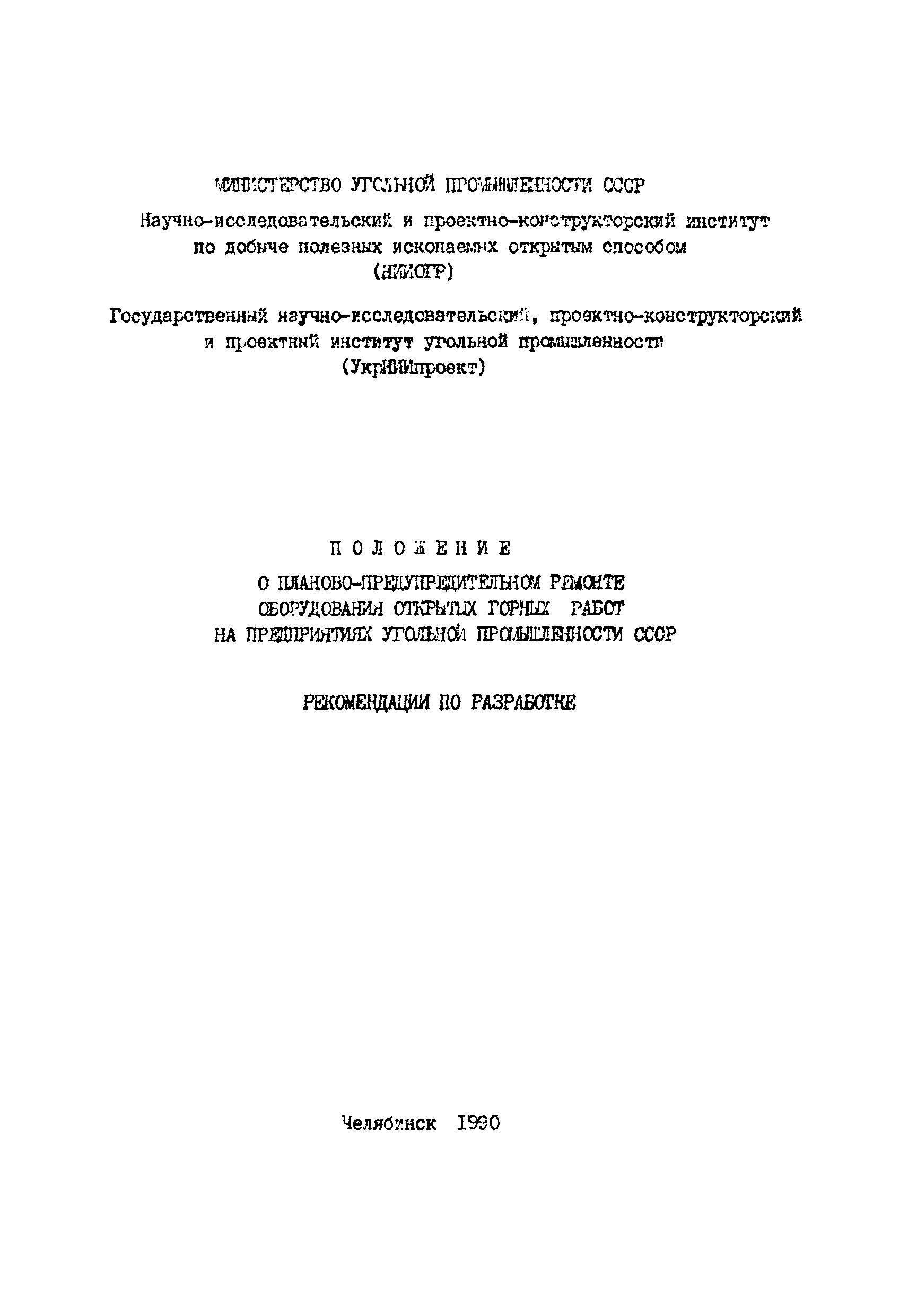 Скачать Положение о планово-предупредительном ремонте оборудования открытых горных работ на предприятиях угольной промышленности СССРДата актуализации: 01.01.2021