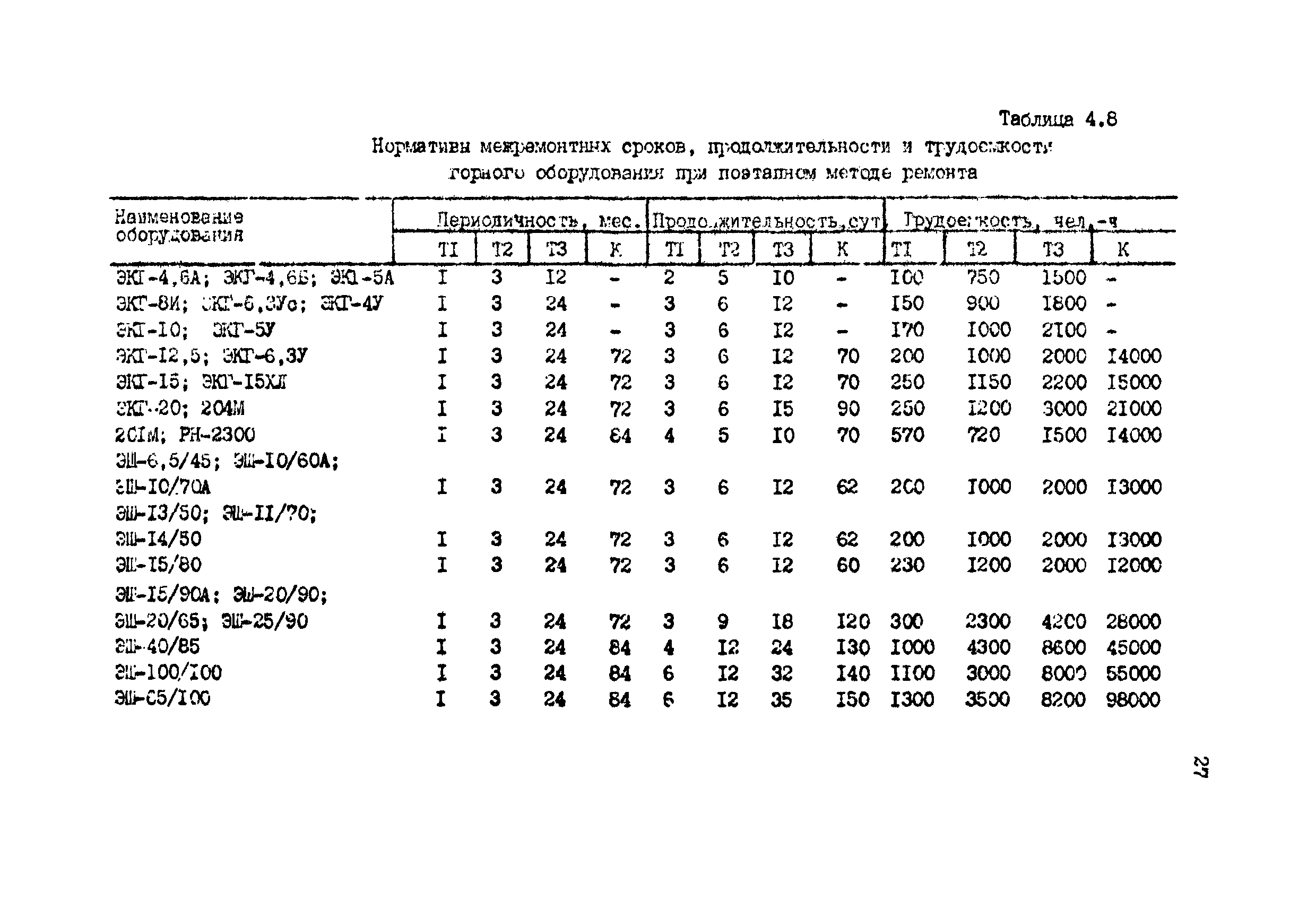 Положение о планово-предупредительном ремонте оборудования открытых горных работ на предприятиях угольной промышленности СССР| Статус: | справочные материалы, мп, тпр | | Название рус.: | Положение о планово-предупредительном ремонте оборудования открытых горных работ на предприятиях угольной промышленности СССР | | Дата добавления в базу: | 01.01.2021 | | Дата актуализации: | 01.01.2021 | | Область применения: | Положение содержит основные вопросы, связанные с проведением технического обслуживания и ремонта основного оборудования открытых горных работ, включая нормативы периодичности, продолжительности и трудоемкости ремонта, монтажа и наладки обслуживания. | | Оглавление: | 1. Общая часть 2. Система планово-предупредительных ремонтов и основные направления ее совершенствования 3. Техническое обслуживание 4. Ремонт. Общие положения 5. Планирование ремонтов оборудования 6. Организация и проведение ремонтов 7. Наладка электроборудования 8. Обеспечение запасными частями 9. Смазочное хозяйство 10. АСУ - ремонт 11. Приемка, хранение, учет и списание оборудования Приложение Нормативы периодичности технического обслуживания и ремонта горнотранспортного оборудования | | Разработан: | УкрНИИагропроект НИИОГР