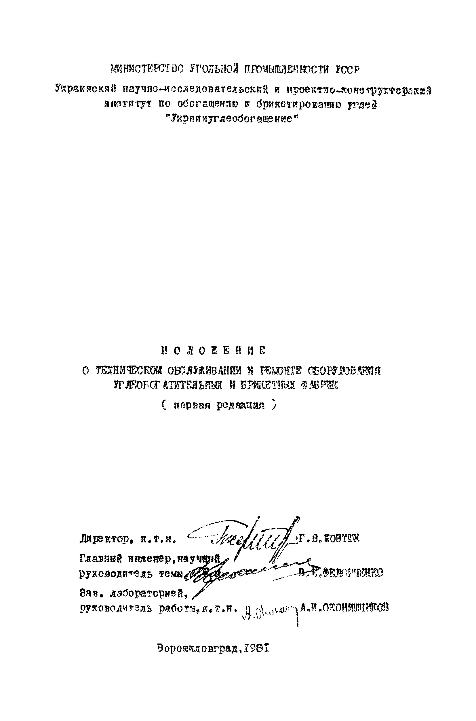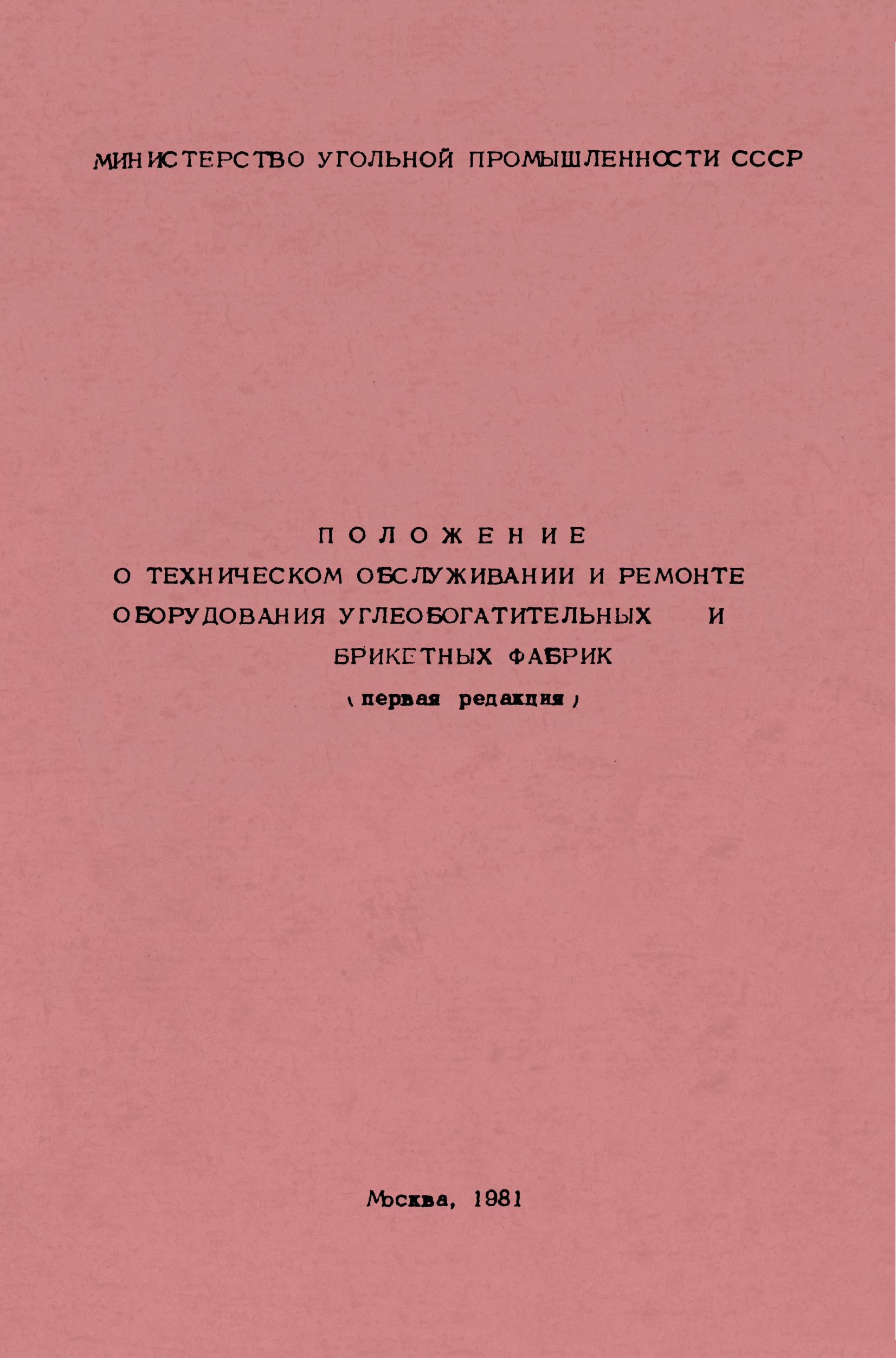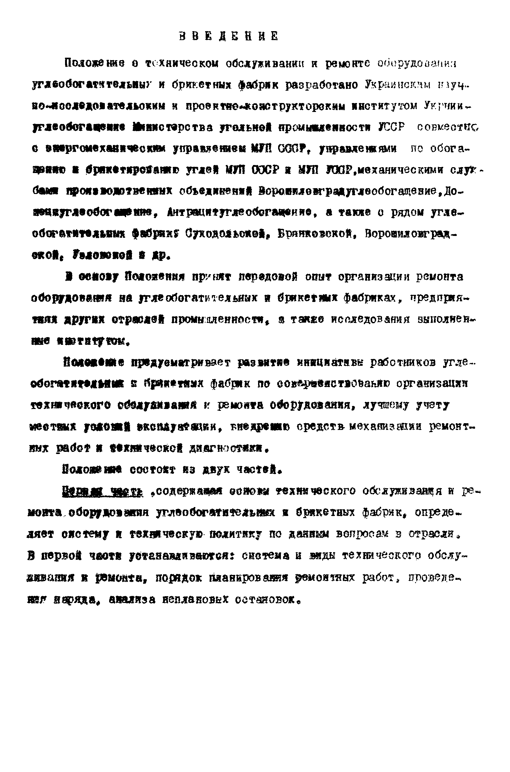 | Название рус.: | Положение о техническом обслуживании и ремонте оборудования углеобогатительных и брикетных фабрик |