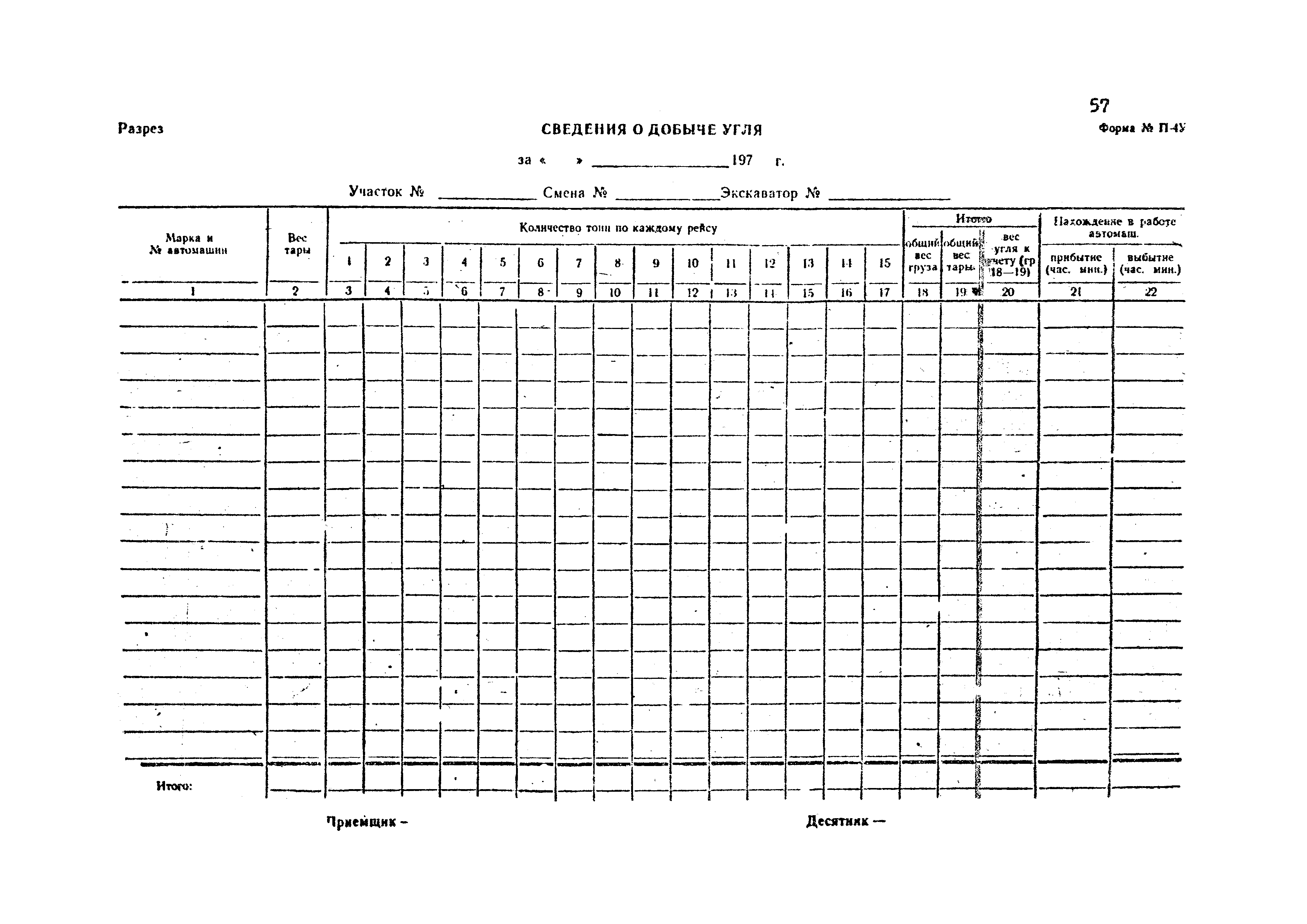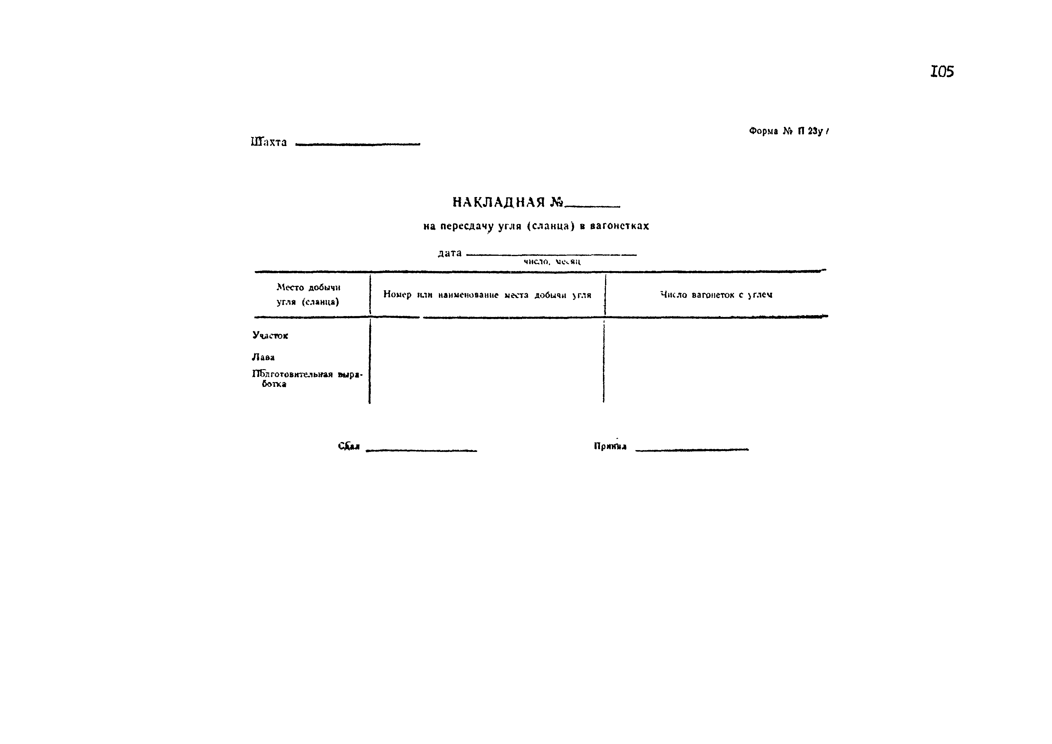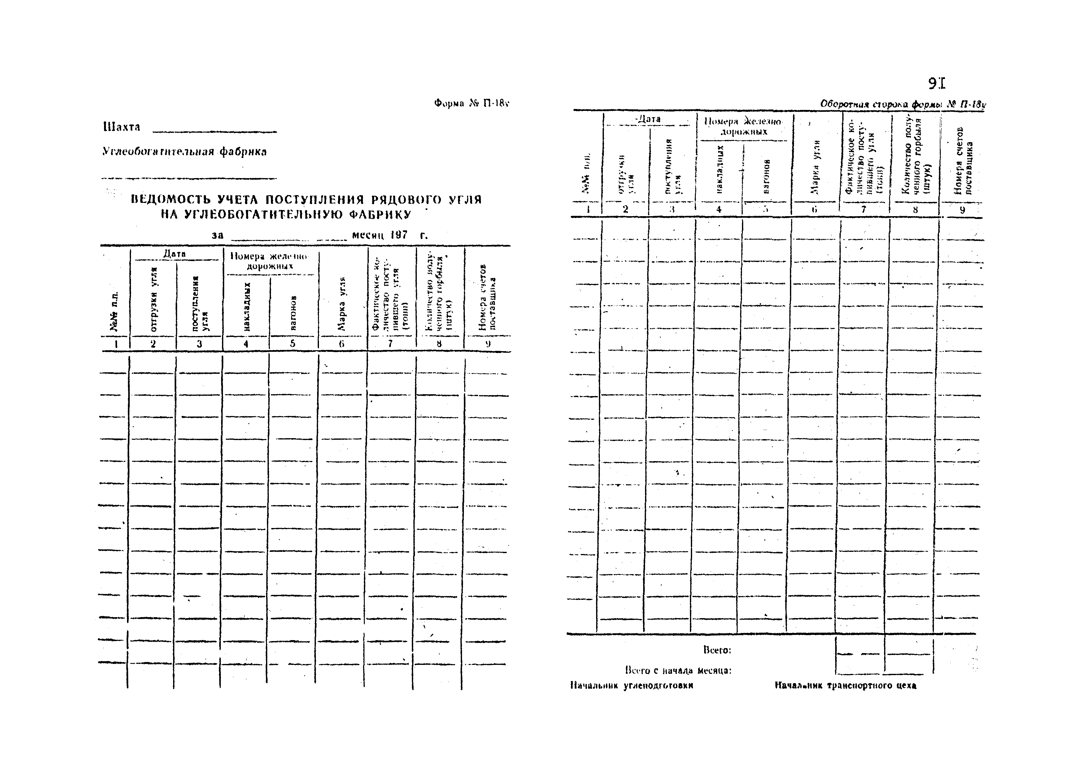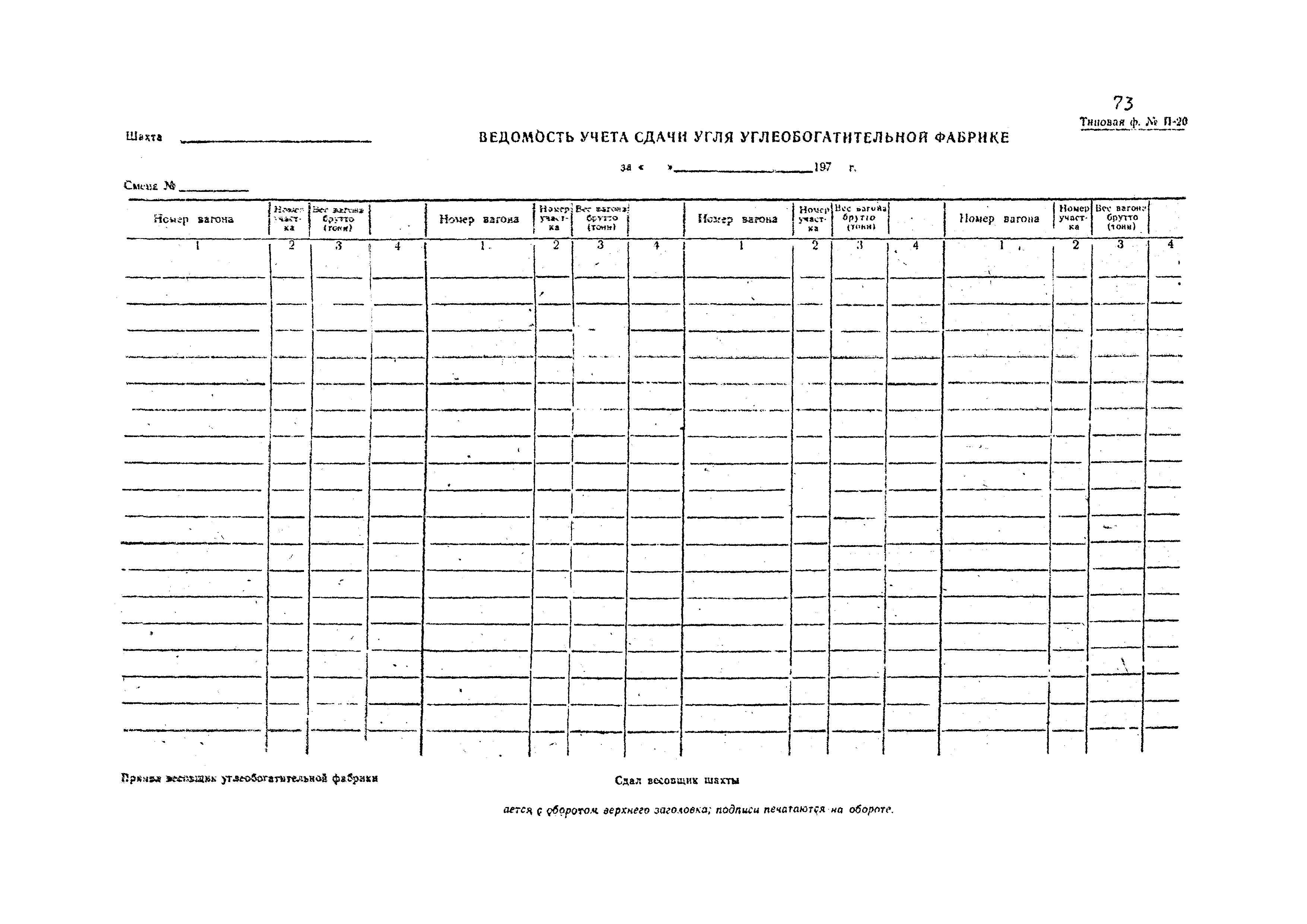 Инструкция по учету добычи угля (сланца) и продуктов обогащения на шахтах (разрезах) обогатительных фабриках Министерства угольной промышленности СССР| Статус: | действует | | Название рус.: | Инструкция по учету добычи угля (сланца) и продуктов обогащения на шахтах (разрезах) обогатительных фабриках Министерства угольной промышленности СССР | | Дата добавления в базу: | 01.01.2021 | | Дата актуализации: | 01.01.2021 | | Дата введения: | 01.01.1972 | | Область применения: | Инструкция определяет порядок учета добычи, переработки угля (сланца) и выпуска продуктов обогащения на предприятиях Министерства угольной промышленности СССР. | | Оглавление: | Общие положения Учет добычи угля (сланца) Порядок приемки угля на шахтах Порядок приемки угля (сланца) на разрезах Определение среднего веса угля в вагонетках, скипах, бункерах и автомашинах Определение среднего веса угля (сланца) в скипе (бункера) Определение среднего веса угля (сланца) в автомашинах Учет добычи угля за смену Учет добычи угля (сланца) на разрезах Учет добычи угля (сланца) по шахте и разрезу за сутки Учет добычи угля (сланца) за отчетный месяц Учет добычи угля на гидрошахтах Порядок приемки и учета рядового угля, передаваемого шахтами (разрезами) углеобогатительных фабрикам, и учета продуктов обогащения Приемка рядового угля обогатительными фабриками по количеству Приемка рядового угля обогатительными фабриками по качеству и порядок расчетов за принятый уголь Порядок учета рядового угля и продуктов обогащения Учет переработки угля и выпуска продуктов обогащения за смену Учет переработки угля и выпуска продуктов обогащения за сутки Учет переработки угля и выпуска продуктов обогащения за месяц Учет добычи угля в товарном исчислении по шахтам (разрезам), имеющим на своем балансе обогатительные фабрики Учет и замер угля (сланца) и продуктов обогащения на складах и в местах взвешивания вагонов и других емкостей Порядок списания потерь угля (сланца) и продуктов обогащения Ответственность за правильность учета добычи угля (сланца) и продуктов обогащения Образцы форм по учету добычи угля (сланца) и продуктов обогащения Краткие указания по применению и заполнению форм по учету добычи угля (сланца) и продуктов обогащения | | Утверждён: | 30.08.1971 Министерство угольной промышленности СССР (USSR Ministry of the Coal Industry 389)